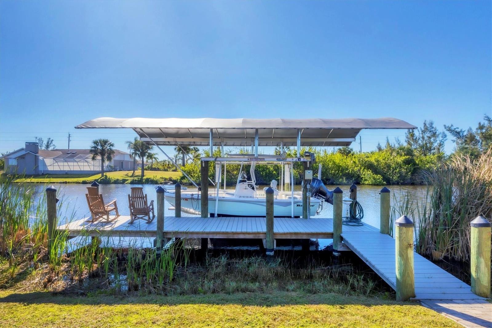 Do you dream of hopping on your boat and immersing yourself in the Florida lifestyle? This newer custom pool home not only delivers that dream but exceeds expectations. Perfectly oriented to the south, it offers a front-row seat to breathtaking sunsets and a sunlit lanai throughout the winter months. If you're seeking luxury, convenience, and a slice of paradise, look no further. As you step through the striking custom double doors, what will captivate you first? Perhaps it's the diagonally set flooring that flows seamlessly through the entire home, adding a touch of sophistication. Maybe it’s the stunning light fixtures that accentuate the soaring ceilings in the foyer and great room. Or will it be the 16-foot glass sliders that effortlessly pocket away, inviting the outdoors in and creating a true indoor-outdoor living experience? Take a moment to decide—this home is designed to impress. The heart of the home is the exquisite kitchen. You may hesitate to cook in a space so beautifully designed, but for those who dare, it’s equipped to inspire your inner Food Network star. Granite countertops command attention with their elegance and ample workspace. A large island and an abundance of cabinetry provide both function and style, complemented by a stainless-steel appliance suite. The vented hood above the stovetop is both practical and stylish, and the backsplash completes this culinary masterpiece. Step onto the expansive lanai, where you’ll likely spend most of your time. A 30' x 10' covered area with wet bar offers plenty of space to create your personal outdoor retreat. Beyond, the heated pool beckons—a stunning centerpiece for entertaining or relaxing. From your lanai, enjoy serene views of your own private natural habitat and boating hub, providing unparalleled tranquility and privacy on the Cape Haze Peninsula. This home also includes a private dock and lift, perfectly designed for boating enthusiasts. Whether you're setting out for a day on the Gulf or enjoying the peaceful waterways nearby, this setup ensures your adventures are effortless. A true embodiment of the Florida lifestyle, this feature brings convenience and luxury to your doorstep. Back inside, the master suite is your personal haven. With two walk-in closets, sliders opening directly to the lanai, and a linen closet, it combines space with functionality. The en-suite bath feels like a spa retreat, featuring a large walk-through shower, dual vanities, and an abundance of room to unwind in comfort. The guest wing is thoughtfully designed for privacy, with two bedrooms and a shared bathroom that provides direct pool access. One guest room even boasts its own sliding door to the lanai, perfect for visitors seeking their own retreat. Additional features include a dedicated den, high-speed internet, a walk-in laundry room, concrete curbed landscaping, mini split in garage, and Low-E hurricane-resistant PGT windows and sliders for peace of mind. Situated just minutes from Boca Grande and Manasota Key beaches, this home is perfectly positioned to enjoy Florida’s best activities, from sun-soaked beaches to boating adventures. If you’ve read this far, congratulations—you’ve discovered your next home. A sanctuary designed for living, entertaining, and exploring the best of Florida. Are you ready to make it yours?