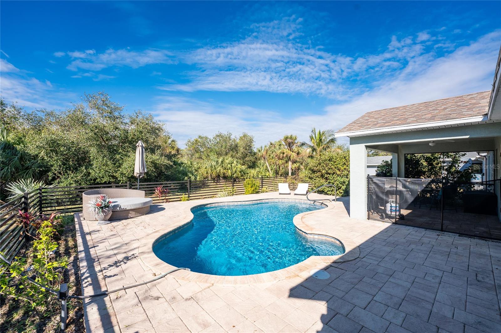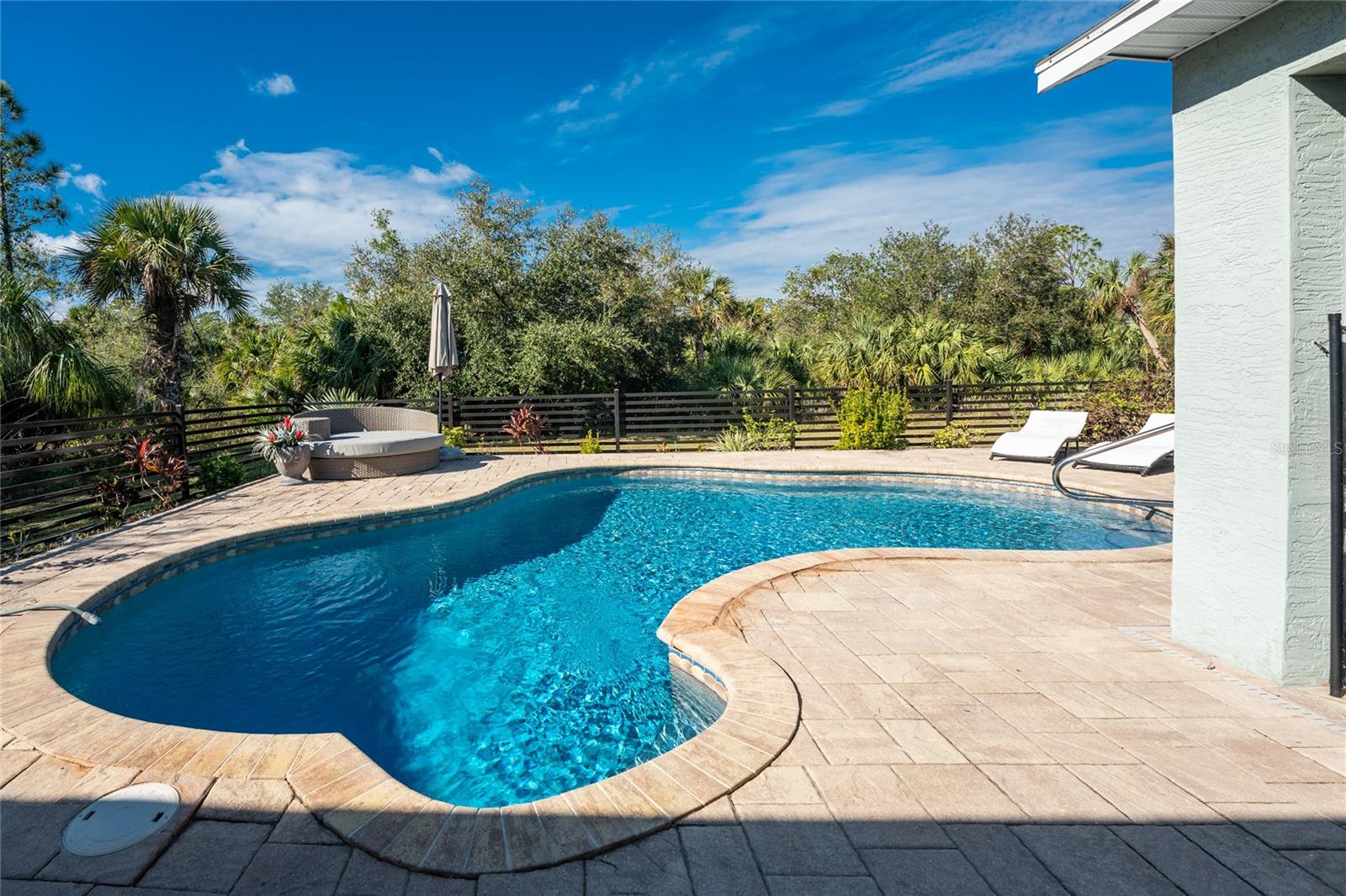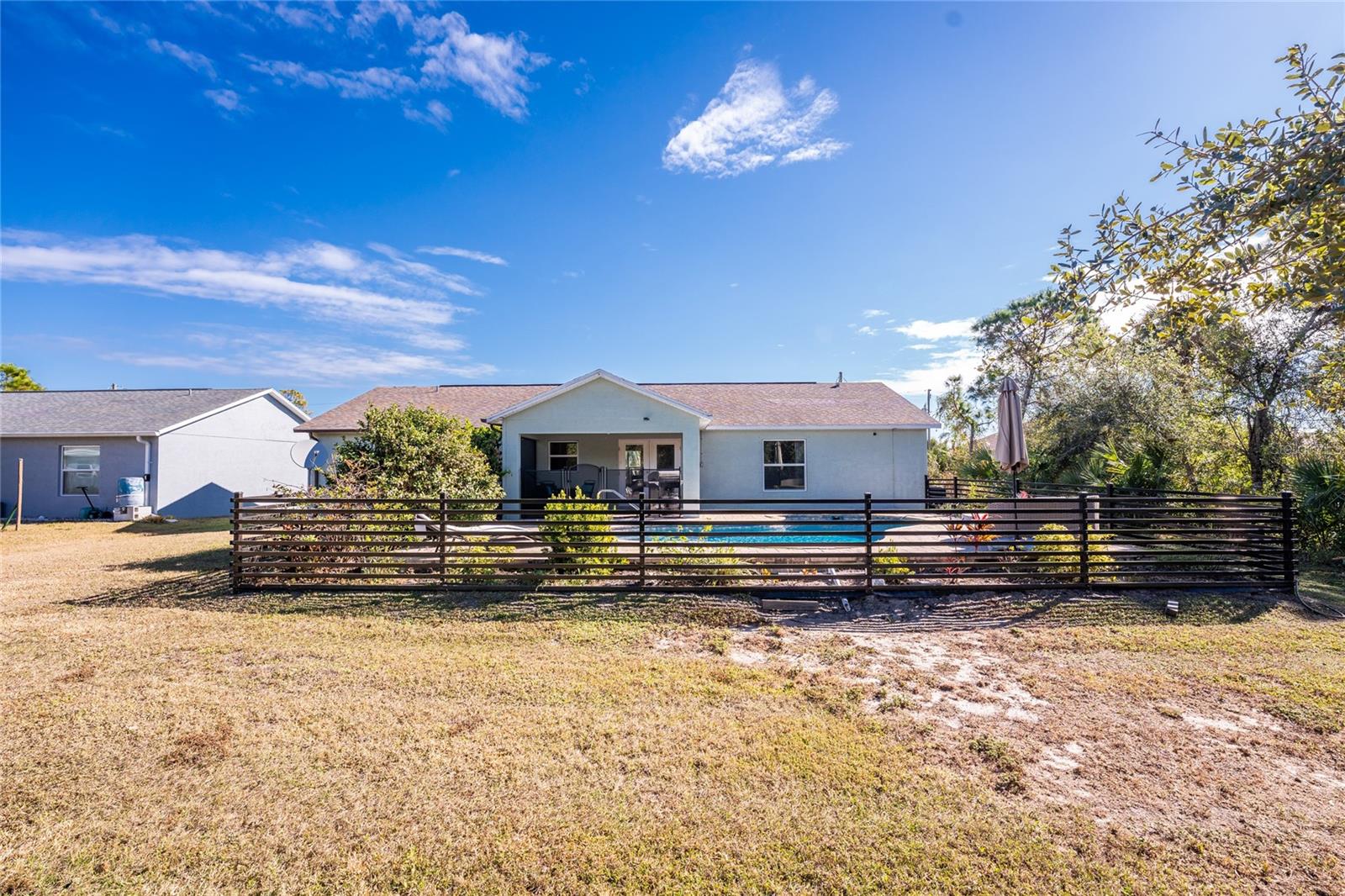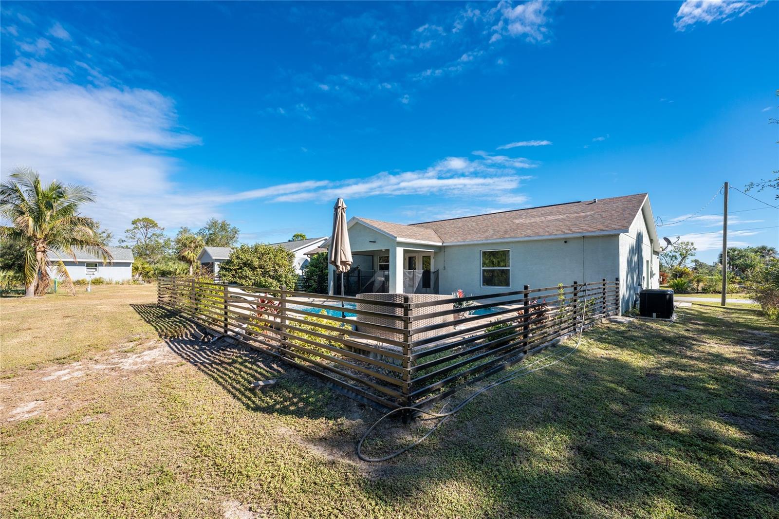 PRICED FOR QUICK SALE! Step into your own slice of paradise with this beautiful POOL HOME, featuring 3 bedrooms, 2 bathrooms, and a 2-car garage, perfectly situated in a peaceful neighborhood with no deed restrictions! Surrounded by lush tropical landscaping, this home offers a serene escape while keeping you close to Gulf Beaches, golf courses, waterfront dining and more. Step inside and you will appreciate the open-concept design with vaulted ceilings and tile flooring throughout. The kitchen is a chef’s delight boasting granite countertops and newer stainless steel appliances, perfect for whipping up meals or hosting gatherings. Spacious bedrooms offer plenty of closet space, and the updated bathrooms feature beautiful walk-in showers with recessed lighting. Stunning double French Doors from the dining area lead you to an expanded pavered patio and pool area, creating the ultimate indoor-outdoor living experience. Perfect for relaxing or entertaining, the HEATED SALTWATER POOL is a true oasis, surrounded by native tropical plants. Additional features of this great home include inside laundry room, hurricane shutters, and a 30AMP RV HOOKUP! Prime location just minutes from stunning Gulf beaches, golf courses, waterfront dining, and boat ramps, with easy access to Punta Gorda, Port Charlotte, Englewood, North Port, Venice, and more. Don’t miss this gem—schedule your showing today! Be sure to click on the virtual tour!