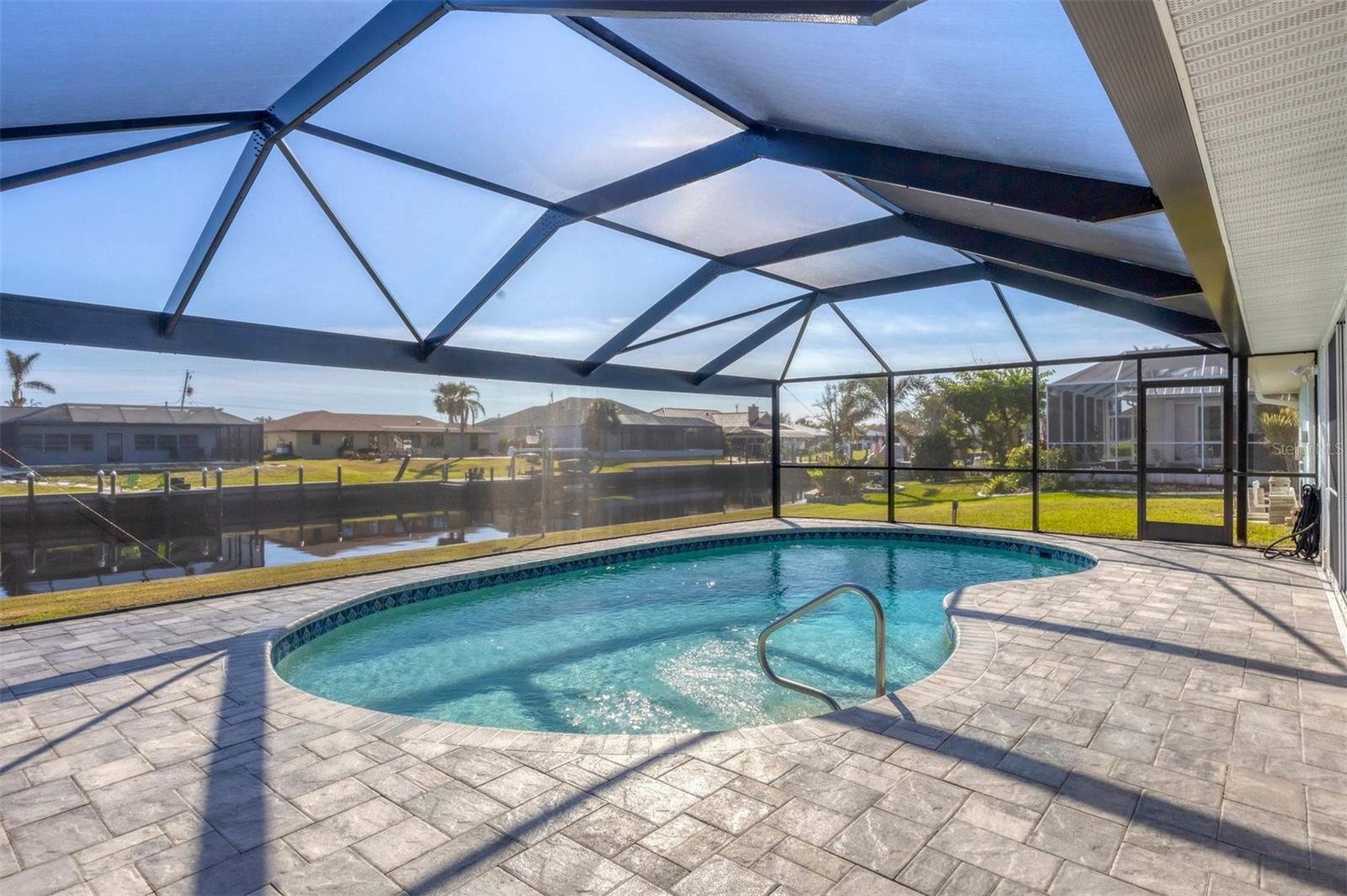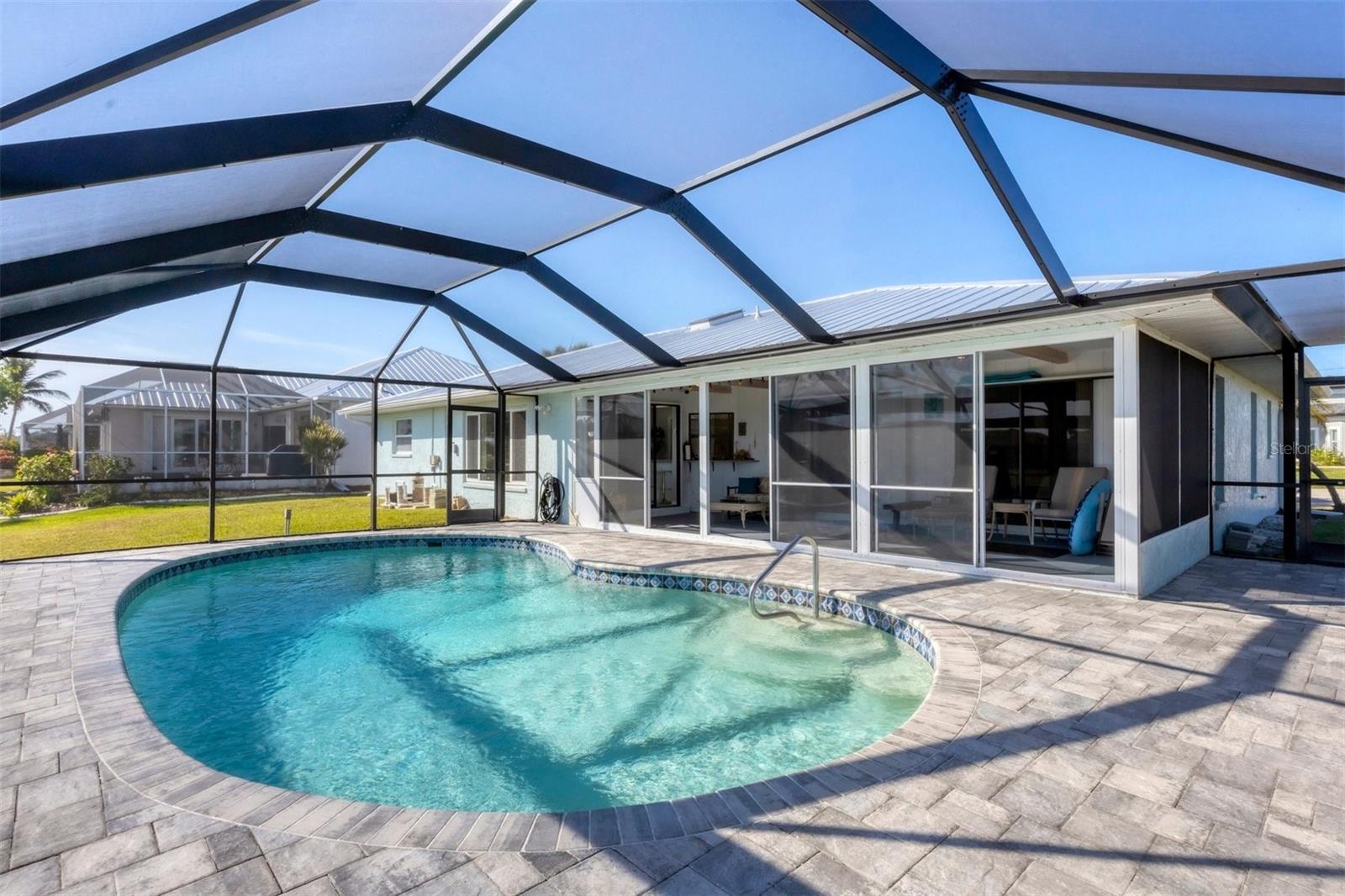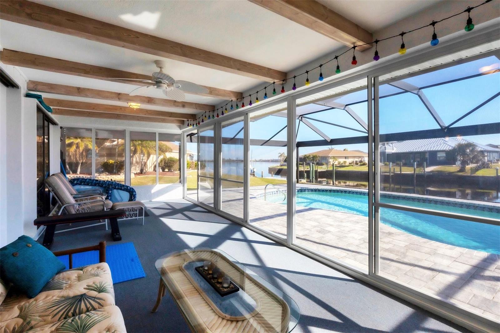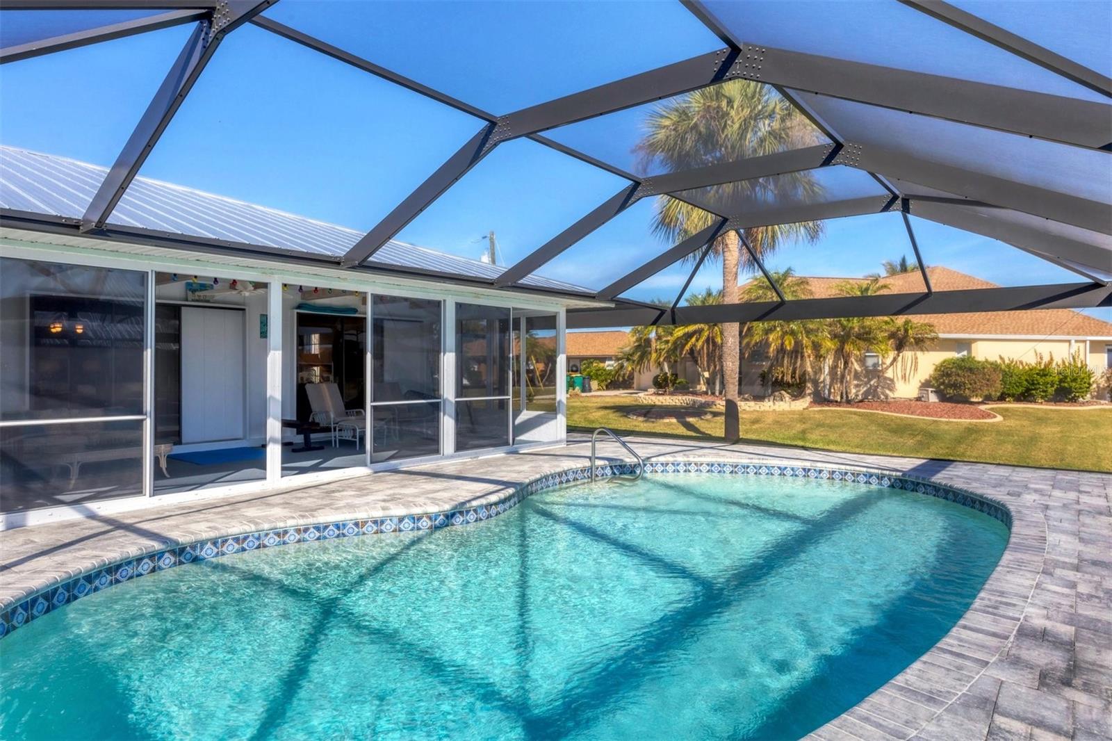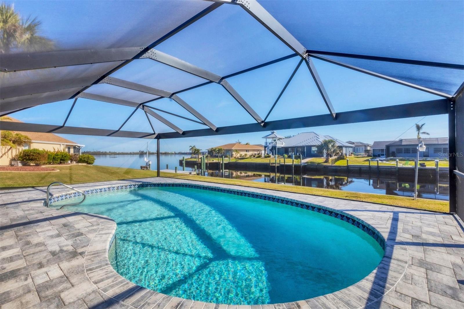 Discover coastal living at its finest in this charming 2-bedroom, 2-bath home nestled on a serene canal lot with direct access to the Gulf of Mexico. As you step inside, you’ll be greeted by a bright and spacious interior, featuring 1,516 square feet of meticulously updated living space. Both bathrooms have been completely remodeled, offering modern comforts and sleek finishes. In 2022, the home was enhanced with a durable 18-gauge steel roof and a new, efficient HVAC system, ensuring year-round comfort. The outdoor area is a true oasis, complete with a newly resurfaced pool adorned with a pebble tech interior and vibrant multi-color LED lighting. Recent upgrades include a stylish paver deck and a high-quality bronze pool cage, completed in 2023, that provides unobstructed views of the Myakka River and surrounding lush landscapes. The lanai has been transformed into an expansive, open view experience featuring full-length collapsible doors that allow for seamless indoor-outdoor living. Boating enthusiasts will appreciate the quick access to the Myakka River, leading to the open waters of the Gulf of Mexico. Community features add to the allure, with nearby Gulf Cove Private Park and Boat Ramp just a stone’s throw away. For sports enthusiasts, the Charlotte Sports Park is a short drive, offering a variety of events and activities. This home is not just a living space but a gateway to a lifestyle of leisure and adventure by the water. Ideal for those who dream of a life filled with sunny days on the water and tranquil evenings under the stars. Come and see what makes this property not just a house, but a home to cherish.