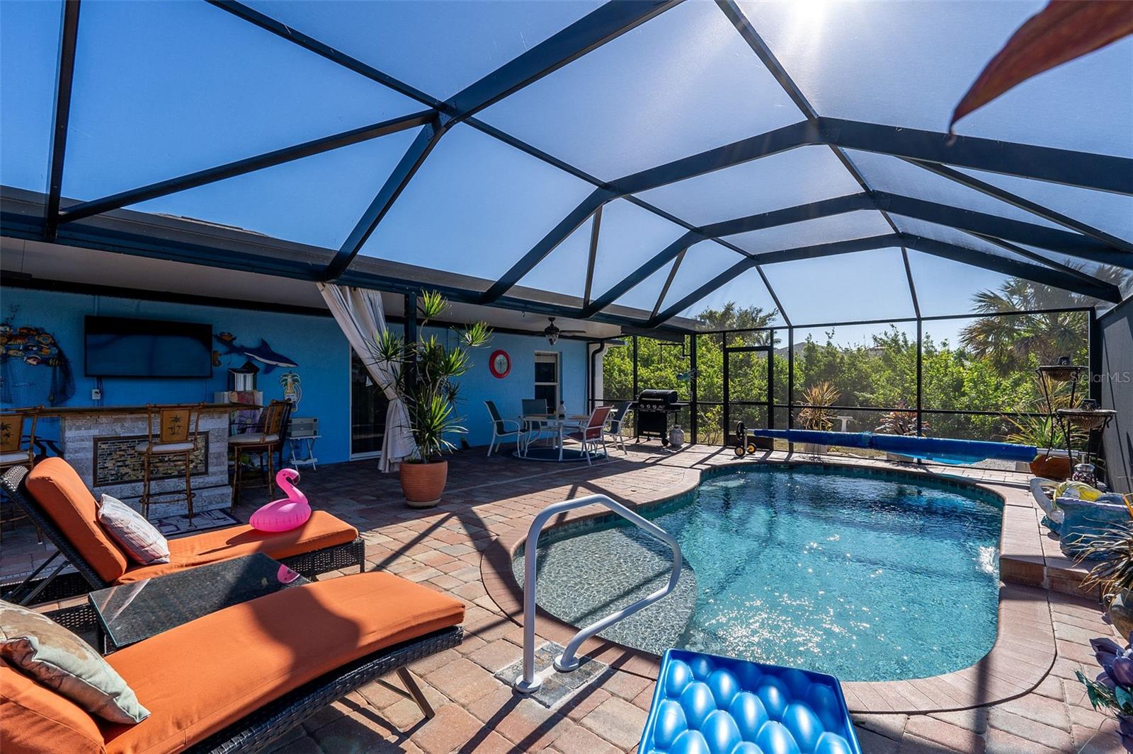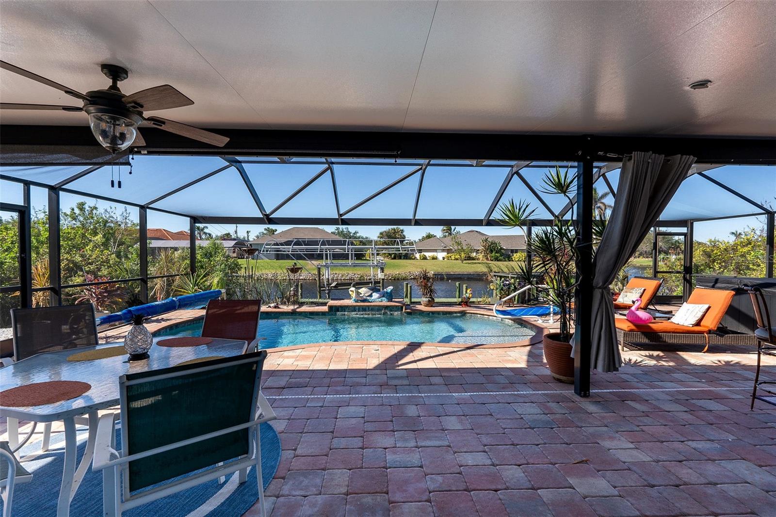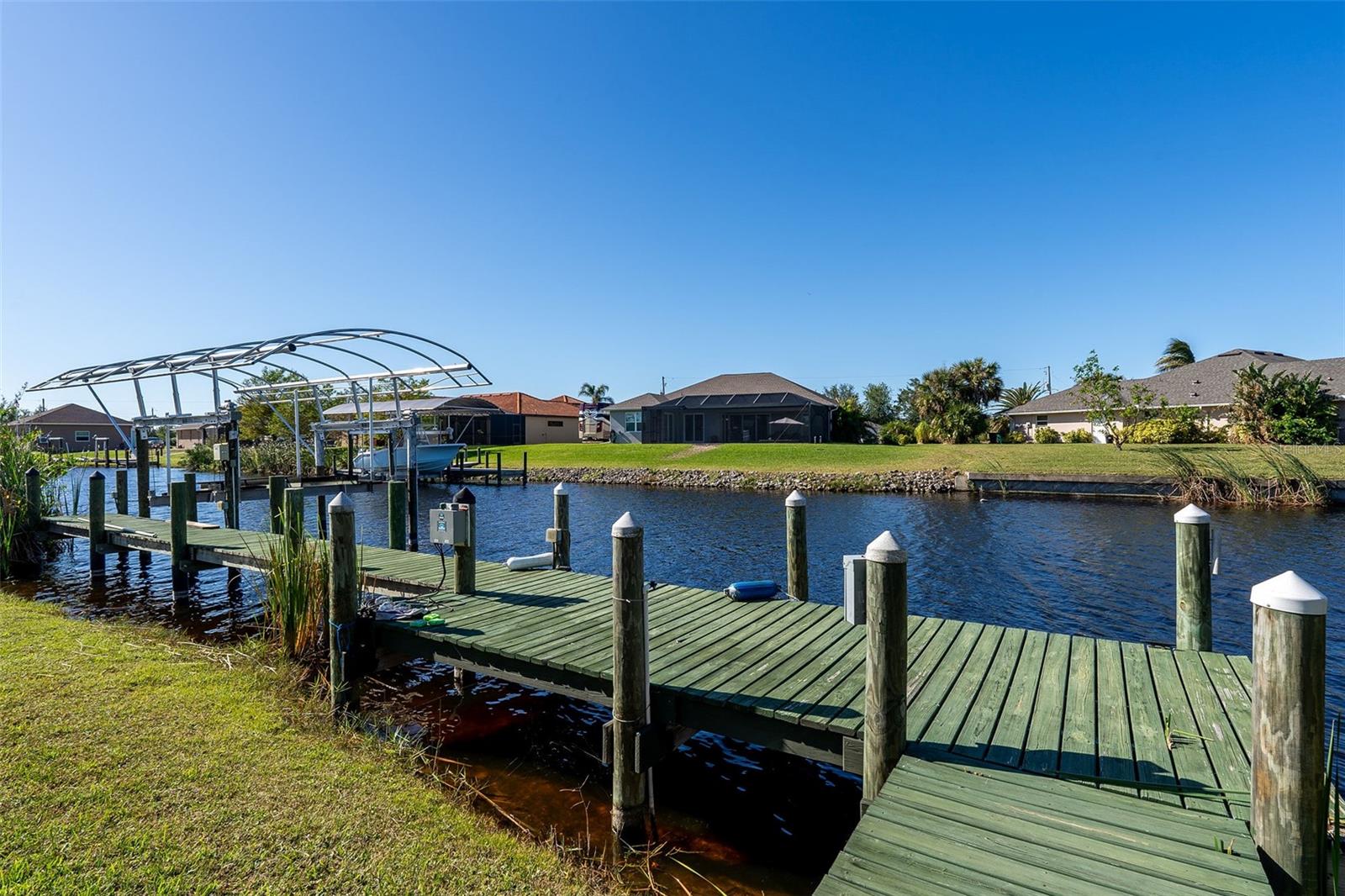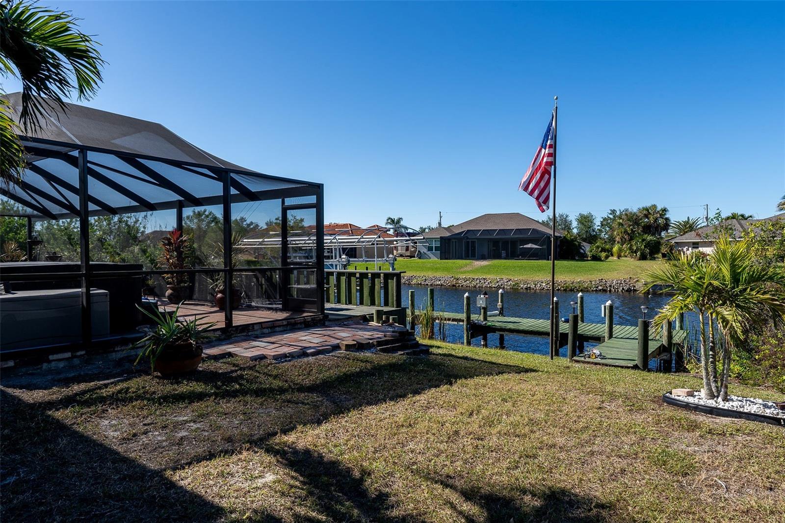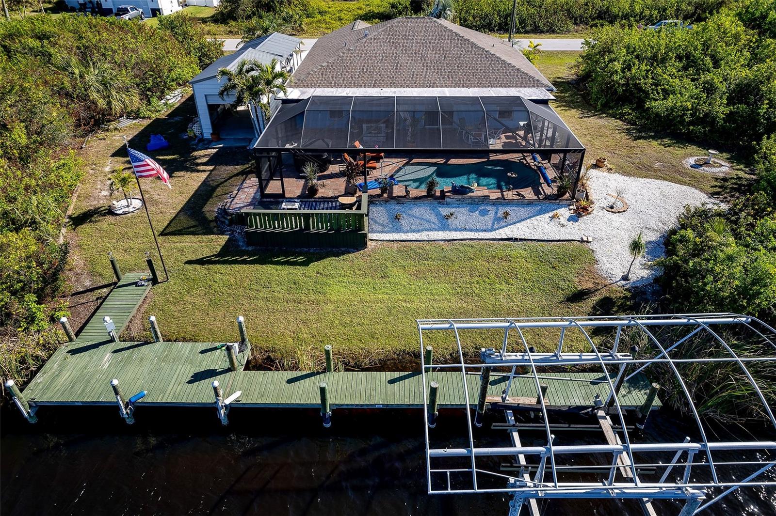 Amazing Opportunity ~ Gulf Access Pool Home in South Gulf Cove! Welcome to this UNIQUE WATERFRONT RETREAT featuring a HEATED POOL with waterfall feature, HUGE dock, COVERED 10,000lb Boat Lift, Sunset Deck, Detached Garage (2021) and 12'x30' Carport in the beautiful Gulf Access community, South Gulf Cove. WOW! This Coastal-inspired 3-bedroom, 2-bathroom Gulf Access home offers the perfect blend of comfort, style and outdoor living. Whether you're a boating enthusiast or simply love the tranquil beauty of the waterfront lifestyle, this property has it all. Step inside to discover a spacious floor plan with luxury vinyl plank flooring and volume ceilings, offering plenty of natural light and seamless flow between the casual and formal living, dining, and kitchen areas. The kitchen is a chef’s delight with stainless steel appliances, high top bar seating and ample cabinet space, perfect for preparing meals to enjoy in your waterfront paradise. The master suite is a true retreat, featuring a private en-suite bath, dual sinks, and newly updated TILED walk-in shower. Two additional generously sized bedrooms provide plenty of space for family or guests, a home office or craft room. The home is designed for easy living with coastal touches and a split- bedroom floor plan for added privacy. Step outside to your own backyard TROPICAL PARADISE! Your sparkling Salt-Water Pool (2018) with Waterfall Feature, Tiki Bar with wall-mount TV, and Brand New Hot Tub (2024) and expansive paver pool deck will be inviting you to relax and unwind on sunny days and starry nights, while the outdoor party deck area is perfect for entertaining or star-gazing with picturesque views of the spectacular sunsets and intersecting waterways. BOATERS will love the private boat dock and covered lift, providing access to the Gulf of Mexico and endless opportunities for boating, fishing, and exploring Southwest Florida's waterways. And wait, there's more! This property has an extended driveway leading to a carport and Detached 12'x20' Garage (2021) with front and back overhead doors. Other Features include NEW Screen Enclosure (2023), NEW complete AC changeout (2019) top of the line LG Thin Q Washer/Dryer (2022), 30 amp RV Hookup, workshop, and more! Located in the highly sought-after South Gulf Cove community, this home is just minutes away from world-class beaches, dining, shopping, and golf courses. Only 20-30 minute drive to downtown Punta Gorda, the cultural district of Venice, and vibrant new Wellen Park! Whether you're looking for a seasonal getaway or a year-round residence, 9300 Miami Circle offers the ultimate in Florida living. Don’t miss your chance to own this exceptional waterfront property. Take our 3D Tour and Call today to schedule your private tour!
