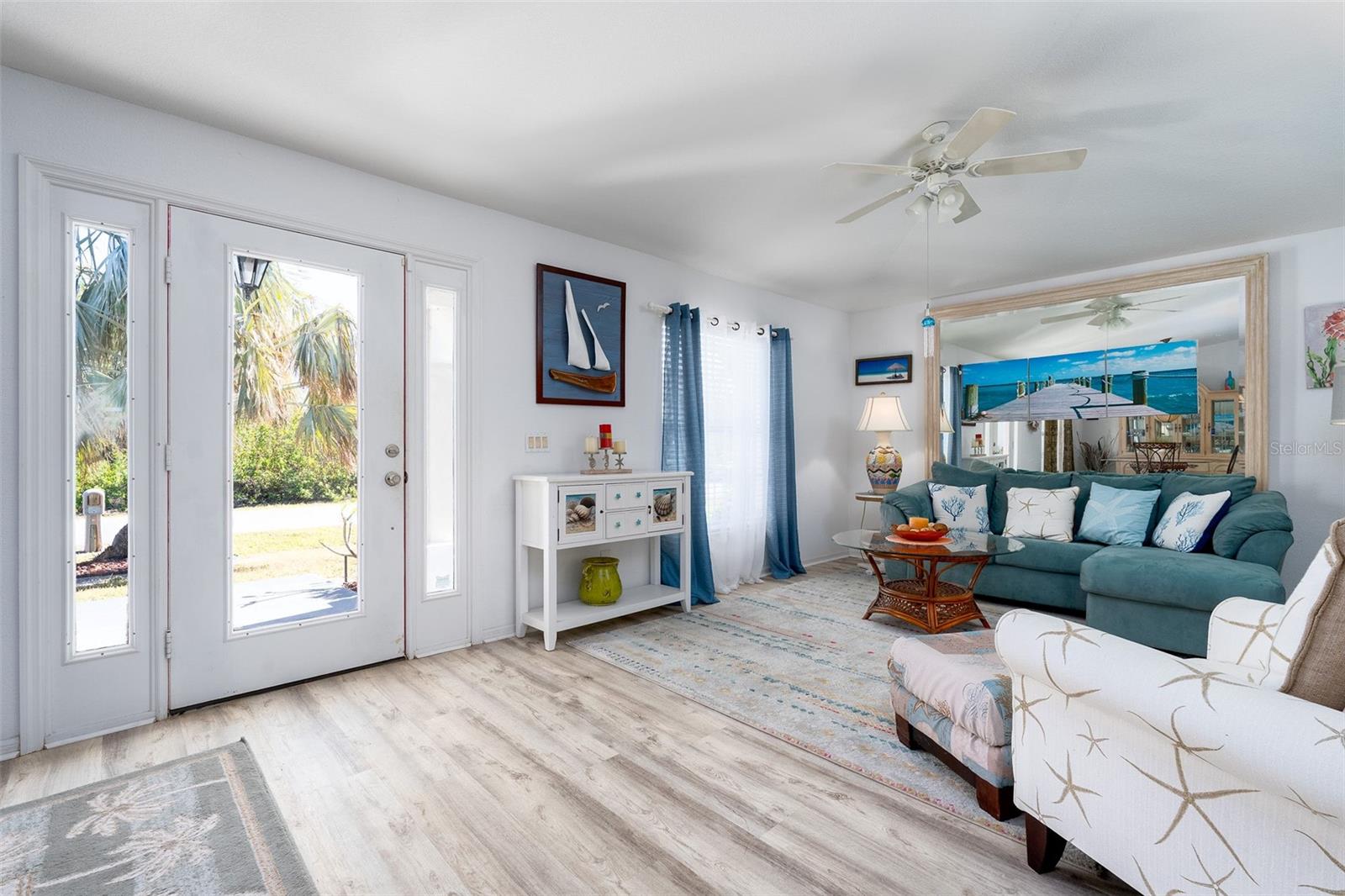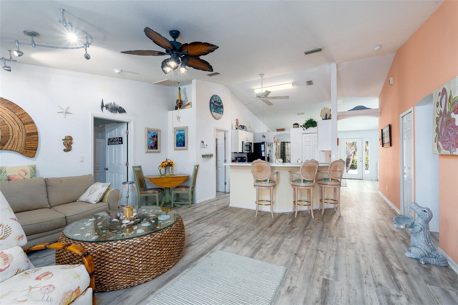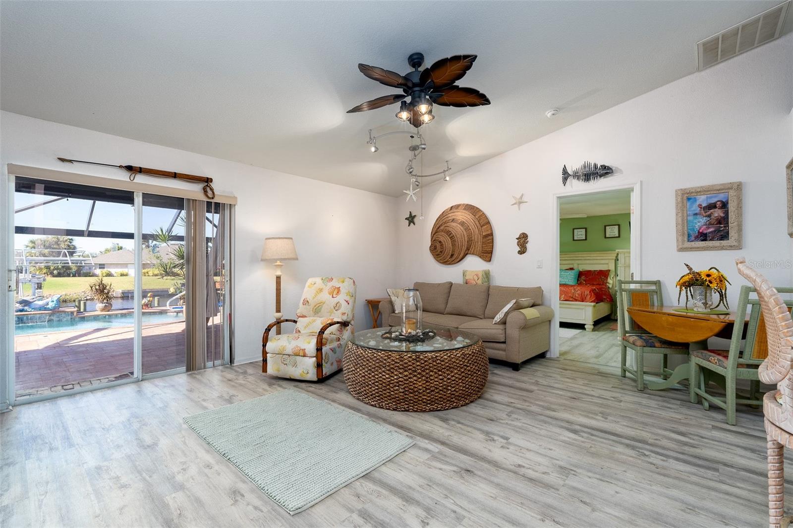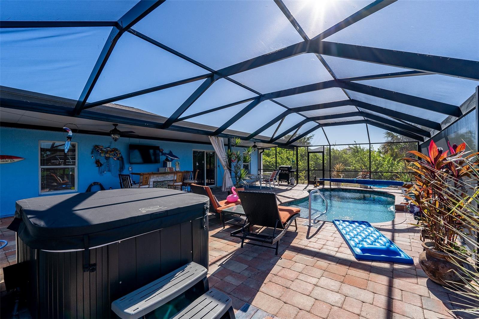 Amazing Opportunity ~ Gulf Access Pool Home in South Gulf Cove! Welcome to this UNIQUE WATERFRONT RETREAT featuring a HEATED POOL with waterfall feature, HUGE dock, COVERED 10,000lb Boat Lift, Sunset Deck, Detached Garage (2021) and 12'x30' Carport in the beautiful Gulf Access community, South Gulf Cove. WOW! This Coastal-inspired 3-bedroom, 2-bathroom Gulf Access home offers the perfect blend of comfort, style and outdoor living. Whether you're a boating enthusiast or simply love the tranquil beauty of the waterfront lifestyle, this property has it all. Step inside to discover a spacious floor plan with luxury vinyl plank flooring and volume ceilings, offering plenty of natural light and seamless flow between the casual and formal living, dining, and kitchen areas. The kitchen is a chef’s delight with stainless steel appliances, high top bar seating and ample cabinet space, perfect for preparing meals to enjoy in your waterfront paradise. The master suite is a true retreat, featuring a private en-suite bath, dual sinks, and newly updated TILED walk-in shower. Two additional generously sized bedrooms provide plenty of space for family or guests, a home office or craft room. The home is designed for easy living with coastal touches and a split- bedroom floor plan for added privacy. Step outside to your own backyard TROPICAL PARADISE! Your sparkling Salt-Water Pool (2018) with Waterfall Feature, Tiki Bar with wall-mount TV, and Brand New Hot Tub (2024) and expansive paver pool deck will be inviting you to relax and unwind on sunny days and starry nights, while the outdoor party deck area is perfect for entertaining or star-gazing with picturesque views of the spectacular sunsets and intersecting waterways. BOATERS will love the private boat dock and covered lift, providing access to the Gulf of Mexico and endless opportunities for boating, fishing, and exploring Southwest Florida's waterways. And wait, there's more! This property has an extended driveway leading to a carport and Detached 12'x20' Garage (2021) with front and back overhead doors. Other Features include NEW Screen Enclosure (2023), NEW complete AC changeout (2019) top of the line LG Thin Q Washer/Dryer (2022), 30 amp RV Hookup, workshop, and more! Located in the highly sought-after South Gulf Cove community, this home is just minutes away from world-class beaches, dining, shopping, and golf courses. Only 20-30 minute drive to downtown Punta Gorda, the cultural district of Venice, and vibrant new Wellen Park! Whether you're looking for a seasonal getaway or a year-round residence, 9300 Miami Circle offers the ultimate in Florida living. Don’t miss your chance to own this exceptional waterfront property. Take our 3D Tour and Call today to schedule your private tour!