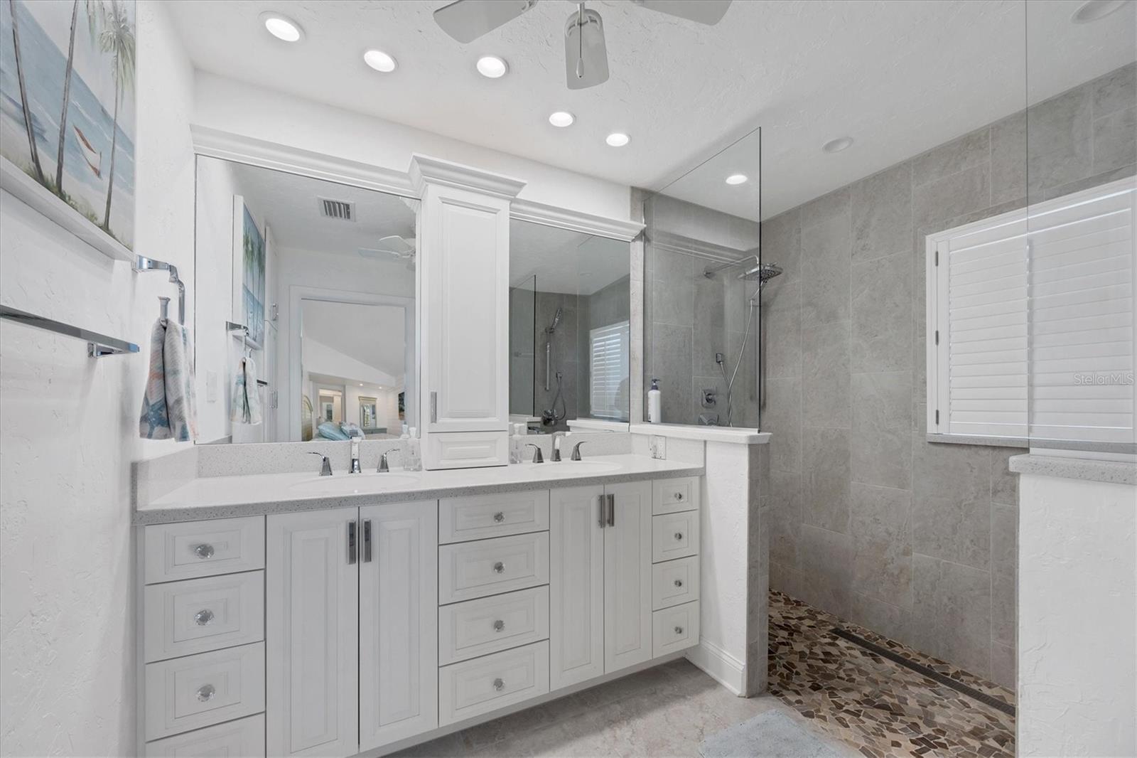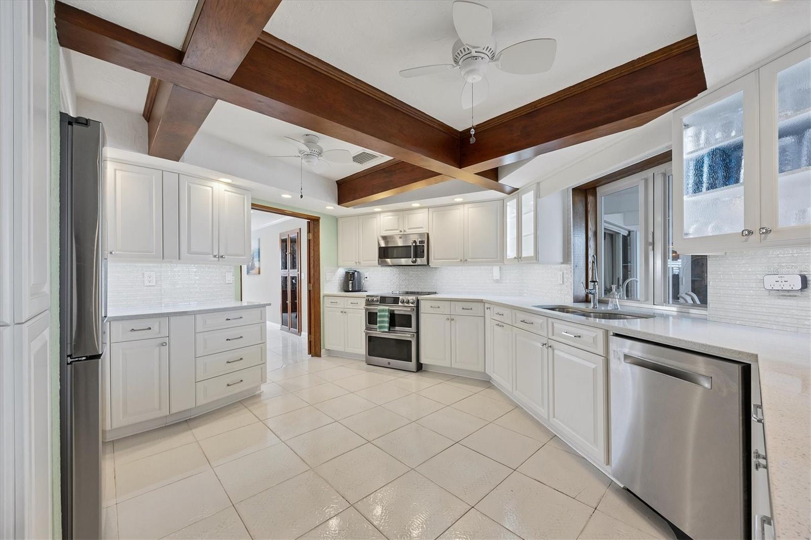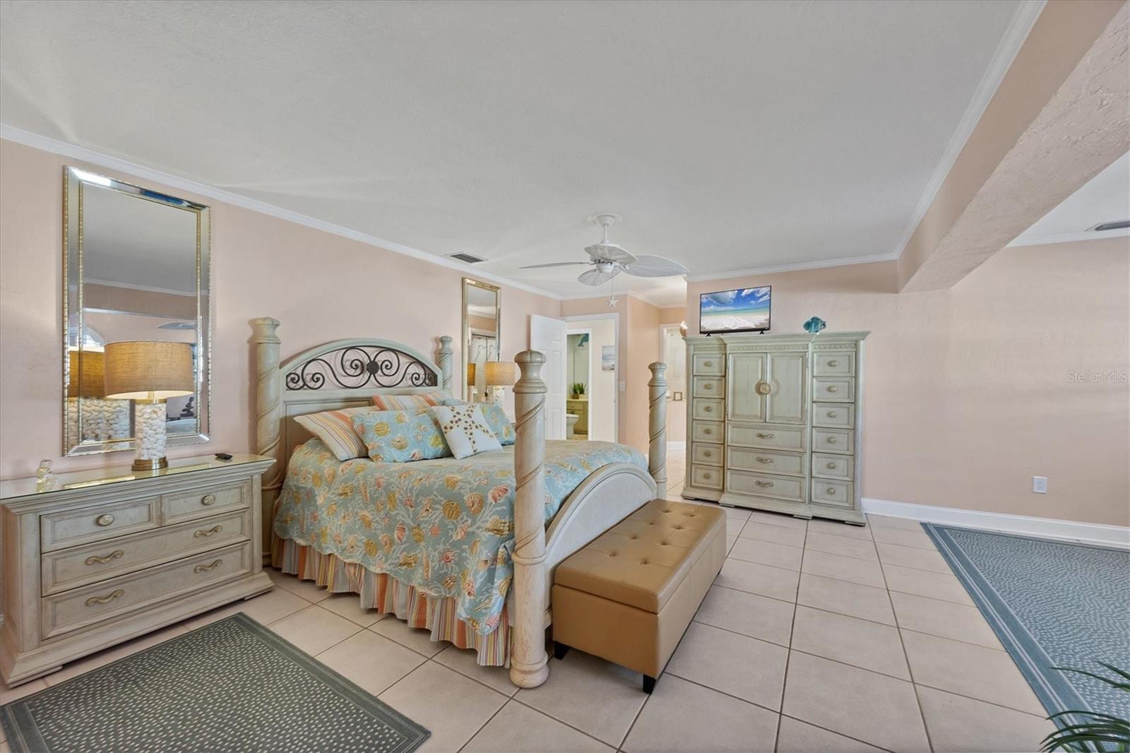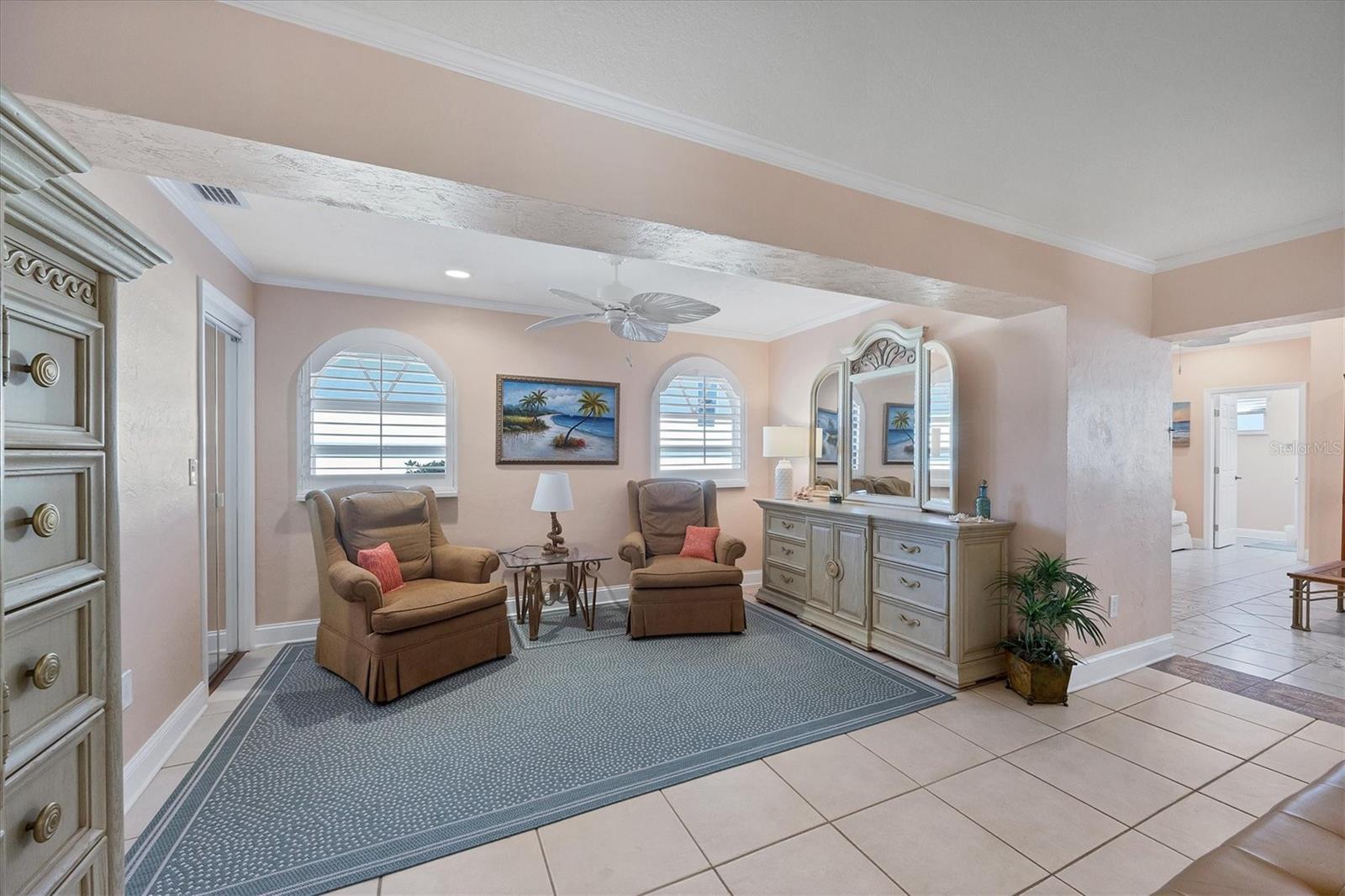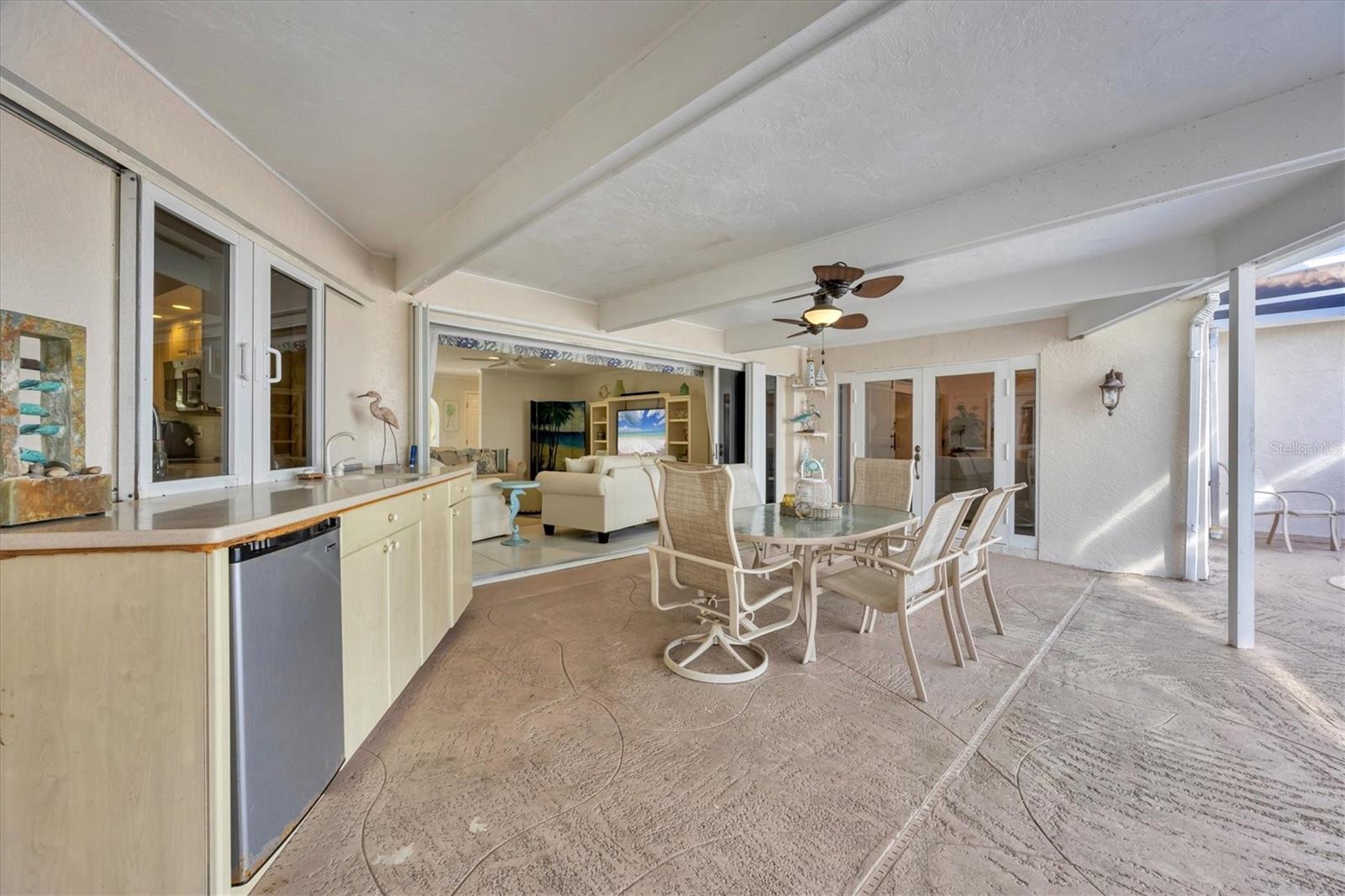 Canal-front views, endless boating adventures and island-inspired charm create a sense of laidback bliss throughout this spacious home. Granting large areas to gather, entertain or relax, the bright interiors are complemented by vibrant exteriors that epitomize indoor-outdoor living. The sprawling floorplan is accentuated and enhanced with eye-catching stained-glass finishes, beamed coffered ceilings, built-ins, dazzling light fixtures, a showcase wood-burning fireplace, and open-concept dwelling. Welcomed through double glass doors into the foyer, a formal living room transitions you into the heart of the home, where the combined family room, dining area and kitchen bring everyone together. Boasting a wealth of cabinetry, island peninsula with bar seating, built-in stainless appliances and sliders that provide seamless flow to the lanai, the kitchen is sure to offer unlimited hosting opportunities. Today’s discerning homeowner relishes space versatility for wellness, preferences, and entertaining, which this residence has with four generous guest bedrooms and an upstairs nook, including a personal balcony. Fashion the bedrooms as an office, game room, hobby area, or in-law quarters to meet all your needs. A primary suite with gracious en-suite bath including a garden tub and walk-in shower featuring a rain shower head will allow you sanctuary at the end of the day. Friends and family alike will enjoy spending time year-round in the backyard, alfresco meals on the screened lanai showcasing a beverage bar, taking a refreshing dip in the large pool, fishing from the dock and watching nature unfold on the canal, and exploring the coast by boat. The 40-foot Trex dock includes water and electric, a 10,000-lb lift and two davits to fulfill your captain’s dreams. This is everything you’ve wanted in a waterfront home.