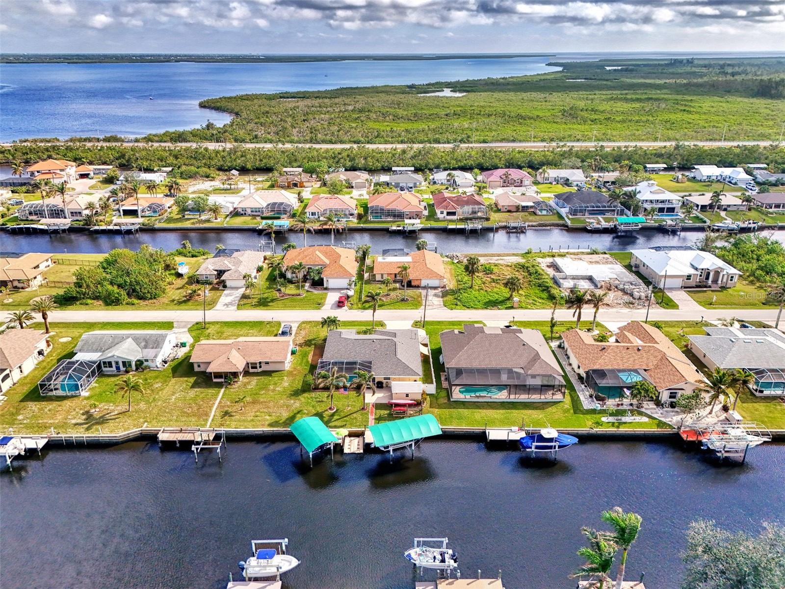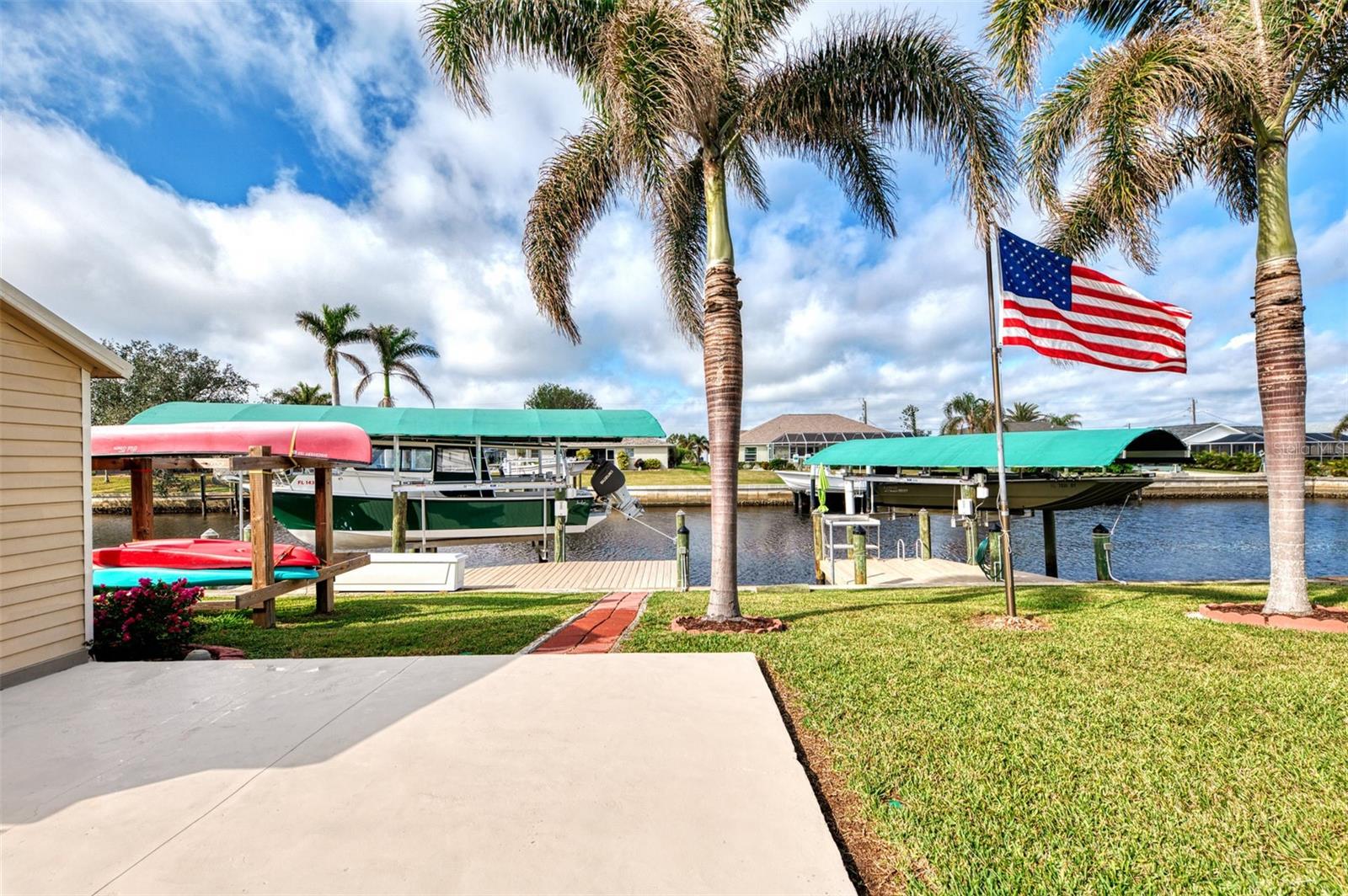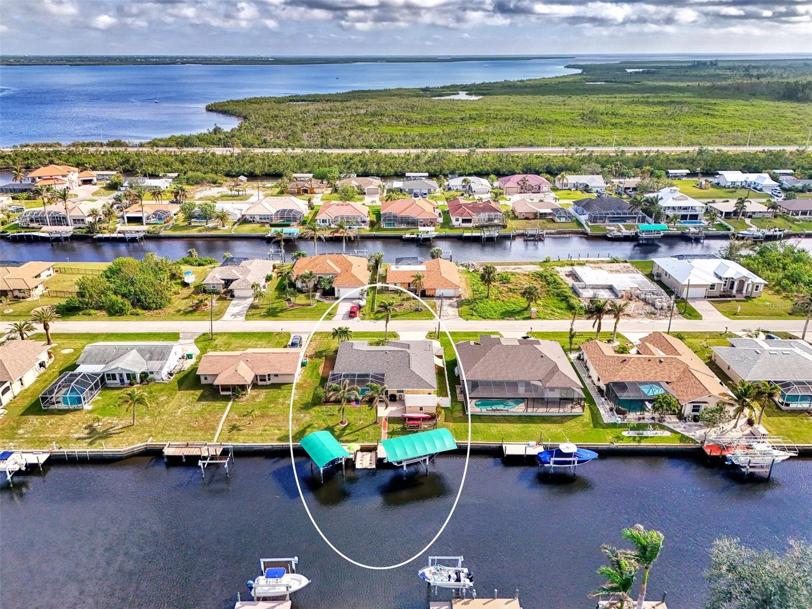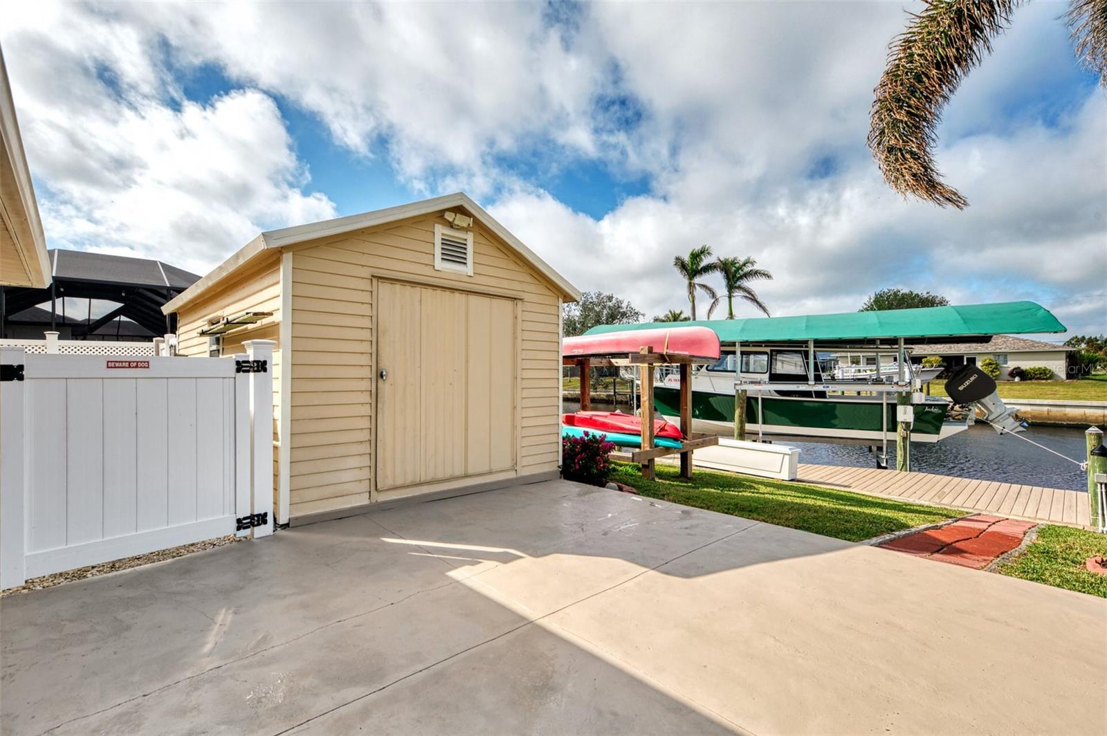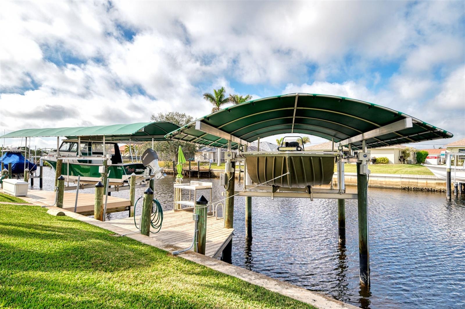 Welcome to 5231 Conner Terrace — a true boater’s paradise located in the quiet, desirable waterfront community of Gulf Cove. Just minutes from world-class fishing in the Myakka River, Charlotte Harbor, Boca Grande Pass, and the Gulf of Mexico, this impeccably maintained home offers the ultimate Florida lifestyle for water enthusiasts. Situated on a prime waterfront lot with 80 feet of concrete seawall, this 3-bedroom, 2-bath residence is packed with exceptional features. The property includes two expansive boat docks — the first with a 10’ x 30’ platform, 13’ x 35’ cover, a 12,000-pound boat lift, electric, water, remote control, and an 8-foot deck box for storage. The second dock measures 10’ x 16’ with a 13’ x 25’ cover, 6,000-pound lift, water, electric, and remote control. A double floating jet ski dock adds even more functionality, and a stainless steel/teflon fish cleaning station with running water and umbrella mount makes post-fishing cleanup comfortable and convenient. For paddle craft lovers, a pressure-treated storage rack holds kayaks, canoes, or jon boats for easy access to the water. Inside, you’ll find a thoughtfully updated interior featuring laminate and tile flooring throughout. The gourmet kitchen is ideal for entertaining, complete with granite countertops, solid wood cabinetry, a built-in wine cooler, and a bar sink. The home also includes a 10’ x 16’ utility shed with electricity, a concrete boat/trailer pad located in front of the garage, and a storm-rated tie-down system with four anchor points to secure your vessel during severe weather. Enjoy outdoor living year-round with a heated pool and spa enclosed in a spacious lanai. The pool cage and screens were replaced and repaired in December 2022. A dedicated dog run adds convenience for pet owners. Built with durability and safety in mind, the home features impact-resistant windows and a hurricane-rated garage door with remote control. Best of all, this property has never experienced flooding even during Hurricanes Ian, Helene, or Milton. With its unbeatable combination of location, features, and lifestyle, 5231 Conner Terrace is a rare opportunity to own a true waterfront gem. Schedule your private showing today!
