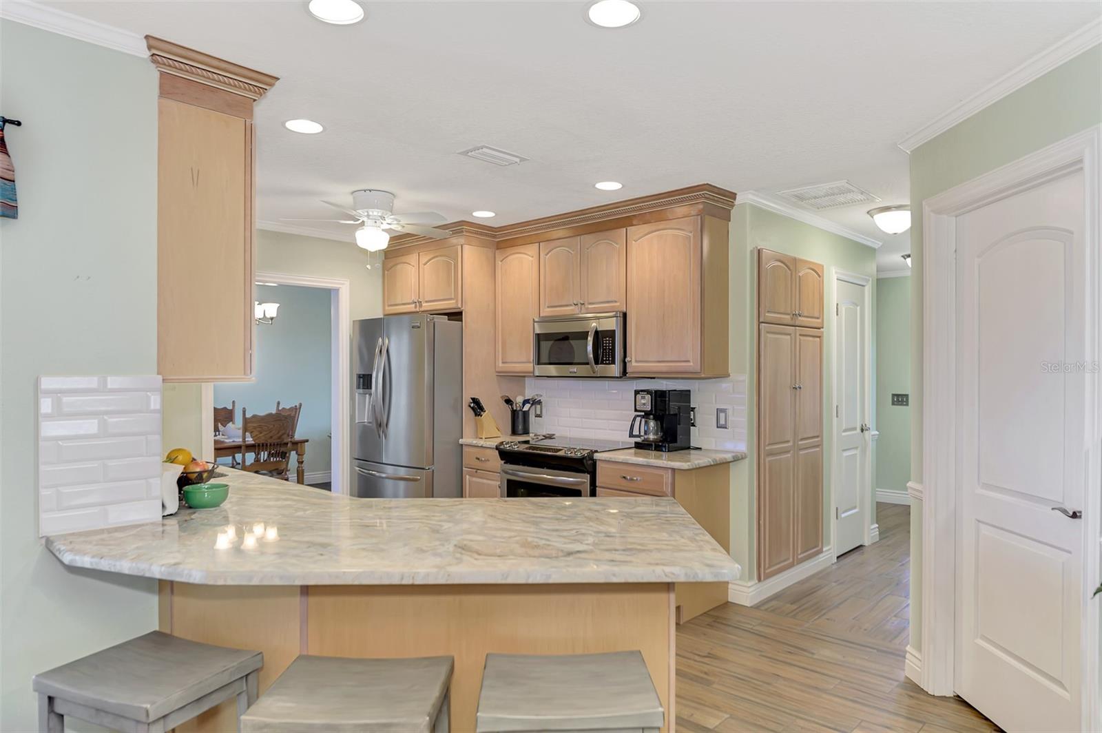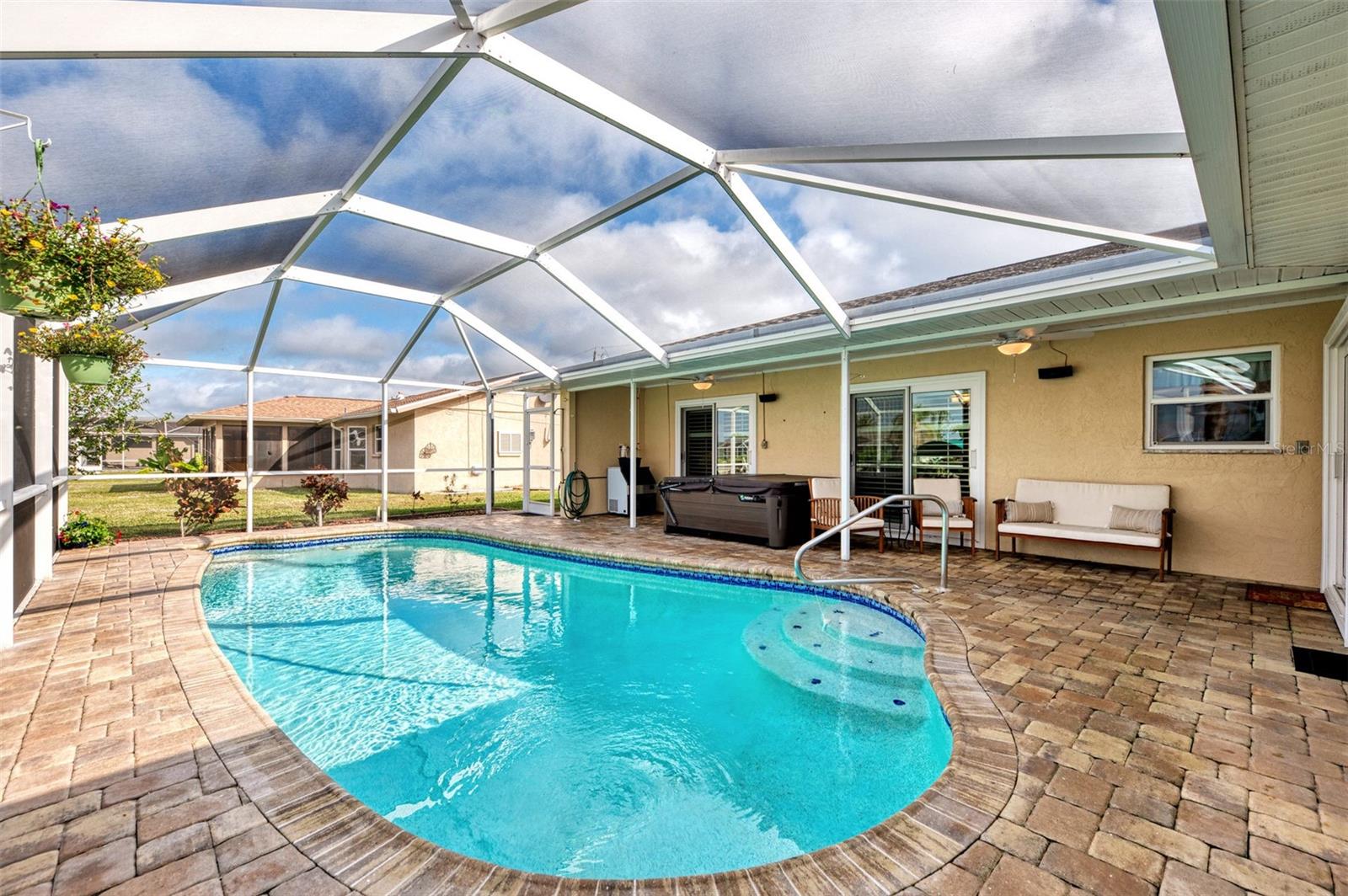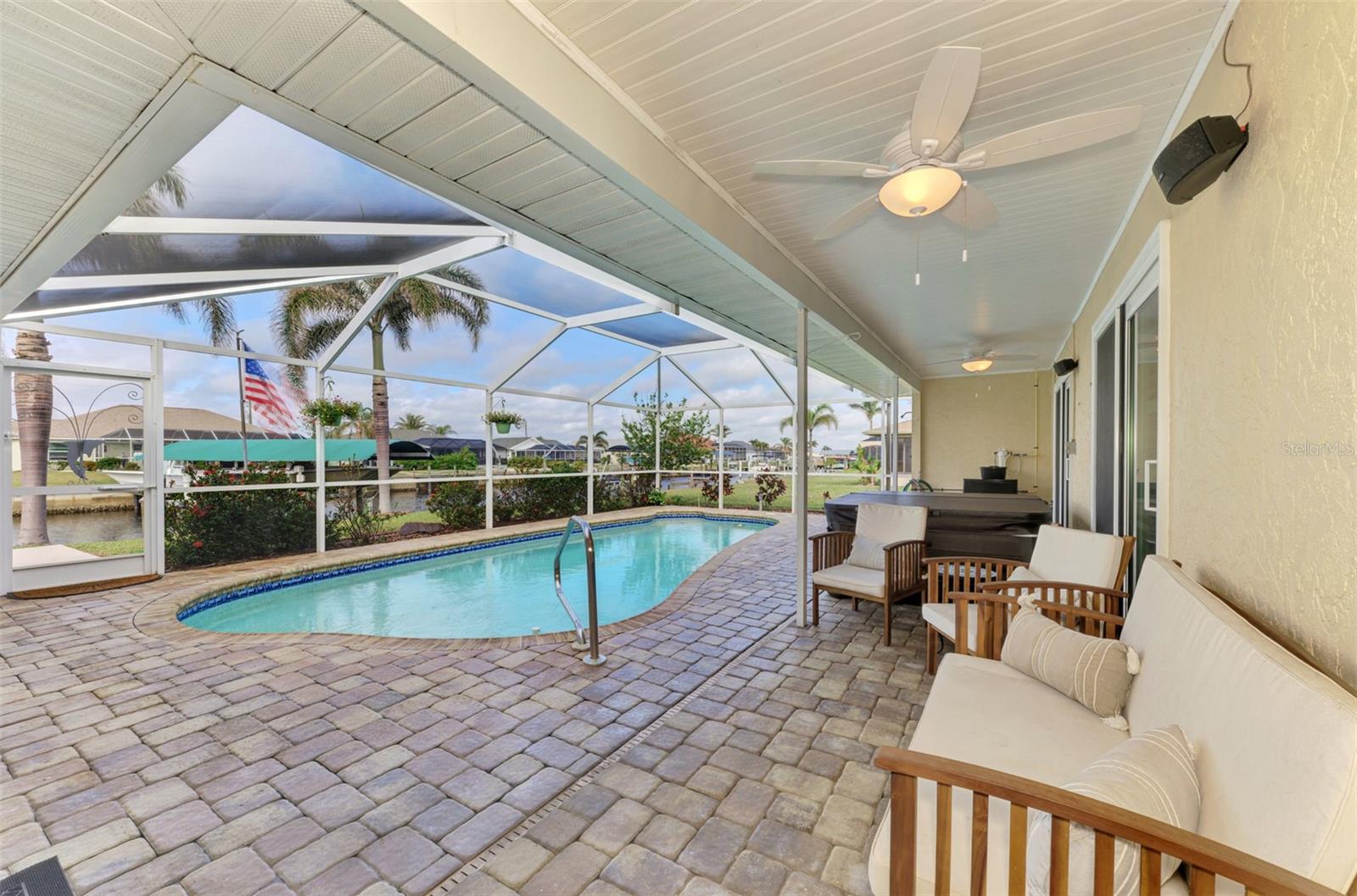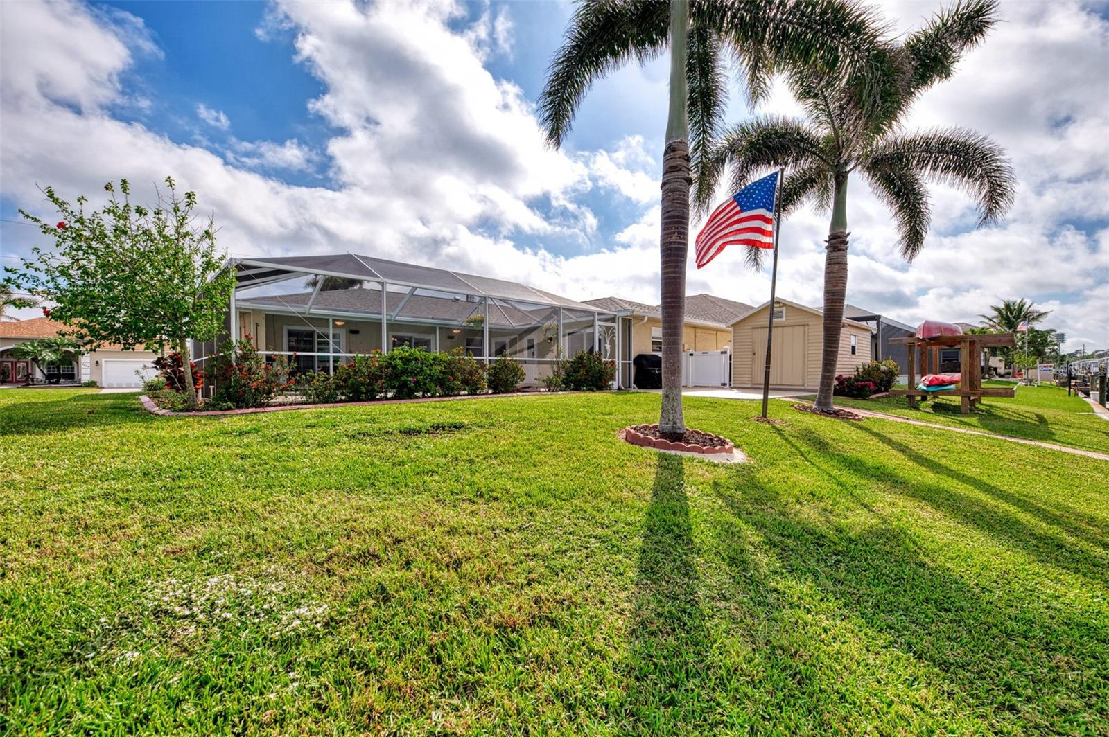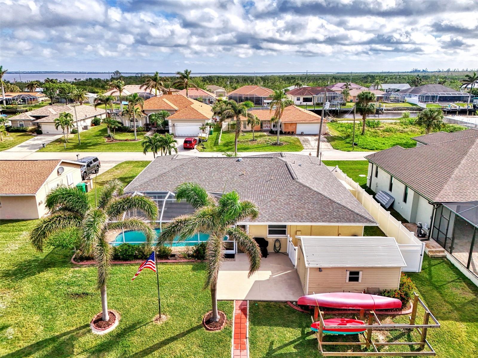Welcome to 5231 Conner Terrace — a true boater’s paradise located in the quiet, desirable waterfront community of Gulf Cove. Just minutes from world-class fishing in the Myakka River, Charlotte Harbor, Boca Grande Pass, and the Gulf of Mexico, this impeccably maintained home offers the ultimate Florida lifestyle for water enthusiasts. Situated on a prime waterfront lot with 80 feet of concrete seawall, this 3-bedroom, 2-bath residence is packed with exceptional features. The property includes two expansive boat docks — the first with a 10’ x 30’ platform, 13’ x 35’ cover, a 12,000-pound boat lift, electric, water, remote control, and an 8-foot deck box for storage. The second dock measures 10’ x 16’ with a 13’ x 25’ cover, 6,000-pound lift, water, electric, and remote control. A double floating jet ski dock adds even more functionality, and a stainless steel/teflon fish cleaning station with running water and umbrella mount makes post-fishing cleanup comfortable and convenient. For paddle craft lovers, a pressure-treated storage rack holds kayaks, canoes, or jon boats for easy access to the water. Inside, you’ll find a thoughtfully updated interior featuring laminate and tile flooring throughout. The gourmet kitchen is ideal for entertaining, complete with granite countertops, solid wood cabinetry, a built-in wine cooler, and a bar sink. The home also includes a 10’ x 16’ utility shed with electricity, a concrete boat/trailer pad located in front of the garage, and a storm-rated tie-down system with four anchor points to secure your vessel during severe weather. Enjoy outdoor living year-round with a heated pool and spa enclosed in a spacious lanai. The pool cage and screens were replaced and repaired in December 2022. A dedicated dog run adds convenience for pet owners. Built with durability and safety in mind, the home features impact-resistant windows and a hurricane-rated garage door with remote control. Best of all, this property has never experienced flooding even during Hurricanes Ian, Helene, or Milton. With its unbeatable combination of location, features, and lifestyle, 5231 Conner Terrace is a rare opportunity to own a true waterfront gem. Schedule your private showing today!