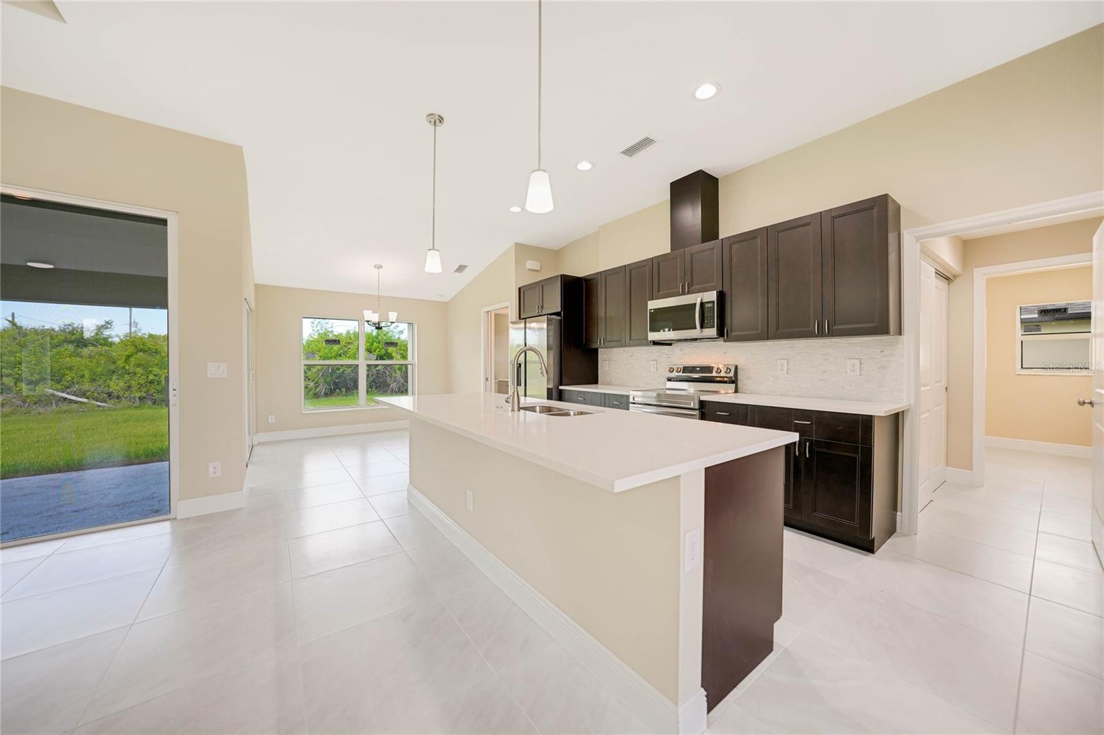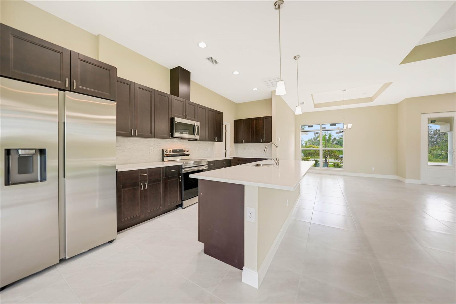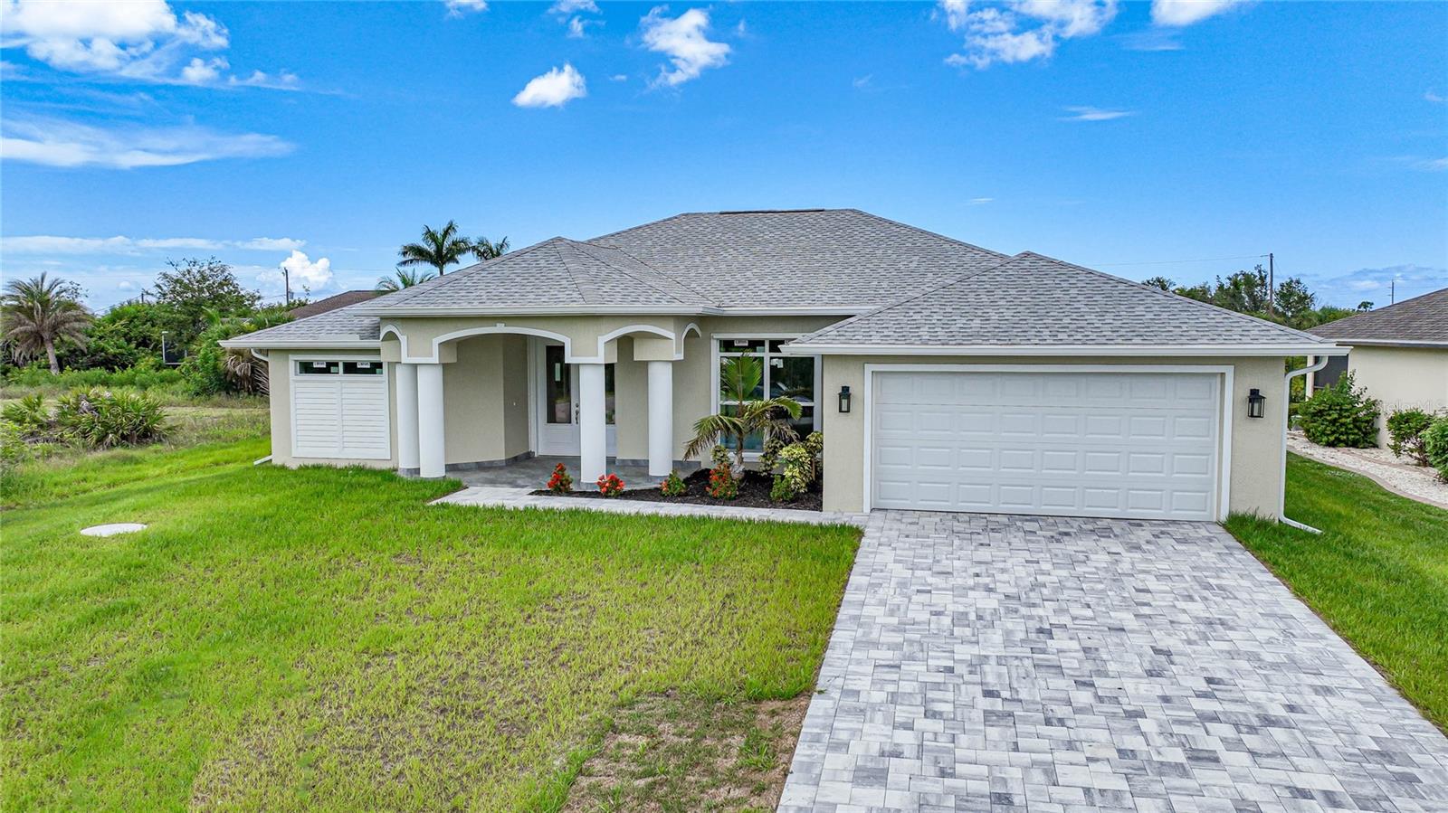 Discover the epitome of modern luxury in this brand-new 3-bedroom, 2-bathroom pool home, complete with a 2-car garage. Thoughtfully designed for both style and functionality, this home is a contemporary masterpiece. From the moment you step through the impressive double-door entry into the raised foyer, you’ll be greeted by an atmosphere of elegance and sophistication. The chef-inspired kitchen is a showstopper, featuring quartz countertops, stainless steel appliances, a chic tile backsplash, and pendant lighting that adds a touch of refinement. This culinary haven flows effortlessly into the expansive great room and dining area, where 10-foot ceilings and an 11-foot tray ceiling create a sense of grandeur, making the space perfect for entertaining or everyday living. The luxurious master suite is a serene retreat, complete with sliding glass doors that open to the covered lanai. Dual closets offer generous storage, while a tray ceiling adds a touch of elegance. The en-suite bathroom is a spa-like oasis, featuring a dual-sink vanity and a walk-through shower illuminated by a transom window that fills the space with natural light. With sleek tile flooring throughout, the home boasts a seamless and polished aesthetic. The thoughtful split floor plan ensures privacy, and the guest bathroom conveniently opens to the lanai, making it ideal for hosting and outdoor living. Located in South Gulf Cove, one of Southwest Florida’s most desirable waterfront communities, this home offers the perfect blend of luxury and leisure. Just 7 miles from the pristine beaches of Boca Grande, you’ll also find yourself surrounded by over five top-rated golf courses, catering to golf enthusiasts of all levels. Don’t miss this opportunity to own a residence where modern elegance meets coastal charm. Schedule your private tour today!
