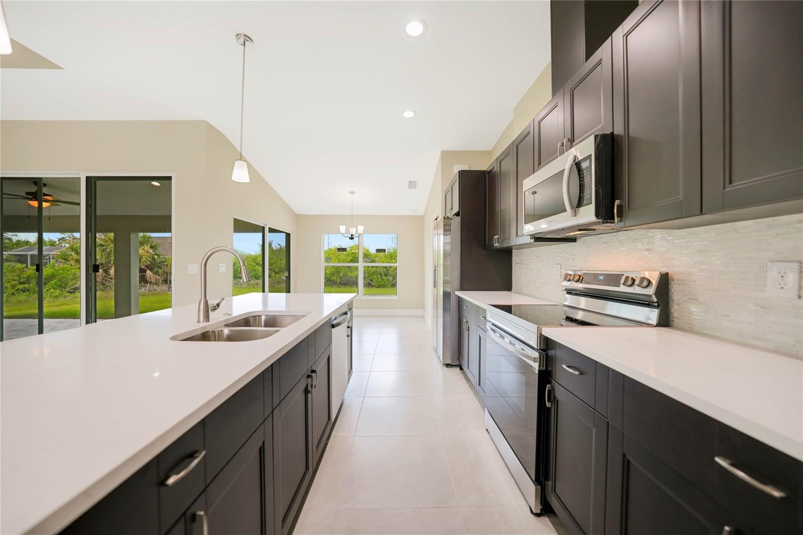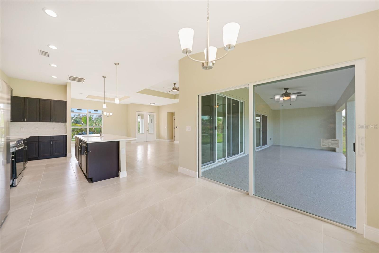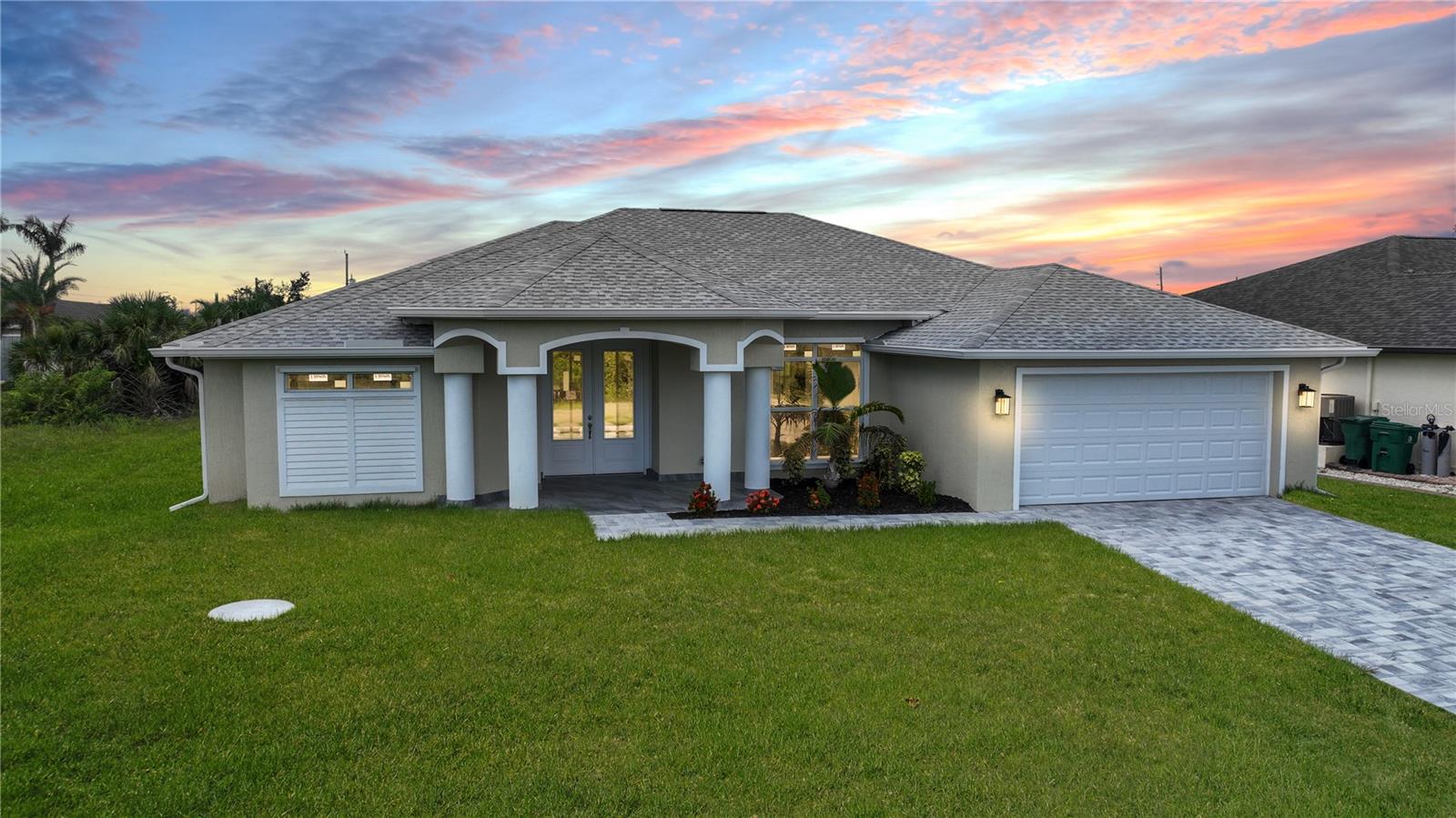 Discover the epitome of modern luxury in this brand-new 3-bedroom, 2-bathroom pool home, complete with a 2-car garage. Thoughtfully designed for both style and functionality, this home is a contemporary masterpiece. From the moment you step through the impressive double-door entry into the raised foyer, you’ll be greeted by an atmosphere of elegance and sophistication. The chef-inspired kitchen is a showstopper, featuring quartz countertops, stainless steel appliances, a chic tile backsplash, and pendant lighting that adds a touch of refinement. This culinary haven flows effortlessly into the expansive great room and dining area, where 10-foot ceilings and an 11-foot tray ceiling create a sense of grandeur, making the space perfect for entertaining or everyday living. The luxurious master suite is a serene retreat, complete with sliding glass doors that open to the covered lanai. Dual closets offer generous storage, while a tray ceiling adds a touch of elegance. The en-suite bathroom is a spa-like oasis, featuring a dual-sink vanity and a walk-through shower illuminated by a transom window that fills the space with natural light. With sleek tile flooring throughout, the home boasts a seamless and polished aesthetic. The thoughtful split floor plan ensures privacy, and the guest bathroom conveniently opens to the lanai, making it ideal for hosting and outdoor living. Located in South Gulf Cove, one of Southwest Florida’s most desirable waterfront communities, this home offers the perfect blend of luxury and leisure. Just 7 miles from the pristine beaches of Boca Grande, you’ll also find yourself surrounded by over five top-rated golf courses, catering to golf enthusiasts of all levels. Don’t miss this opportunity to own a residence where modern elegance meets coastal charm. Schedule your private tour today!