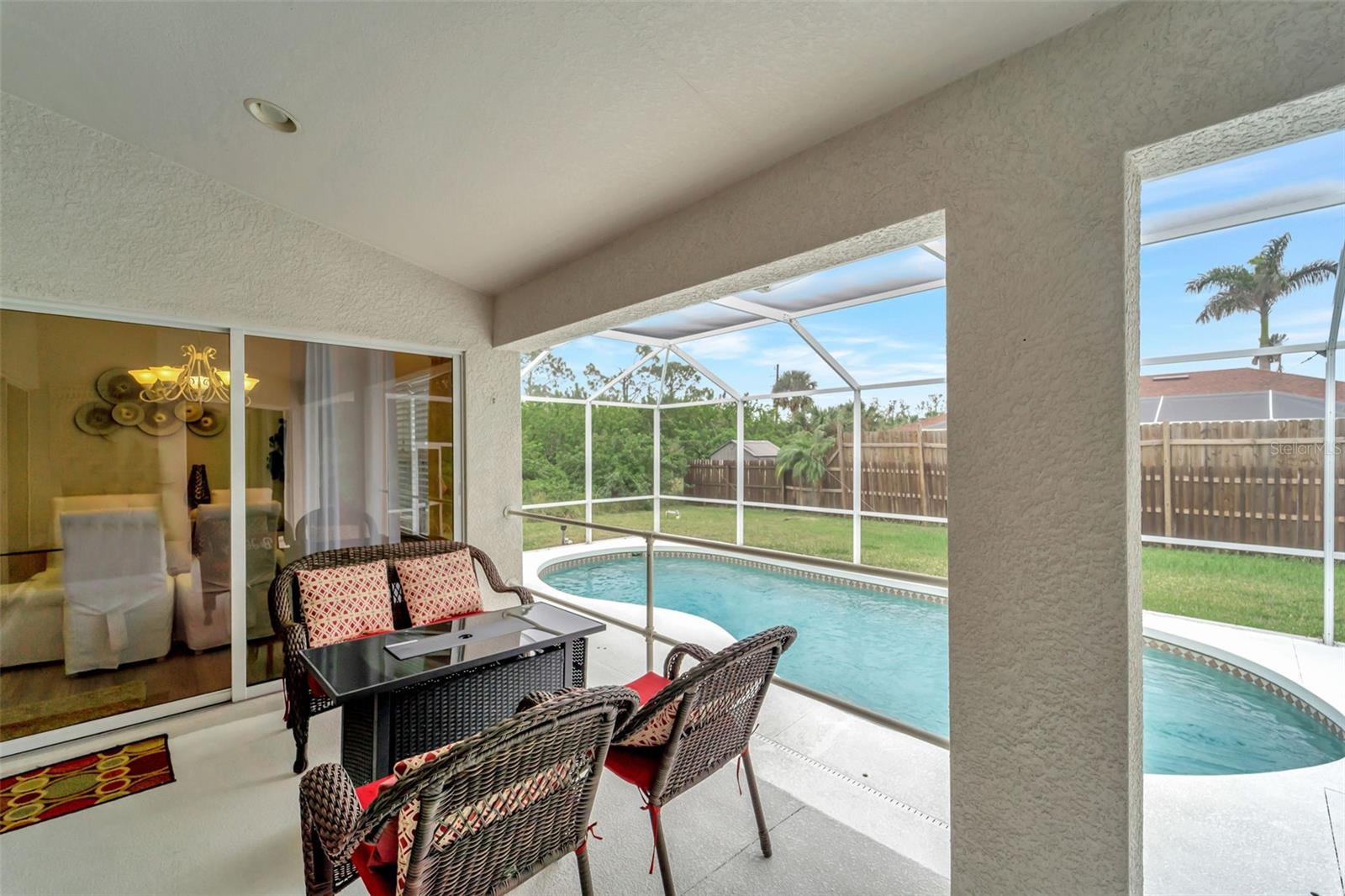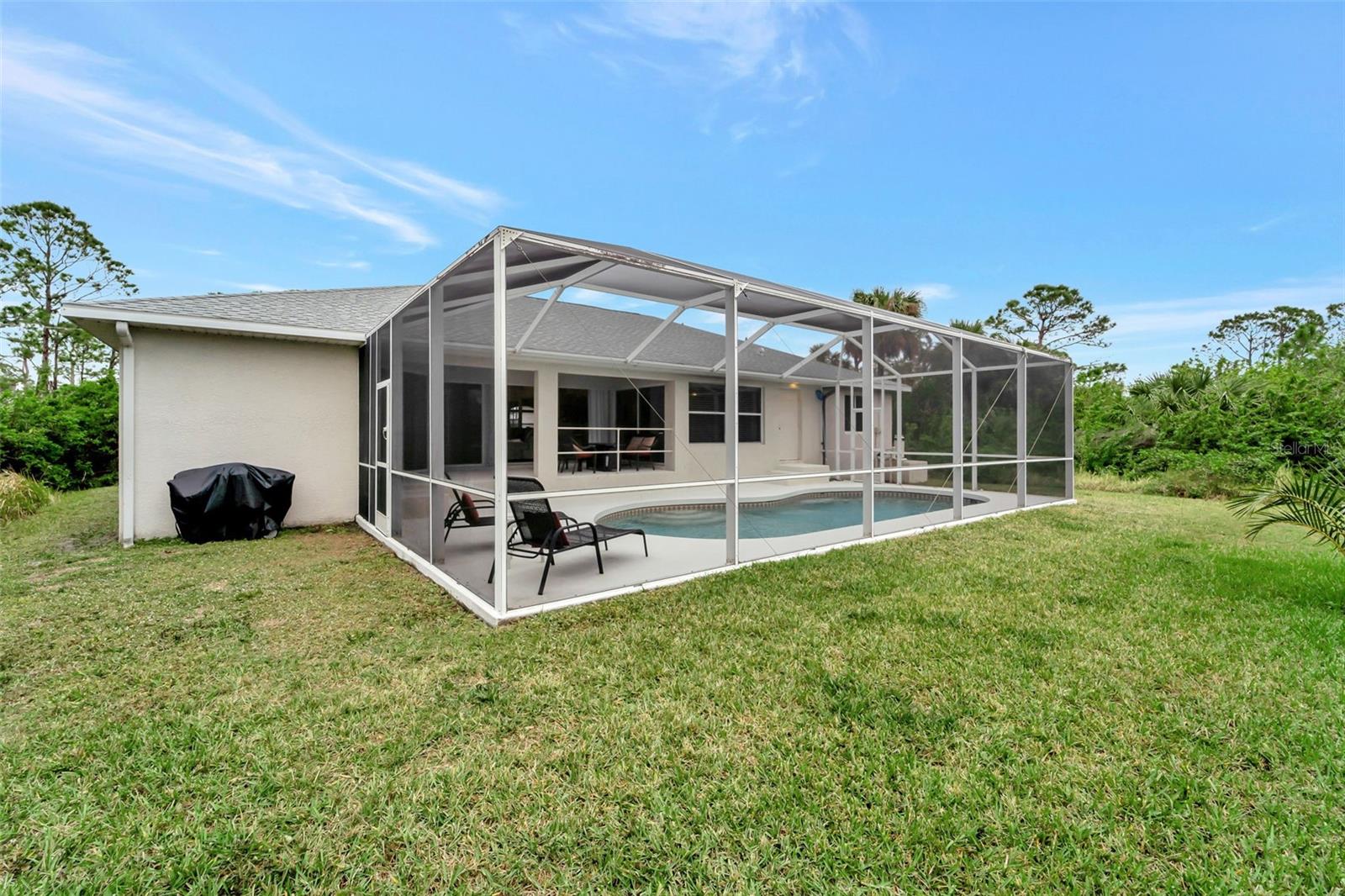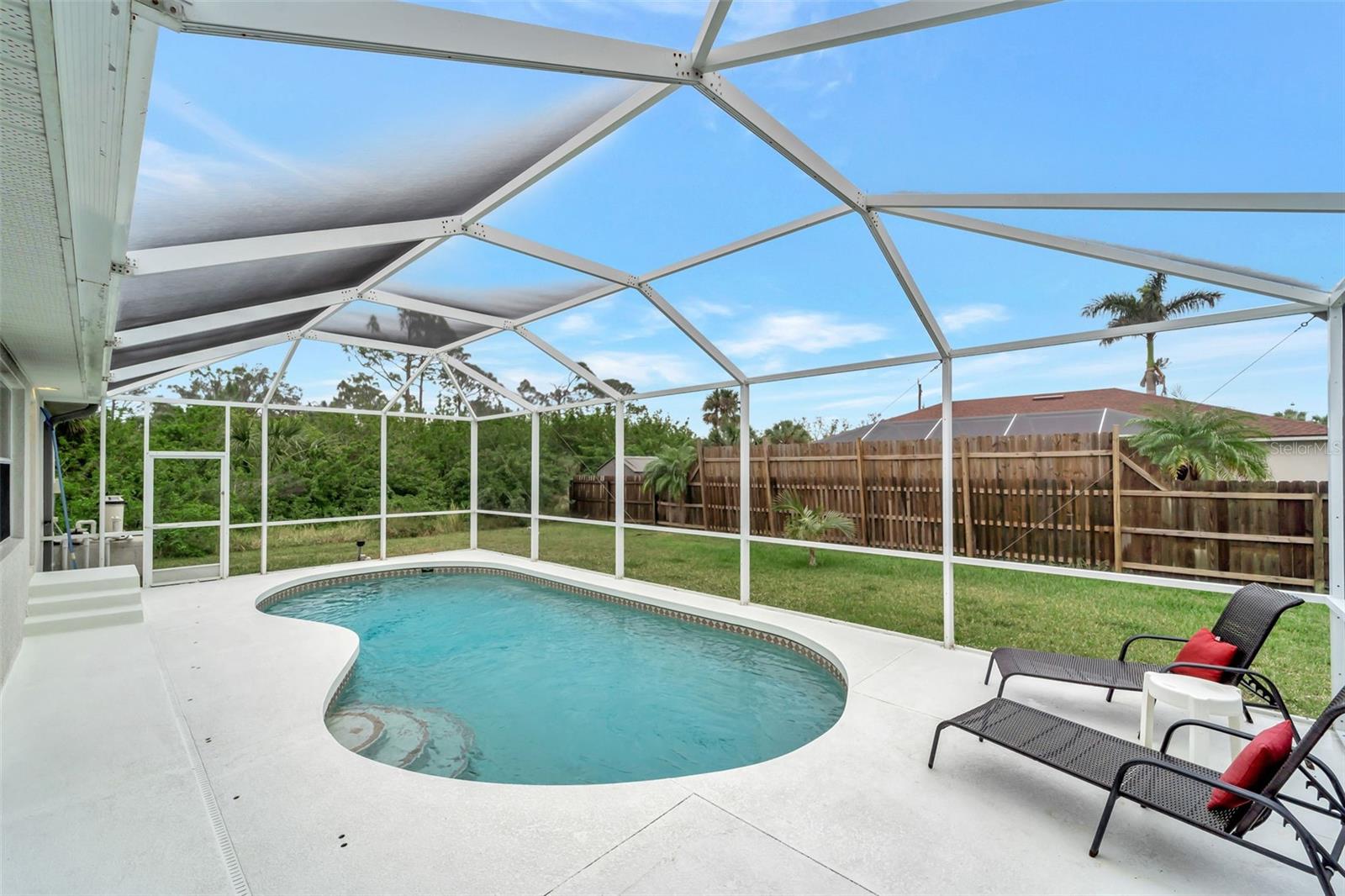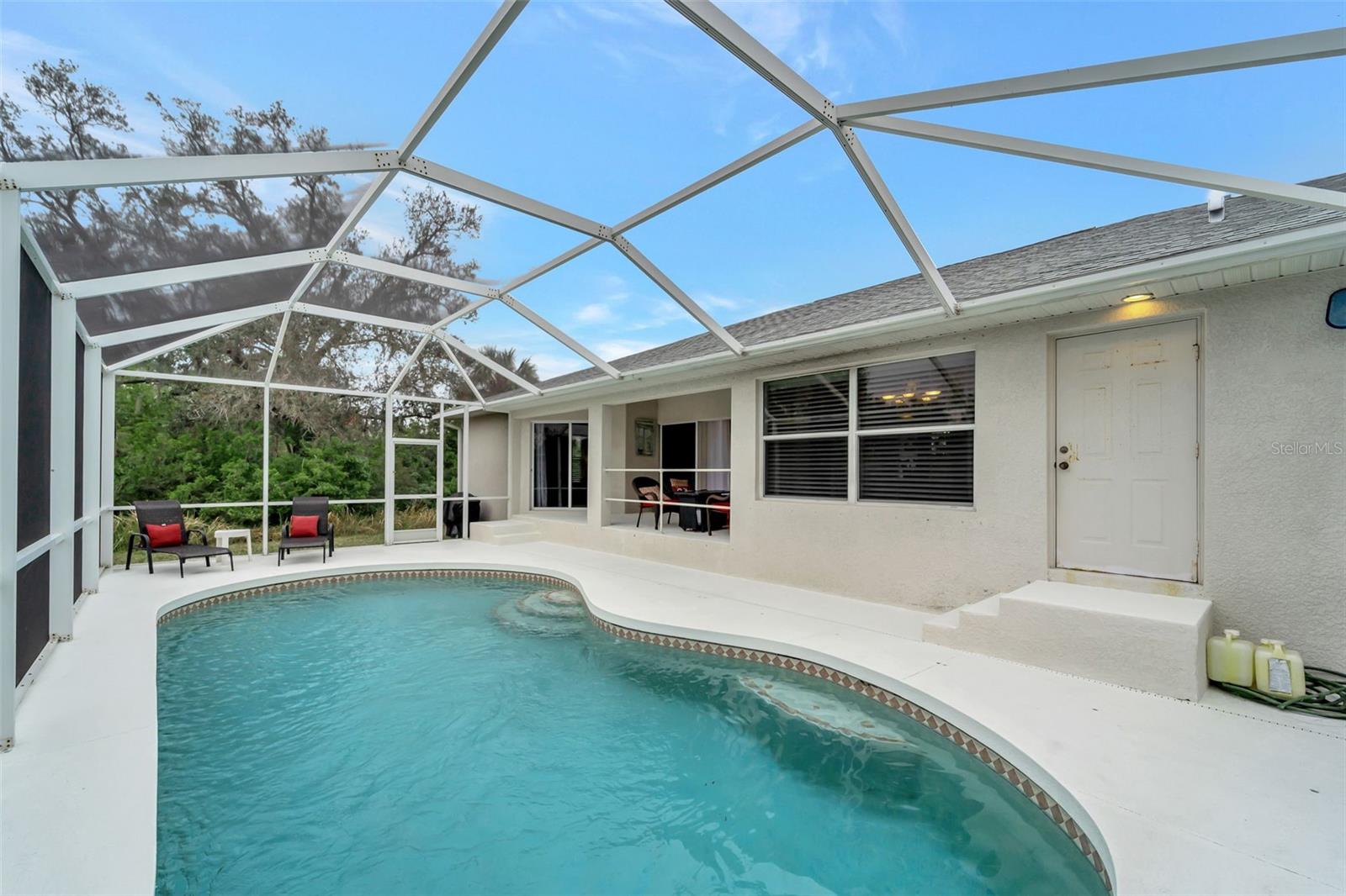 PRICE REDUCED! EVERYTHING YOU'VE BEEN LOOKING FOR!! Location, Property, Pride of Ownership, a POOL, NO HOA Fees, and so much more! This is a custom home with a double door entry inviting you in to over 2,000 Sq Ft of living space with 3 bedrooms, 2 Bathroom plus a Bonus Room that can be used as a den, formal dining room or family room. The open floor plan of this home makes for great entertainment. The kitchen offers an abundance of counter space, solid wood cabinets, and stainless-steel appliances. Retreat to the privacy of the MASTER SUITE with its TWO WALK-IN CLOSETS; THE LARGEST CLOSET IS approximately 8'x8'! (Almost Room Size!) and the other closet is approximately 5-1/2'X4-1/2'. LOTS of Closet Space! The En-Suite Bathroom has a large Double Sink vanity, Soaking Tub and Separate Walk-In Roman Shower. Each guest bedroom also has Walk-In Closets and they and share a guest bath with Single Vanity and Tub/Shower Combination. The massive, fence across the back of the property is ideal for those desiring privacy and space to truly enjoy the outdoors. For Saving on Homeowners insurance, the roof was replaced in 2022. Located less than a mile from Riverwood County Club, approximately 15/20 minutes to Charlotte Towne Center Mall, Sams Club, Numerous Restaurants, Golf Courses and 30+/- minutes to Boca Grande and Englewood Beaches. Say YES to joining our Southwest Florida Lifestyle!