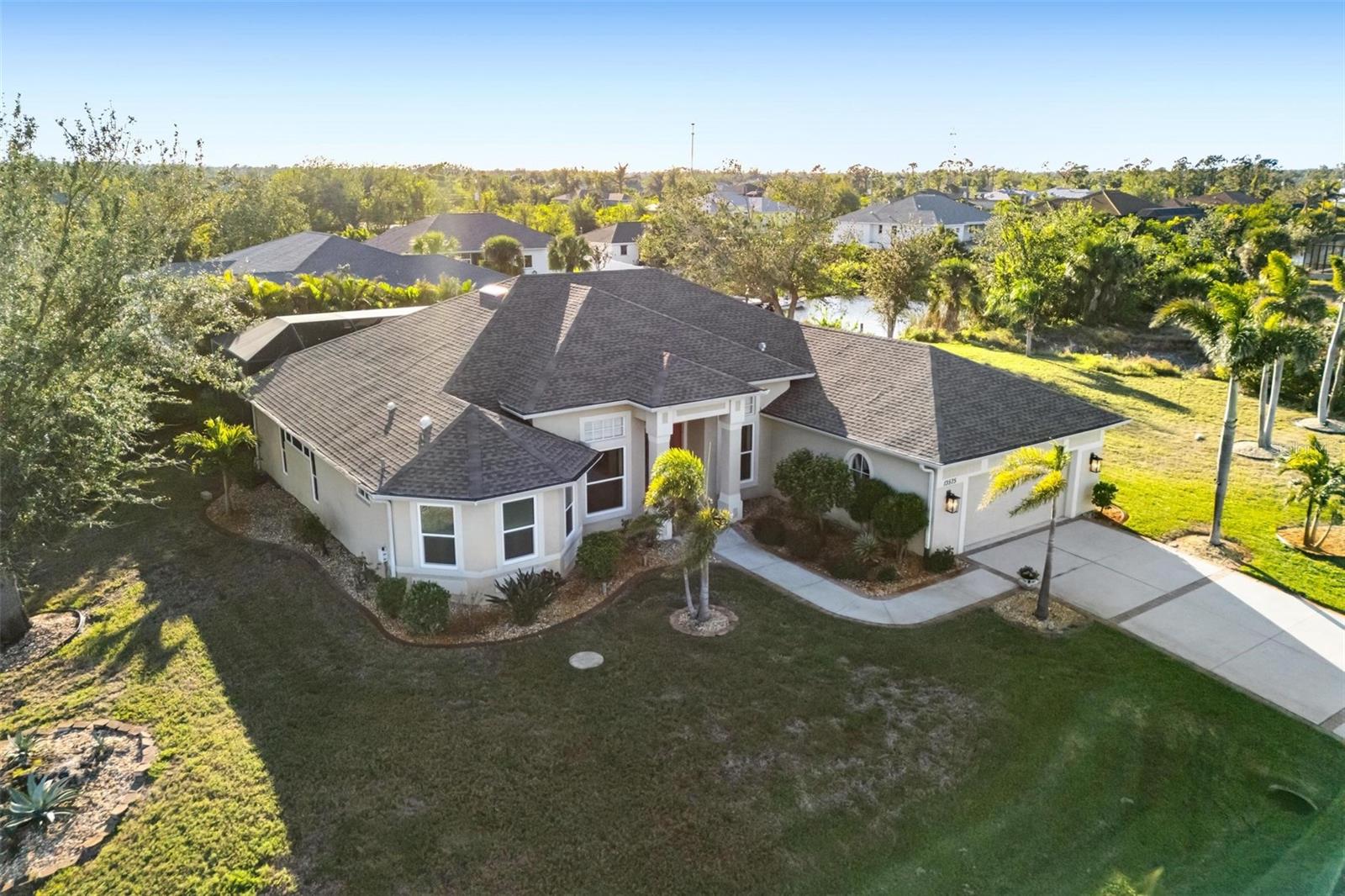 <p style="font-size:12px; ">Imagine coming home each day to this magnificent custom built, WATERFRONT access property situated on over 1/2 ACRE giving you space for your RV, Boat, or what ever your heart desires. This extraordinary 3-bedroom, 3-bathroom home with an OFFICE and heated saltwater POOL, located in South Gulf Cove. From the moment you step through the double door entrance, you'll be captivated by the myriad of upgraded details and elegant touches that grace every corner of this 2600+ home, from diamond set floor tiles, lighted trey ceilings, custom niches, and plantation shutters. </P><p style="font-size:12px; "> The heart of the home is the kitchen, complete with, pull-out drawers, Stainless Appliances, GRANITE countertops, and open access to the living room, family room, breakfast nook and formal dining room. A BREAKFEST BAR provides ample seating for casual meals and lively conversation. The living room is equally impressive, with a custom BUILT-IN wall unit and wrap-around cabinetry that seamlessly flows from the kitchen, creating a cohesive and visually stunning space.<p> <p style="font-size:12px; "> When it's time to retire for the evening, the split layout offers privacy, with the master suite nestled in its own separate wing. This retreat boasts a READING NOOK, spacious walk-in closets with custom shelving, and a SPA-LIKE bathroom featuring a massive soaking tub, roman shower, and dual vanities.</p> <p style="font-size:12px; "> Outside, the resort-style pool area beckons, accessible from the family room, living room, breakfast nook and master suite. SLIDING POCKET DOORS in family room blur the lines between indoor and outdoor living. The SALTWATER pool can be enjoyed year-round thanks to a heating system, while the expansive patio and wooded screen enclosure provide seclusion and tranquility. <p> <p style="font-size:12px; "> With approximately 50 feet of shoreline and a LARGE WOOD DOCK, this property offers unparalleled access to the waterways, allowing you to explore the Myakka River, Charlotte Harbor and the Gulf of Mexico with ease.<p> <p style="font-size:12px; "> Meticulously maintained and lovingly cared for, this home features a new ROOF, hurricane WINDOWS on most, freshly installed CARPET, new PAINT, and professionally cleaned and sealed tile and grout. <p><p style="font-size:12px; "> There is a WELL for the sprinkler systems, this keeps the lush landscape and lawn beautiful. EXTERIOR LIGHTING creates a stunning ambiance at night, further enhancing the property's already irresistible appeal. <p> <p style="font-size:12px; "> Located in the thriving community of South Gulf Cove, with its parks, activities, and boat ramps, this home is just minutes from the charming towns of Boca Grande, Englewood and Port Charlotte, and a short drive from the cultural meccas of Sarasota and Fort Myers. Don't miss your chance to make this slice of paradise your own and start living the Florida dream today.</p> <p style="font-size:12px; "> Furnishing is new and negotiable.