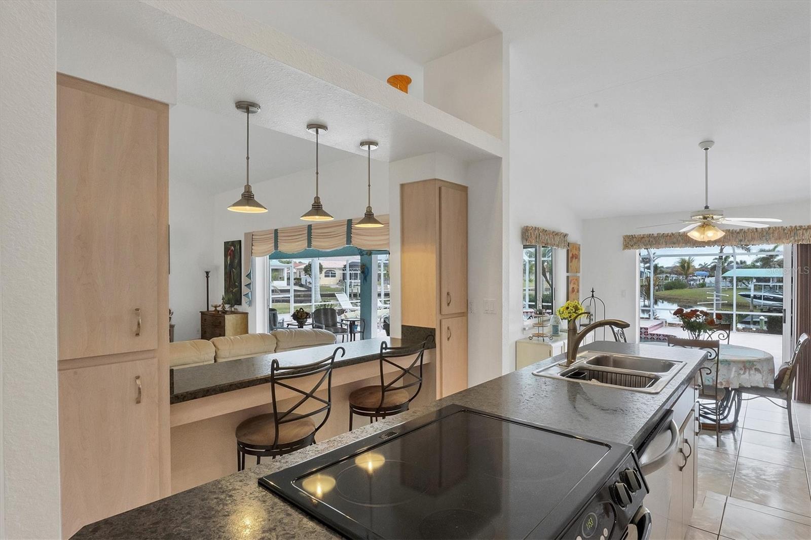 This charming waterfront home is situated on an incredible piece of property with quick access out and stunning Zephyr Waterway views. Enjoy Florida’s best boating lifestyle with an almost 100-foot dock, additional pilings, and a 10,000 lb boat lift with electric and water. Step inside through the screened double-door entry to find an inviting space with vaulted ceilings, expansive sliding glass doors, and a spacious layout that seamlessly blends indoor and outdoor living. The eat-in kitchen and formal dining area offer plenty of room for entertaining, while the large primary suite features direct pool access, a walk-in shower, and a Jacuzzi tub. The guest bedrooms are well-appointed and separated by a guest bath, plus there’s a renovated pool bathroom for added convenience. Outside, enjoy a sparkling pool and spa, a brand-new 2023 pool cage, and a 2024 pool heater, all overlooking the water. The 16,820 Square Foot lot offers intersecting waterway views, lush landscaping, and paver walkways leading down to the dock. Additional updates include a 2022 pool pump, 2022 garage door, and 2024 refrigerator. If you're looking for a well-loved home with character in a prime waterfront location, this is it!
