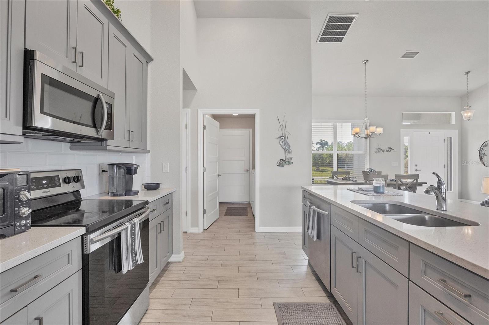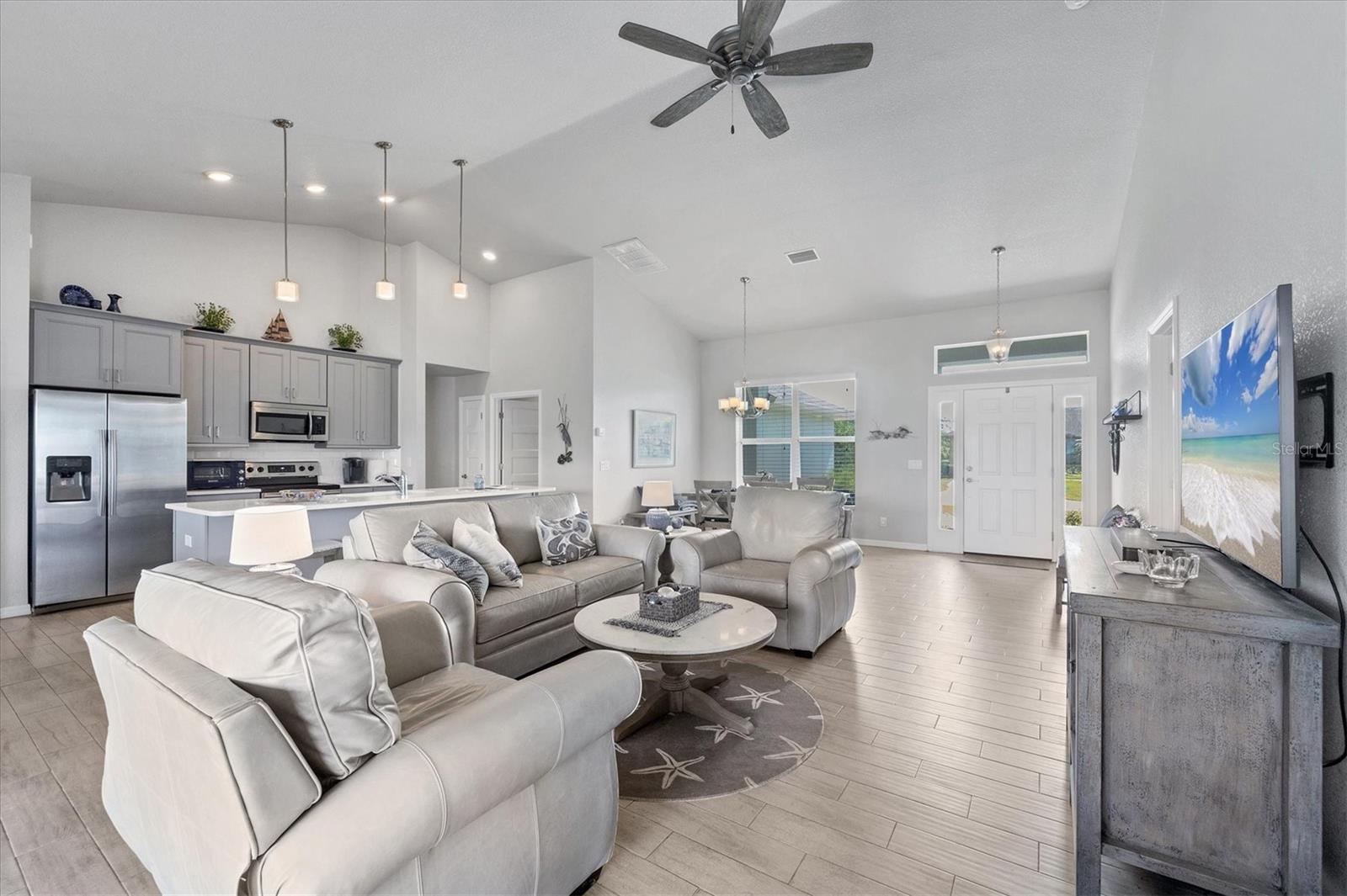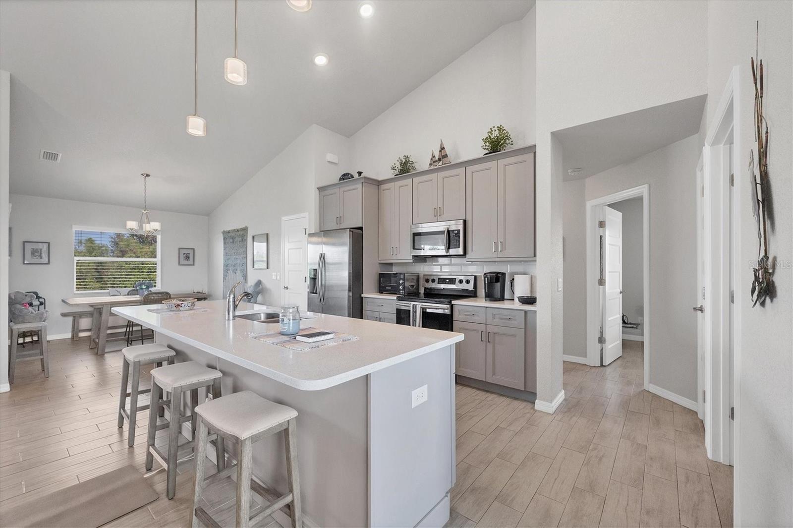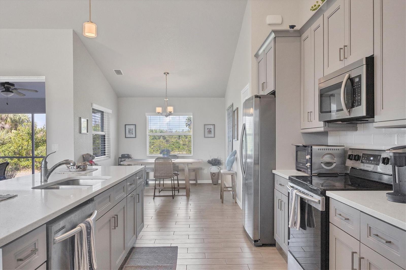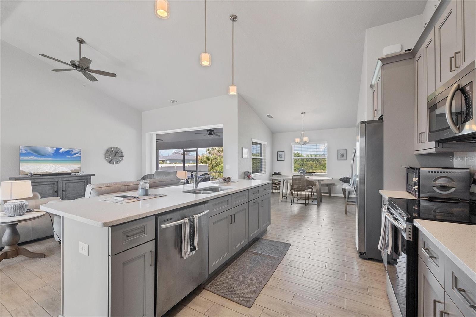 Absolutely Beautiful "TURN KEY" 3 Bedroom 2 Bath Home located in the Waterfront Boating Community of SOUTH GULF COVE. This Like NEW Home features a Split-OPEN FLOOR PLAN great for Family gatherings or Entertaining, Great Room has High Vaulted Ceilings, A Spacious Dining Area, Sliders from Great Room to 21 x 10 screened lanai, UPGRADED Tile Floors, Ceiling Fans, Nice Light Fixtures. Kitchen is tastefully appointed and boasts Beautiful Hard Wood Cabinetry, Quartz Counter tops, Island with Breakfast Bar and Breakfast Nook, Stainless Steel appliances to include Refrigerator, Dishwasher, Microwave and Range, Primary Suite and Bath feature a Walk in Closet, Tray Ceiling, Dual Vanity Sinks, Tub and nicely tiled Shower. Two Guest Bedrooms and Guest Bath with Tub and Shower, All Bedrooms are spacious, Big Laundry Room with Washer/Dryer, Utility sink and shelving. Relax and Enjoy all that nature has on your Extended Covered Front Porch or Screened Lanai. This Home is Nicely Landscaped and Plenty of Room to add a POOL. The perfect Seasonal or Investment Home!!! Community of SOUTH GULF COVE offers a Boat Ramp, Several Parks, and Marinas with several Golf Courses, World Class Fishing, Great Restaurants and Shopping only minutes away. SOUTH GULF COVE is only 15-25 minutes to Beautiful Southwest Florida Beaches in Boca Grande and Manasota Key. Boating access to the Gulf of Mexico and surrounding islands. This exceptional Home is well maintained and A MUST SEE !!! EXPERIENCE THE FLORIDA LIFESTYLE !!!