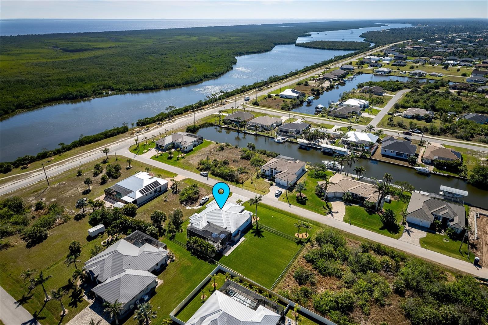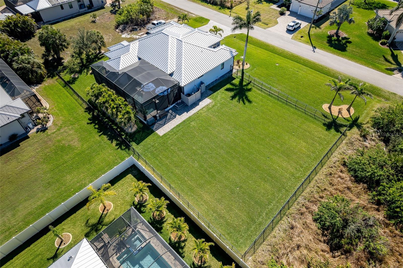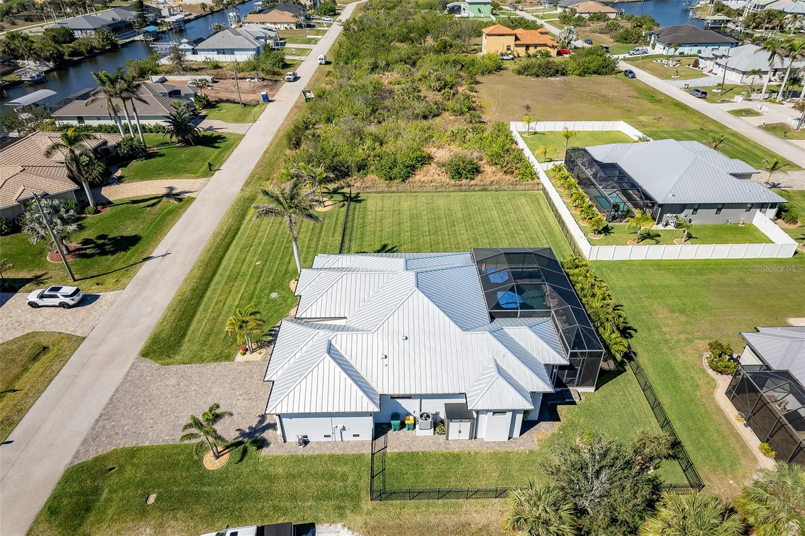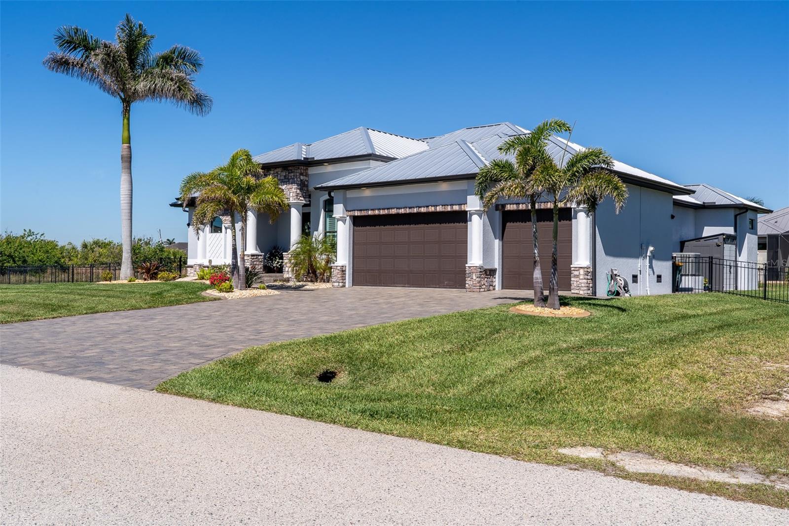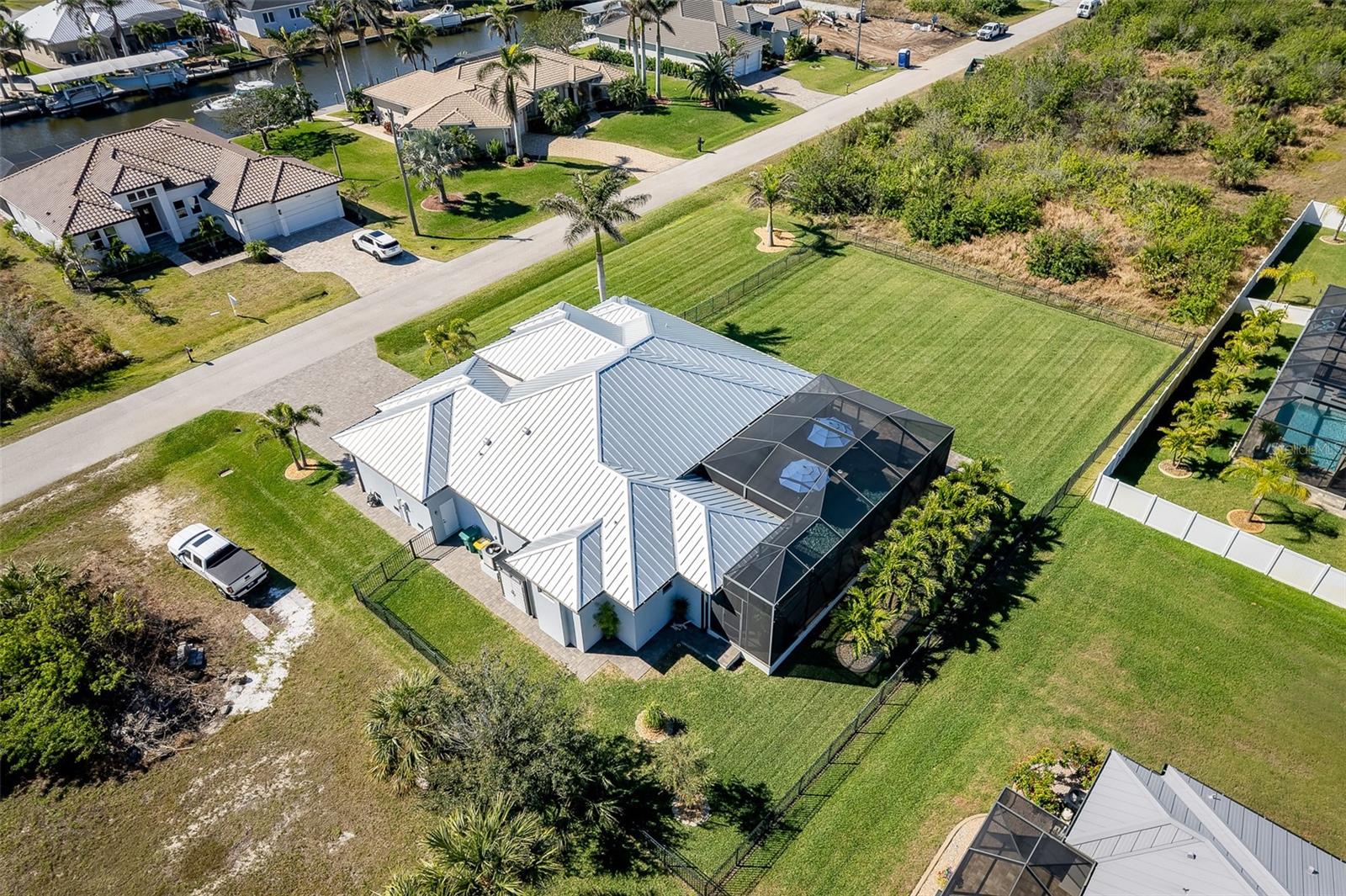 Welcome to this EXQUISITE CUSTOM home, a true masterpiece of DESIGN and LUXURY! Nestled in the prestigious South Gulf Cove community just a short distance from Boca Grande, this nearly half-acre estate offers the perfect blend of sophistication and security. This upgraded home boasts over 3500 square feet of meticulously crafted indoor and outdoor living spaces, and features a NEW 2023 Standing Seam Metal Roof, High Impact Windows Doors and Sliders, Cypress Wood Lanai Ceilings and wrought-iron fenced backyard. From the moment you arrive, you'll appreciate the superior presentation and character of the property. As you enter the double front doors, you'll notice Coffered Ceilings, 10' ZERO CORNER Sliders, Crown moulding and extensive woodwork, 8' Interior Doors and Porcelain tile flooring throughout. The Home Office with french doors offers executive workspace and privacy. At the heart of the home is the GOURMET kitchen with GRANDE CENTER ISLAND built with full depth cabinetry on BOTH sides to gain maximum storage and functionality, and the modern farmhouse-style sink and sleek hardware perfectly complement the space. The 42" Upper Cabinets with dove-tail and soft-close elements are topped with another row of cabinets for additional storage. Equipped with a Black Stainless Refrigerator, Built-In Wall Oven and Convection Microwave, Dishwasher (new '24) and Induction Cooktop, this kitchen is built for both everyday living and entertaining. Deluxe Cambria Quartz countertops and glass tile backsplash set the tone for the exceptional beauty throughout the home, while over and under-cabinet lighting adds a touch of ambiance. The Great Room is designed for effortless entertaining, featuring a cozy fireplace, wall mount TV and Shiplap surround that exudes elegance and charm. Coffered ceilings elevate the room’s sophistication, while 10-foot tall sliding doors create a seamless flow between the indoor and outdoor spaces. Step outside where you’ll see the Cypress Wood Ceiling design, a visually striking feature and conversation piece. The commercial-grade OUDOOR KITCHEN features a stainless steel backsplash, vent hood, built-in fridge, and wall mount TV. You'll also appreciate the convenience of Kevlar Electric Roll Down Hurricane protection on the Lanai which allows you to leave outdoor furnishings in place. The Primary Bedroom has Sliders and a Transom window, Tray Ceiling with Fan and elegant En Suite with separate Vanities, a free-standing Tub, Roman walk-through Shower, Ambient Lighting and separate Water Closet. The Large Walk-In Closet is outfitted with California-style Built-Ins and flows straight to the Laundry Room for your convenience. Two Guest Rooms with finished Walk-In closets and ceiling fans share a Bath with Tiled Shower, Linen Closet, and Pool Access. The backyard OASIS features a crystal blue HEATED swimming pool with two cascading waterfall Feature Bowls, Sun shelf and Lighting for a mood-enhancing atmosphere. The paver deck and outdoor patio provide lovely spaces for relaxation and entertainment, while the screen enclosure ensures comfort year-round. Your 3 CAR GARAGE offers insulated 8' doors, overhead storage, epoxy floor, metal storage cabinets, service door and exterior storage cabinets. The resort-like landscaping and lighting distinguish this property as a SHOWSTOPPER! Don’t miss your chance to make this UNIQUE property yours!