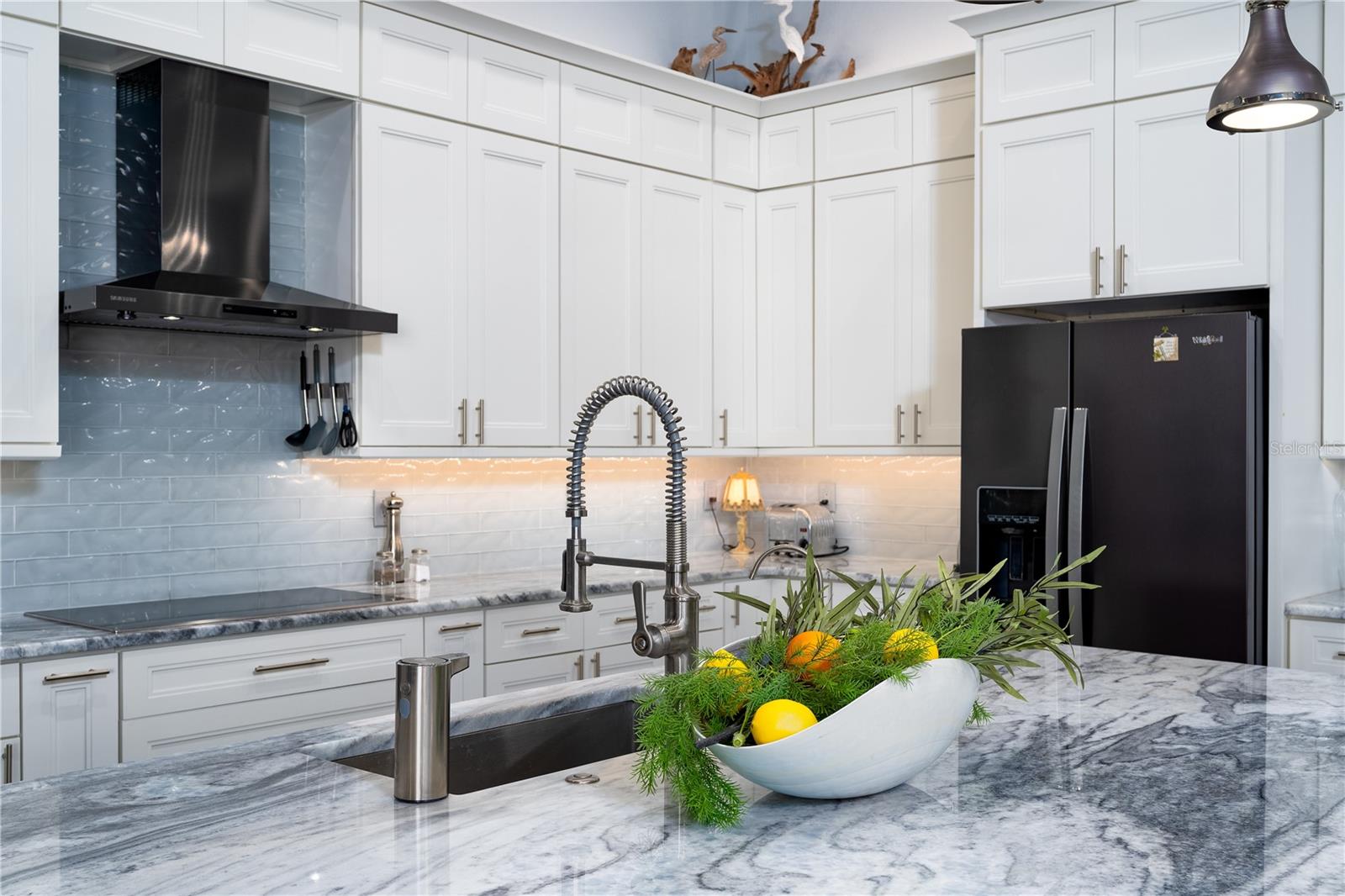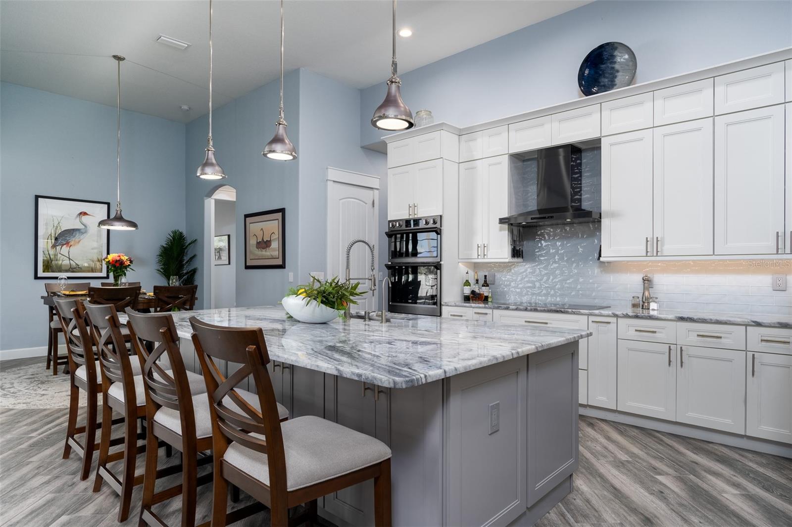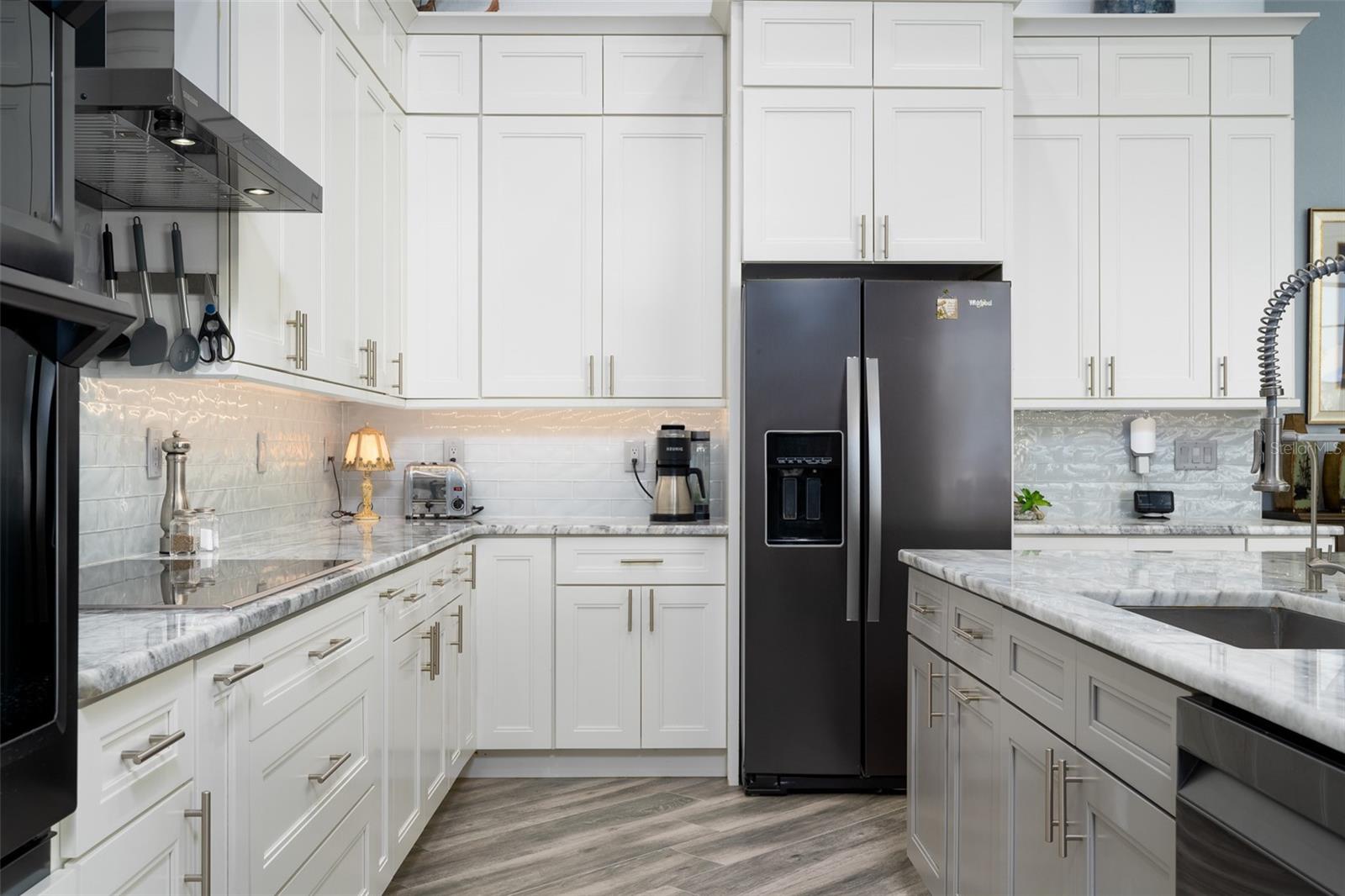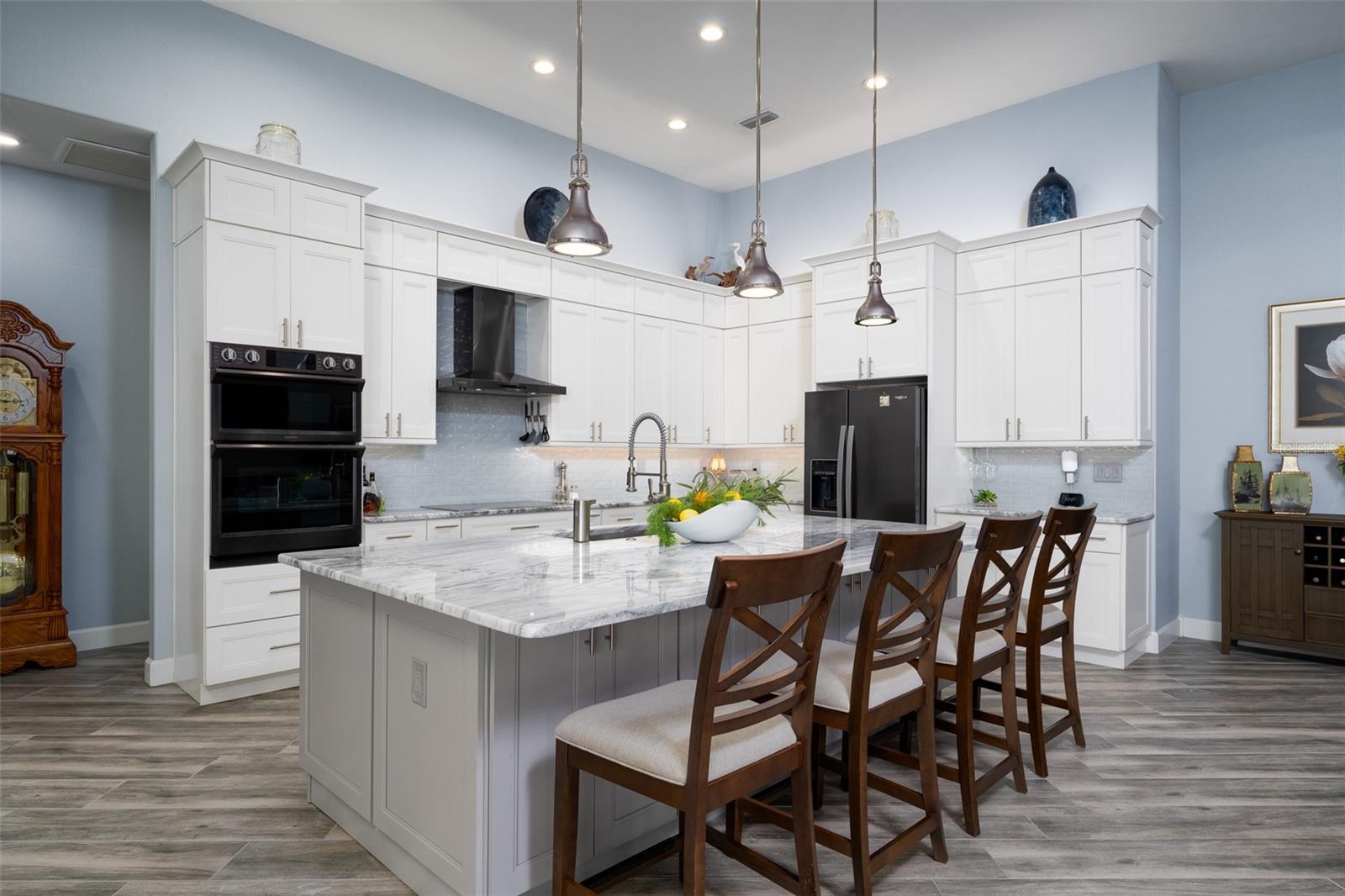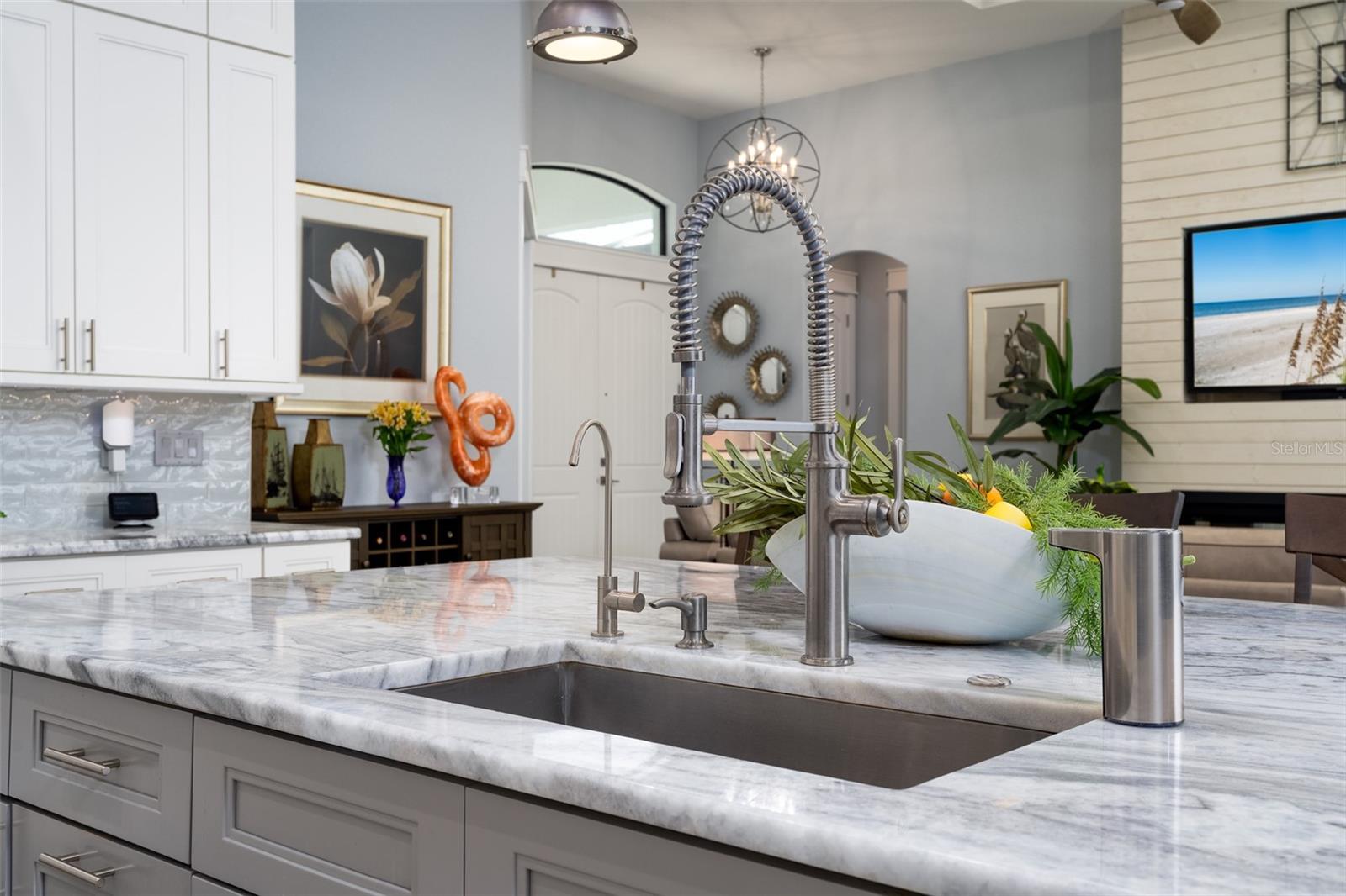 Welcome to this EXQUISITE CUSTOM home, a true masterpiece of DESIGN and LUXURY! Nestled in the prestigious South Gulf Cove community just a short distance from Boca Grande, this nearly half-acre estate offers the perfect blend of sophistication and security. This upgraded home boasts over 3500 square feet of meticulously crafted indoor and outdoor living spaces, and features a NEW 2023 Standing Seam Metal Roof, High Impact Windows Doors and Sliders, Cypress Wood Lanai Ceilings and wrought-iron fenced backyard. From the moment you arrive, you'll appreciate the superior presentation and character of the property. As you enter the double front doors, you'll notice Coffered Ceilings, 10' ZERO CORNER Sliders, Crown moulding and extensive woodwork, 8' Interior Doors and Porcelain tile flooring throughout. The Home Office with french doors offers executive workspace and privacy. At the heart of the home is the GOURMET kitchen with GRANDE CENTER ISLAND built with full depth cabinetry on BOTH sides to gain maximum storage and functionality, and the modern farmhouse-style sink and sleek hardware perfectly complement the space. The 42" Upper Cabinets with dove-tail and soft-close elements are topped with another row of cabinets for additional storage. Equipped with a Black Stainless Refrigerator, Built-In Wall Oven and Convection Microwave, Dishwasher (new '24) and Induction Cooktop, this kitchen is built for both everyday living and entertaining. Deluxe Cambria Quartz countertops and glass tile backsplash set the tone for the exceptional beauty throughout the home, while over and under-cabinet lighting adds a touch of ambiance. The Great Room is designed for effortless entertaining, featuring a cozy fireplace, wall mount TV and Shiplap surround that exudes elegance and charm. Coffered ceilings elevate the room’s sophistication, while 10-foot tall sliding doors create a seamless flow between the indoor and outdoor spaces. Step outside where you’ll see the Cypress Wood Ceiling design, a visually striking feature and conversation piece. The commercial-grade OUDOOR KITCHEN features a stainless steel backsplash, vent hood, built-in fridge, and wall mount TV. You'll also appreciate the convenience of Kevlar Electric Roll Down Hurricane protection on the Lanai which allows you to leave outdoor furnishings in place. The Primary Bedroom has Sliders and a Transom window, Tray Ceiling with Fan and elegant En Suite with separate Vanities, a free-standing Tub, Roman walk-through Shower, Ambient Lighting and separate Water Closet. The Large Walk-In Closet is outfitted with California-style Built-Ins and flows straight to the Laundry Room for your convenience. Two Guest Rooms with finished Walk-In closets and ceiling fans share a Bath with Tiled Shower, Linen Closet, and Pool Access. The backyard OASIS features a crystal blue HEATED swimming pool with two cascading waterfall Feature Bowls, Sun shelf and Lighting for a mood-enhancing atmosphere. The paver deck and outdoor patio provide lovely spaces for relaxation and entertainment, while the screen enclosure ensures comfort year-round. Your 3 CAR GARAGE offers insulated 8' doors, overhead storage, epoxy floor, metal storage cabinets, service door and exterior storage cabinets. The resort-like landscaping and lighting distinguish this property as a SHOWSTOPPER! Don’t miss your chance to make this UNIQUE property yours!