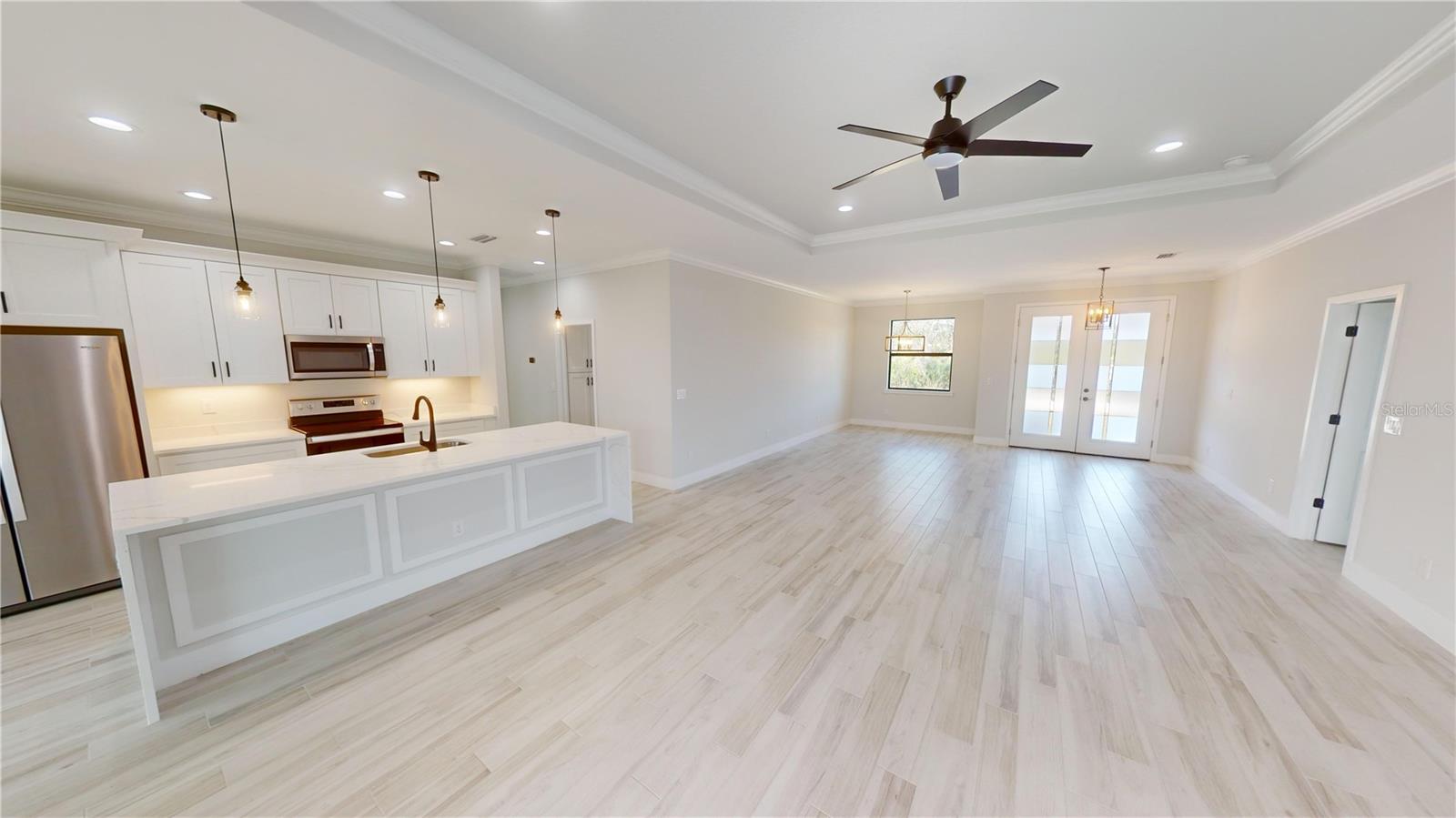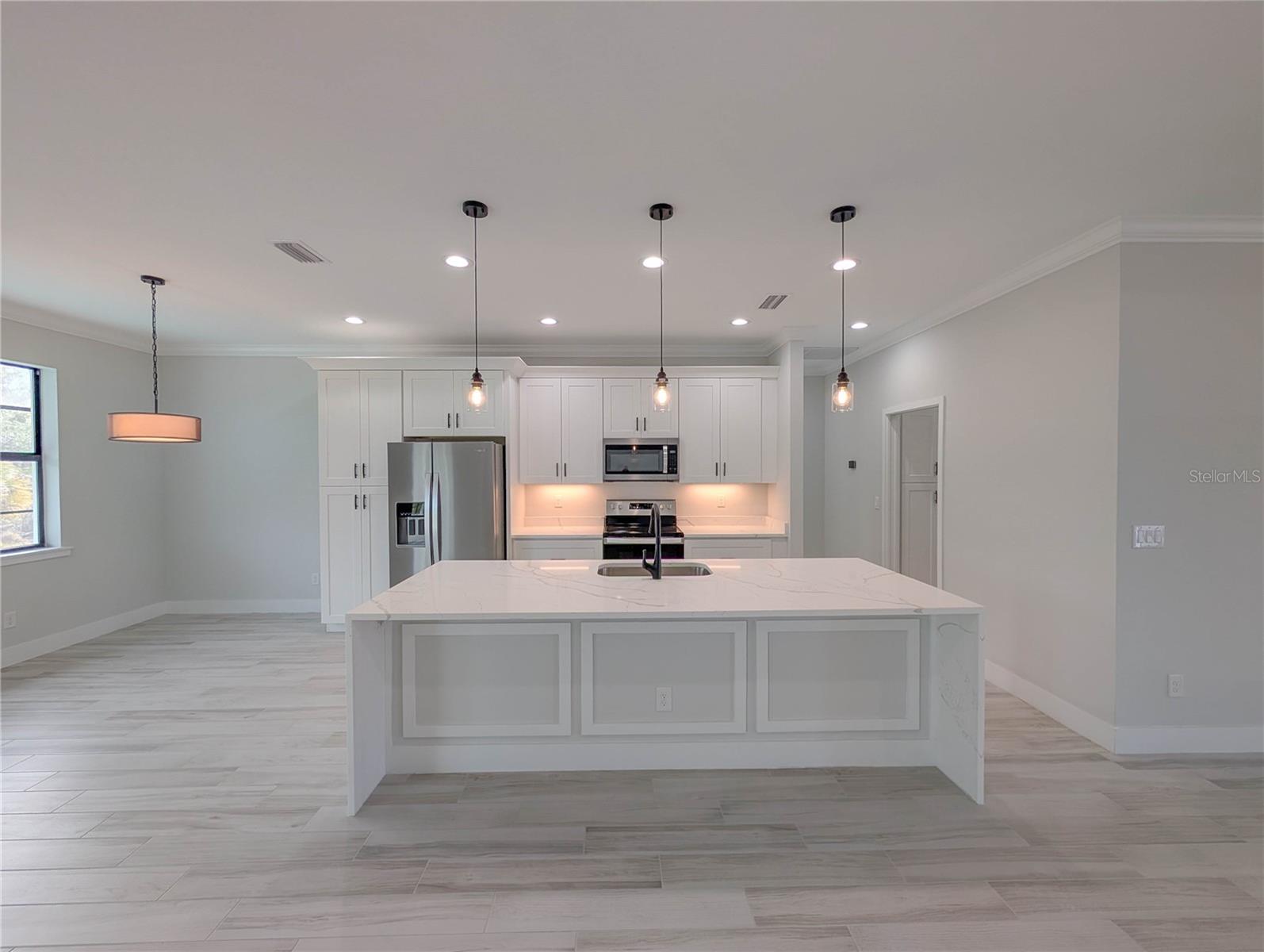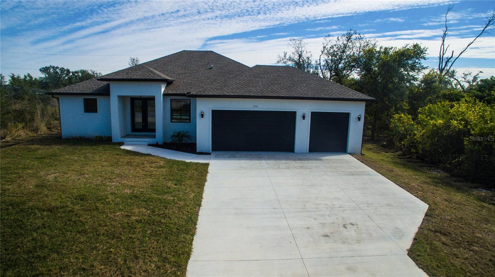 Under Construction. Only weeks away from competion this beautifully upgraded 3 bedroom, 2 bath pool home with a hot tub and a 3 car garage. This new construction home features porcelain tile throughout, 9'4 ceilings with ceiling trays in living area and owners bedroom. The kitchen has all wood 42 inch cabinets with crown molding and quartz counters, just off the kitchen the laundry room has additional cabinets for extra storage. Bathrooms also have all wood cabinets and quartz countertops with porcelin tile to the ceiling in both shower and bath area. Sliding doors from living area, kitchen and owners bedroom leads to the large lanai and pool area. The garage holds 3 full size vehicles. Photos are of a previously built home.