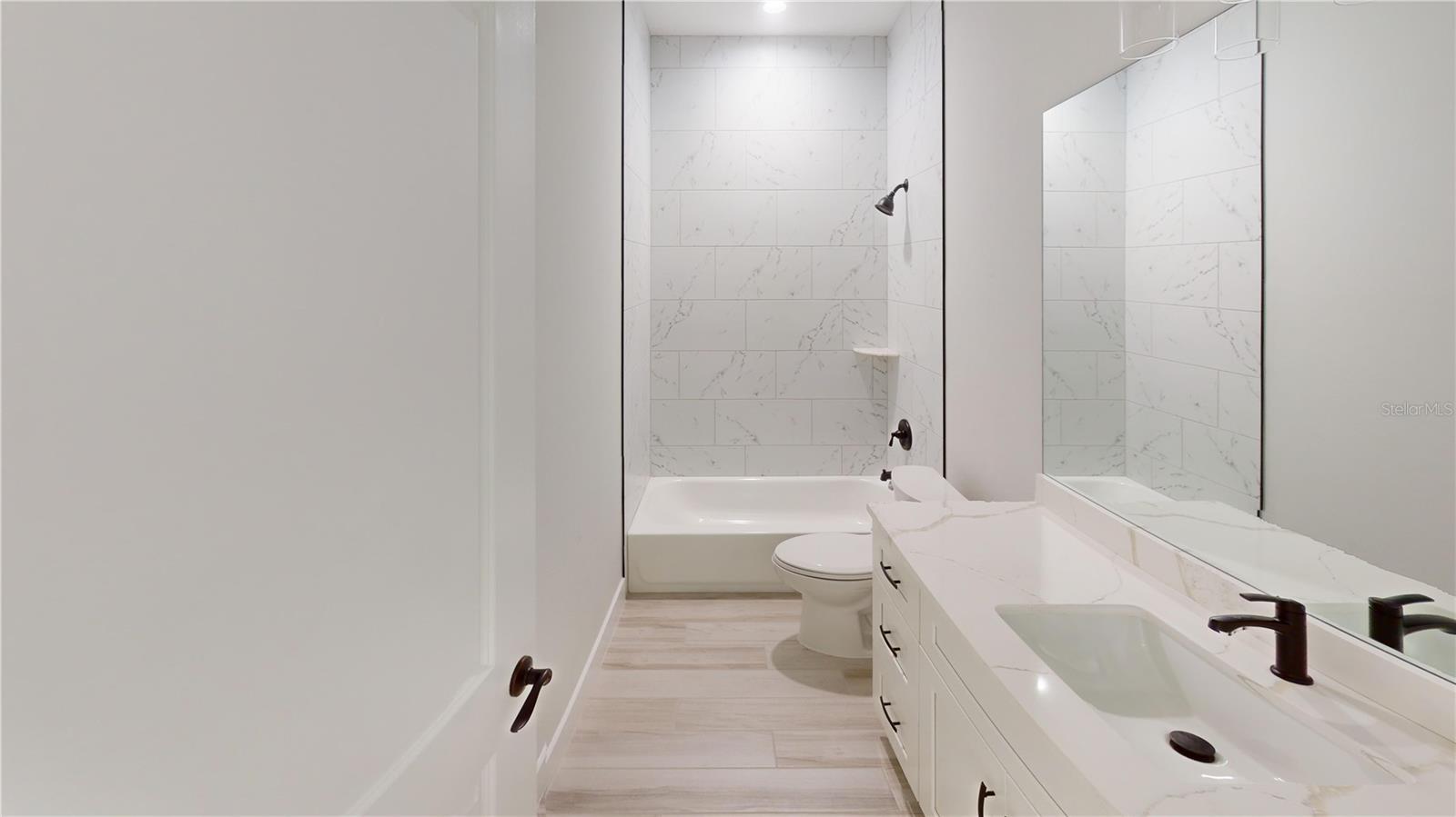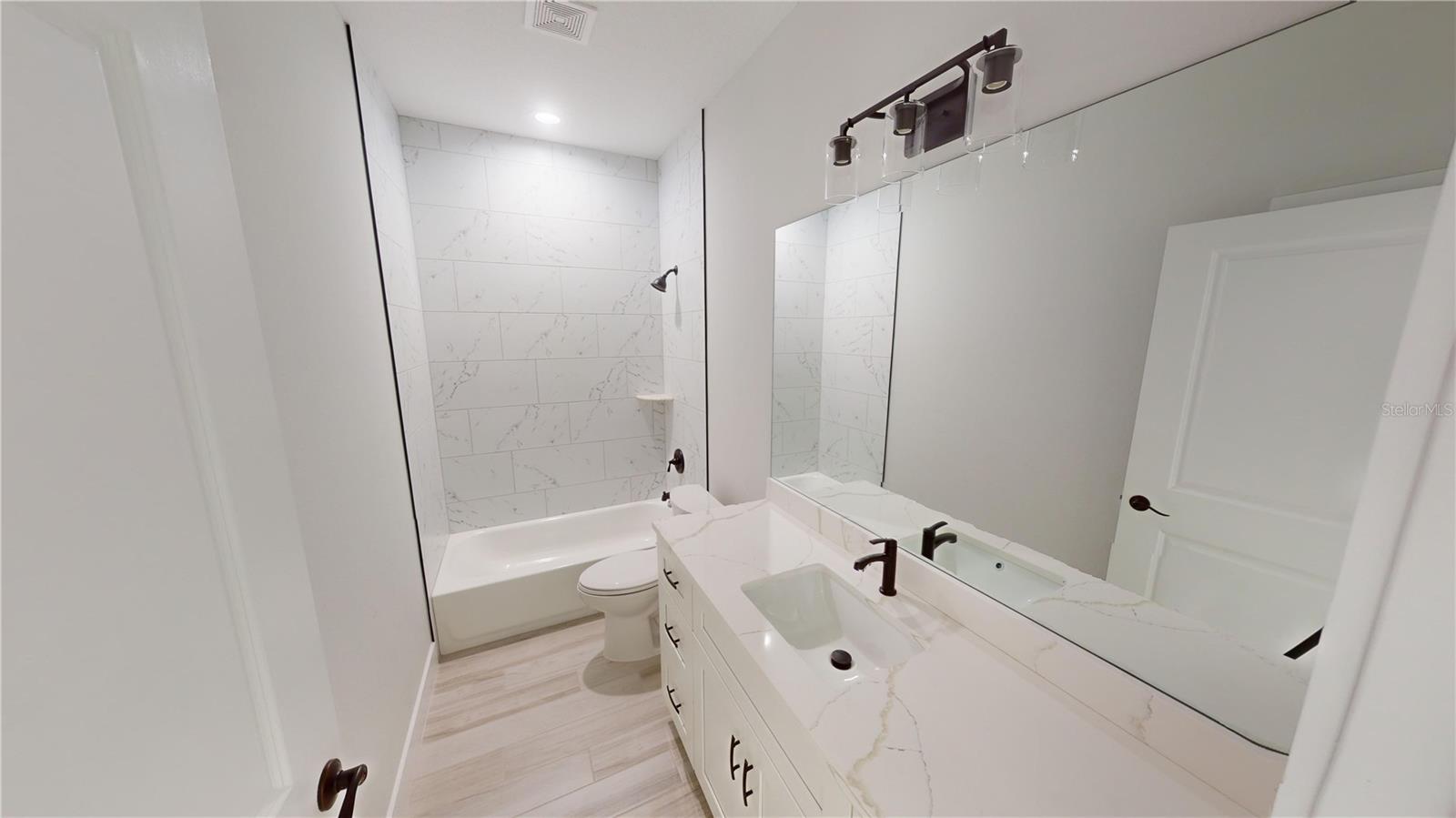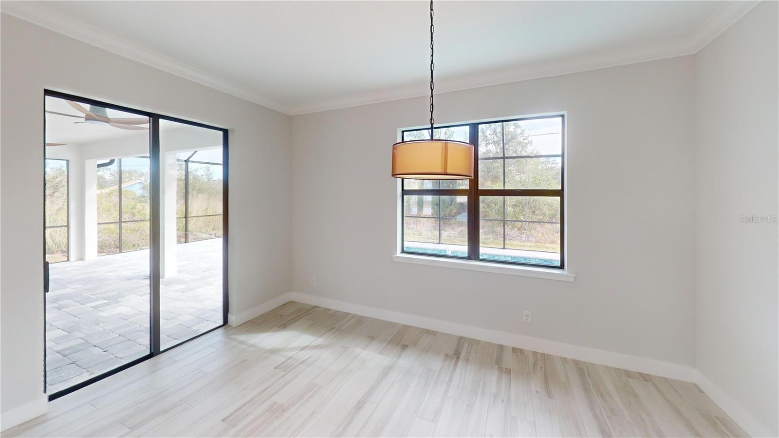 Under Construction. Only weeks away from competion this beautifully upgraded 3 bedroom, 2 bath pool home with a hot tub and a 3 car garage. This new construction home features porcelain tile throughout, 9'4 ceilings with ceiling trays in living area and owners bedroom. The kitchen has all wood 42 inch cabinets with crown molding and quartz counters, just off the kitchen the laundry room has additional cabinets for extra storage. Bathrooms also have all wood cabinets and quartz countertops with porcelin tile to the ceiling in both shower and bath area. Sliding doors from living area, kitchen and owners bedroom leads to the large lanai and pool area. The garage holds 3 full size vehicles. Photos are of a previously built home.