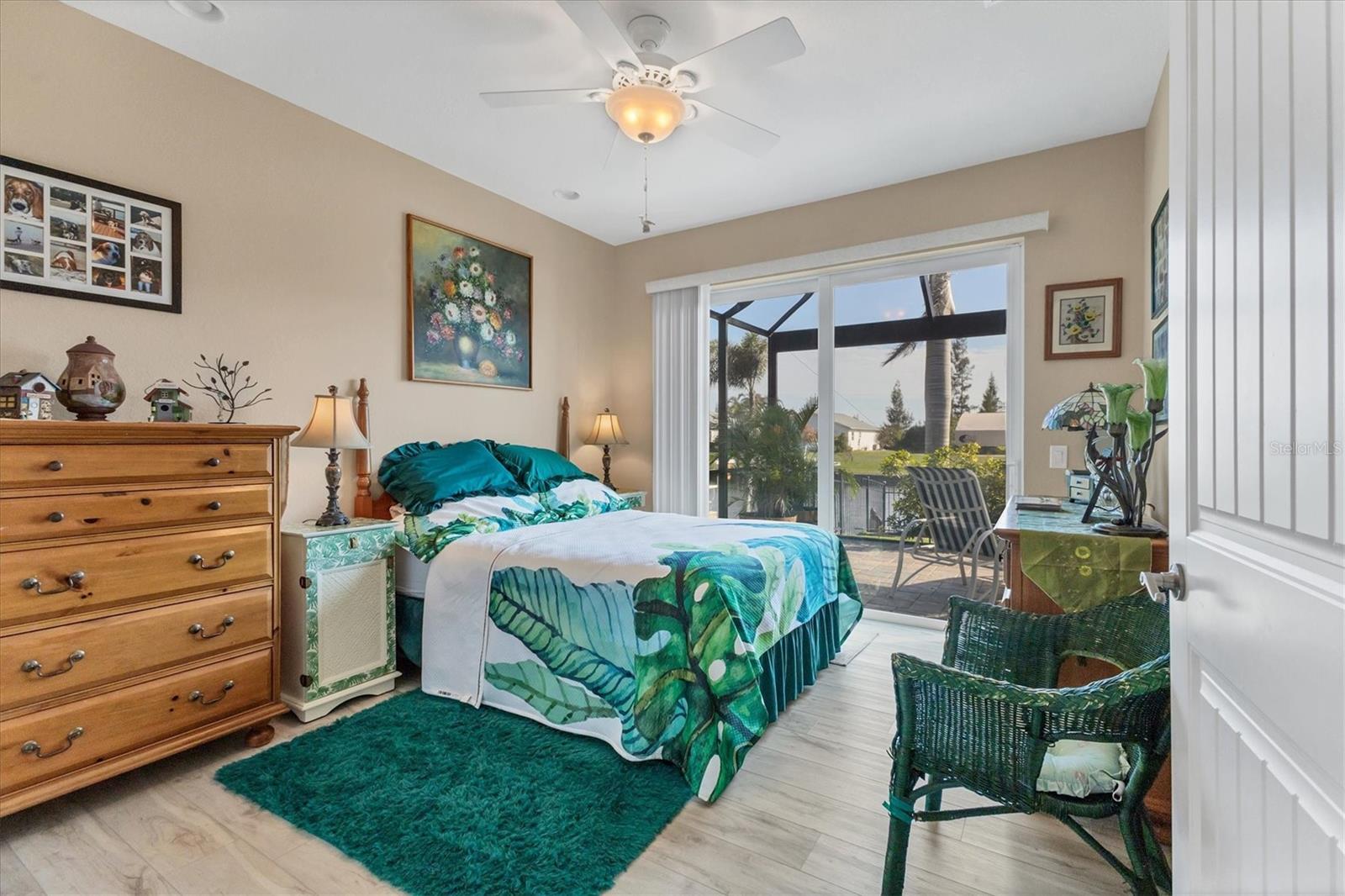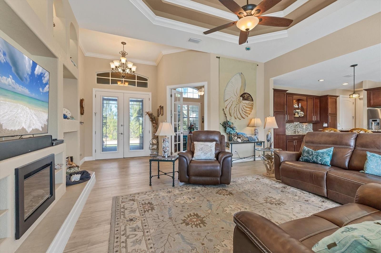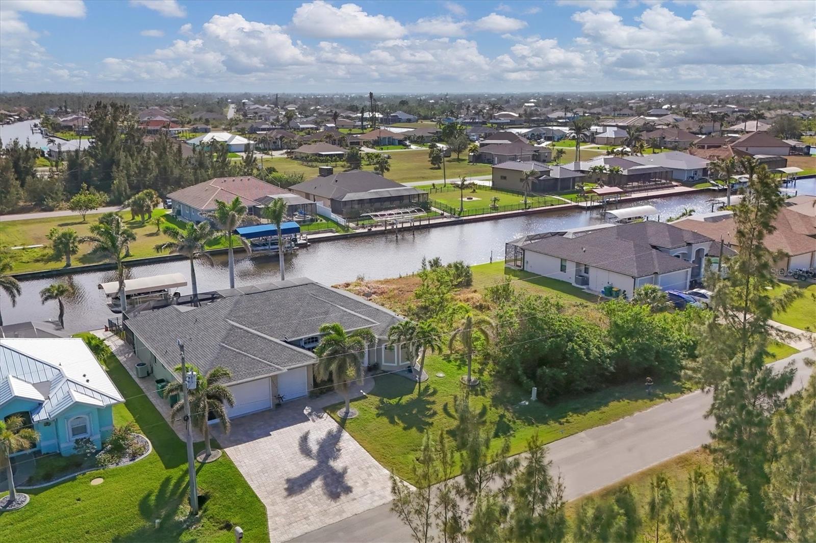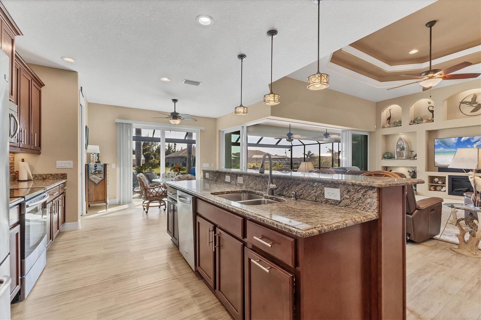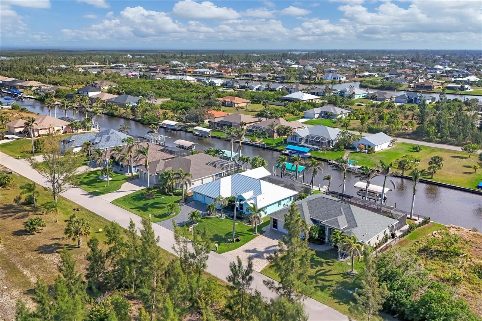Discover this stunning 3-bedroom, 2-bathroom pool home with a den in the sought-after South Gulf Cove community. Boasting Southern exposure on a canal, this home offers breathtaking waterfront views and quick Gulf access with a Trex dock, 10,000 lb covered boat lift, seawall, and water/electric hookups. Step inside to find luxury vinyl flooring throughout, 8’ doors, and hurricane impact windows and doors. The living room features tray ceilings with lighting, crown molding, an elegant built-in wall accent, an electric fireplace, and expansive zero-corner sliders, seamlessly blending indoor and outdoor living. The gourmet kitchen is a chef’s dream, complete with a breakfast bar, stainless steel appliances, a stunning tile backsplash, solid wood cabinets with under-cabinet lighting, a closet pantry, granite countertops, and a dedicated coffee/wet bar. The primary suite is a private retreat with lanai access, his-and-her walk-in closets, and a luxurious en-suite bath featuring dual sinks and a large walk-in tile shower with a bench and dual shower heads. The split-bedroom floor plan ensures privacy, with spacious guest bedrooms featuring plantation shutters and a guest bath that provides direct pool access. The den/home office includes dual built-in desks for convenience. Additional interior highlights include stylish ceiling fans in every room, a central vacuum system, a fully equipped laundry room with a sink and cabinets, and wiring for a security system. The 3-car garage is a standout, offering epoxy flooring, a 2024 garage door, a screen door for two bays, and built-in cabinetry. The outdoor oasis features an oversized paver driveway and walkways, mature landscaping with Royal Palms, and a screened front entry leading to the elegant double doors. The heated saltwater pool is surrounded by a spacious lanai with panoramic screens for unobstructed water views, an outdoor shower, a sink and refrigerator, and a fully fenced, irrigated backyard. The lanai was rescreened in 2023, and the home boasts a new 2023 roof and a hurricane shutter for added protection. This waterfront gem offers the ultimate Florida lifestyle—luxury, comfort, and direct boating access to the Gulf. Don’t miss your chance to own this exceptional home!
