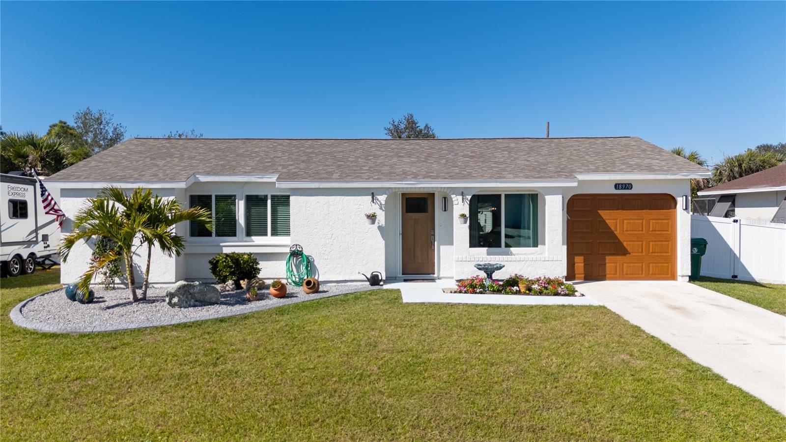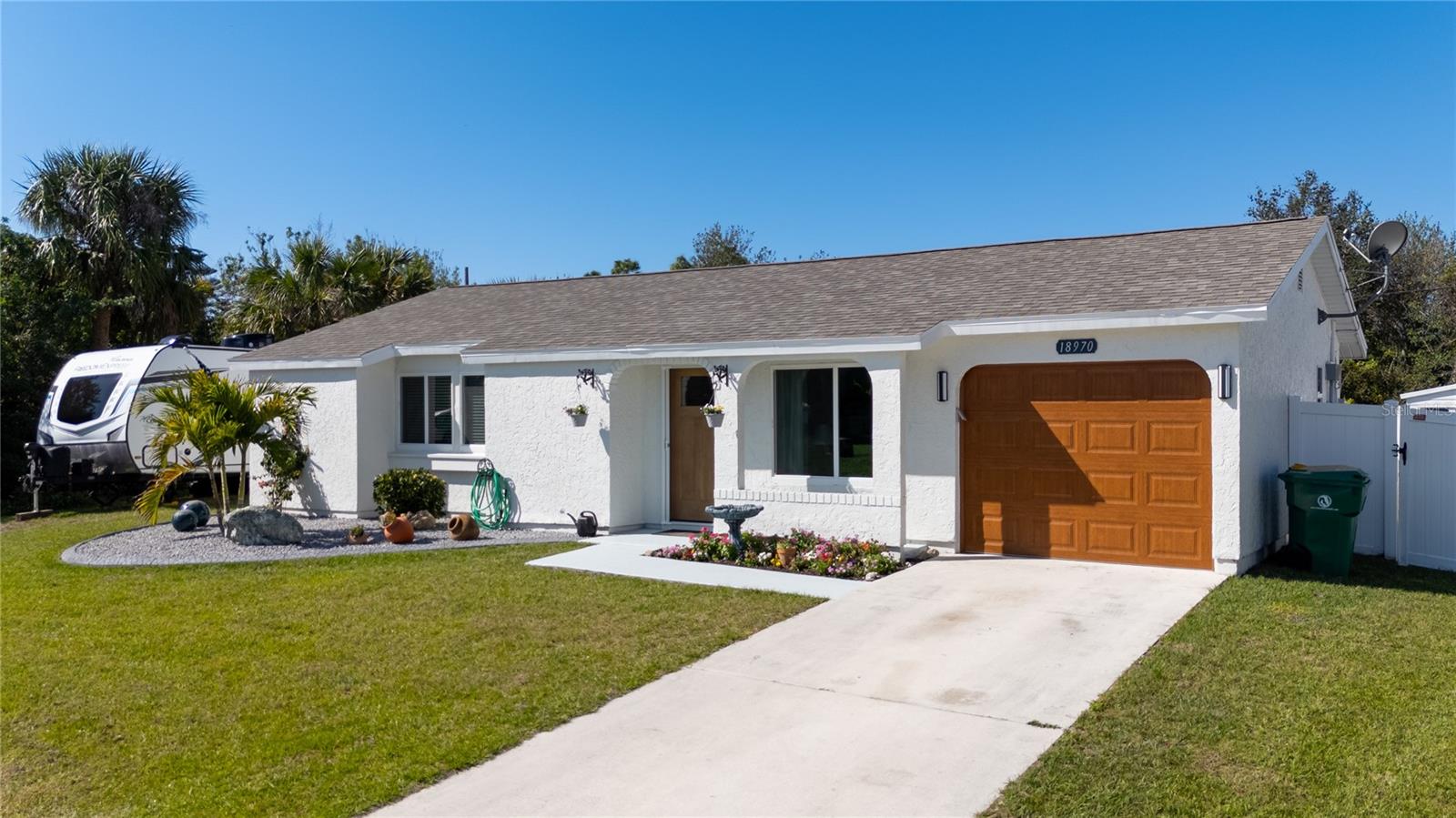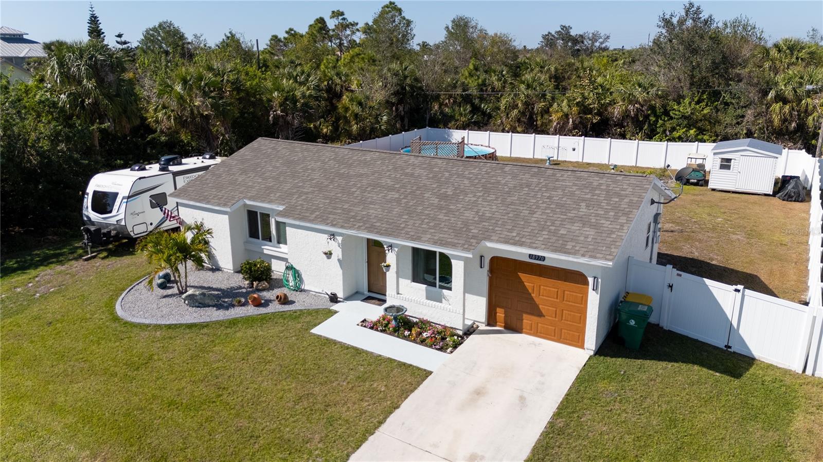 PRICE ADJUSTMENT!! You will love this charming, updated three bedroom two bath home located in a quiet neighborhood near all services, medical facilities, public parks, and public facilities to launch your boat. In addition to all of that, the price includes the furniture (excluding two cabinets in the master bedroom)!Perfect for the first time buyer or investor! The recently fenced back yard offers an above-ground pool for cooling off on those warm summer days. There is an additional driveway apron leading to a wide access gate into the backyard for storing your boat or RV, plus a new 10x12 shed for additional storage. Never worry about the hassle of storm shutters since the impact windows are storm rated! There is also a newer roof and a 2017 A/C unit, and a new water heater. The kitchen features stainless appliances. There is maintenance free tile flooring throughout the house. Underground fiber optic cable was recently installed in the area and underground electricity is completed, and repaving of McGrath Circle by Charlotte County is completed! This property is ideal for a starter home, vacation rental, or for down sizing but wanting the privacy of a single family home with NO HOA! There has never been any flooding of this home. Do not miss this chance to live in this million dollar neighborhood for a fraction of the price. Make your appointmant to see this charming gem before it is gone!