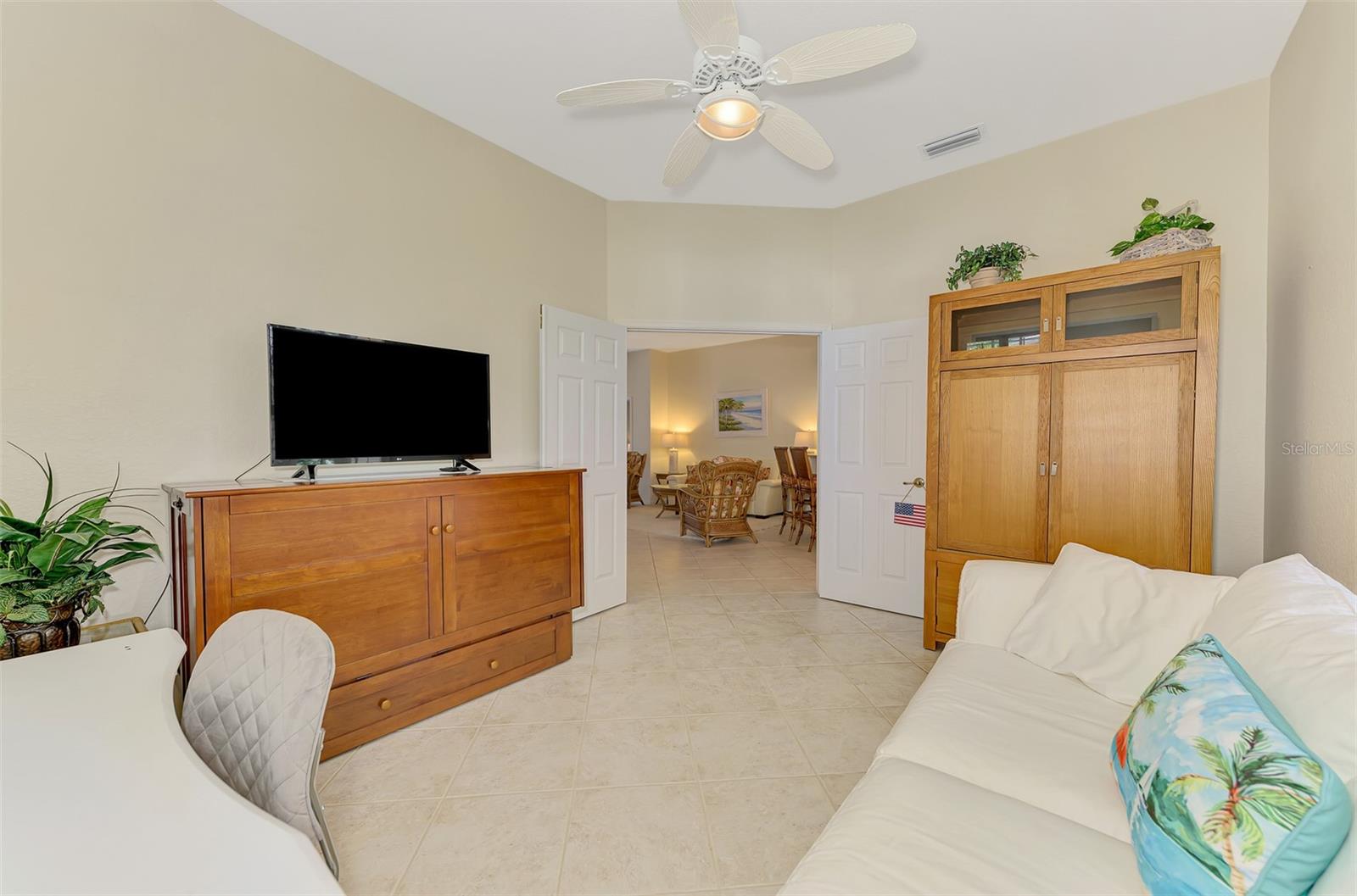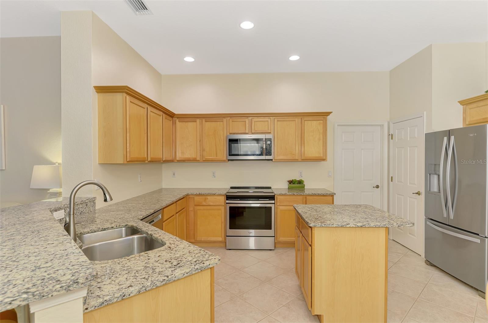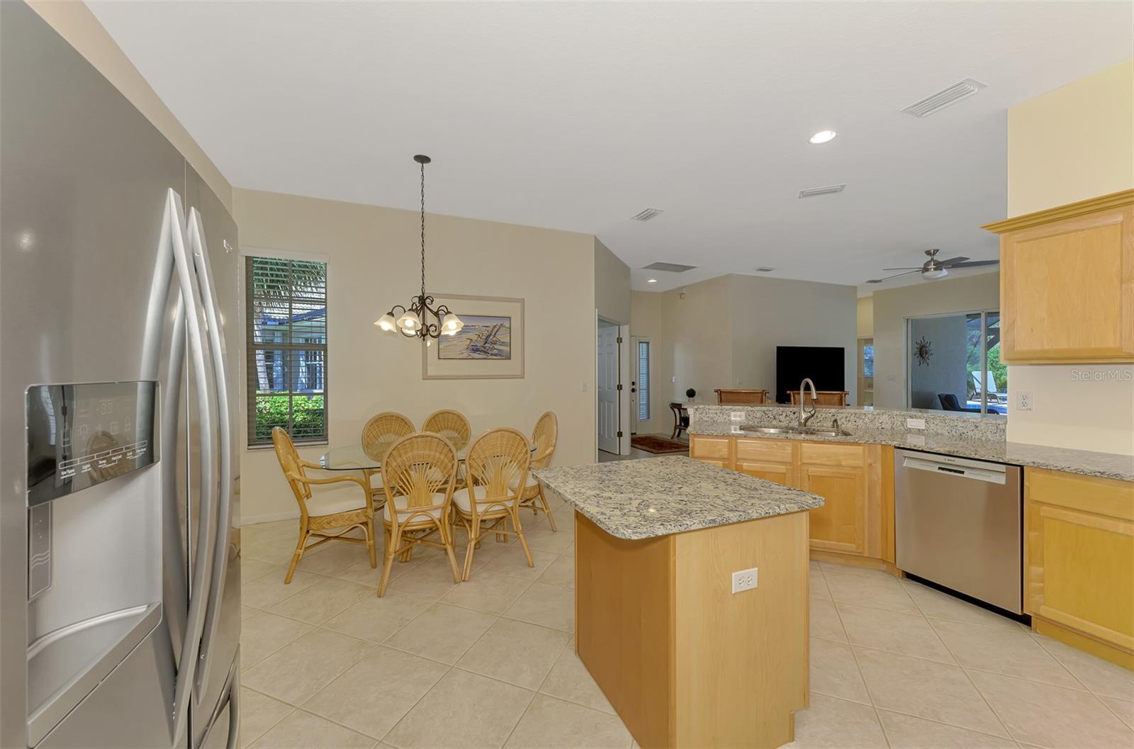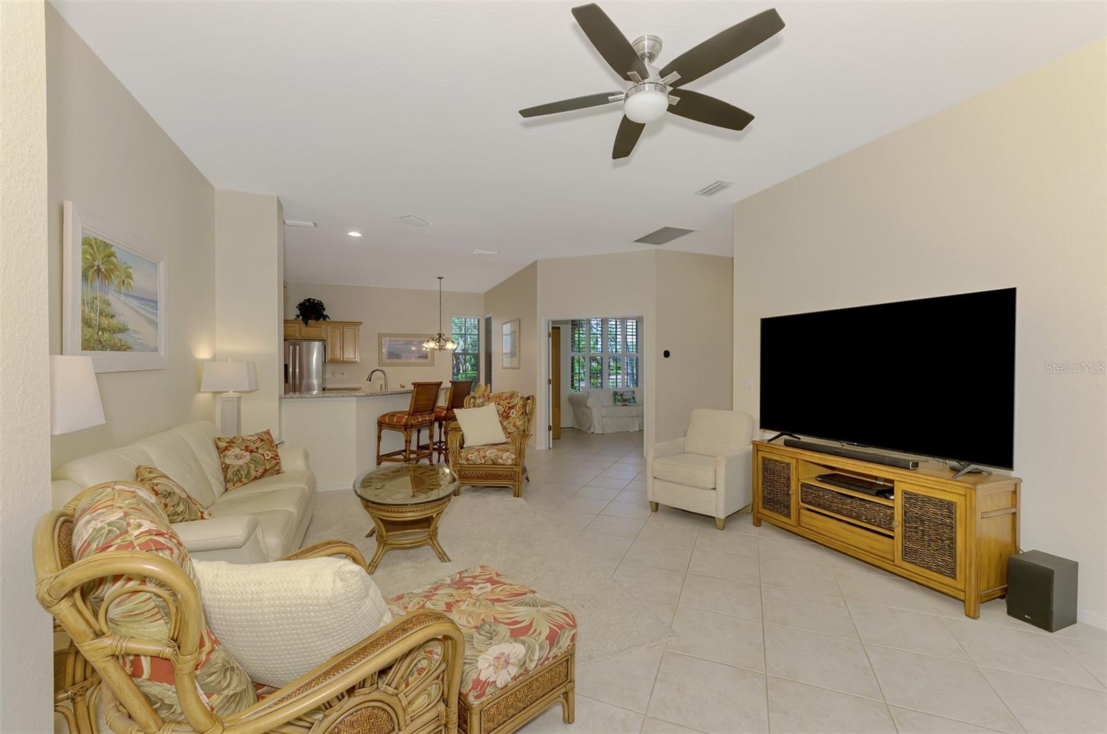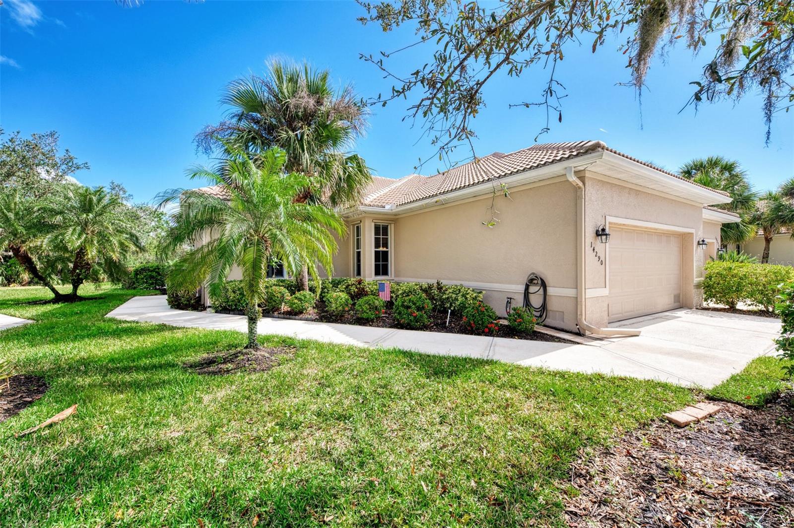 Welcome home to your Florida Oasis at this Meticulous, Beautiful 2 Bedroom, Plus Den, 2 Bathroom SALT WATER POOL VILLA in the gorgeous Riverwood gated golf community. This thoughtfully designed and desired “POINCIANA” FLOOR PLAN offers a Spacious Open Interior, the Privacy of a split bedroom plan, and is set on a deep lot (.22 Acres) surrounded by a tranquil preserve, the ultimate in privacy. The Pool Area is a True Gem, Showcasing a sparkling and COMPLETELY RENOVATED POOL, New DECK & expanded CAGE in 2024, highlighting a Pebbletec® pool surface, new coping stones, waterline tile, LED multi-color Pool Light, and 4’ sheer descent Waterfall. The pool cage is brand new including full view picture window (40’) and the deck has been completely re-surfaced & double-coat stained. The Pool Deck includes an elevated and roomy (10’x40’) SUN DECK. You’ll appreciate this home’s many other features and updates…A Spacious Open Kitchen: Wood Cabinets with crown, ample Granite Countertop workspace, updated Stainless Steel fridge, microwave, dishwasher slide-in range. Favored Ceramic tile flooring on diagonal in living areas. Window Blinds Throughout. Walk-In Closets and NEW (2023) upgraded carpeting in Both Bedrooms. Primary Bedroom offers an En Suite Bathroom boasting a REMODELED WALK-IN SHOWER & TUB. Roof Cleaned & Sealed (2024). Exterior Repainted (2024) and Interior Ceilings and Walls Repainted. Updated ceiling fans in master bath, lanai and garage. NEW (2022) Garage Floor Epoxy Flake Surfacing. Storm/Screen Door at Front Entry. Rain Gutters/Downspouts. ELECTRIC ROLL DOWN Hurricane Screen at Lanai & Clear Hurricane Panels at Windows. Nothing left to do but live the Florida Lifestyle at Riverwood: 1300 acres, gated, golf, resort style community. NEW RESORT STYLE & LAP POOL. SEPARATE FITNESS CENTER, PICKLEBALL COURTS, NEW SMALL AND LARGE DOG PARKS! Enjoy all that Riverwood has to offer in our lush tree lined streets, renovated activity center with all the social activities offered, 6 Har-Tru tennis courts, croquet court. An Audubon Green Community Award Winner for its natural habitat for Florida Wildlife. Optional amenities: Dog Park, Riverwood Golf Club, Par 72 Championship course & Beach Club on Manasota Key. Close to boating, cultural events, dining, shopping & beautiful beaches of SW FL. Located between Sarasota & Ft Myers on Florida’s West Coast in Paradise!