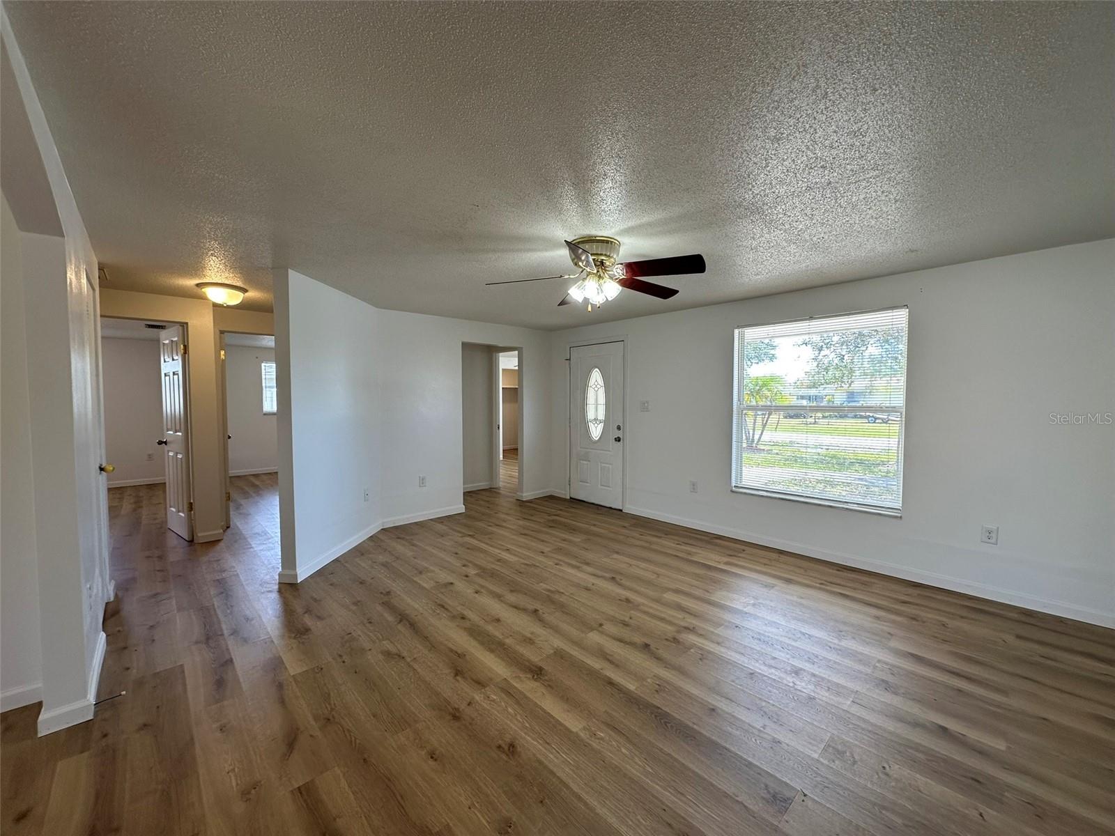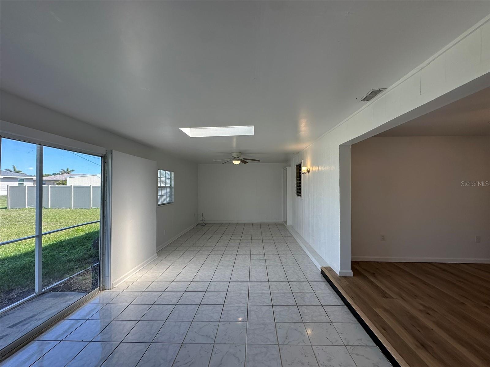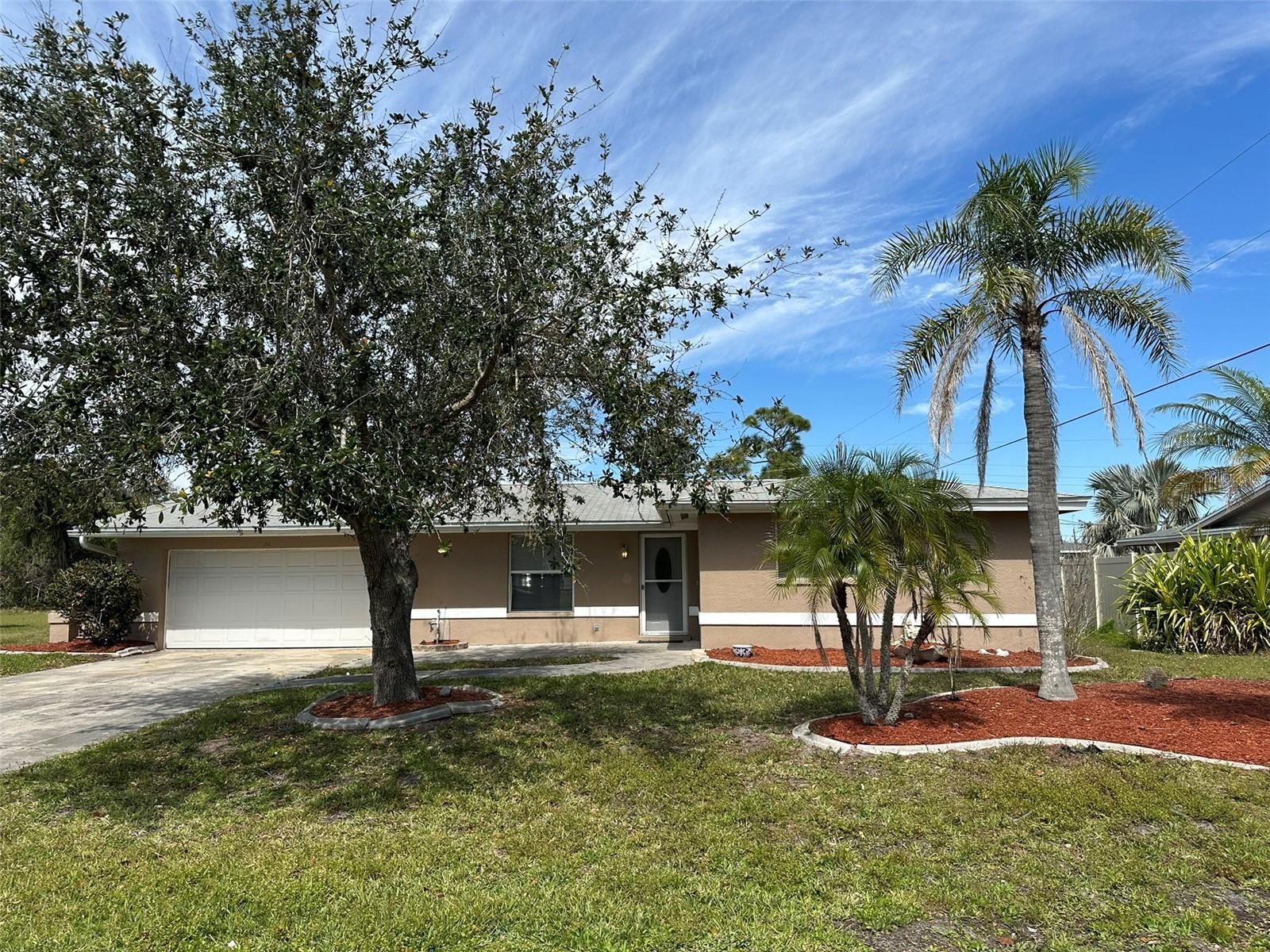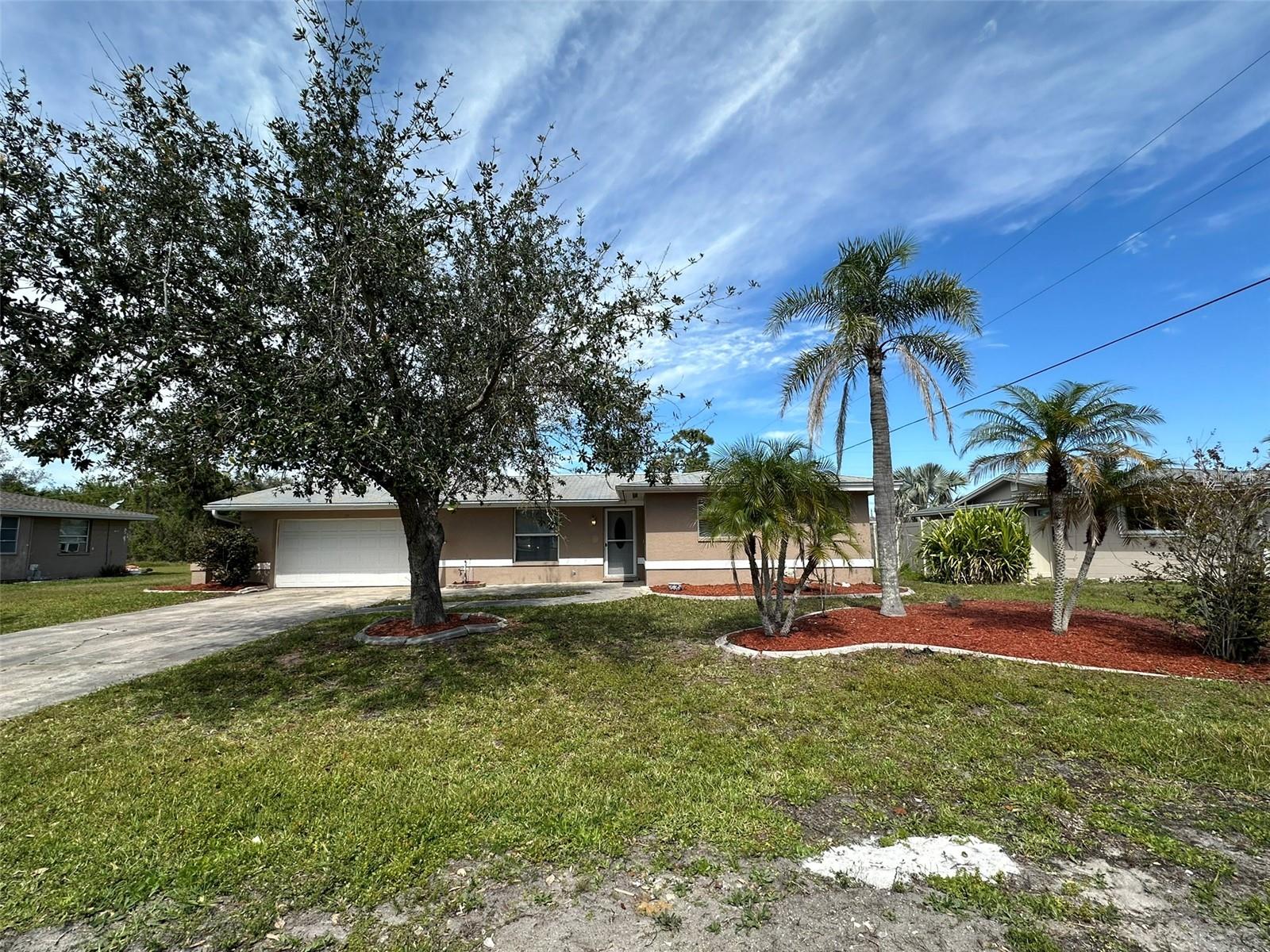 Welcome to this beautifully updated three-bedroom, two-bathroom home nestled in a quiet, established Port Charlotte neighborhood. This inviting property offers the perfect blend of comfort, style, and convenience. Step inside to discover newly installed luxury vinyl flooring throughout and an appealing open concept design. The bright, airy layout connects the living, dining, and family areas, creating a clean, spacious feel that's perfect for both everyday living and entertaining. The eat-in kitchen features handsome wood cabinetry and sleek new stainless steel appliances, with a convenient screened lanai accessible directly from the kitchen—ideal for morning coffee or casual meals. The family room serves as the heart of this home, brightened by a skylight and offering direct access to the screened entryway leading to the backyard. Retreat to the primary suite, complete with an en-suite bathroom featuring a walk-in shower and generous walk-in closet. Two additional bedrooms provide comfortable space for family members, guests, or home office needs. Home is equipped with large volume in ceiling fan to pull unwanted hot or unpleasant air from inside of home. An oversized two-car garage includes the added benefit of a mani-bloc water system, offering exceptional convenience for maintenance and servicing. This move-in ready home combines updated features with an established neighborhood setting, making it an exceptional opportunity for your next chapter in Port Charlotte.
