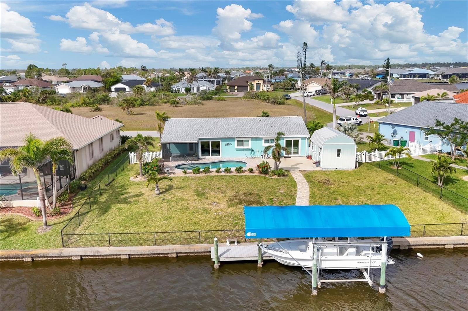 Waterfront Living in South Gulf Cove – Affordable & Move-In Ready! Dreaming of owning a waterfront home in Southwest Florida? Look no further! Nestled in the sought-after waterfront community of South Gulf Cove. This charming 3-bedroom, 2-bathroom home offers the perfect blend of comfort, convenience, and affordability—making it an incredible value for full-time residents, seasonal getaways, or even a lucrative vacation rental! Situated on a seawall, fenced lot, this home is built for waterfront enjoyment, featuring a 32 ft. dock with a boat lift—perfect for boating enthusiasts! With a short scenic 15-minute boat ride to the Lock, you’ll have quick access to Charlotte Harbor and the Gulf of Mexico, where world-class fishing, island hopping, and waterfront dining await. This home has been thoughtfully updated with luxury vinyl flooring throughout, granite countertops, and impact windows for added security and energy efficiency. Major upgrades include a new roof in 2022 and a new AC system in 2020, providing peace of mind for years to come. The oversized lot offers endless possibilities to create your own private outdoor oasis, complete with a heated pool overlooking the water and a 12' x 16' shed—perfect for extra storage, a workshop, or a hobby space. Prime Location – The Best of Florida Living South Gulf Cove is one of Southwest Florida’s premier waterfront communities, offering direct access to Boca Grande, Fishermen’s Village, Matlacha, Cabbage Key, and more! Whether you love boating, fishing, golfing, or beach-hopping, this location has it all. Enjoy some of the best waterfront restaurants, stunning golf courses, and beautiful beaches just minutes away. Don’t Miss This Opportunity to Own a Slice of Paradise! Whether you’re looking for your dream home, a vacation retreat, or an investment property, this charming waterfront home checks all the boxes. Schedule your private showing today! ?? Priced to Sell – Don’t Wait!