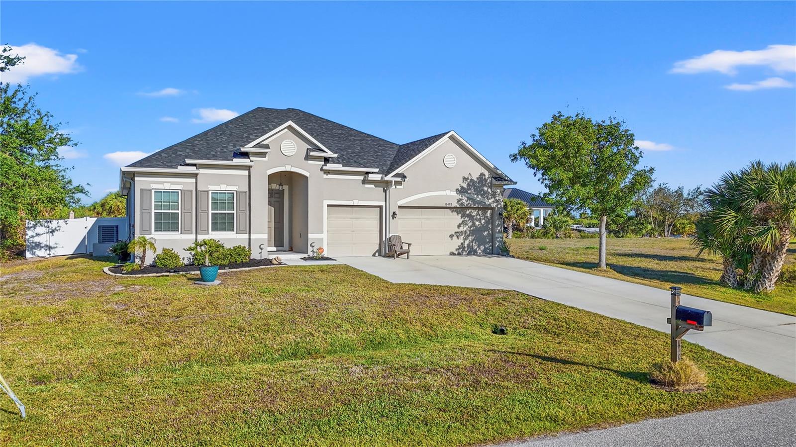 RARE OPPORTUNITY for X Flood Zone on DOUBLE LOT in SOUTH GULF COVE ~ This is a MUST SEE! Welcome to 10498 Bay State, a Well-Designed 4-Bedroom 3-Bath 3-Car Garage Home with Private Home office, Workshop in Garage and HEATED POOL on a DOUBLE X ZONE LOT in the highly desired Gulf Access community, South Gulf Cove! This property is located on a rare double lot that backs to a greenbelt, offers sunrise views from your Lanai, and offers unobstructed views of the Santa Cruz Waterway from your pool and backyard. With nearly 2,700 square feet of living space, this home offers plenty of room for family and guests, and a possible in-law suite for those looking for multi-generational home options. The foyer is welcoming, with ample space for a book nook or console table and leads to 2 Guest Rooms that share a Full Bath and Linen Closet. Across the hall, you’ll be pleasantly surprised to find a very large Laundry Room with Cabinets and Storage, adjacent to an En-Suite / In-Law Suite with Full Bath and Walk In Closet. Proceed to the main living spaces, your Kitchen features a large island with Bar Height seating, lots of cabinets, farmhouse sink, and built in shelving in the WALK-IN Pantry. The Living Room and Dining Room flank the Kitchen and Breakfast nook, maintaining a seamless flow for conversations and natural light. But wait, there’s more! The frosted glass French Doors open to a Home Office / Study, with quick access through the living rooms sliders to the Lanai and Pool Deck. The Primary Bedroom is generous in size and offers a complete En Suite with Dual Sinks, Garden Tub, and large Walk In Closet. The home boasts a host of recent updates, including a new roof and new HVAC system, providing peace of mind and energy efficiency. The property is also located in an X Flood Zone, meaning no flood insurance is required! For those with furry friends, the fenced dog run offers a safe and secure space to play. The 3-car garage is a true standout, featuring mini split AC system, workbench, overhead lighting and retractable extension cord, as well as built-in storage components – making it an ideal space for projects and hobbies. This property is ideally situated just minutes from several public boat ramps, providing easy access to the community’s waterways, the Intracoastal Waterway, and the Gulf. Whether you’re an avid boater or just love coastal living, you’ll find everything you need right at your doorstep. You’re only 15 minutes drive to Gulf Beaches, world-class fishing, 99 holes of golf, shopping, dining, and the Tampa Bay Rays' Spring training facility! Enjoy the benefits of an optional HOA at just $120 per year, minimal deed restrictions, and several pocket parks and walking paths, providing flexibility while still enjoying the community’s perks. Whether you’re seeking a peaceful retreat, investment property or a home with room to grow, this property has it all. Don’t miss out – schedule your showing today and make this paradise yours!