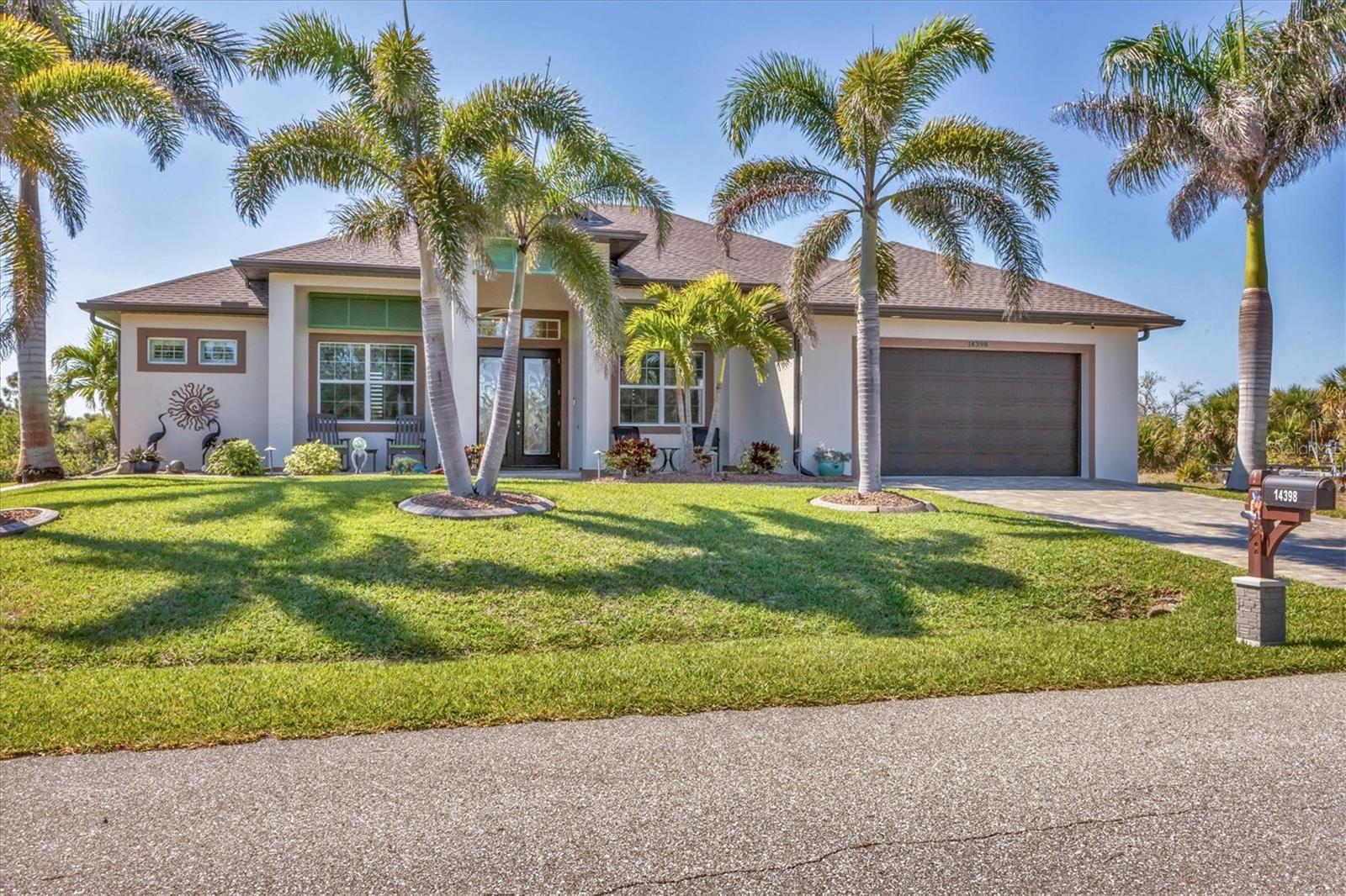 This exquisite West Indies-style residence epitomizes opulent waterfront living. Boasting 3 generously sized bedrooms, 2 elegantly appointed bathrooms, a capacious 3-car tandem garage, and over 2,200 square feet of meticulously designed living space, this home defines sophistication. The property showcases grand 10-foot sliding doors that seamlessly connect the interior to an impressive outdoor haven. Here, you will find a fully equipped kitchen/bar with a state-of-the-art Weber Summit grill, perfect for evening gatherings, complemented by a heated saltwater pool and cascading waterfalls, creating a tranquil retreat. The great room exudes elegance with its coffered ceilings, warming fireplace, and advanced smart home technology, offering both luxury and convenience. The gourmet kitchen is a chef's dream, featuring a spacious island, a wine refrigerator, top-tier appliances, 42” cabinets with ambient under-cabinet lighting, and a walk-in pantry, ensuring ample storage and preparation space. Further enhancing the property's allure are premium upgrades including a newly installed roof, energy-efficient icylene insulation, pristine porcelain tile flooring throughout, and impact-resistant windows and doors. Additional remote control hurricane smart screens provide added protection and privacy, guaranteeing peace of mind. Outside, the wraparound dock with a covered boat lift offers direct access to the serene waters of the Myakka River, nearby picturesque islands, and the expansive Gulf of America. Indulge in the luxurious lifestyle this home affords, and for a comprehensive list of features, please request detailed information from your real estate agent.