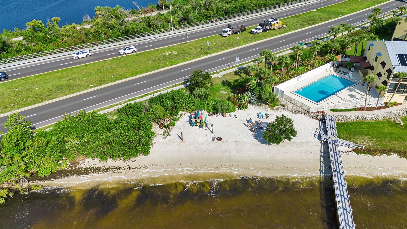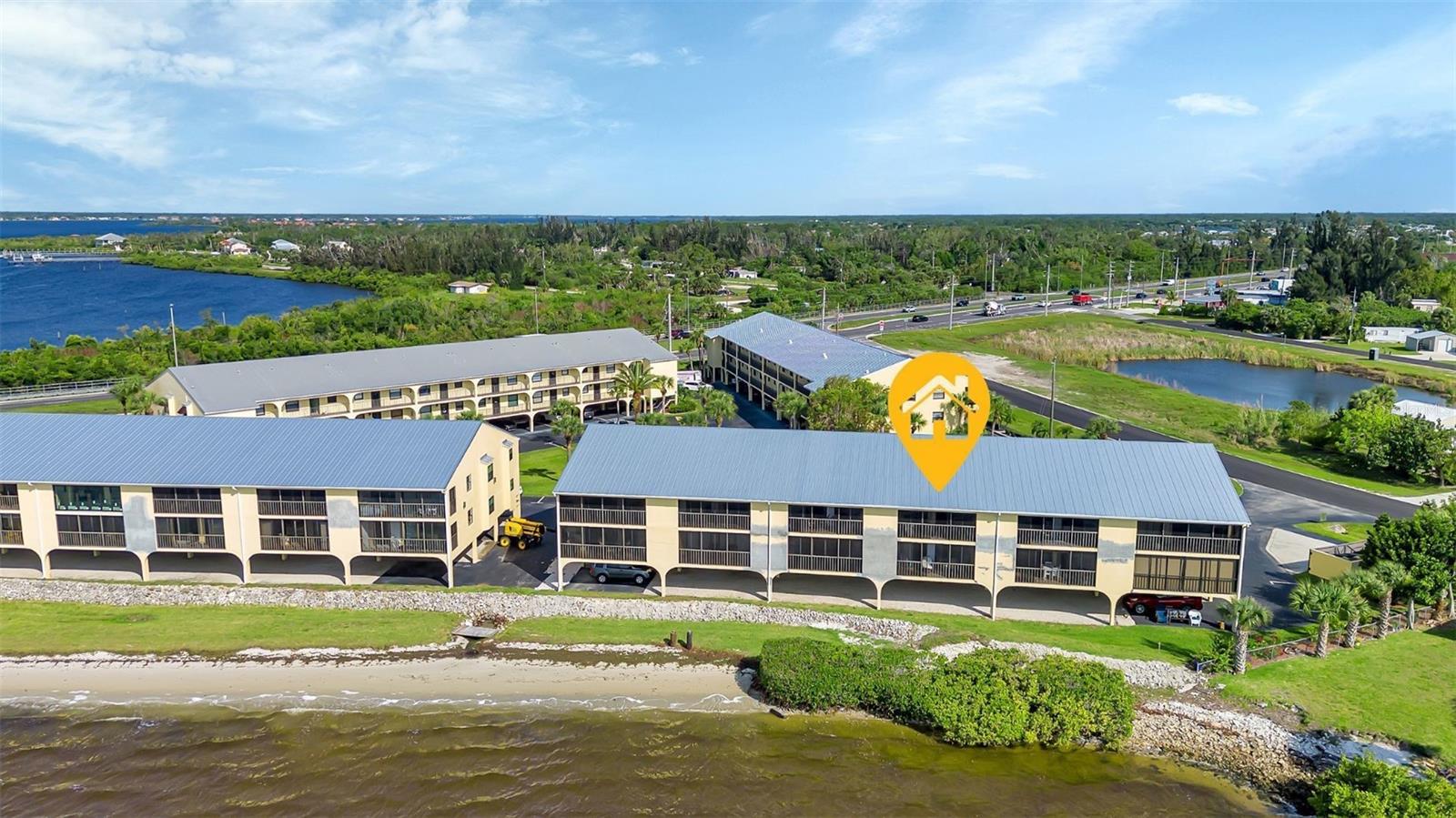 Enjoy the incredible FULL WATERFRONT VIEW of the Myakka River and the Port Charlotte Harbor from the waterfront lanai balcony and the primary bedroom of this beautiful condo retreat in Tarpon Bay. Tarpon Bay Community features a heated pool, fishing pier with a cleaning station, outdoor grills, bike racks, kayak storage, and even it's own private beach! Bring the doggos! Tarpon Bay is one of the few condo communities that allow dogs with no weight restriction so DOG FRIENDLY! This TURNKEY FURNISHED unit located offers a ton of new improvements and amenities. The kitchen was remodeled last year with new stunning stone countertops, sink, faucet, ceiling lights, wood blinds and new microwave. The refrigerator, stove and dishwasher were new in 2021 and the in unit washer / dryer in 2022. There is a convenient pass through desk area that opens onto the dining / living room area with new ceiling lights / fan, sofa and loveseat, chairs, lamps and area rug. The primary bedroom suite has it's own entrance onto the lanai and the primary master bath has been tastefully updated and has a walk in closet. Your guest bedroom is complete with NEW bed frame, mattress, dresser and mirror, end tables, wood blind and area rug. The building just had a new roof last year and offers under building parking plus a storage room on the end of the lanai. The perfect central location just short drive to the Gulf of Mexico beaches, Wellen Park and the Atlanta Braves Spring Training Cool Today Stadium, the Tampa Bay Rays Spring Training Charlotte Sports Park, the new Allegiant Sunseeker Resort, many golf courses, restaurants and shopping. This unit would be perfect for your own piece of paradise or a great investment rental property.