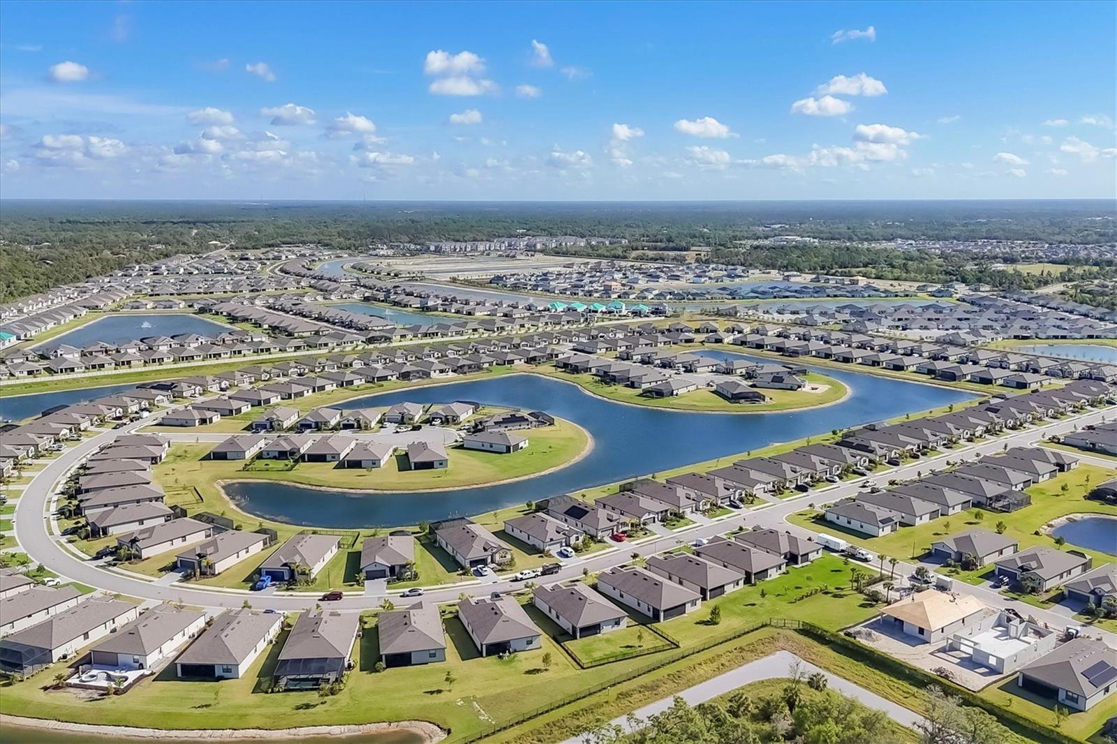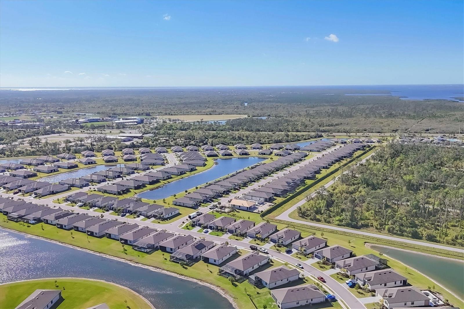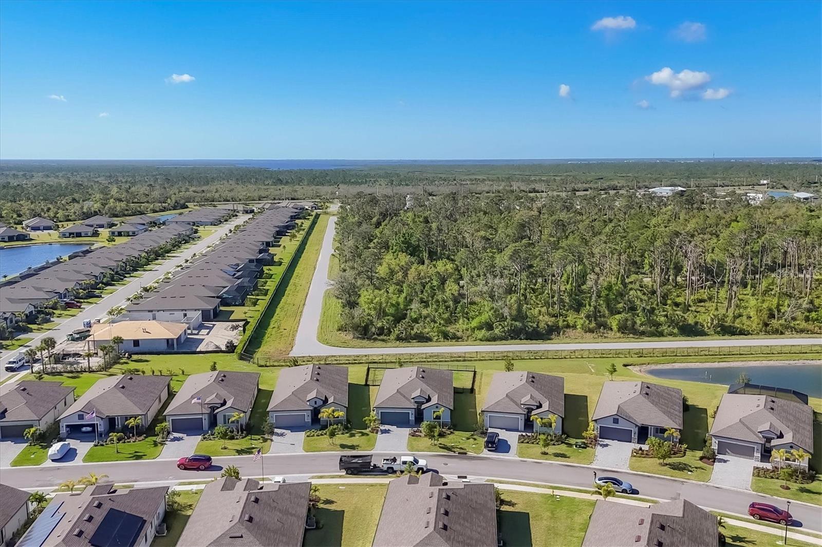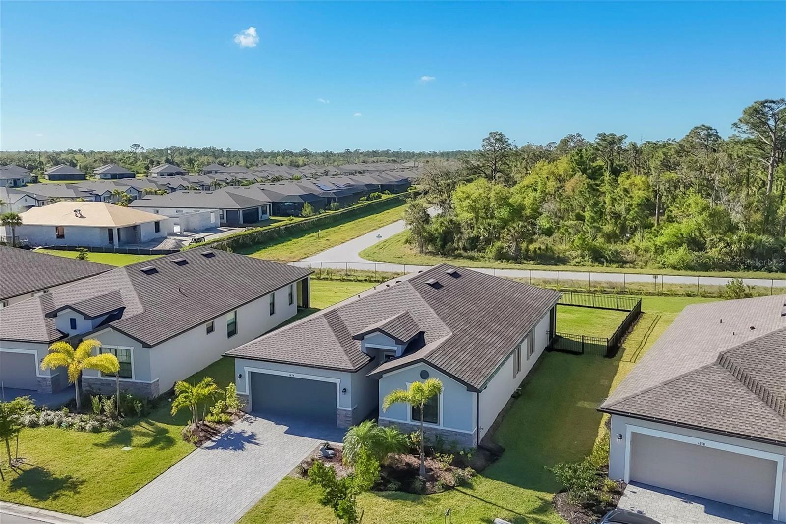 Like New Trevi Model with 4 Bedrooms and 3 Bathrooms in this Newer Gated Community with Clubhouse, Exercise Room, Heated Pool and Pickleball Courts. Live the Florida Lifestyle with Gorgeous Sunset Views from your Private Screened Lanai. Partial Lake Views and the Wooded Area behind this Home Bring Nature to Life. Watch Birds and Eagles flying. This Home Boasts Tile Throughout, Ceiling Fans and Dramatic Unique Lighting Fixtures. Upon Entry notice the Leaded Glass Door. The Foyer is nicely sized and as you Turn Left it opens up to a Guest Bathroom with Tub/Shower Combo and Granite Sink. 2 Guest Bedrooms are located on this Side of the Home both have nice Light and Closet Space. Further Down the Foyer a Left will take you to the Laundry Room which leads out to the Garage. Continuing thru is the 4th Bedroom Currently being used as an Office which has it's Own Private Bathroom, It's a Great Space for those Family members or Visitors requiring Privacy. Back out into the Main Area Notice the Large Kitchen with Granite Counters, 42 inch Cabinets with Soft Close Doors, Backsplash & Stainless Appliances. A walk-In Pantry is a Nice Bonus and the Pendant Lighting is Perfect. A Large Table will fit into this light and Bright Dining Room. Open Concept and Adjacent to the Livingroom gives out Door Views from Every Area. The Livingroom is large enough for a big Sectional or Multiple Chairs. The Lanai views and Sunsets can be Enjoyed inside or Out. The Owners Bedroom with Ensuite enjoys a Walk-In Shower Double Vanity with Granite and Walk-in Closet. The Yard is Fenced and the Windows have Upgraded Honeycomb Blinds. Additional Hurricane protection for the Front Door and Lanai is the Electric Roll Down Shutters. The Community has Underground Utilities, Sidewalks Street Lights and is Golf Cart Friendly. See what it's like living the Florida Dream.