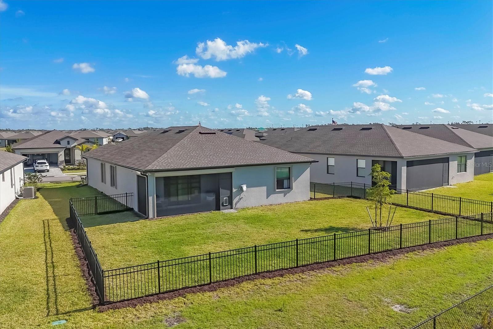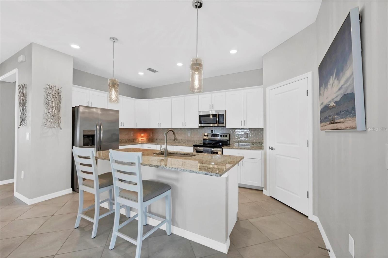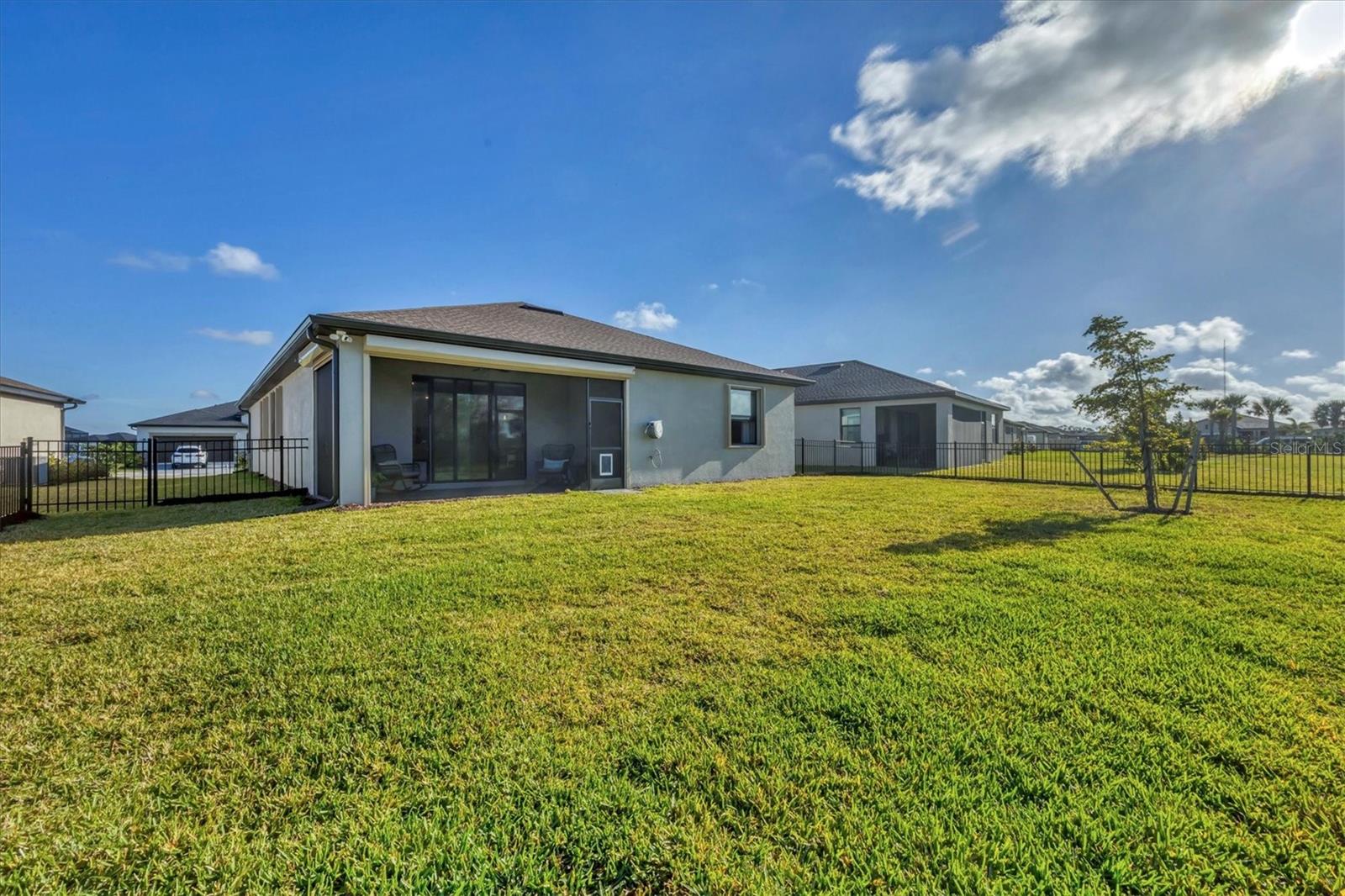 Like New Trevi Model with 4 Bedrooms and 3 Bathrooms in this Newer Gated Community with Clubhouse, Exercise Room, Heated Pool and Pickleball Courts. Live the Florida Lifestyle with Gorgeous Sunset Views from your Private Screened Lanai. Partial Lake Views and the Wooded Area behind this Home Bring Nature to Life. Watch Birds and Eagles flying. This Home Boasts Tile Throughout, Ceiling Fans and Dramatic Unique Lighting Fixtures. Upon Entry notice the Leaded Glass Door. The Foyer is nicely sized and as you Turn Left it opens up to a Guest Bathroom with Tub/Shower Combo and Granite Sink. 2 Guest Bedrooms are located on this Side of the Home both have nice Light and Closet Space. Further Down the Foyer a Left will take you to the Laundry Room which leads out to the Garage. Continuing thru is the 4th Bedroom Currently being used as an Office which has it's Own Private Bathroom, It's a Great Space for those Family members or Visitors requiring Privacy. Back out into the Main Area Notice the Large Kitchen with Granite Counters, 42 inch Cabinets with Soft Close Doors, Backsplash & Stainless Appliances. A walk-In Pantry is a Nice Bonus and the Pendant Lighting is Perfect. A Large Table will fit into this light and Bright Dining Room. Open Concept and Adjacent to the Livingroom gives out Door Views from Every Area. The Livingroom is large enough for a big Sectional or Multiple Chairs. The Lanai views and Sunsets can be Enjoyed inside or Out. The Owners Bedroom with Ensuite enjoys a Walk-In Shower Double Vanity with Granite and Walk-in Closet. The Yard is Fenced and the Windows have Upgraded Honeycomb Blinds. Additional Hurricane protection for the Front Door and Lanai is the Electric Roll Down Shutters. The Community has Underground Utilities, Sidewalks Street Lights and is Golf Cart Friendly. See what it's like living the Florida Dream.