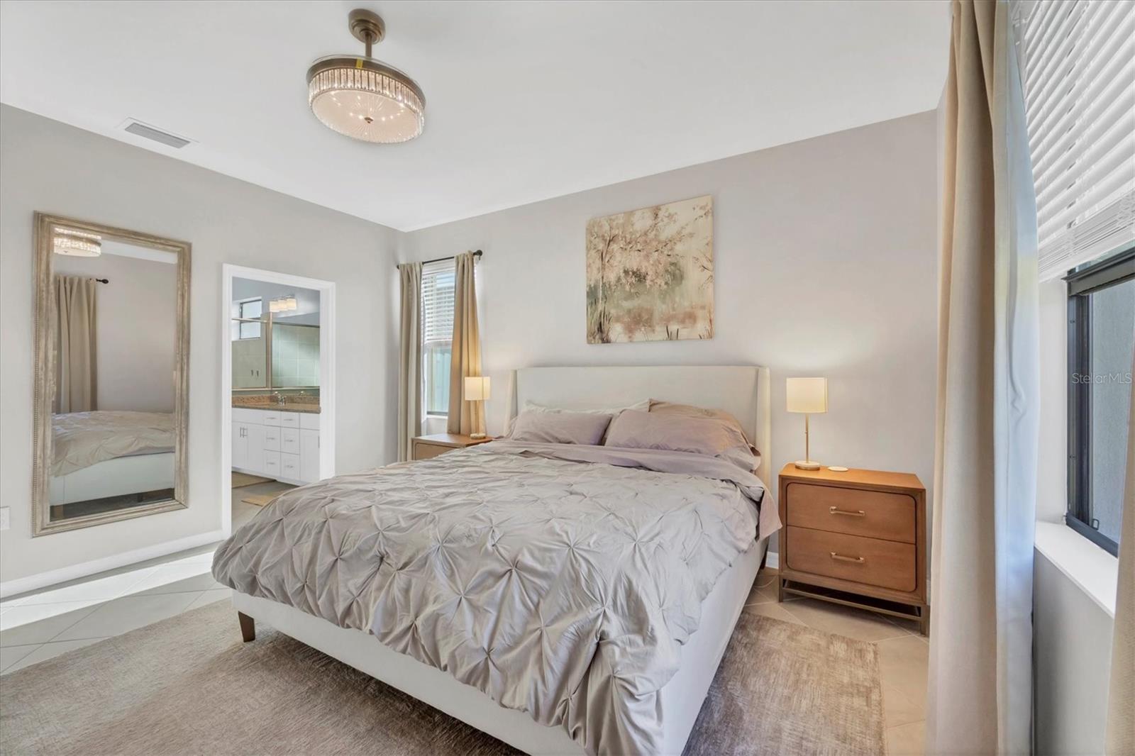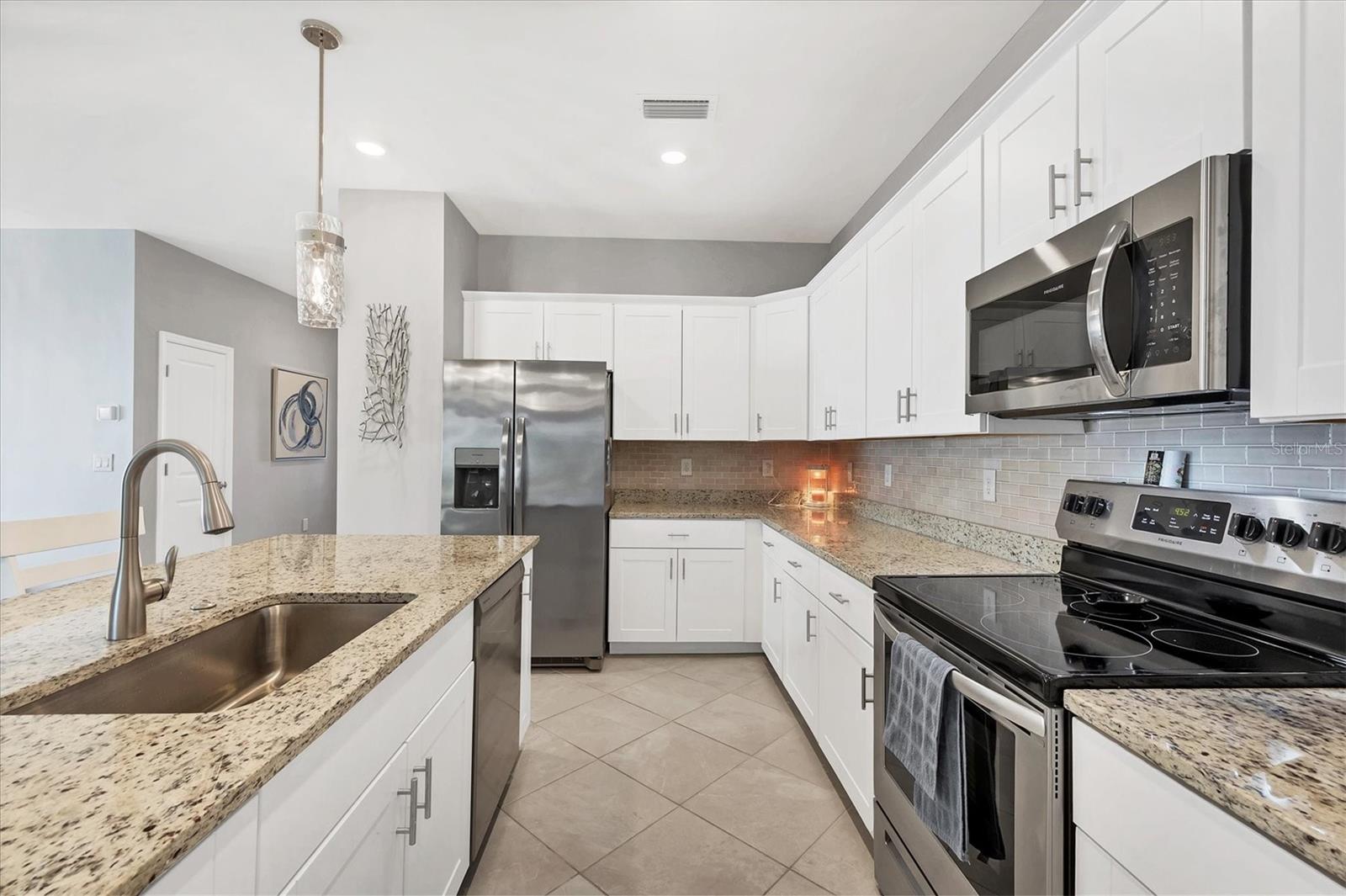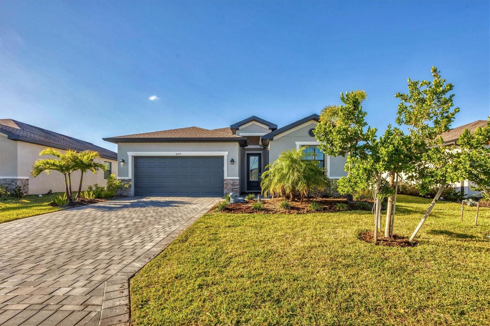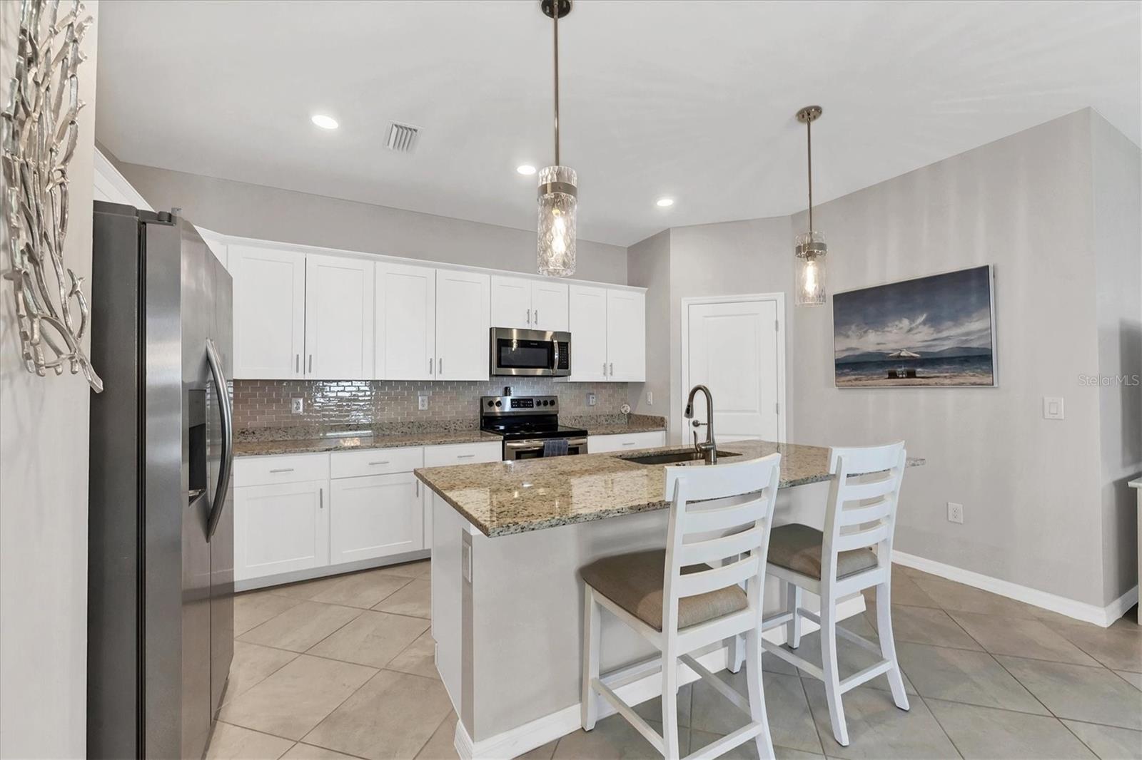Like New Trevi Model with 4 Bedrooms and 3 Bathrooms in this Newer Gated Community with Clubhouse, Exercise Room, Heated Pool and Pickleball Courts. Live the Florida Lifestyle with Gorgeous Sunset Views from your Private Screened Lanai. Partial Lake Views and the Wooded Area behind this Home Bring Nature to Life. Watch Birds and Eagles flying. This Home Boasts Tile Throughout, Ceiling Fans and Dramatic Unique Lighting Fixtures. Upon Entry notice the Leaded Glass Door. The Foyer is nicely sized and as you Turn Left it opens up to a Guest Bathroom with Tub/Shower Combo and Granite Sink. 2 Guest Bedrooms are located on this Side of the Home both have nice Light and Closet Space. Further Down the Foyer a Left will take you to the Laundry Room which leads out to the Garage. Continuing thru is the 4th Bedroom Currently being used as an Office which has it's Own Private Bathroom, It's a Great Space for those Family members or Visitors requiring Privacy. Back out into the Main Area Notice the Large Kitchen with Granite Counters, 42 inch Cabinets with Soft Close Doors, Backsplash & Stainless Appliances. A walk-In Pantry is a Nice Bonus and the Pendant Lighting is Perfect. A Large Table will fit into this light and Bright Dining Room. Open Concept and Adjacent to the Livingroom gives out Door Views from Every Area. The Livingroom is large enough for a big Sectional or Multiple Chairs. The Lanai views and Sunsets can be Enjoyed inside or Out. The Owners Bedroom with Ensuite enjoys a Walk-In Shower Double Vanity with Granite and Walk-in Closet. The Yard is Fenced and the Windows have Upgraded Honeycomb Blinds. Additional Hurricane protection for the Front Door and Lanai is the Electric Roll Down Shutters. The Community has Underground Utilities, Sidewalks Street Lights and is Golf Cart Friendly. See what it's like living the Florida Dream.