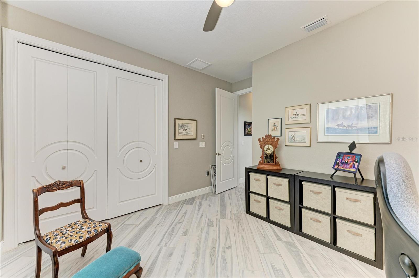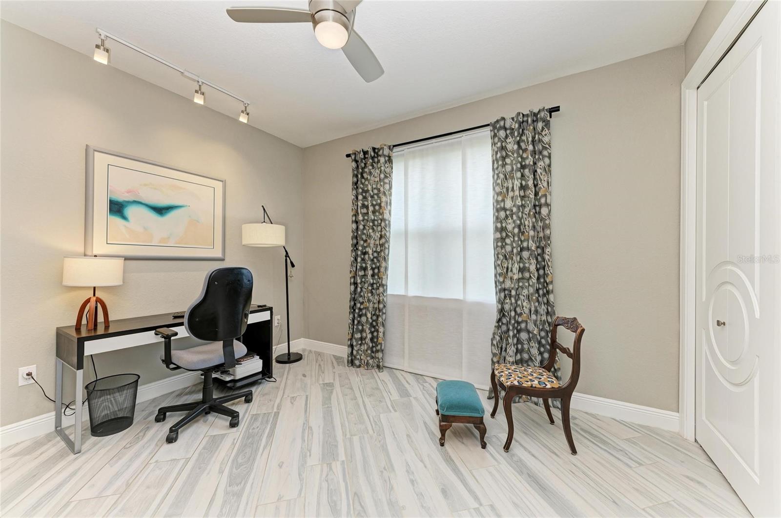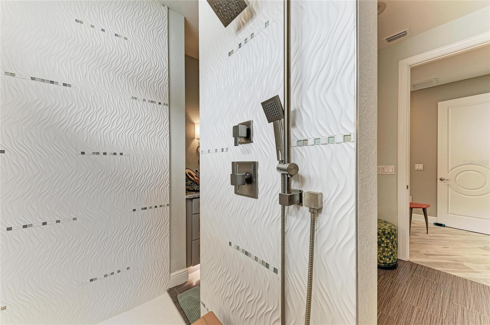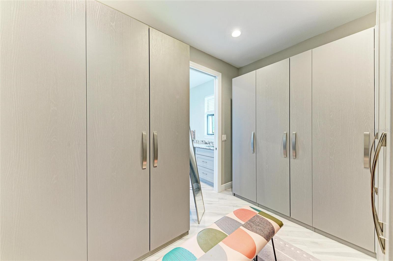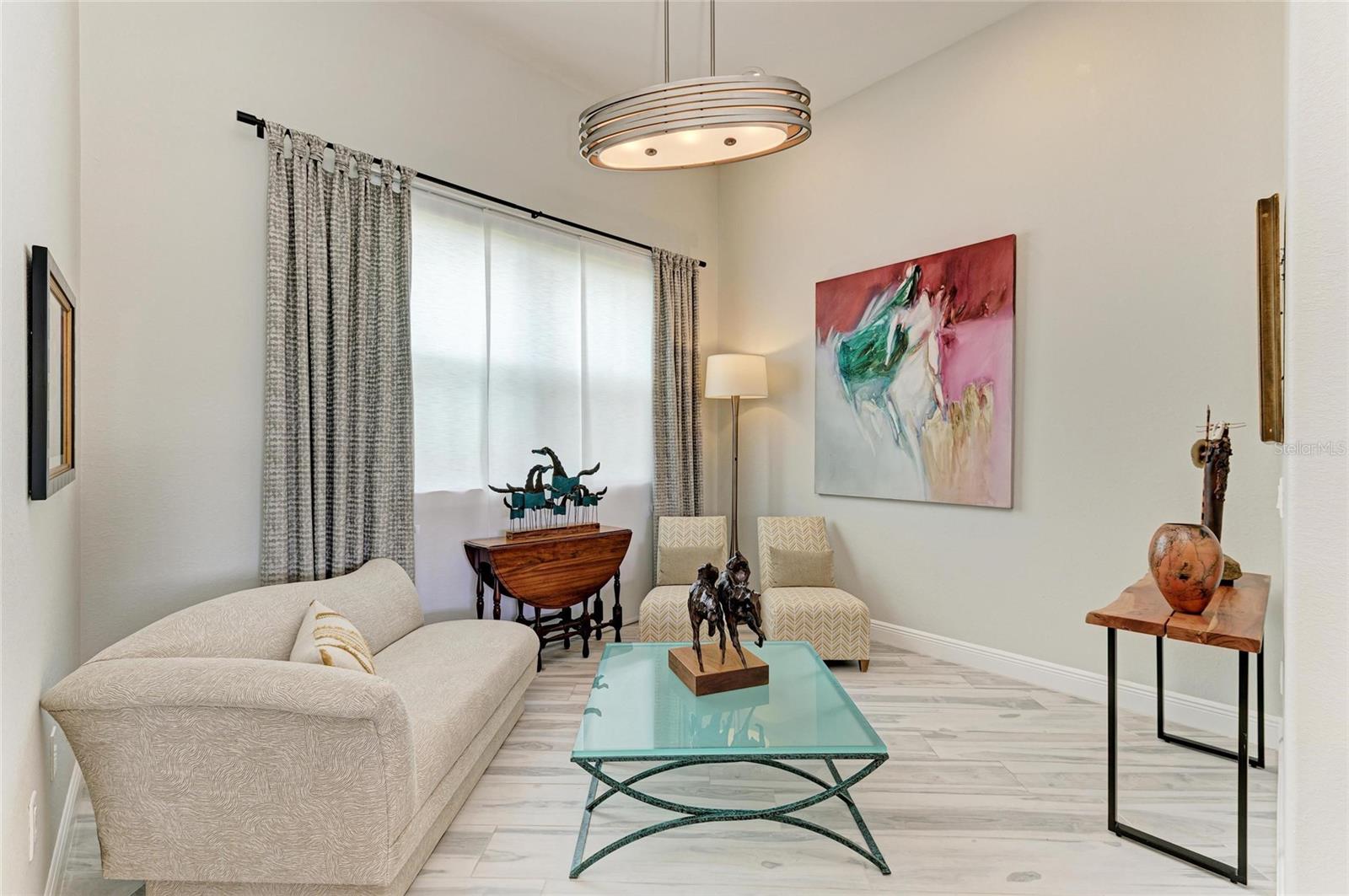 Nestled along serene waterfront, this exquisite contemporary home featuring 3 bedrooms, 2 baths plus bonus room blends modern luxury with elegant design, offering an unparalleled living experience. Pavered driveway and walkway guide you to the step up entry welcoming you inside where you're greeted by an expansive great room featuring a striking coffered 12-foot ceiling, setting the tone for the home’s sophisticated open-plan design. The heart of the home is its gourmet kitchen, showcasing an 8 x 6 foot upgraded granite island, large walk-in pantry, 58" custom wood cabinets with soft close doors and drawers, premium Bosch induction cooktop and Kitchen Aid appliances, all accentuated by upper and lower cabinet lighting. The primary bedroom is a true retreat, highlighted by a tray ceiling with soft lighting and crown molding with sliding doors to the lanai/pool area creating a tranquil atmosphere. The 9x13 walk-in closet is a masterpiece in organization, outfitted with designer shelving and stylish doors provides ample storage for your personal belongings and opens into the laundry room. The ensuite bath is equally impressive, with his/her granite-topped vanities featuring sleek vessel sinks upon granite counters, and a luxurious walk-through shower with upgraded tile work that enhances the spa-like feel. Throughout the living areas and primary suite, non-slip porcelain plank tile adds both elegance and functionality. Solid 8-foot wood doors can be found throughout the home, contributing to its refined, timeless character. Extensive lighting upgrades throughout the space illuminate the home’s unique architectural details. Step through the zero-corner, 10-foot sliding pocket doors that seamlessly connect the great room to the expansive 31x13-foot lanai and pool area. The outdoor space is a true extension of the home, offering a covered dining area, a cozy fireplace, an outdoor kitchen with marine grade cabinet with granite top, and a stunning white pine tongue-and-groove ceiling that adds warmth and charm. The lanai overlooks the pool area, where a 42 x 30-1/2-foot paver deck surrounds a heated, saltwater pool with pebble tec finish, complete with an integral step-up spa with same pebble tec finish. Approved variance allowed sellers to extend the pool surround by 5 feet creating a larger space for entertaining closer to the water. The home is equipped with a multi-zone HVAC system, ensuring comfort throughout every room. Exterior showcases rain gutters, lighting, and mature landscaping that is irrigated from the canal with an enclosed irrigation pump that provides the option to use city water. The 10 x 30 composite dock is the perfect spot for your fishing enjoyment or to dock your boat. The attached garage boasts an air conditioned combination art room/workshop and also presents an ADA compliant ramp for accessing home's entrance. Additional attributes are InReach brand power lifts that eliminate the need for using a ladder to add or remove items that are out of reach. Additionally, all windows are impact resistant. Sliders are either impact or protected by Kevlar screening. With meticulous attention to detail both inside and out, this waterfront home offers the perfect balance of luxury, comfort, and style.