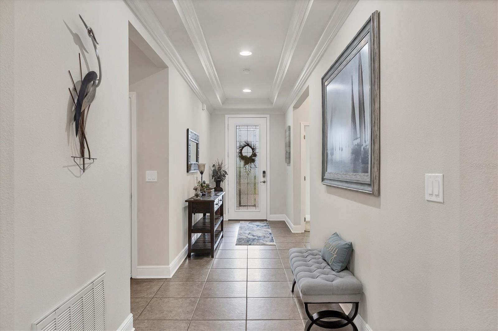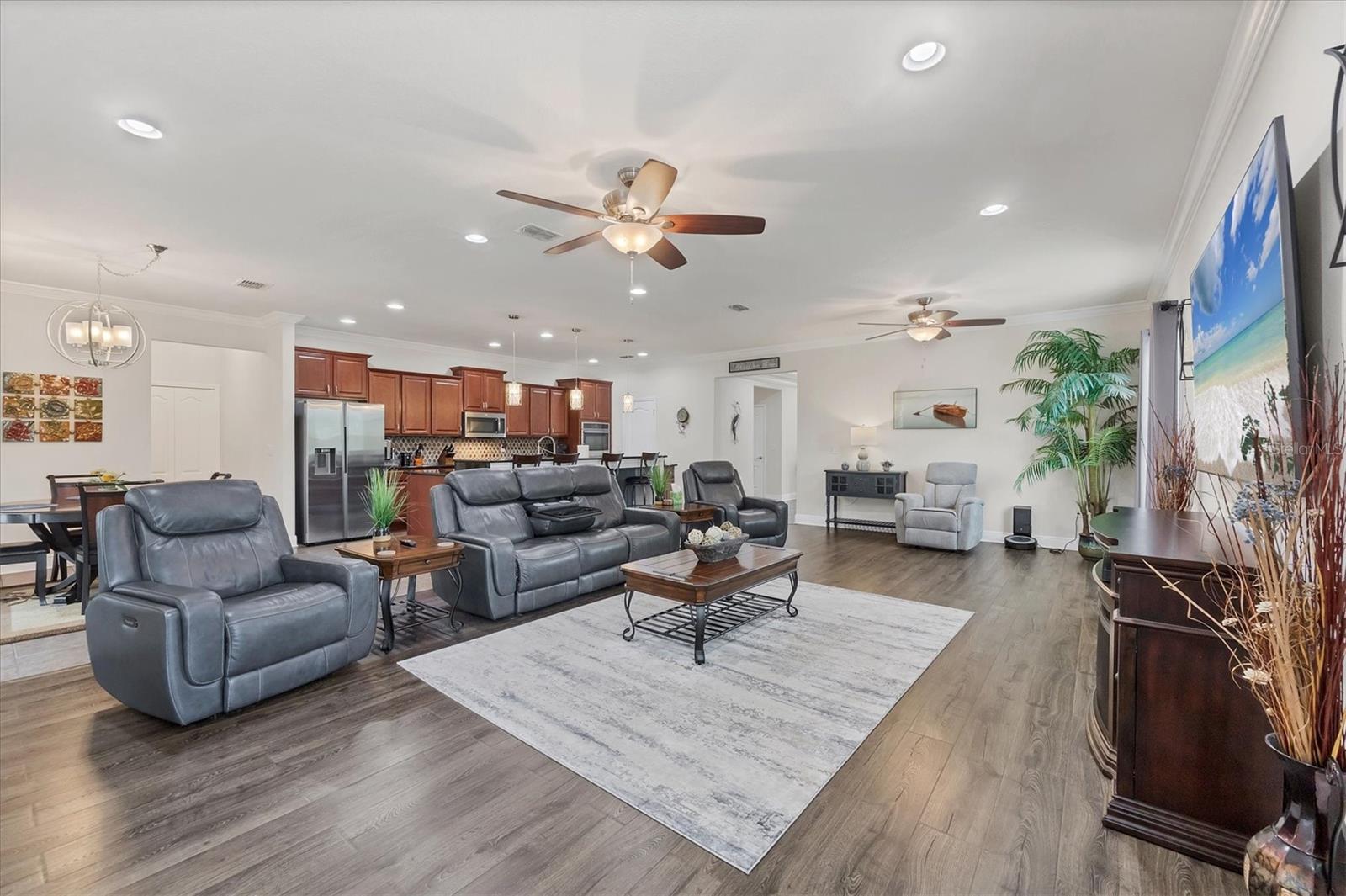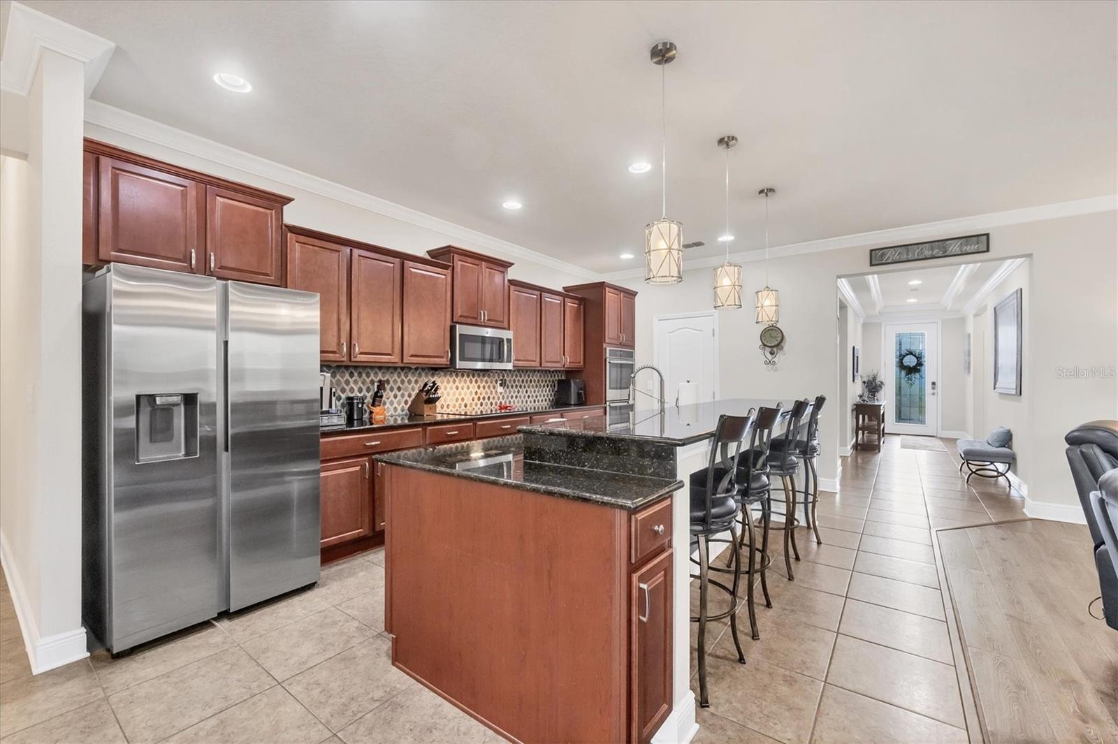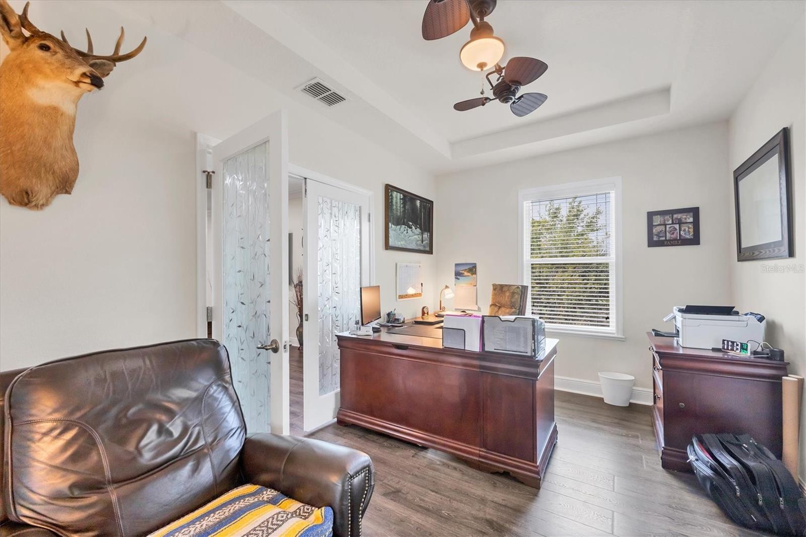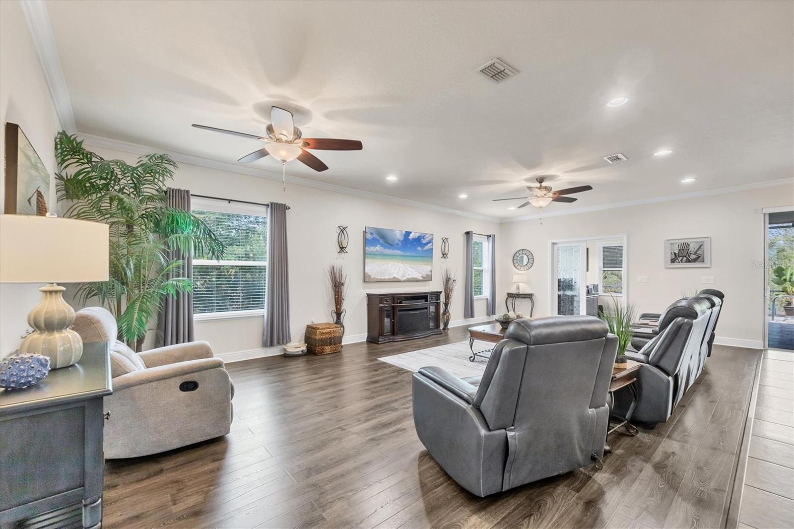 Under contract-accepting backup offers. MOTIVATED SELLERS! Nestled in the sought-after community of South Gulf Cove, this stunning 4-bedroom, 3-bathroom pool home with a 3-car garage offers both luxury and comfort. A charming leaded glass front door with a phantom screen welcomes you inside, where you'll find an open and inviting layout filled with natural light. The beautifully designed kitchen boasts solid wood cabinets, granite countertops, a tile backsplash, a closet pantry, a double oven, stainless steel appliances, and a breakfast bar—perfect for entertaining. Stylish lighting, ceiling fans, crown molding, and elegant finishes flow throughout the home. The spacious master suite features a luxurious en-suite bath with a garden tub, a walk-in tiled shower, dual sinks, and a generous walk-in closet. A private guest suite includes its own walk-in closet and an en-suite bath with a walk-in tiled shower, while bedrooms three and four are split from the others for added privacy and share a well-appointed bath with a tub-shower combo. The dedicated office space offers access to the pool lanai, creating a seamless indoor-outdoor connection. A large inside laundry room with a sink adds convenience. Step outside to the expansive lanai with a new 2023 pool cage, where you can relax in the sun or shade while enjoying the saltwater pool, heated by a brand-new 2024 pool heater. The private backyard and hurricane shutters provide peace of mind. Additional features include motorized screens for the 3-car garage, making this home as practical as it is beautiful. The South Gulf Cove community offers an array of amenities, including a park, playground, bike and walking paths, and a community boat ramp for boating enthusiasts. Located just minutes from shopping, dining, fishing, boating, and gorgeous Gulf beaches, this home has it all! Don't miss the opportunity to own this exceptional South Gulf Cove retreat!
