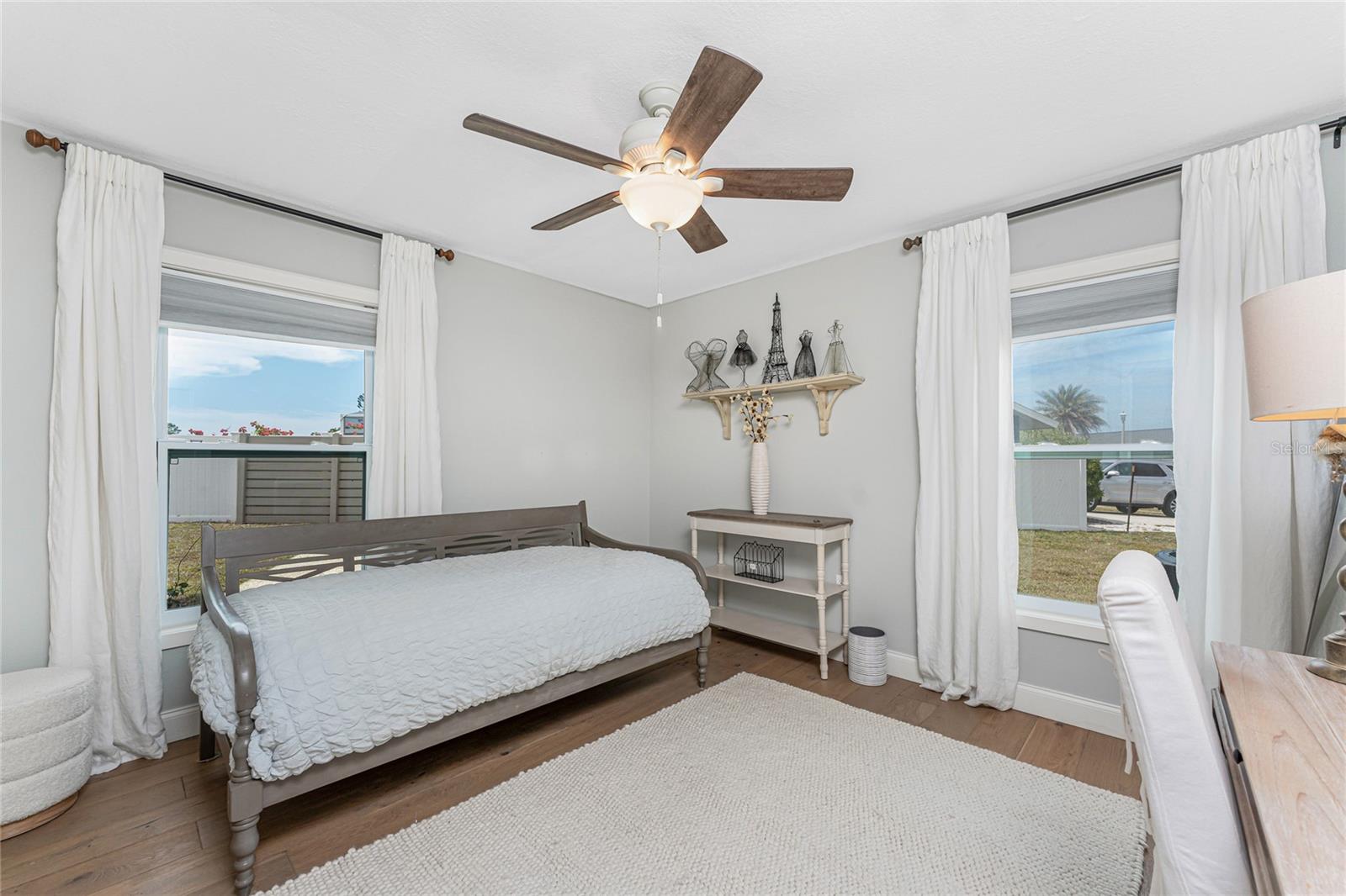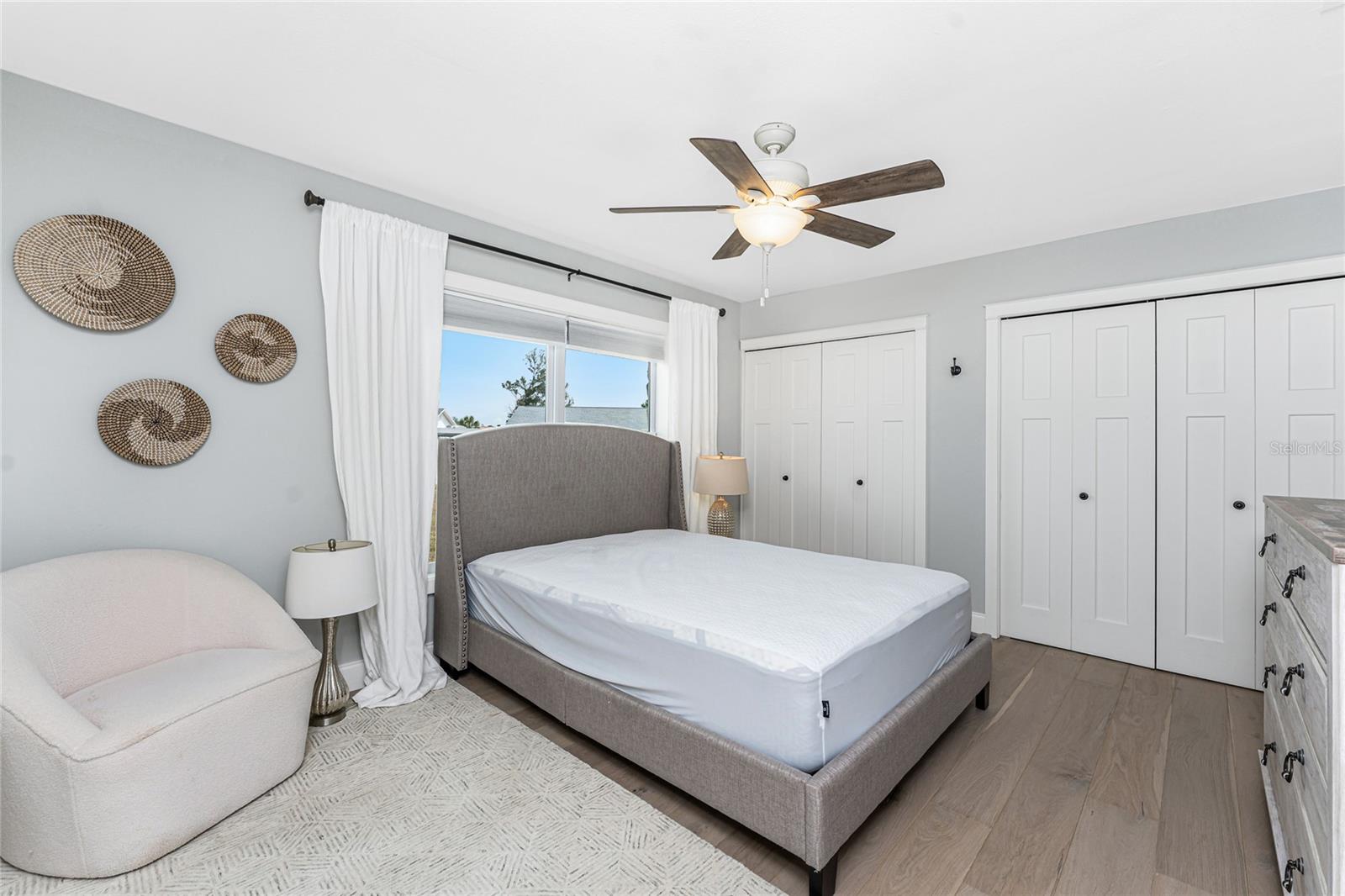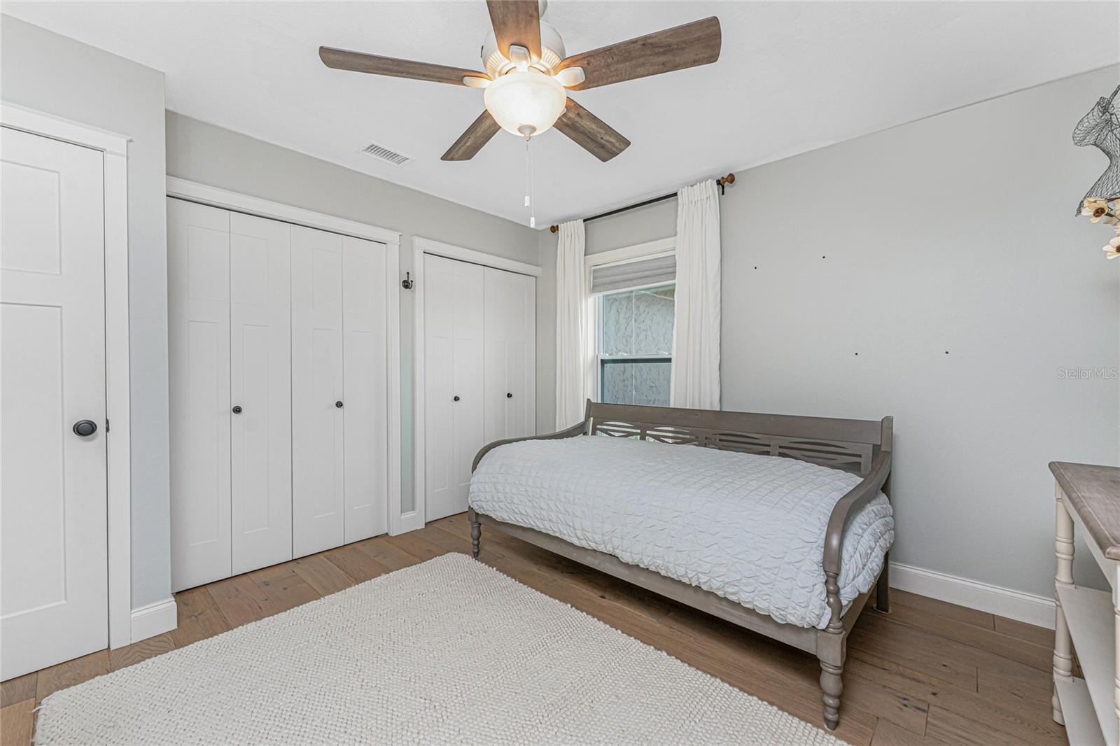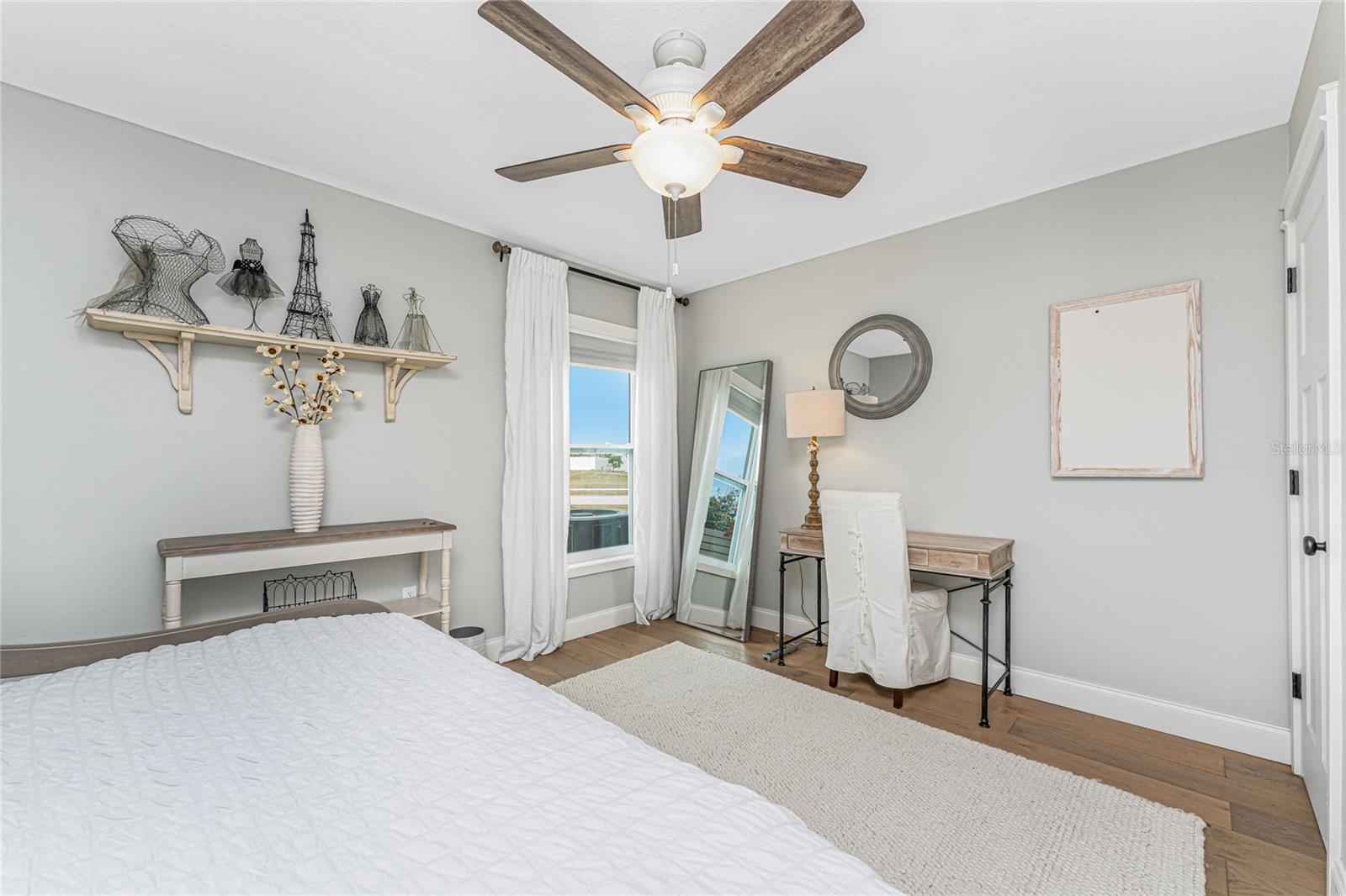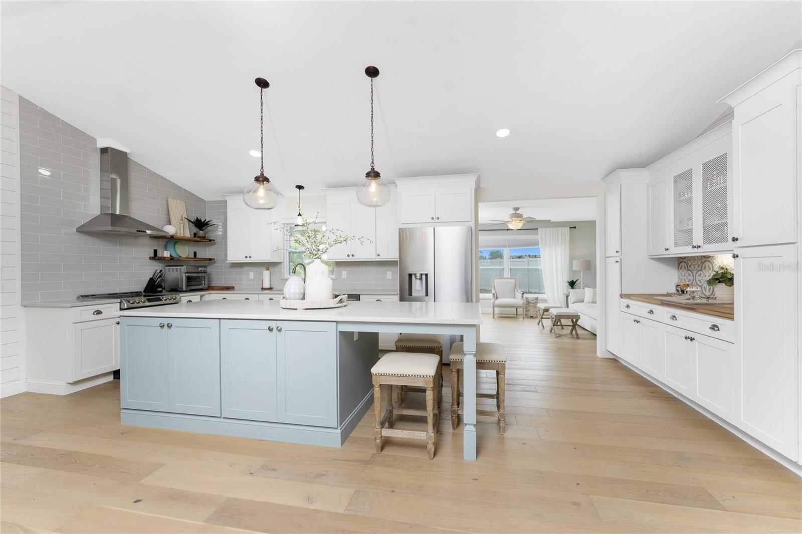 WOW!!! Wait till you view the interior of this two-bedroom, two bath oversized single-car garage home. The quality of craftsmanship is next level; floor to ceiling clapboard walls, countertop to ceiling kitchen backsplash, custom wall panel design in primary bedroom and fully tiled showers in bathrooms. The stunning and spacious kitchen offers a perfect balance of beauty and function. A generous island with built-in microwave includes seating for three & quartz countertops. The kitchen also includes a stainless-steel hood over a glass cook-top stove/range, and all stainless-steel LG appliances. Solid wood plank flooring throughout provides warmth and touch of class. This bright and airy home features a Cathedral ceiling in the Dining Area and Kitchen, and a south facing Family Room adjacent to the screened/covered lanai with an open patio beyond. The primary bedroom includes two side-by-side built-in closets and a stunning en-suite bathroom through the beautiful rolling barn door. Roof replaced 2022, Impact windows and sliding glass door 2018, new electrical panel 2018, and a Manabloc plumbing system. This home is located in the deed restricted community of Gardens of Gulf Cove, which offers lots of amenities: two community pools, a clubhouse and rec center. Fitness equipment, shuffleboard, tennis and pickleball courts, basketball, bocce ball and even a pool table. Conveniently located near public beaches, championship golf courses, shopping and a variety of dining options. The community is also close to the Charlotte County Sports Park, home to the Tampa Bay Rays spring training and Cool Today Park, home to the Atlanta Braves training facility. This a must see to believe home!!!