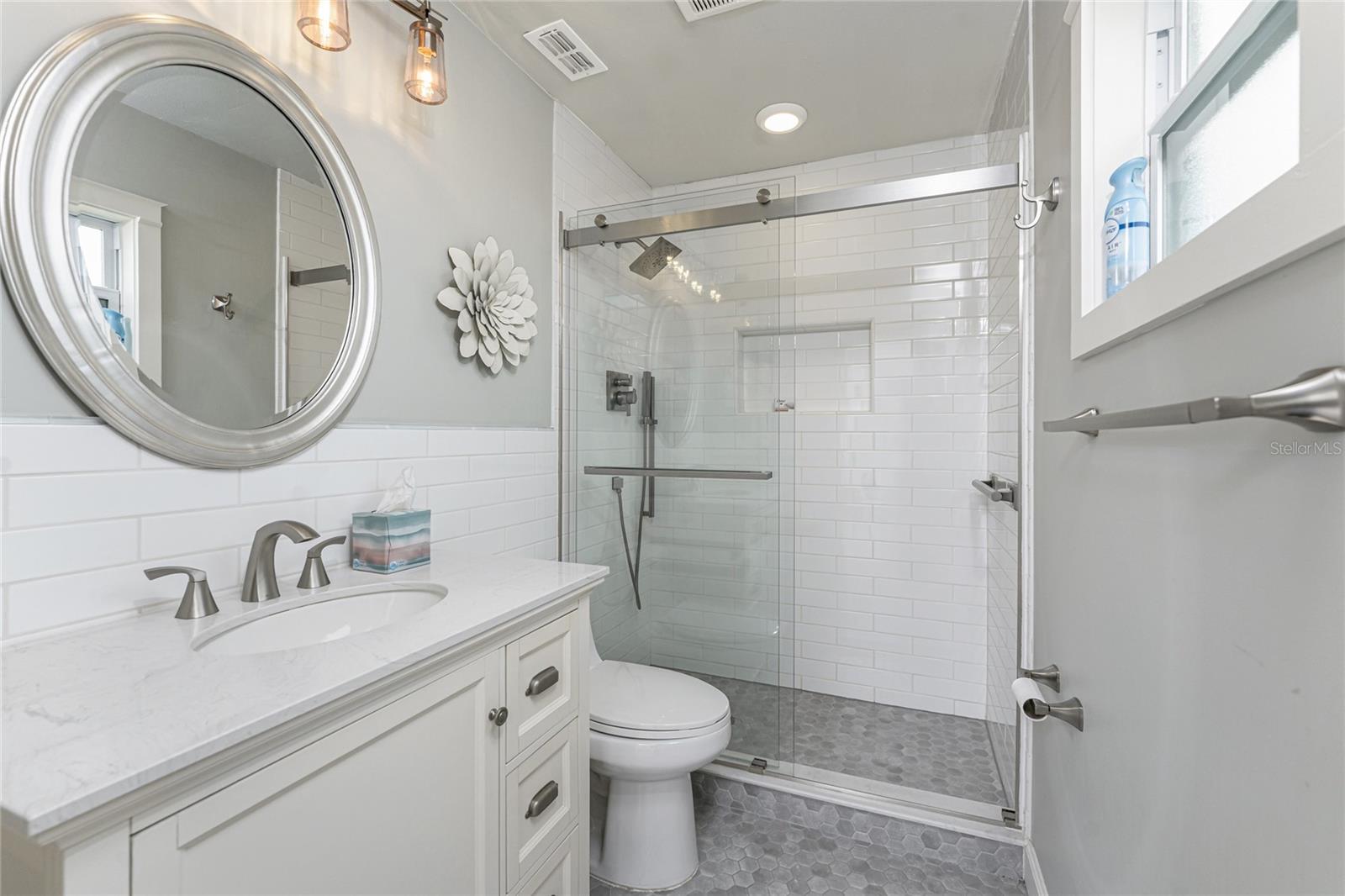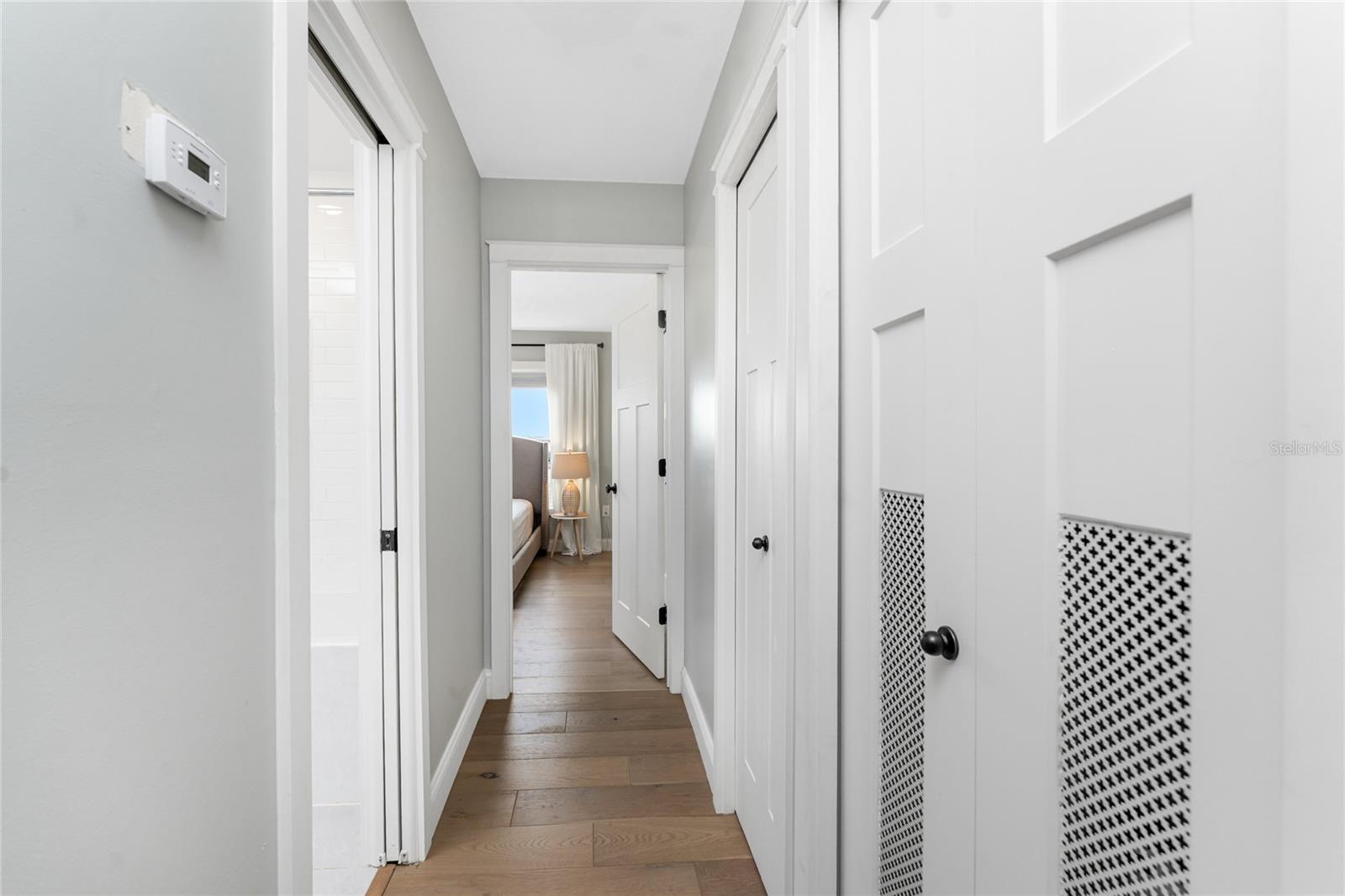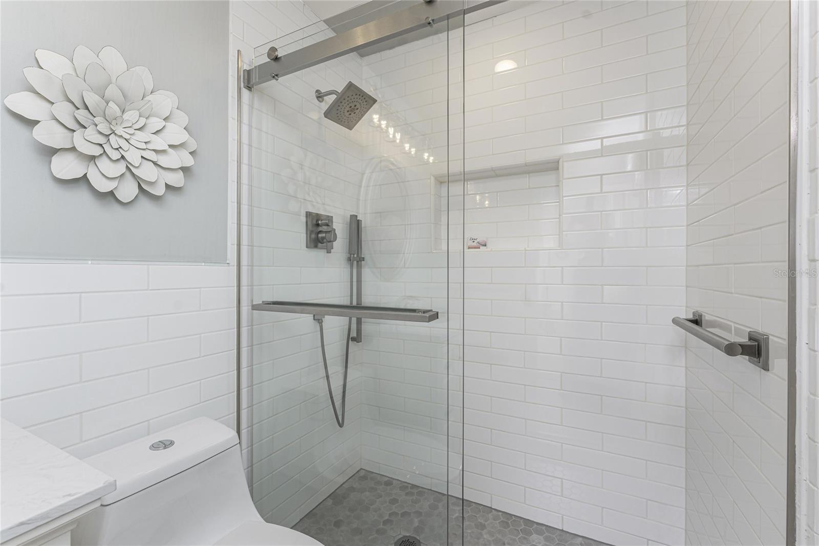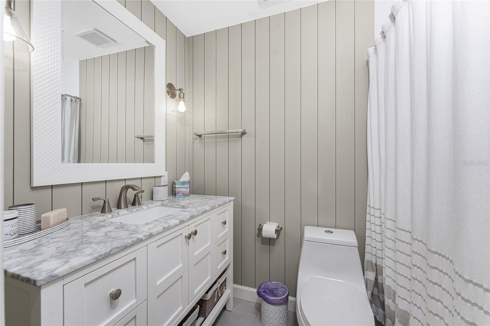WOW!!! Wait till you view the interior of this two-bedroom, two bath oversized single-car garage home. The quality of craftsmanship is next level; floor to ceiling clapboard walls, countertop to ceiling kitchen backsplash, custom wall panel design in primary bedroom and fully tiled showers in bathrooms. The stunning and spacious kitchen offers a perfect balance of beauty and function. A generous island with built-in microwave includes seating for three & quartz countertops. The kitchen also includes a stainless-steel hood over a glass cook-top stove/range, and all stainless-steel LG appliances. Solid wood plank flooring throughout provides warmth and touch of class. This bright and airy home features a Cathedral ceiling in the Dining Area and Kitchen, and a south facing Family Room adjacent to the screened/covered lanai with an open patio beyond. The primary bedroom includes two side-by-side built-in closets and a stunning en-suite bathroom through the beautiful rolling barn door. Roof replaced 2022, Impact windows and sliding glass door 2018, new electrical panel 2018, and a Manabloc plumbing system. This home is located in the deed restricted community of Gardens of Gulf Cove, which offers lots of amenities: two community pools, a clubhouse and rec center. Fitness equipment, shuffleboard, tennis and pickleball courts, basketball, bocce ball and even a pool table. Conveniently located near public beaches, championship golf courses, shopping and a variety of dining options. The community is also close to the Charlotte County Sports Park, home to the Tampa Bay Rays spring training and Cool Today Park, home to the Atlanta Braves training facility. This a must see to believe home!!!