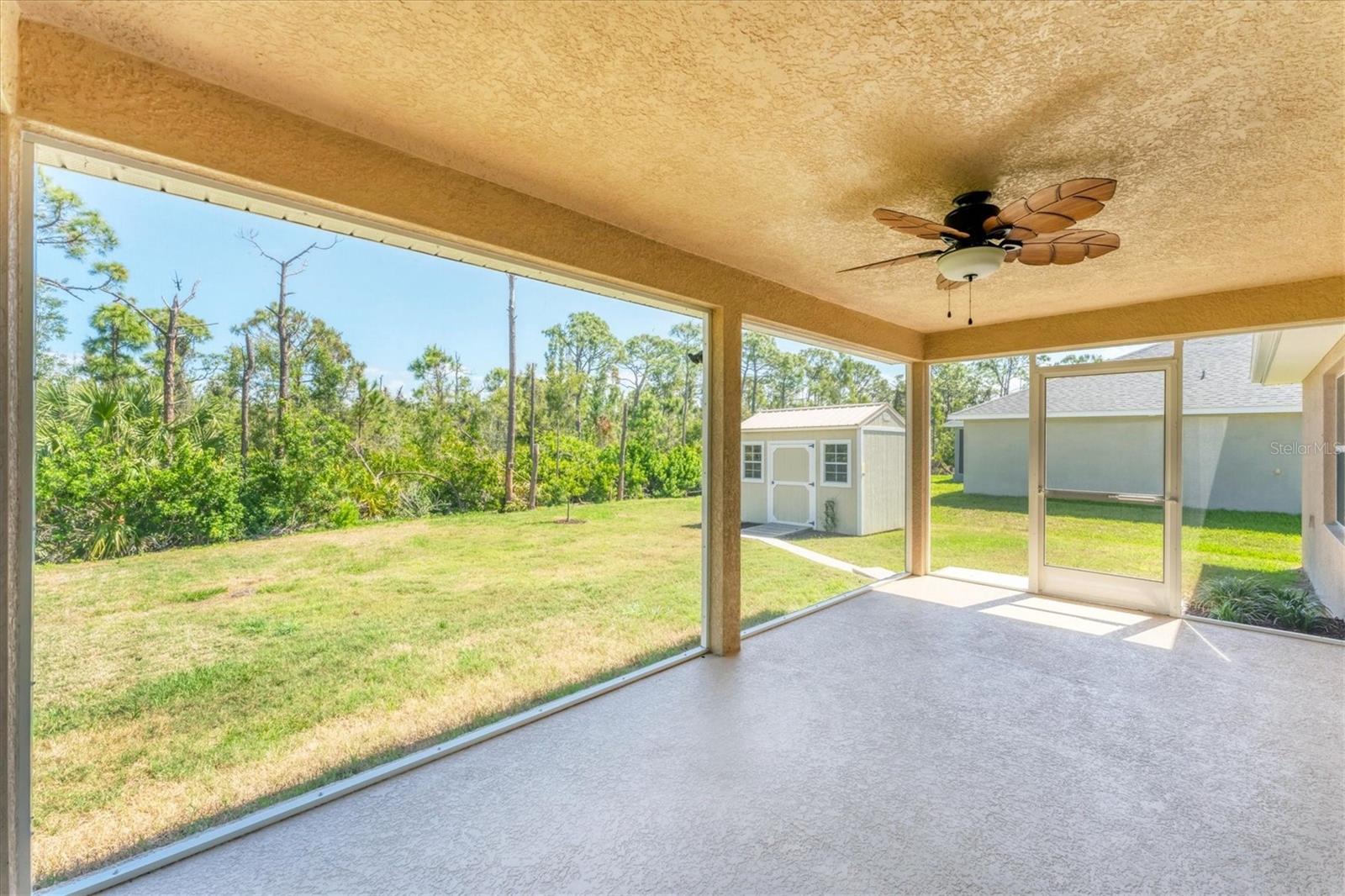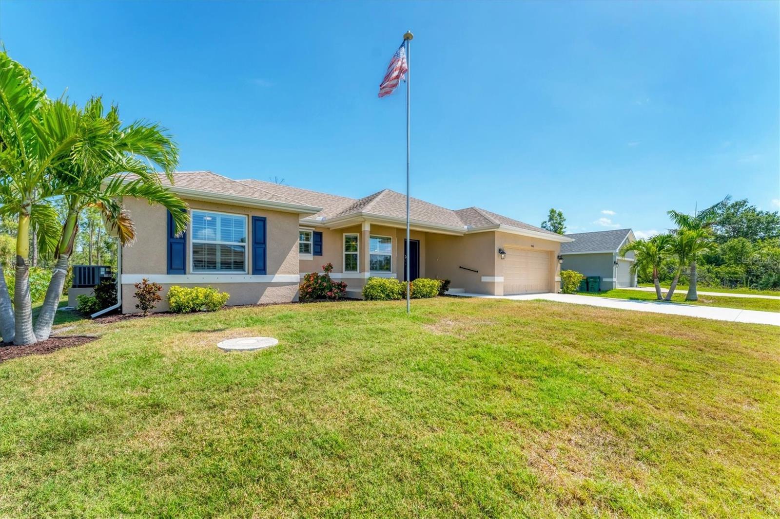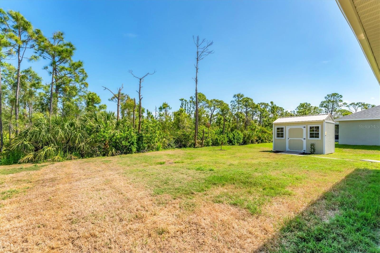 This Coastal-themed residence on the Cape Haze Peninsula offers a serene and inviting atmosphere, with the added benefit of a private setting, backing up to HOA-owned property. Upon entering, you are welcomed into a space designed for both relaxation and family gatherings. The home is thoughtfully crafted with a focus on comfort and style, featuring quality finishes throughout.<br><br> The living room opens to the spacious backyard, creating a seamless connection between the indoors and outdoors. Luxury vinyl flooring flows throughout, complementing the open layout of the great room and master suite. The master suite is a peaceful retreat, featuring a walk-in shower, providing the perfect place to unwind. Generously sized guest bedrooms offer plenty of space for family and visitors.<br><br> The home is designed with a natural flow, with wide hallways and cathedral ceilings that add an open, airy feel to the space. The kitchen features a large bar top, custom backsplash, perfect for casual dining and entertaining.<br><br> The spacious lanai invites you to enjoy Florida’s pleasant weather, whether you’re relaxing or entertaining. The home is equipped with a complete irrigation system to keep your landscaping lush, and gutters surround the entire home, adding to its functionality and curb appeal. An additional shed provides convenient extra storage.<br><br> Located near golf courses and beaches, this home offers the perfect opportunity to enjoy the best of Florida living in a quiet, coastal setting, with added privacy from the HOA-owned property behind it.