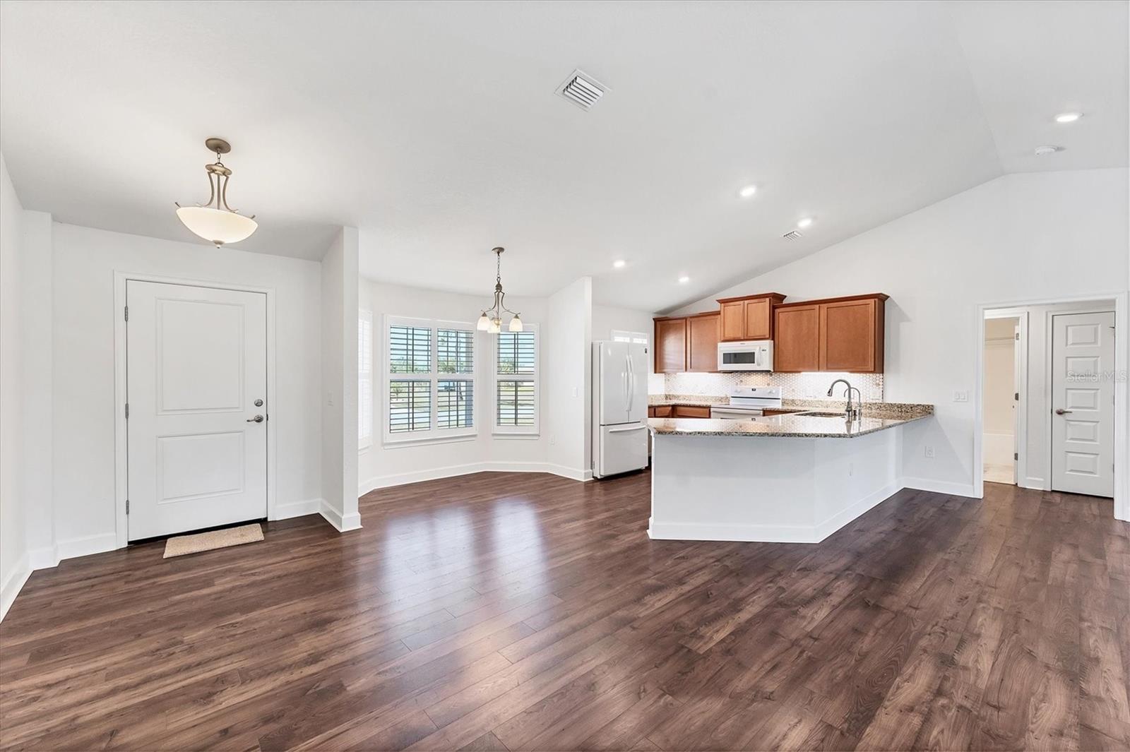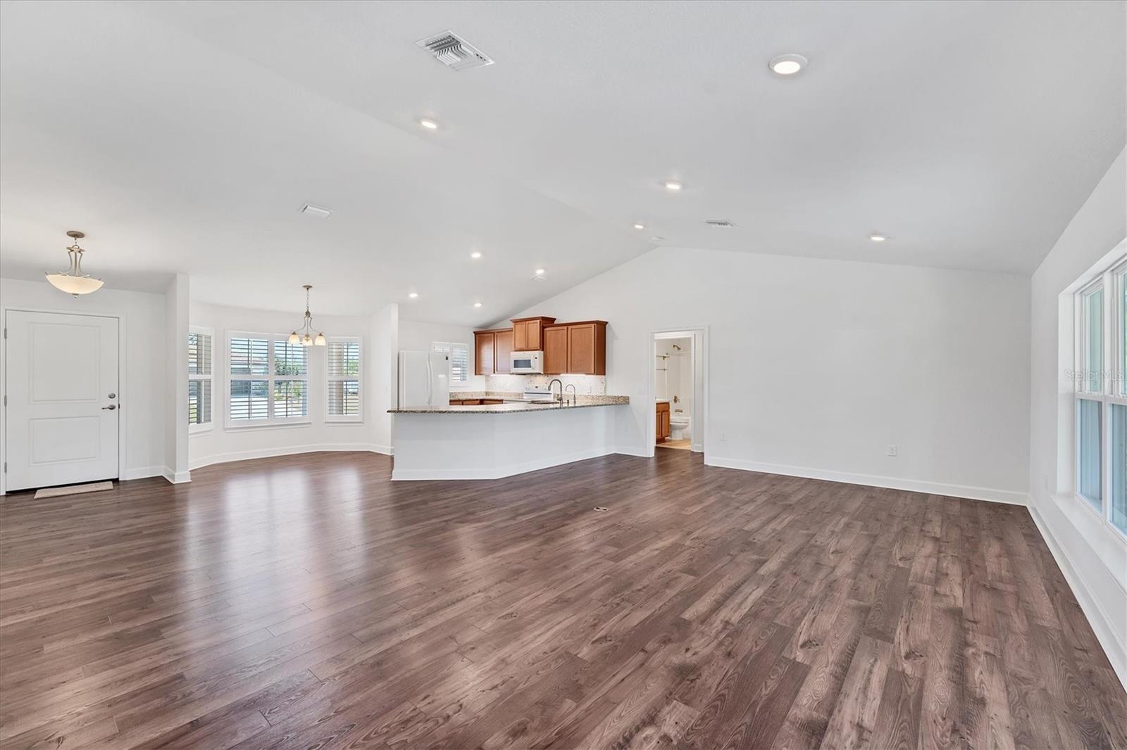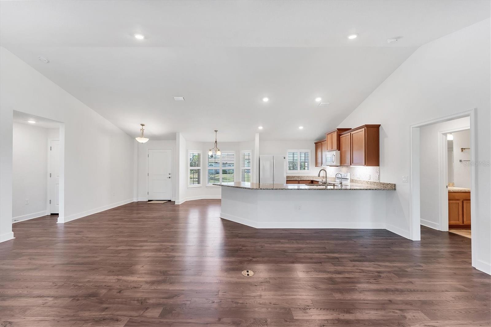 This Coastal-themed residence on the Cape Haze Peninsula offers a serene and inviting atmosphere, with the added benefit of a private setting, backing up to HOA-owned property. Upon entering, you are welcomed into a space designed for both relaxation and family gatherings. The home is thoughtfully crafted with a focus on comfort and style, featuring quality finishes throughout.<br><br> The living room opens to the spacious backyard, creating a seamless connection between the indoors and outdoors. Luxury vinyl flooring flows throughout, complementing the open layout of the great room and master suite. The master suite is a peaceful retreat, featuring a walk-in shower, providing the perfect place to unwind. Generously sized guest bedrooms offer plenty of space for family and visitors.<br><br> The home is designed with a natural flow, with wide hallways and cathedral ceilings that add an open, airy feel to the space. The kitchen features a large bar top, custom backsplash, perfect for casual dining and entertaining.<br><br> The spacious lanai invites you to enjoy Florida’s pleasant weather, whether you’re relaxing or entertaining. The home is equipped with a complete irrigation system to keep your landscaping lush, and gutters surround the entire home, adding to its functionality and curb appeal. An additional shed provides convenient extra storage.<br><br> Located near golf courses and beaches, this home offers the perfect opportunity to enjoy the best of Florida living in a quiet, coastal setting, with added privacy from the HOA-owned property behind it.