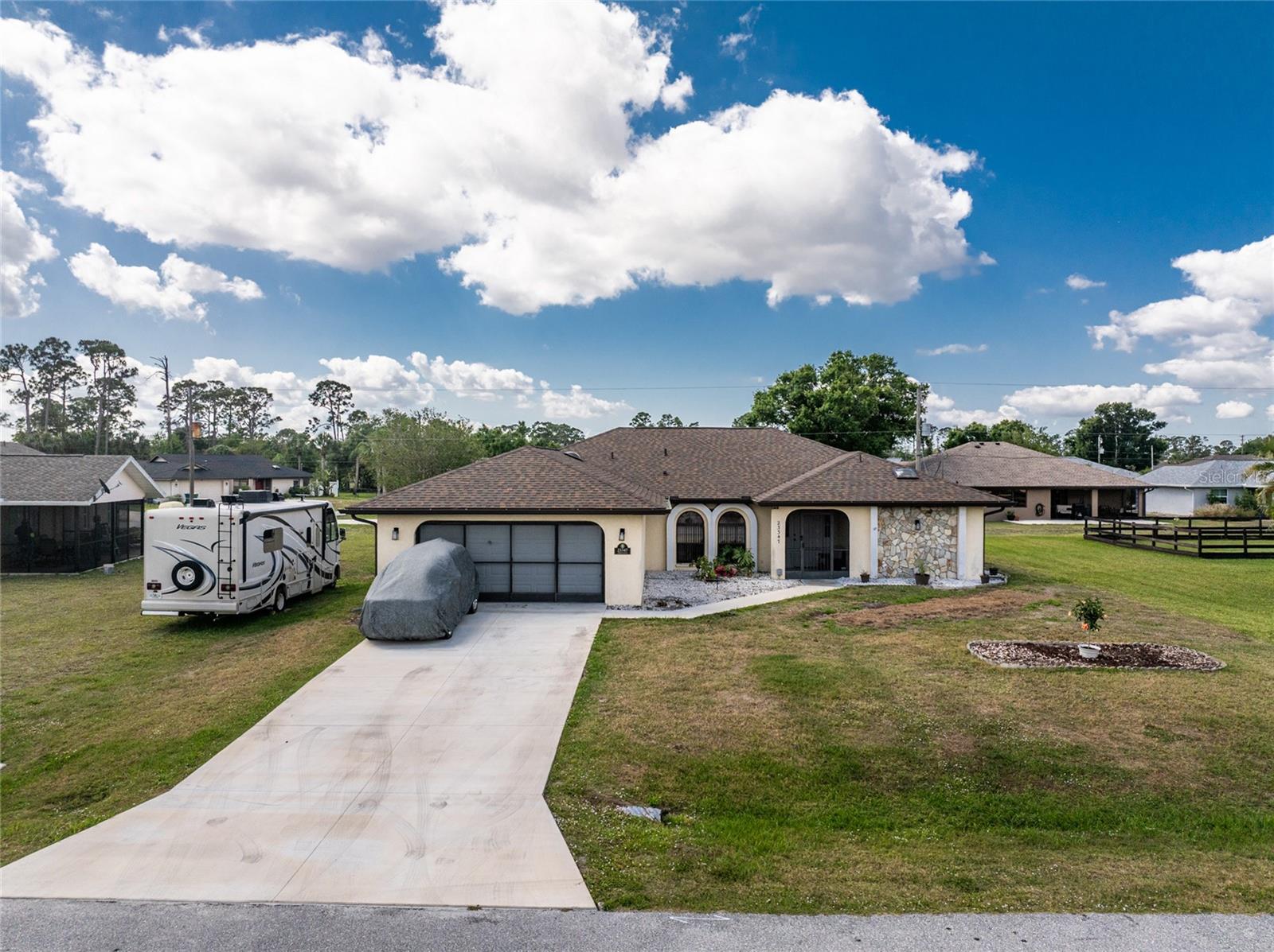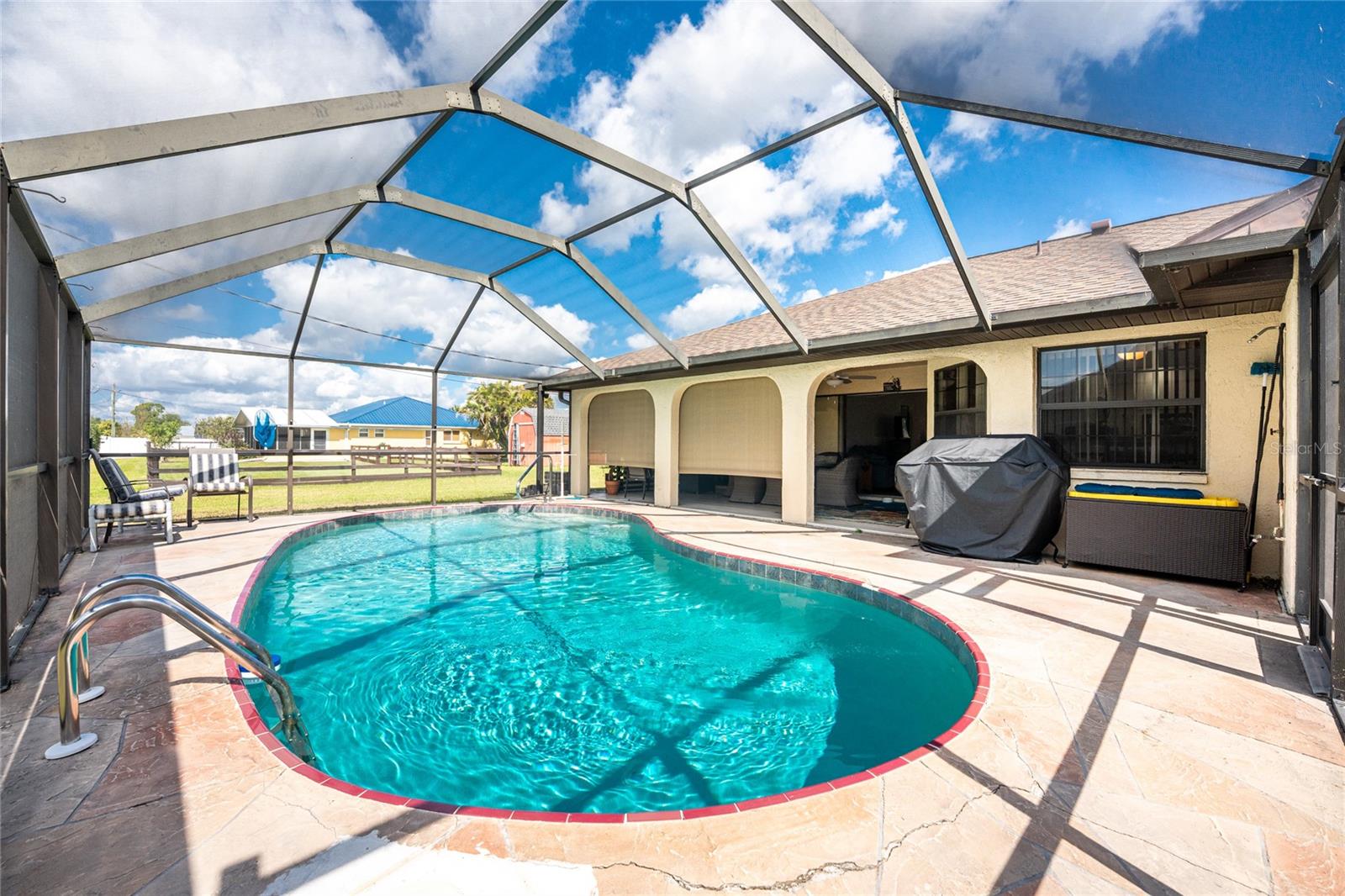 WELCOME TO YOUR DREAM HOME! Step inside this beautifully remodeled home where thoughtful design meets spacious comfort — perfect for both relaxation and entertaining! With over 2,000 square feet under air, this home features a formal living room, a spacious family room, and a chef-inspired kitchen that will delight anyone who loves to cook and host. The split-bedroom floor plan provides the ideal blend of space and privacy, while the expansive pool area is the ultimate gathering spot — whether you’re lounging in the sun or watching the big game on the outdoor TV. Recent updates include: New Roof (2023) Hurricane Impact Windows, Doors, and Garage Door Fresh Interior Paint Brand New Kitchen Cabinets with Granite Countertops New Ceiling Fans Throughout ...and so much more! Located just minutes from I-75, and close to golf courses, shopping, dining, and all your everyday essentials, this home offers the perfect blend of comfort and convenience. Don’t miss your chance to own this stunning home — schedule your private showing today! ***FURNITURE IS NEGOTIABLE INCLUDING THE DEEP FREEZER IN GARAGE AND THE PATIO FURNITURE ON A SEPARATE AGREEMENT