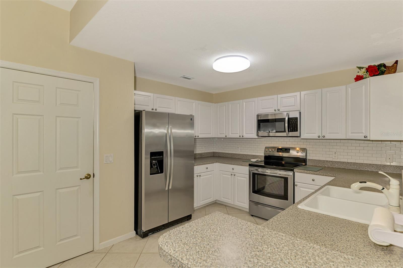 Sale subject to Lease Jan-March 2026-Desirable 1st floor condo in Grand Vista. Turn-key furnished. This home features 2 bedrooms, 2 baths, a dining room, and an attached 1-car garage. The kitchen has stainless steel appliances, Corian countertops with a tile backsplash, and upgraded lighting with pendant lights over the bar area. Ceramic tile is laid diagonally throughout. The Lanai offers a shaded preserve view, custom tile flooring, electric Storm Smart hurricane shutters, and a ceiling fan. The main living area is open and great for entertaining and features an upgraded ceiling fan with dual fans and a light. The dining room features a tray ceiling and could be converted into a game room or used for additional guests. A new air conditioner was installed in 2022. Accordion Storm Smart shutters are on all other windows. The master bedroom has wood flooring and the guest bedroom has carpeting. Washer and dryer included. A screen door has been added to the garage door to allow airflow on nice days and a lockable storm door was added to the front entry door for additional security and/or lighting. The garage floor has been upgraded with an epoxy finish. The outdoor yard area has been beautifully landscaped and is very peaceful and serene. This condo offers a blend of comfort, convenience, and elegance. Please ask the agent for details. This neighborhood has a pool, spa, and screened cabana area exclusive to Grand Vista owners and their house guests. Act fast – this enchanting home won't stay on the market for long! Schedule a showing today and begin living the grand Florida lifestyle you’ve been dreaming of! Riverwood is a premier community in Southwest Florida, offering an exquisitely landscaped setting along the tranquil Myakka River, nestled between Fort Myers and Sarasota in Port Charlotte. Spanning 1,300 acres, Riverwood's master- planned community seamlessly blends natural beauty with modern living trends. Enjoy an array of lifestyle amenities, including a recreational center equipped with state-of-the-art fitness facilities, a lap pool, resort-style pool, six Har-Tru tennis courts, pickleball courts, lawn croquet, and a dog park, among others! Riverwood Golf Club is recognized as a Golf Digest-rated 4 ½ star golf course, and Riverwood Beach Club on the Gulf of Mexico offers memberships based on availability. Conveniently located near the new Sunseeker Resort, which boasts a variety of restaurants, the Tampa Rays and Atlanta Braves spring training facilities, boating, world-class fishing, and the pristine beaches of Southwest Florida, Riverwood's location provides easy access to a wealth of cultural and lifestyle opportunities.