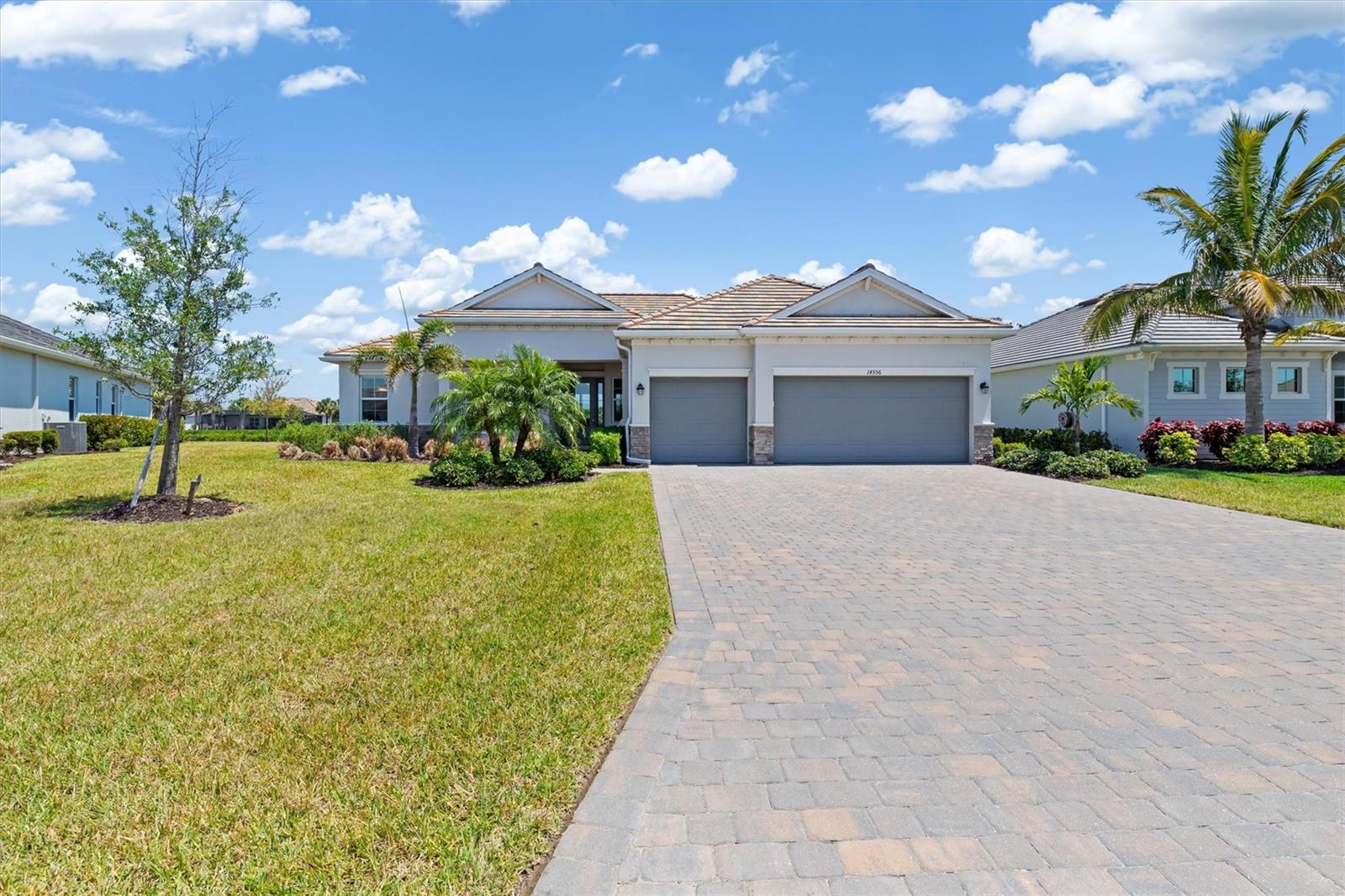 ENJOY THE FLORIDA LIFESTYLE! Newer (2021 built) pool home on canal leading to the Gulf, NO BRIDGES! 2357 sq ft under air, 3 beds, 2.5 baths and DEN/OFFICE in gated community. Make the most of waterfront living with your boat ready to go on the 10,000lb lift behind your home. Enjoy a day on the water, then come home and relax by the saltwater pool! Truly move-in ready home, TURNKEY FURNISHED, with all-tile flooring, IMPACT WINDOWS, FRONT DOOR & SLIDERS for peace of mind and open floorplan with high ceilings, perfect for entertaining or everyday living! Located on an oversized lot in a small cul-de-sac with paver driveway and parking for 6+ cars, this property is centrally located in a small, friendly, gated community with only 165 homes. When you enter the front door, you immediately see the views over the pool and canal from the family room with high, trey ceiling and sliders which open to the lanai and pool area. The well-equipped kitchen has a huge granite island, designer backsplash, double oven/microwave, stainless appliances, plenty of cabinets/storage and opens to the formal dining and dinette areas, as well as overlooking the family room for maximum enjoyment of cooking or entertaining at home. This is a very popular and flexible floorplan, with split bedrooms and a separate DEN/OFFICE with double doors, perfect for hobby, library, at-home working or could even be used as a 4th bedroom. The home is well elevated, with a berm behind the house, so has not experienced any flooding from recent storms (and the entire neighborhood remained dry). Sellers have also added an automatic hurricane shutter to the lanai for additional peace of mind and security, which allows the owner to lock and go if they travel or want to use as a second home. LOW HOA FEES include gate, yard maintenance and landscaping. Florida living is all about the outdoor space! Enjoy your screened saltwater heated pool year-round, with pavered lanai and pool deck which features an OUTDOOR GRILL AND FRIDGE for you to enjoy cook-outs while relaxing in the pool area. From the screened pool deck, you can take the composite walkway to the dock and boat lift and enjoy the sunsets and view over the waterway, including the canal leading to the lock. With no bridges, you are 5 minutes from Charlotte Harbor and can make the most of all the boating locations - Punta Gorda, Myakka River, ICW, Cabbage Key, Boca Grande & more! Enjoy exploring and finding hidden beaches or fishing spots! Discover this hidden gem in the Port Charlotte/Englewood area, with easy access to the beaches, boating, trails, shopping and restaurants. You are a short drive from Wellen Park with the Atlanta Braves Spring training stadium and the Tampa Bay Rays Spring Training stadium in Port Charlotte, and have easy access to Englewood's Dearborn Street for unique shopping, dining and the weekly Farmers Market. There are 99 holes of golf at Rotonda Golf & Country Club and quick access to I-75 for trips to Tampa and Naples. This is a fast-developing area which has retained its small-town charm and you will always have things to do! CALL TODAY FOR A SHOWING!