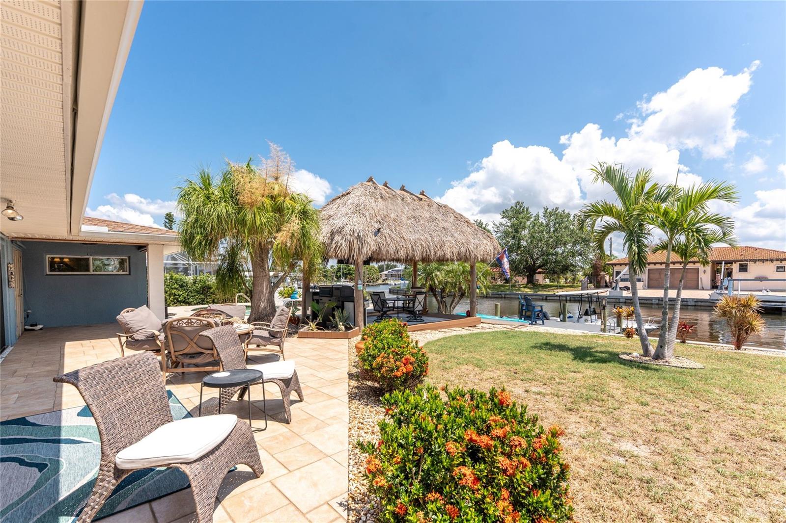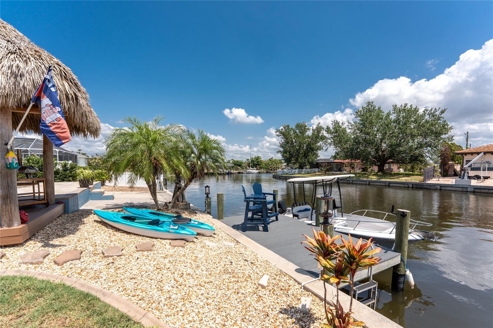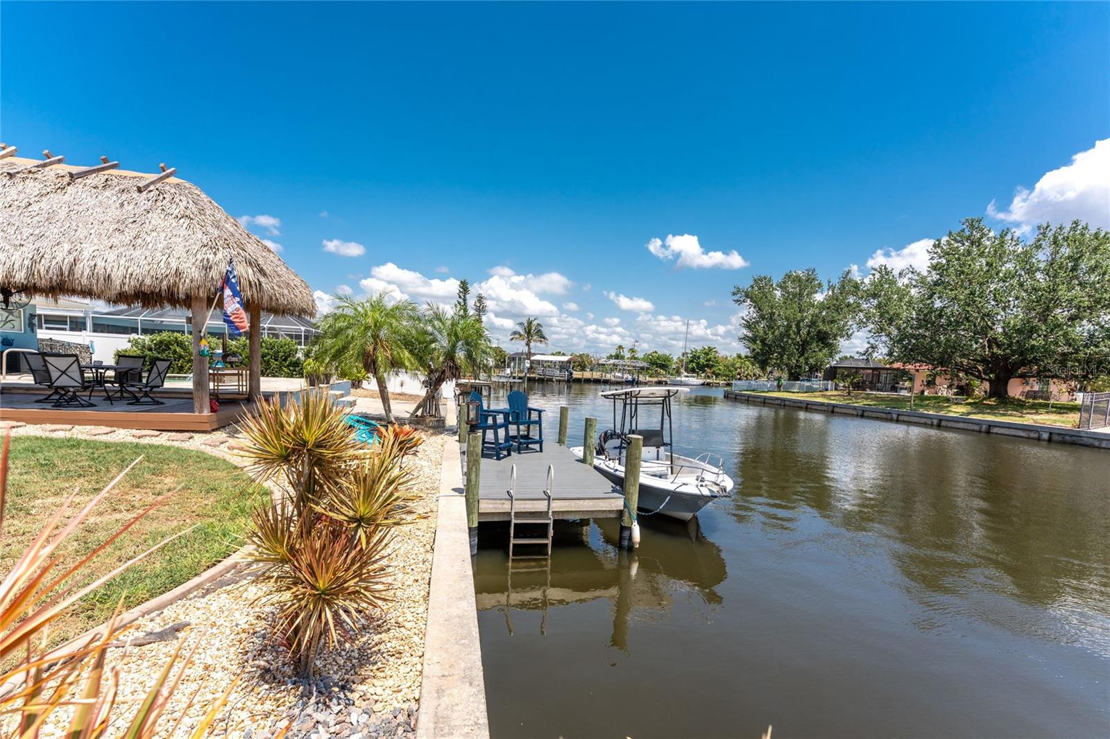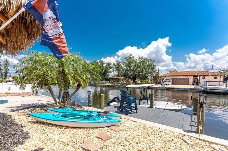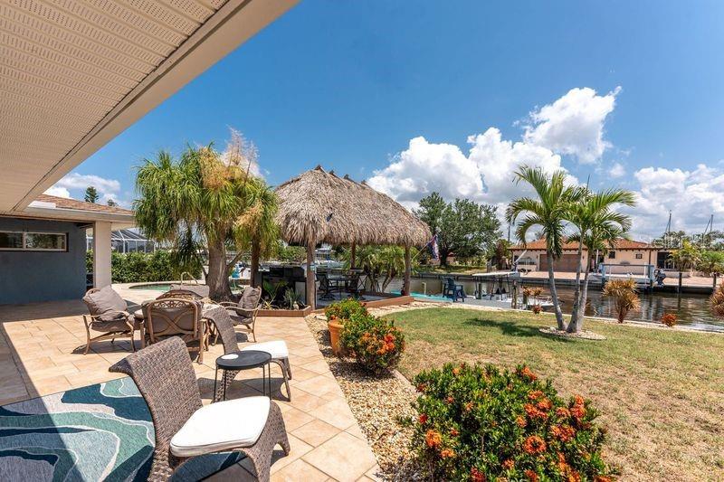 Welcome to paradise! WATERFRONT home with SAILBOAT ACCESS has it all! Located on a quiet cul-de-sac this dreamy Florida home has a gorgeous view of Edgewater Lake, with direct access to Charlotte Harbor through the Morgan Waterway. MOVE-IN READY with a SPLIT FLOOR PLAN and SO MANY NEW UPDATES! The entire home has been tastefully painted in soothing coastal colors sure to please anyone who walks through the door. No need to worry with a 2023 NEW ROOF and a BRAND-NEW APRIL 2025 DAIKIN AC SYSTEM with a NEST THERMOSTAT to keep you comfortable and help conserve energy. CUSTOM KITCHEN with GRANITE countertops and BREAKFAST BAR, SS appliances, TRAY CEILING, BUILT-IN WINE REFRIGERATOR, and a 5 burner PROPANE GAS COOKTOP. The Family Room has a double set of SLIDERS and looks out over the pool and patio, with wonderful views of the Lake, and a DOG DOOR leading out to the back yard with a NEW 2023 INVISIBLE DOG FENCE for dog owners. A lovely gazebo with a 2025 NEW ROOF just outside the family room makes entertaining easy. The Owner’s Suite has gorgeous BARN DOORS for privacy, TRAY CEILING, wood floors, and a wonderful sitting area complete with a WOOD-BURNING FIREPLACE for those occasional chilly nights, surrounded in built-in shelves with sliding glass doors out to the pool area. The bedroom area has FRENCH Doors leading to the patio and a LARGE WALK- IN CLOSET and a BEAUTIFULLY UPDATED 2023 MAKE-UP AREA and VANITY. Master bath has an UPDATED 2023 VANITY and FAUCET and a LARGE WALK-IN SHOWER with PROPANE ON DEMAND TANKLESS WATER HEATER. Bedrooms 2 and 3 have NEW LVT FLOORING 2024. Guest bathroom is TASTEFULLY UPDATED 2024 with gorgeous French Monture Sliding Bathtub Door and tastefully updated vanity and mirror . Separate updated LAUNDRY ROOM off the kitchen has a large sink and PANTRY for extra storage with NEW 2024 WASHER/DRYER. A beautiful PAVED and LIGHTED walkway welcomes you home. Outdoor entertaining doesn't get any better with a GAZEBO off the family room with a 2024 NEW ROOF, a gorgeous TIKI HUT overlooking the canal and Edgewater Lake, HEATED SALTWATER POOL with NEW 2023 SALT CHLORINATOR and HEATER CHECK VALVE 2023. New 2024 TREX DOCK with NEW 16x10 PILINGS, DOCK LIGHTS AND LADDER with 100ft of cement seawall. NEW 2024 privacy VINYL FENCE. New 2024 SOLAR PANELS will reduce your energy bills and are transferable or can be removed. Don't wait to see it, this home will not disappoint! Call today for a private showing. It is the buyer's agent and/or buyer's responsibility to verify all fees, assessments, dimensions and representations. Paradise Exclusive Real Estate and the listing agent do not warrant accuracy of fees, dimensions, or other representations stated in this listing. Data in this listing are for informational purposes only and subject to change and/or omissions. The information contained here is deemed reliable. However, because 3rd parties have provided some of this information, we cannot guarantee its accuracy or completeness.