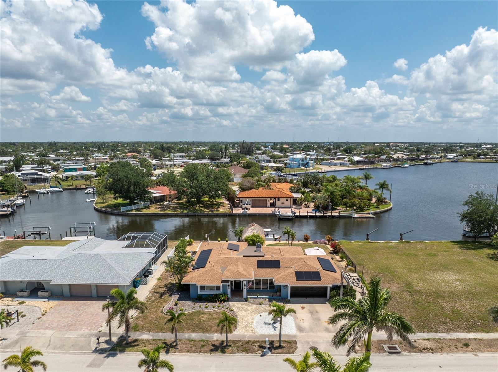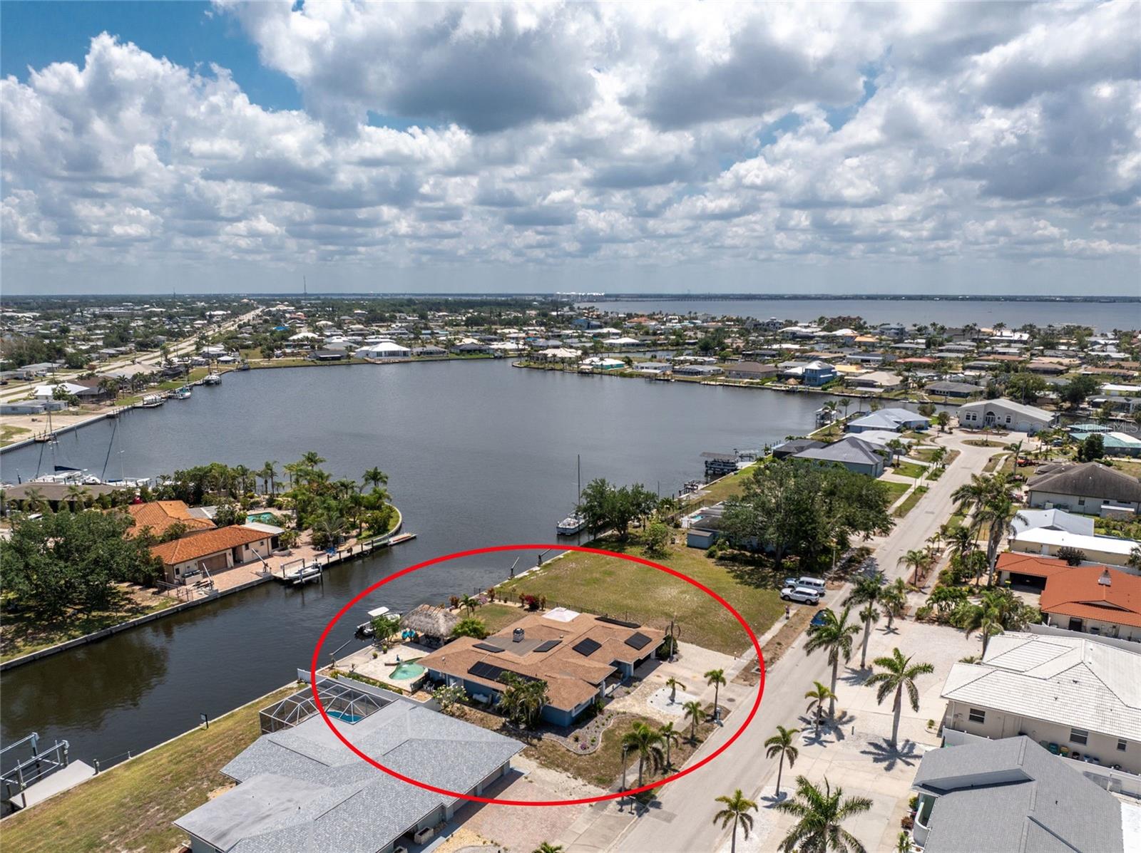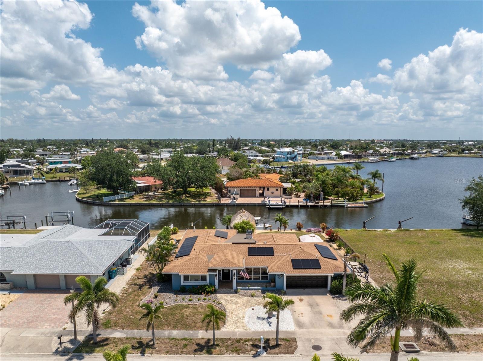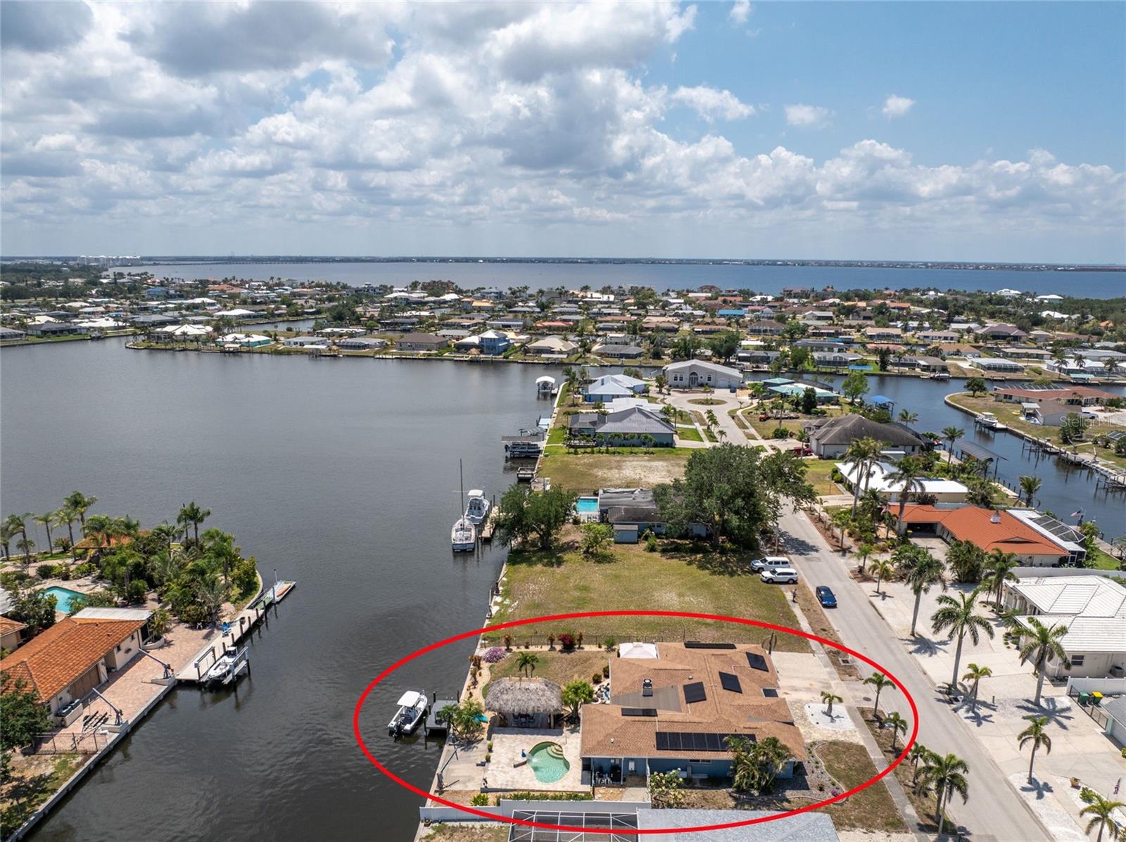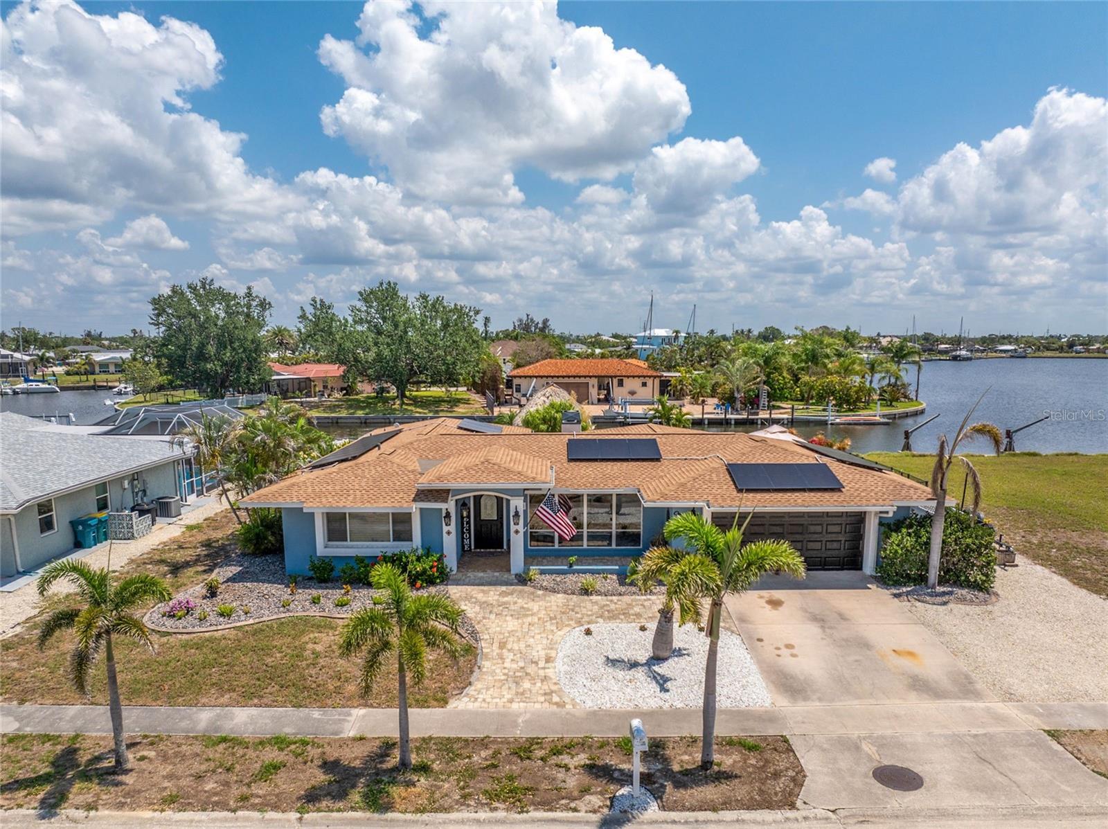 Welcome to paradise! WATERFRONT home with SAILBOAT ACCESS has it all! Located on a quiet cul-de-sac this dreamy Florida home has a gorgeous view of Edgewater Lake, with direct access to Charlotte Harbor through the Morgan Waterway. MOVE-IN READY with a SPLIT FLOOR PLAN and SO MANY NEW UPDATES! The entire home has been tastefully painted in soothing coastal colors sure to please anyone who walks through the door. No need to worry with a 2023 NEW ROOF and a BRAND-NEW APRIL 2025 DAIKIN AC SYSTEM with a NEST THERMOSTAT to keep you comfortable and help conserve energy. CUSTOM KITCHEN with GRANITE countertops and BREAKFAST BAR, SS appliances, TRAY CEILING, BUILT-IN WINE REFRIGERATOR, and a 5 burner PROPANE GAS COOKTOP. The Family Room has a double set of SLIDERS and looks out over the pool and patio, with wonderful views of the Lake, and a DOG DOOR leading out to the back yard with a NEW 2023 INVISIBLE DOG FENCE for dog owners. A lovely gazebo with a 2025 NEW ROOF just outside the family room makes entertaining easy. The Owner’s Suite has gorgeous BARN DOORS for privacy, TRAY CEILING, wood floors, and a wonderful sitting area complete with a WOOD-BURNING FIREPLACE for those occasional chilly nights, surrounded in built-in shelves with sliding glass doors out to the pool area. The bedroom area has FRENCH Doors leading to the patio and a LARGE WALK- IN CLOSET and a BEAUTIFULLY UPDATED 2023 MAKE-UP AREA and VANITY. Master bath has an UPDATED 2023 VANITY and FAUCET and a LARGE WALK-IN SHOWER with PROPANE ON DEMAND TANKLESS WATER HEATER. Bedrooms 2 and 3 have NEW LVT FLOORING 2024. Guest bathroom is TASTEFULLY UPDATED 2024 with gorgeous French Monture Sliding Bathtub Door and tastefully updated vanity and mirror . Separate updated LAUNDRY ROOM off the kitchen has a large sink and PANTRY for extra storage with NEW 2024 WASHER/DRYER. A beautiful PAVED and LIGHTED walkway welcomes you home. Outdoor entertaining doesn't get any better with a GAZEBO off the family room with a 2024 NEW ROOF, a gorgeous TIKI HUT overlooking the canal and Edgewater Lake, HEATED SALTWATER POOL with NEW 2023 SALT CHLORINATOR and HEATER CHECK VALVE 2023. New 2024 TREX DOCK with NEW 16x10 PILINGS, DOCK LIGHTS AND LADDER with 100ft of cement seawall. NEW 2024 privacy VINYL FENCE. New 2024 SOLAR PANELS will reduce your energy bills and are transferable or can be removed. Don't wait to see it, this home will not disappoint! Call today for a private showing. It is the buyer's agent and/or buyer's responsibility to verify all fees, assessments, dimensions and representations. Paradise Exclusive Real Estate and the listing agent do not warrant accuracy of fees, dimensions, or other representations stated in this listing. Data in this listing are for informational purposes only and subject to change and/or omissions. The information contained here is deemed reliable. However, because 3rd parties have provided some of this information, we cannot guarantee its accuracy or completeness.
