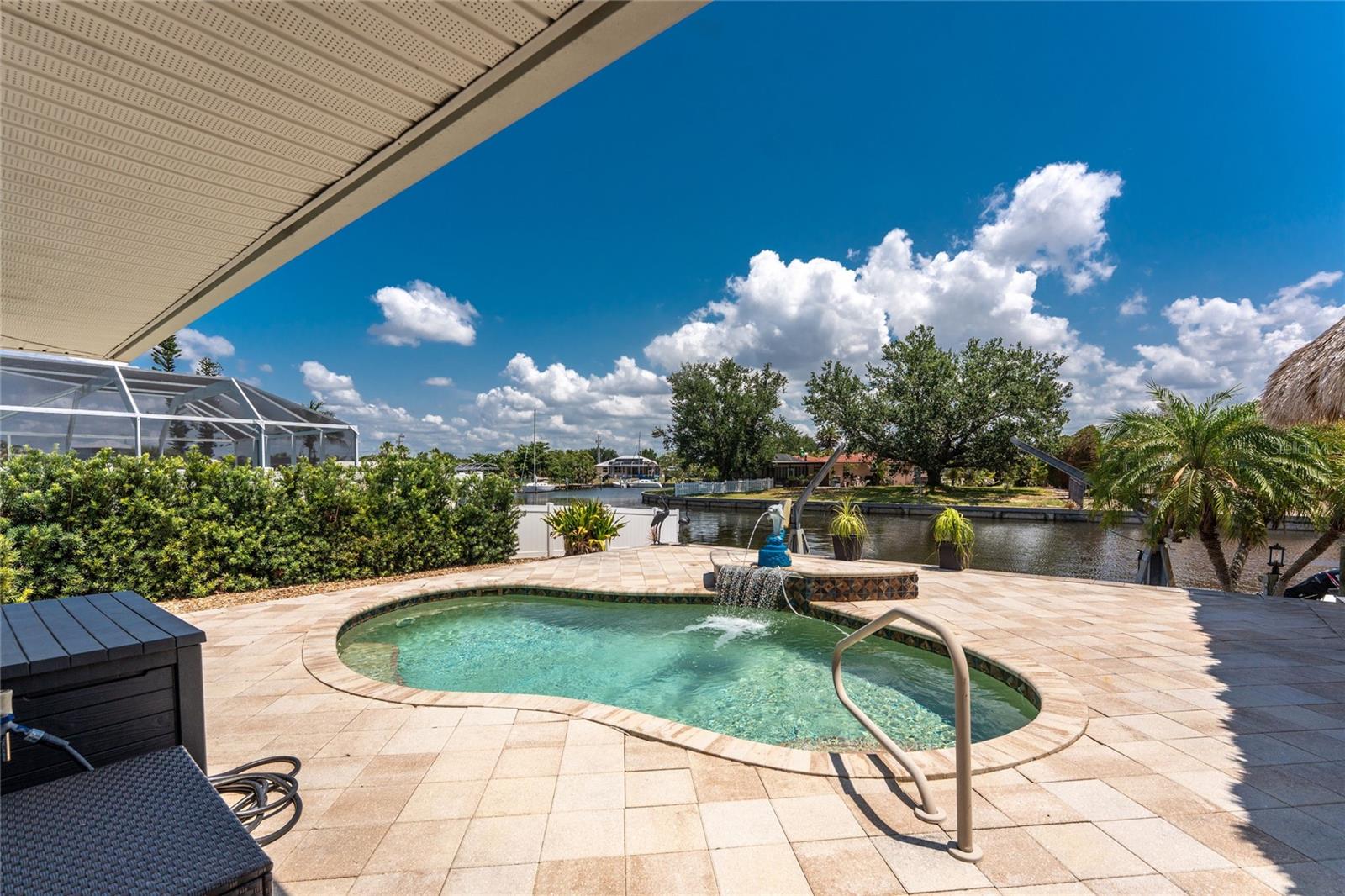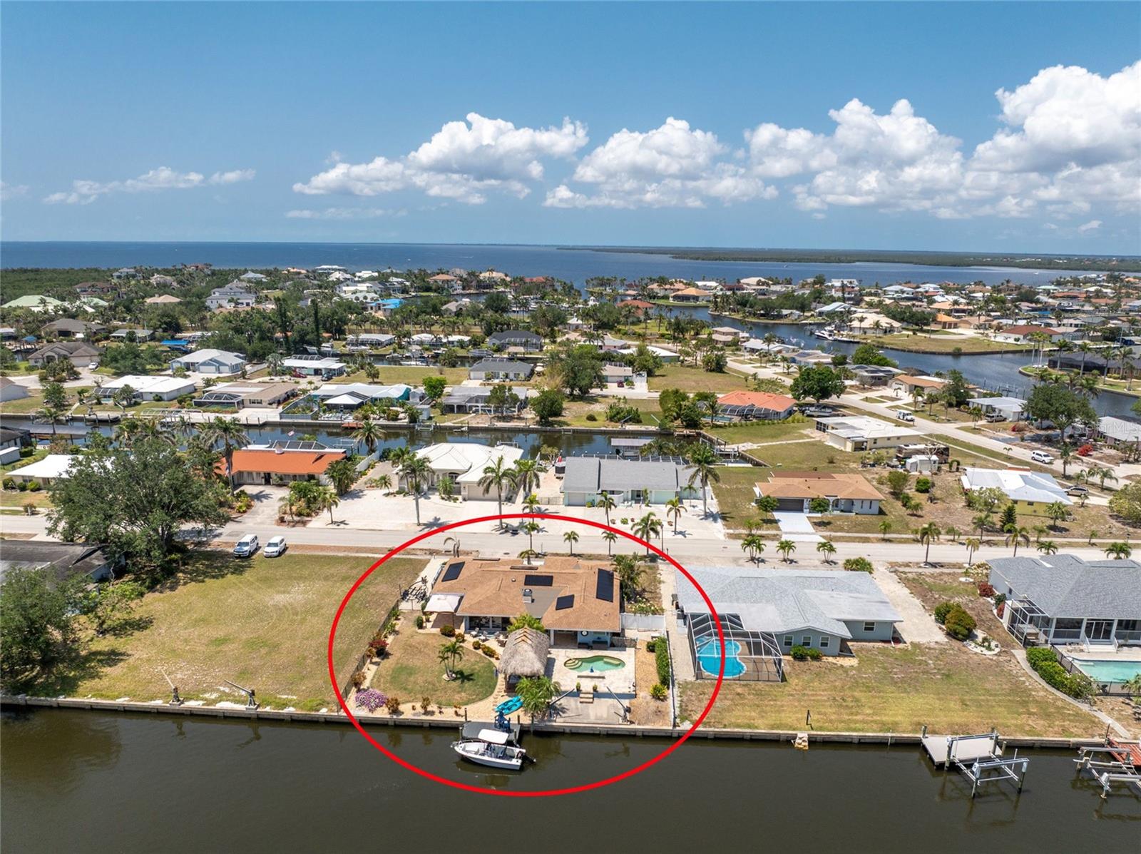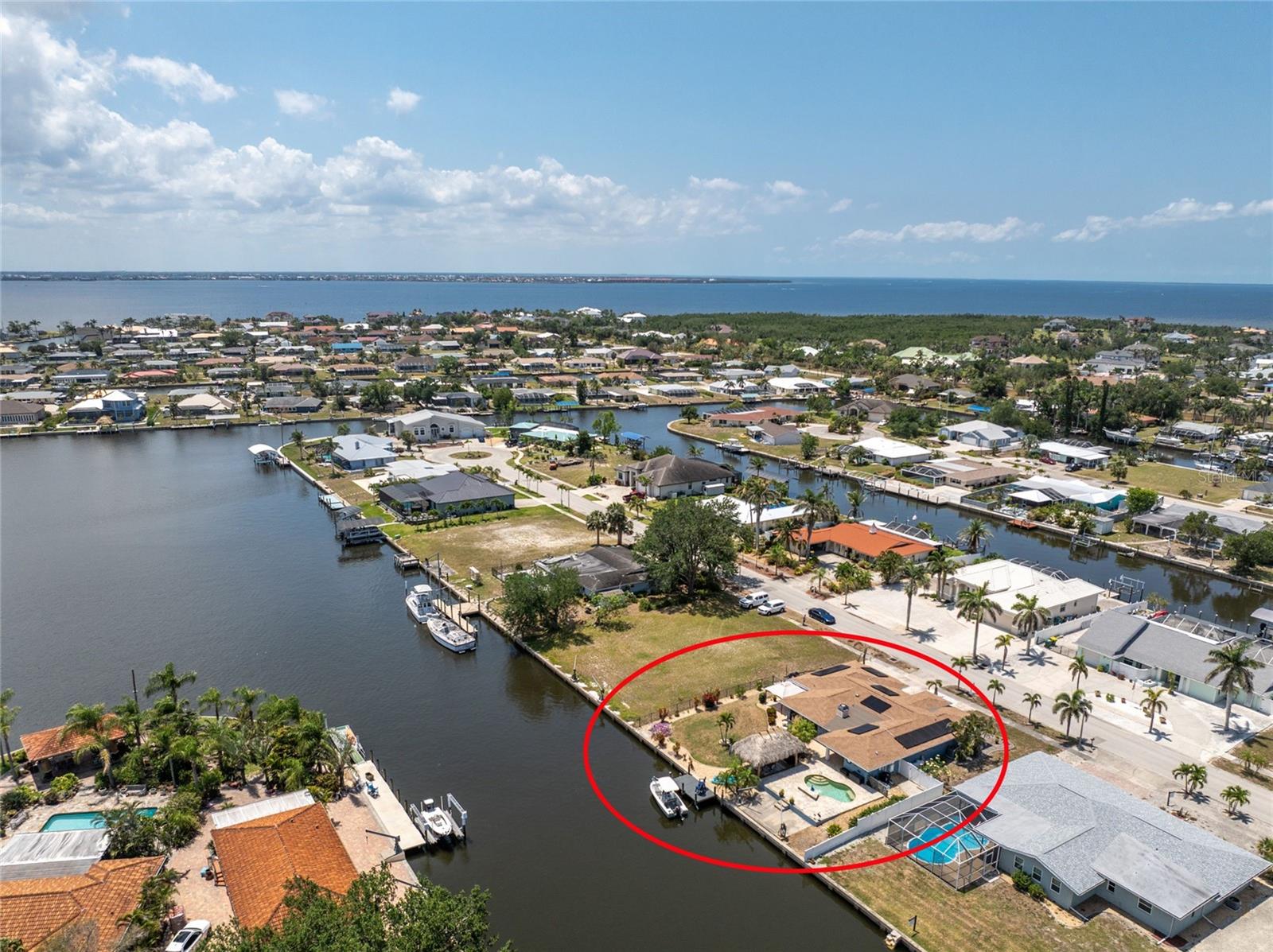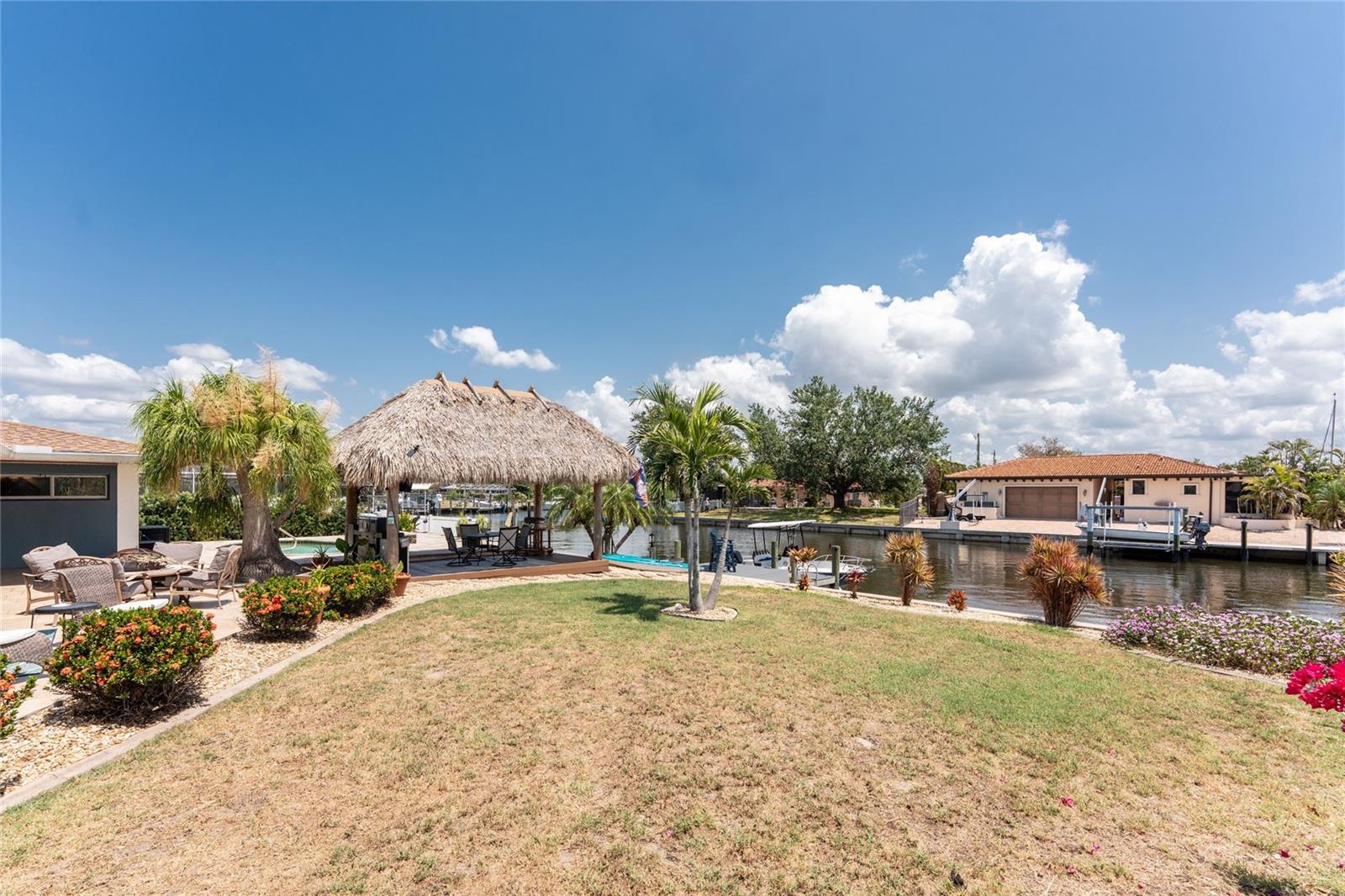 Welcome to paradise! WATERFRONT home with SAILBOAT ACCESS has it all! Located on a quiet cul-de-sac this dreamy Florida home has a gorgeous view of Edgewater Lake, with direct access to Charlotte Harbor through the Morgan Waterway. MOVE-IN READY with a SPLIT FLOOR PLAN and SO MANY NEW UPDATES! The entire home has been tastefully painted in soothing coastal colors sure to please anyone who walks through the door. No need to worry with a 2023 NEW ROOF and a BRAND-NEW APRIL 2025 DAIKIN AC SYSTEM with a NEST THERMOSTAT to keep you comfortable and help conserve energy. CUSTOM KITCHEN with GRANITE countertops and BREAKFAST BAR, SS appliances, TRAY CEILING, BUILT-IN WINE REFRIGERATOR, and a 5 burner PROPANE GAS COOKTOP. The Family Room has a double set of SLIDERS and looks out over the pool and patio, with wonderful views of the Lake, and a DOG DOOR leading out to the back yard with a NEW 2023 INVISIBLE DOG FENCE for dog owners. A lovely gazebo with a 2025 NEW ROOF just outside the family room makes entertaining easy. The Owner’s Suite has gorgeous BARN DOORS for privacy, TRAY CEILING, wood floors, and a wonderful sitting area complete with a WOOD-BURNING FIREPLACE for those occasional chilly nights, surrounded in built-in shelves with sliding glass doors out to the pool area. The bedroom area has FRENCH Doors leading to the patio and a LARGE WALK- IN CLOSET and a BEAUTIFULLY UPDATED 2023 MAKE-UP AREA and VANITY. Master bath has an UPDATED 2023 VANITY and FAUCET and a LARGE WALK-IN SHOWER with PROPANE ON DEMAND TANKLESS WATER HEATER. Bedrooms 2 and 3 have NEW LVT FLOORING 2024. Guest bathroom is TASTEFULLY UPDATED 2024 with gorgeous French Monture Sliding Bathtub Door and tastefully updated vanity and mirror . Separate updated LAUNDRY ROOM off the kitchen has a large sink and PANTRY for extra storage with NEW 2024 WASHER/DRYER. A beautiful PAVED and LIGHTED walkway welcomes you home. Outdoor entertaining doesn't get any better with a GAZEBO off the family room with a 2024 NEW ROOF, a gorgeous TIKI HUT overlooking the canal and Edgewater Lake, HEATED SALTWATER POOL with NEW 2023 SALT CHLORINATOR and HEATER CHECK VALVE 2023. New 2024 TREX DOCK with NEW 16x10 PILINGS, DOCK LIGHTS AND LADDER with 100ft of cement seawall. NEW 2024 privacy VINYL FENCE. New 2024 SOLAR PANELS will reduce your energy bills and are transferable or can be removed. Don't wait to see it, this home will not disappoint! Call today for a private showing. It is the buyer's agent and/or buyer's responsibility to verify all fees, assessments, dimensions and representations. Paradise Exclusive Real Estate and the listing agent do not warrant accuracy of fees, dimensions, or other representations stated in this listing. Data in this listing are for informational purposes only and subject to change and/or omissions. The information contained here is deemed reliable. However, because 3rd parties have provided some of this information, we cannot guarantee its accuracy or completeness.