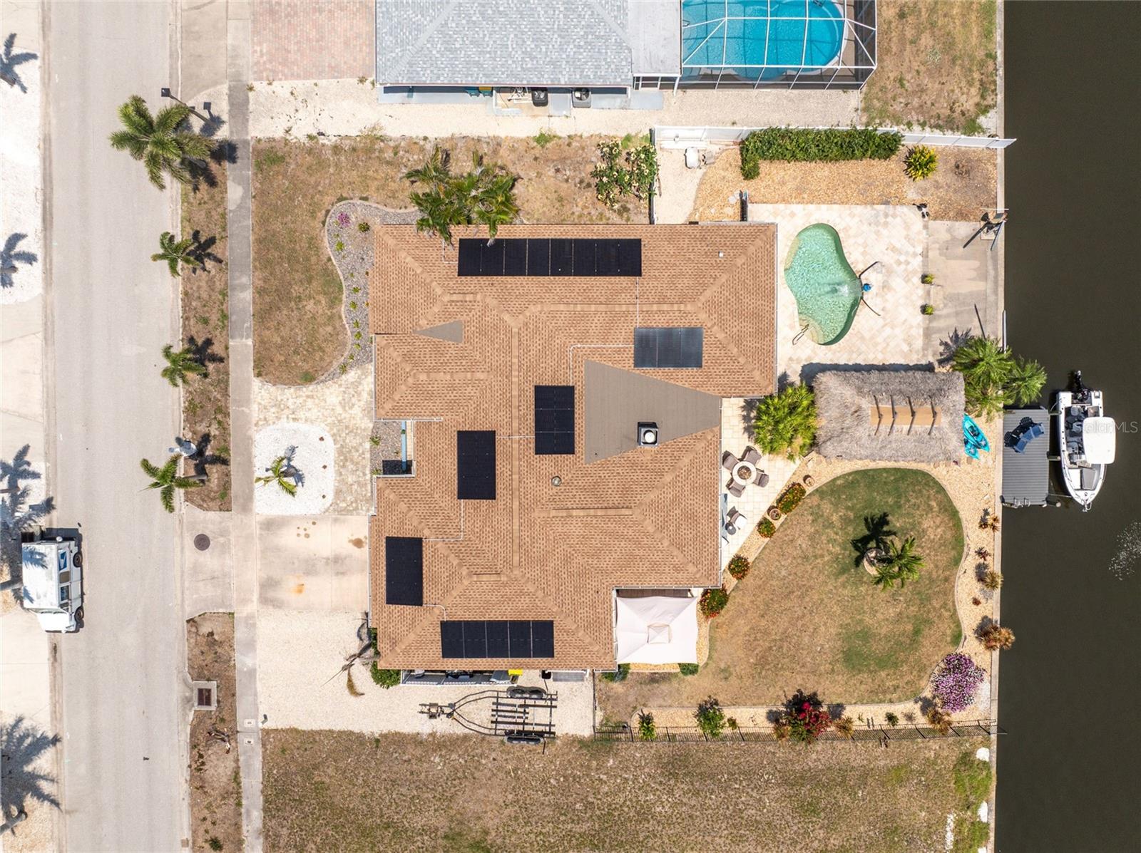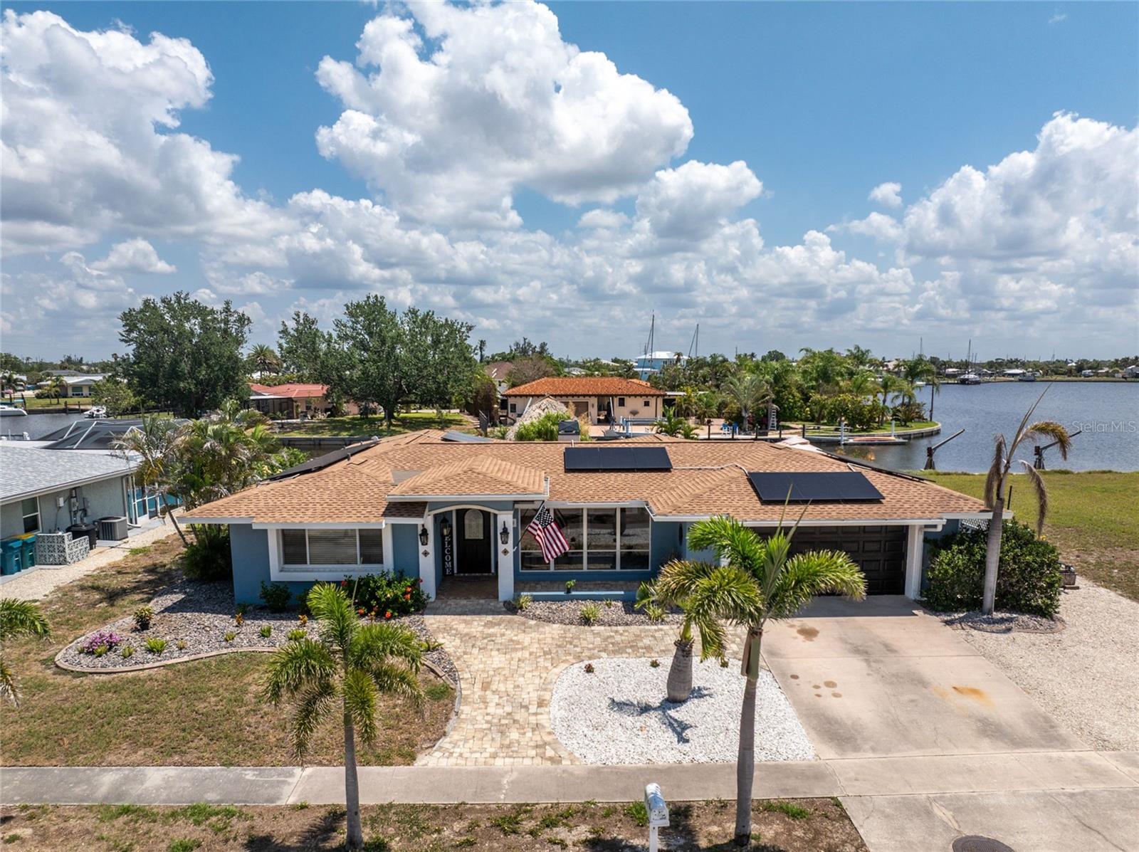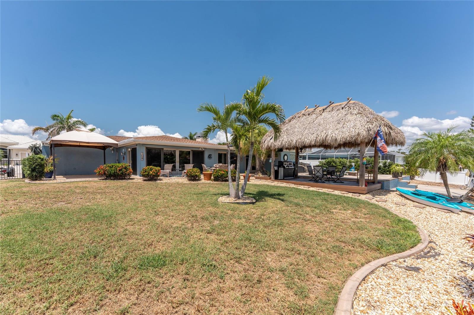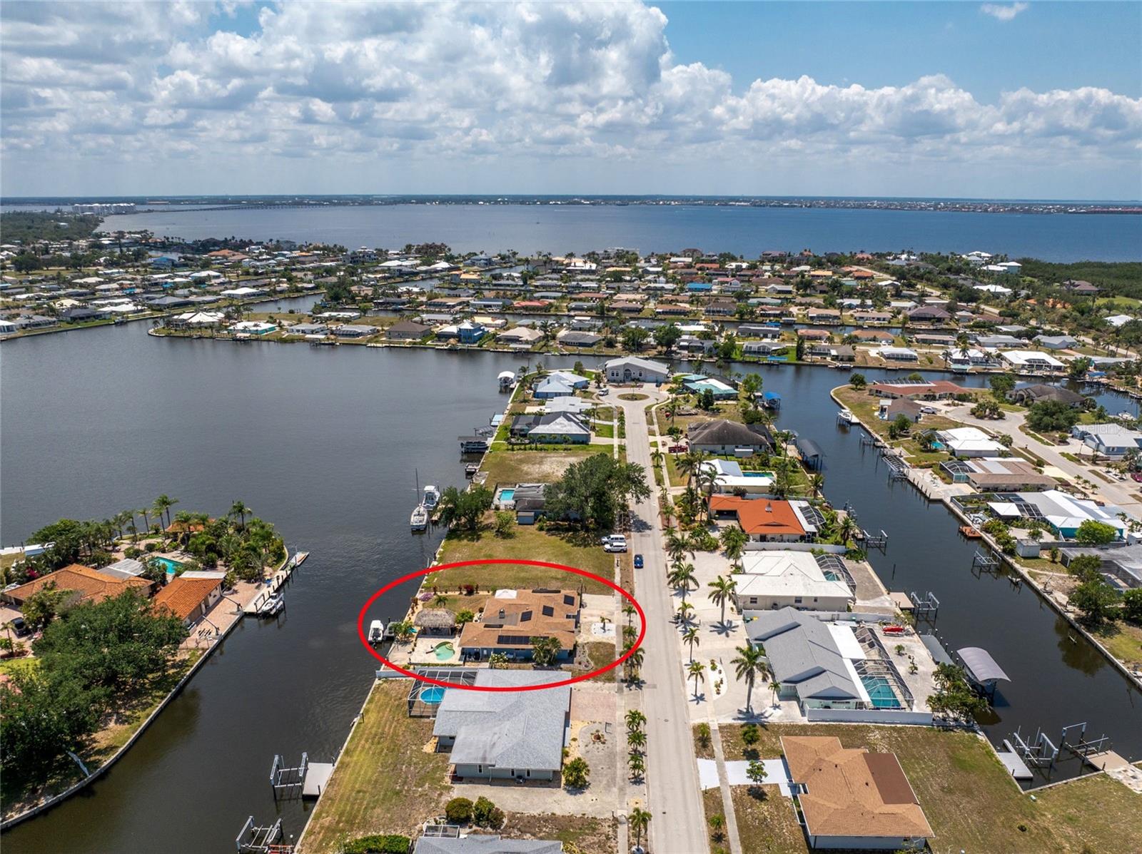 Welcome to paradise! WATERFRONT home with SAILBOAT ACCESS has it all! Located on a quiet cul-de-sac this dreamy Florida home has a gorgeous view of Edgewater Lake, with direct access to Charlotte Harbor through the Morgan Waterway. MOVE-IN READY with a SPLIT FLOOR PLAN and SO MANY NEW UPDATES! The entire home has been tastefully painted in soothing coastal colors sure to please anyone who walks through the door. No need to worry with a 2023 NEW ROOF and a BRAND-NEW APRIL 2025 DAIKIN AC SYSTEM with a NEST THERMOSTAT to keep you comfortable and help conserve energy. CUSTOM KITCHEN with GRANITE countertops and BREAKFAST BAR, SS appliances, TRAY CEILING, BUILT-IN WINE REFRIGERATOR, and a 5 burner PROPANE GAS COOKTOP. The Family Room has a double set of SLIDERS and looks out over the pool and patio, with wonderful views of the Lake, and a DOG DOOR leading out to the back yard with a NEW 2023 INVISIBLE DOG FENCE for dog owners. A lovely gazebo with a 2025 NEW ROOF just outside the family room makes entertaining easy. The Owner’s Suite has gorgeous BARN DOORS for privacy, TRAY CEILING, wood floors, and a wonderful sitting area complete with a WOOD-BURNING FIREPLACE for those occasional chilly nights, surrounded in built-in shelves with sliding glass doors out to the pool area. The bedroom area has FRENCH Doors leading to the patio and a LARGE WALK- IN CLOSET and a BEAUTIFULLY UPDATED 2023 MAKE-UP AREA and VANITY. Master bath has an UPDATED 2023 VANITY and FAUCET and a LARGE WALK-IN SHOWER with PROPANE ON DEMAND TANKLESS WATER HEATER. Bedrooms 2 and 3 have NEW LVT FLOORING 2024. Guest bathroom is TASTEFULLY UPDATED 2024 with gorgeous French Monture Sliding Bathtub Door and tastefully updated vanity and mirror . Separate updated LAUNDRY ROOM off the kitchen has a large sink and PANTRY for extra storage with NEW 2024 WASHER/DRYER. A beautiful PAVED and LIGHTED walkway welcomes you home. Outdoor entertaining doesn't get any better with a GAZEBO off the family room with a 2024 NEW ROOF, a gorgeous TIKI HUT overlooking the canal and Edgewater Lake, HEATED SALTWATER POOL with NEW 2023 SALT CHLORINATOR and HEATER CHECK VALVE 2023. New 2024 TREX DOCK with NEW 16x10 PILINGS, DOCK LIGHTS AND LADDER with 100ft of cement seawall. NEW 2024 privacy VINYL FENCE. New 2024 SOLAR PANELS will reduce your energy bills and are transferable or can be removed. Don't wait to see it, this home will not disappoint! Call today for a private showing. It is the buyer's agent and/or buyer's responsibility to verify all fees, assessments, dimensions and representations. Paradise Exclusive Real Estate and the listing agent do not warrant accuracy of fees, dimensions, or other representations stated in this listing. Data in this listing are for informational purposes only and subject to change and/or omissions. The information contained here is deemed reliable. However, because 3rd parties have provided some of this information, we cannot guarantee its accuracy or completeness.