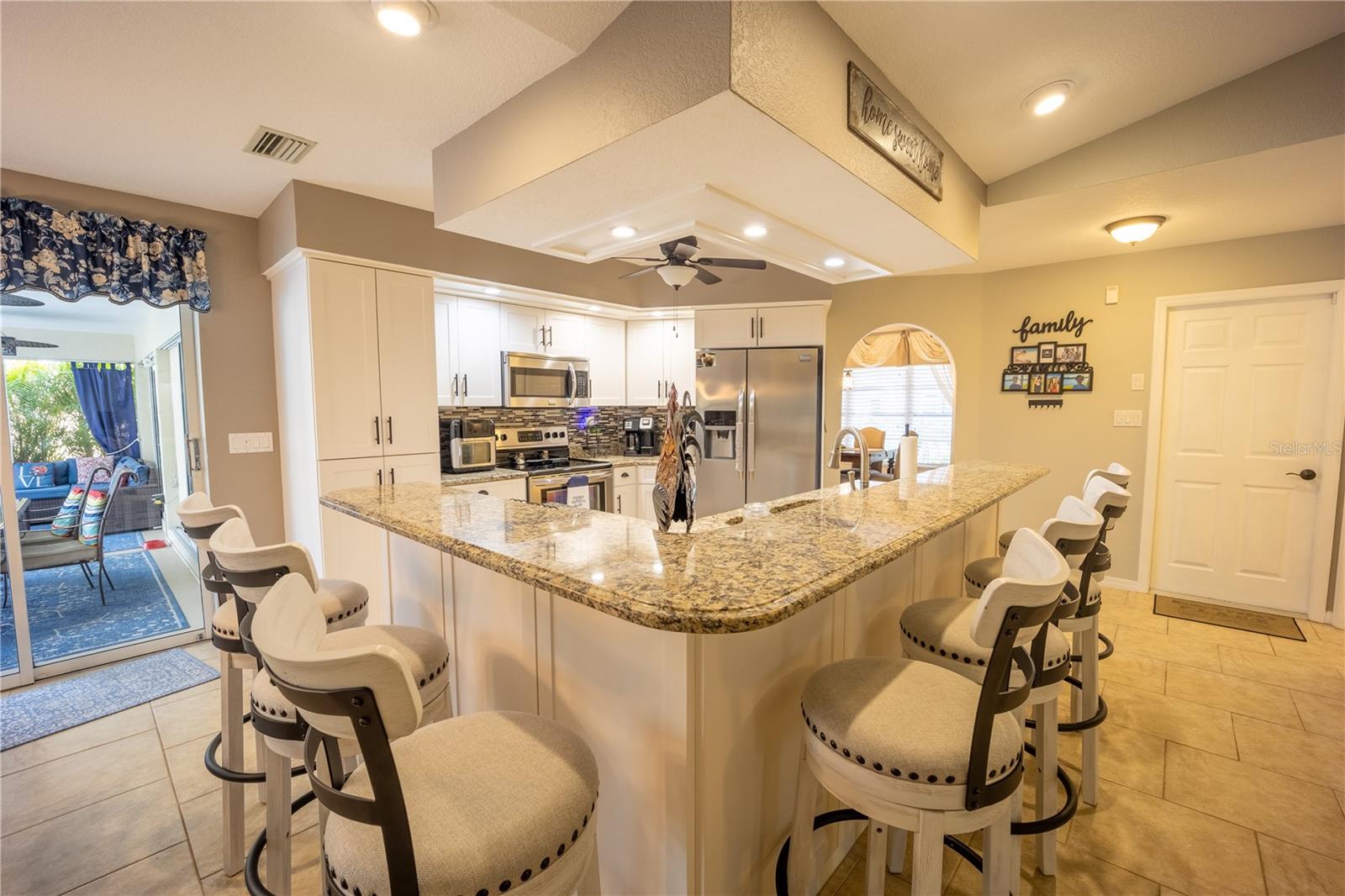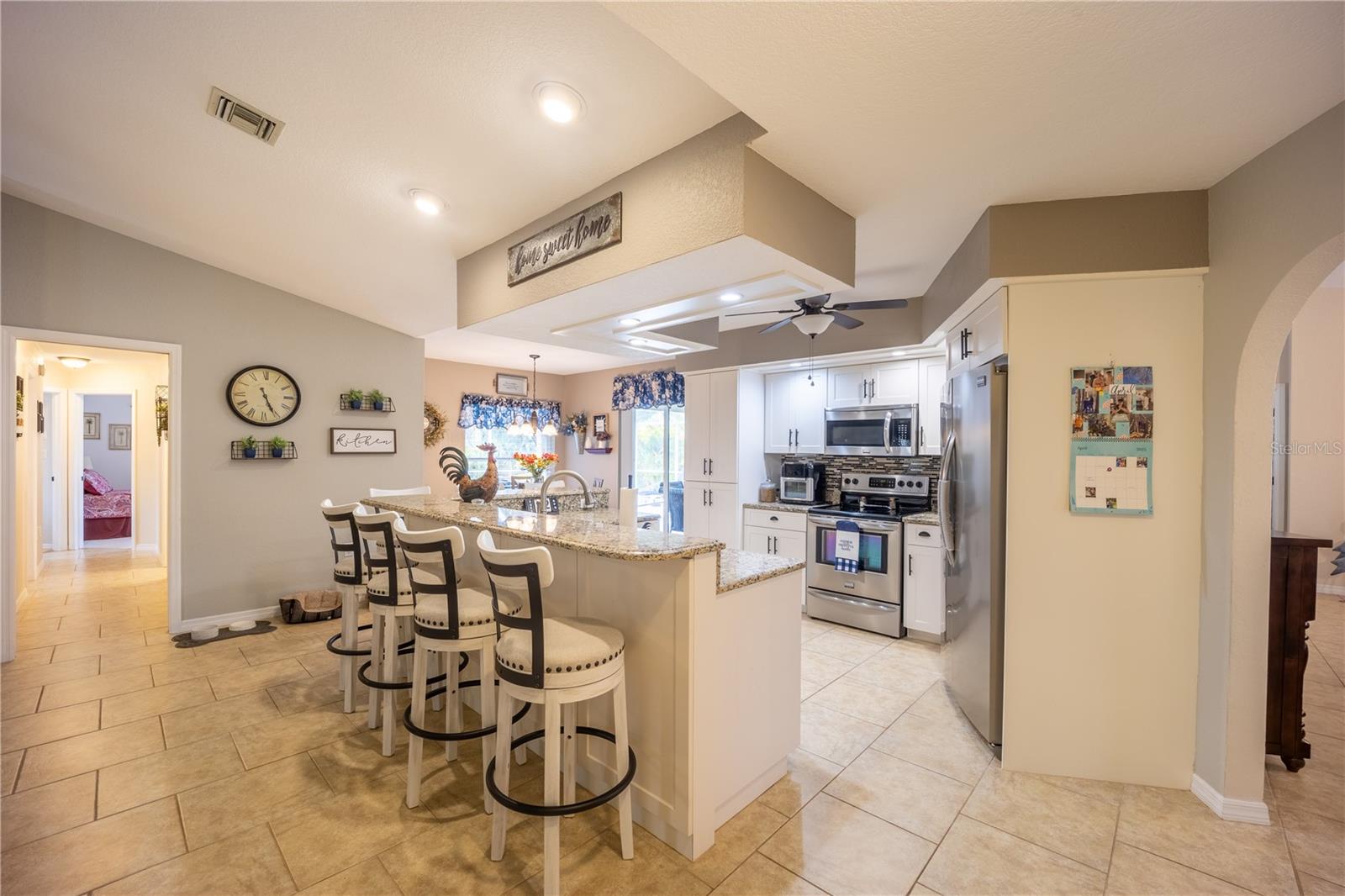 A Dream Property Awaits. Searching for a home that is truly ready to move in, without you having to lift a finger, you've just found it. This stunning 4-bed, 2-bath spans 2,132 sf & is situated on an impressive 10,018 sf lot. What’s more, this property is surrounded by two other build-able lots (included in the list price). This provides for an opportunity for expansion and investment. This home has been meticulously renovated from top to bottom and has been very well maintained, ensuring it's move-in ready. Every detail has been considered to provide comfort, luxury, & convenience for any new owner. As you enter the front door, you are greeted by a formal living room featuring vaulted ceilings that add a sense of grandeur and space. Custom window treatments adorn the room, adding a touch of elegance, while a ceiling fan ensures comfort. The living room also boasts sliders that lead out to the screened lanai and pool area, making it perfect for indoor-outdoor living. To the left of the entrance, there is a formal dining room with vaulted ceilings, triple windows with custom window treatments, and unique lighting over the dining room table. This space is ideal for hosting dinner parties and family gatherings, offering both style and functionality. The kitchen is open to the family room and a dining area in the kitchen that has a sliding door that opens to the screened pool area. Walking through the archway, you will find a newer, beautifully designed kitchen equipped with all stainless-steel appliances. The kitchen features granite counters that provide ample workspace, and a wraparound bar with recessed lighting, creating a warm and inviting atmosphere. Whether you are preparing a casual meal or entertaining guests, this kitchen is sure to impress. There is a nice family room open to the kitchen. The master bedroom is spacious with sliders leading out to the pool area, walk-in closets and a master bath off the bedroom with dual sinks with granite counter tops and a tiled shower. The three guest bedrooms are on a split floor plan, providing plenty of privacy, with built-in closets. The second bathroom has been renovated with a granite countertop, and it also serves as a cabana bath that leads out to the pool. This bathroom has a tub and a shower. The outdoor space is equally impressive, featuring a screened lanai and a pool area that invites relaxation and fun. The large lot provides plenty of room for gardening, outdoor activities, and potential future expansions. One of the unique features of this property is the inclusion of two additional build-able lots. This presents a rare opportunity for expansion, whether you choose to build additional homes, create a guesthouse, or invest in future development. This home offers easy access to local amenities, schools, shopping, and dining. The tranquil setting combined with the convenience of city living makes it an ideal choice for families, professionals, and investors alike. In summary, this 4-bedroom, 2-bathroom home is a rare gem that offers both luxury and practicality. With its impressive lot size, additional build-able lots, and top-to-bottom renovations, it is truly ready for you to move in and start creating memories. Don’t miss this opportunity to own a piece of paradise. Contact us today to schedule a viewing and experience this stunning home for yourself.