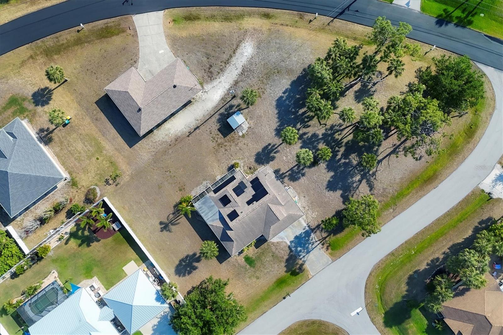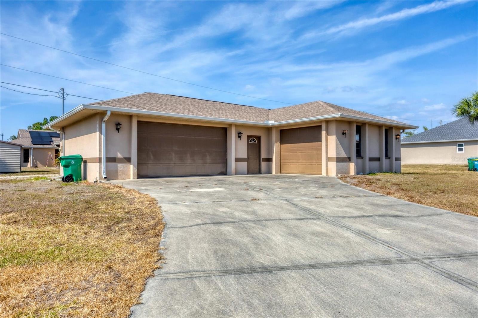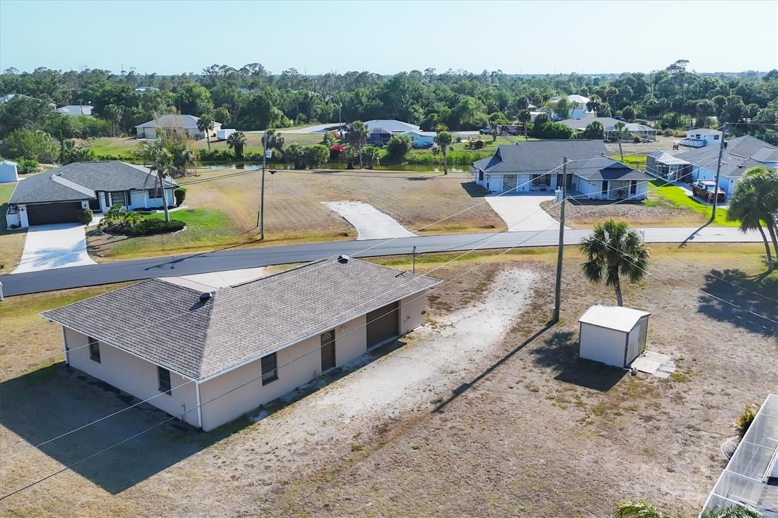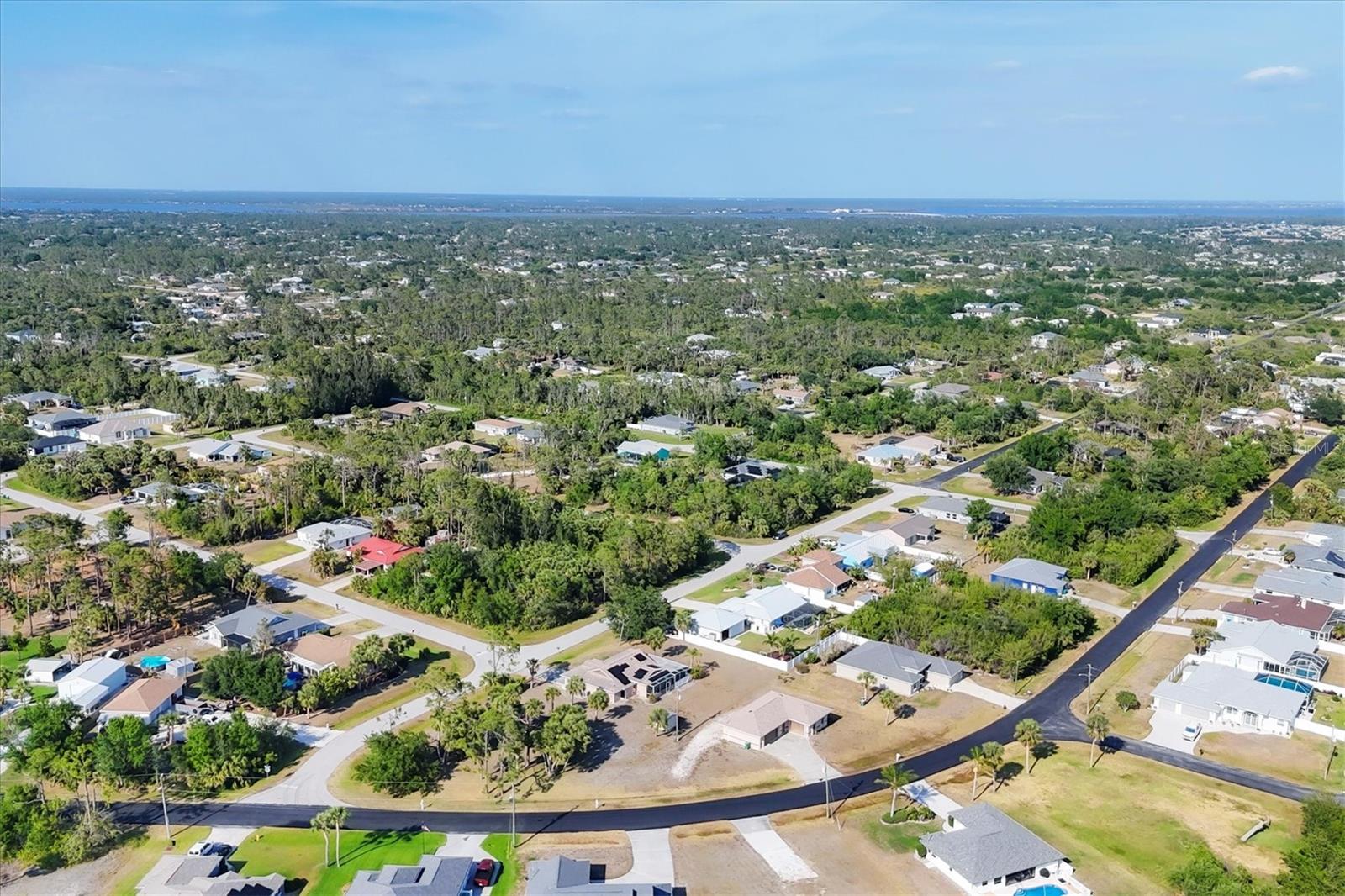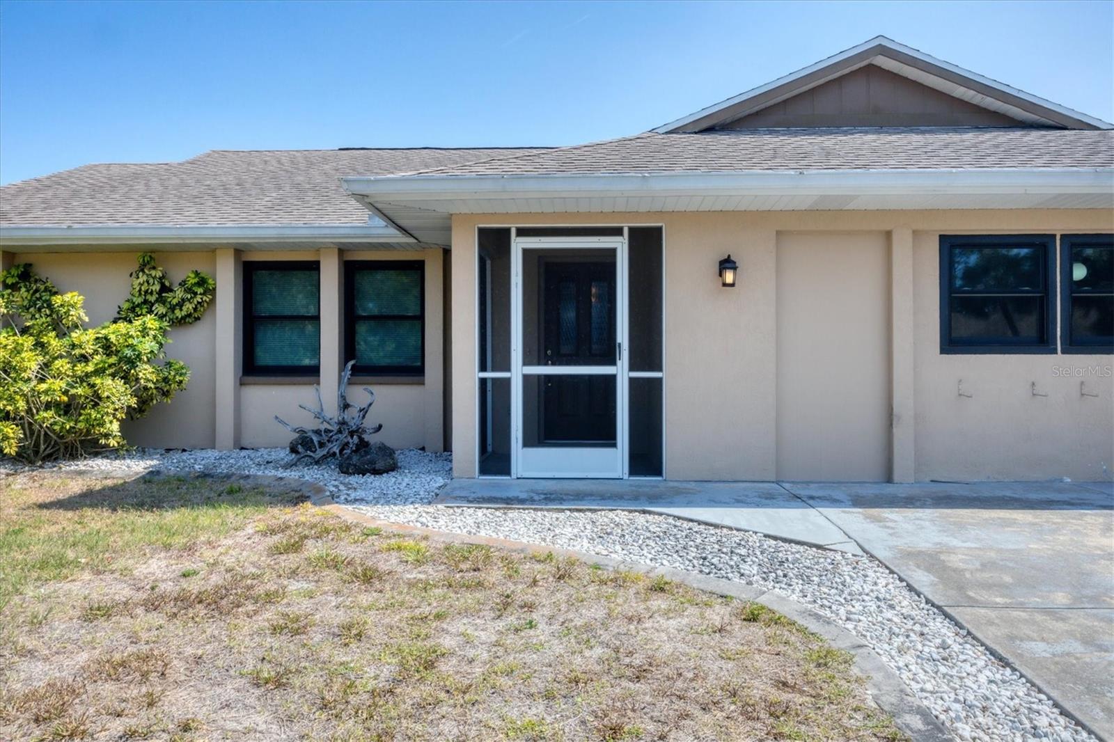 This spacious property offers a truly unique opportunity to create your own personal haven on nearly an acre of X-Flood Zone land. With a large primary residence and plans available to complete the renovation of the detached garage into a second residence, this property is an ideal opportunity for car lovers and collectors; multigenerational living, with an option of a guest house or in-law suite; or an on-site income property while living in spacious comfort! Encompassing three combined lots, one of which is undeveloped and features mature shade trees, privacy can be paramount in this blank canvas of a home! Upon entry the home expands around you and welcomes you into the generous family room; filled with natural light. To the right is the primary suite, outfitted with a walk-in closet and en suite bathroom. Next to the primary suite is an additional room with an en suite bathroom which is a plus for multiple residents or could serve as a convenient home office space. An additional two bedrooms sit to the left, in a true split floor plan, and are adjacent to a shared bathroom with exterior access. Proceed forward to where the kitchen and dining space allow for easy conversation while meals are being made and enjoyed. A passthrough window from the kitchen looks into the adjoining family room. Wired for surround sound, this space is ideal for the passionate movie buff to kick back and relax after a long day. Two sets of French doors lead out to a screened porch, which wraps around to the covered patio and connects to the family room via an additional side door. Cabinets and a window passthrough make the patio a prime location for al fresco dining and the property’s half-bath is accessed from here as well. From the back of the home a wide expanse of land sits between the main home and the detached garage and workshop building, neighbored by an additional small shed, and invites the addition of a pool or additional construction. For additional comfort and peace of mind, the home is outfitted with rooftop solar panels that are owned outright. The surrounding area is convenient to the Gulf beaches on Manasota Key and Boca Grande, multiple championship golf courses, fishing, boating, and other outdoor activities, shopping, dining and more! The opportunities here for an entertainment-filled Florida lifestyle are endless, and the property is ready for you to take your vision and make it a reality! If Florida sunshine, no HOA, and ample privacy are calling your name, make sure to also call for your private showing and make your dreams a reality today!