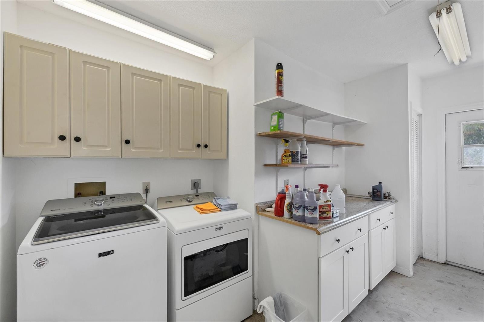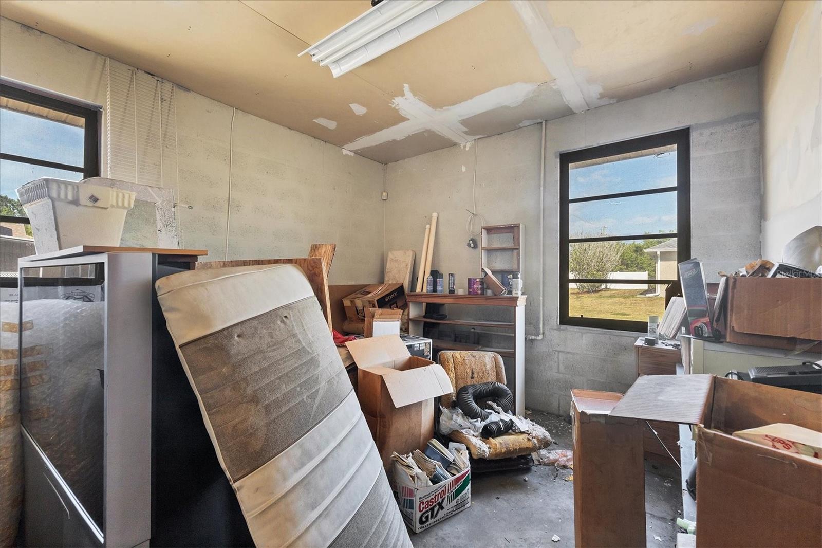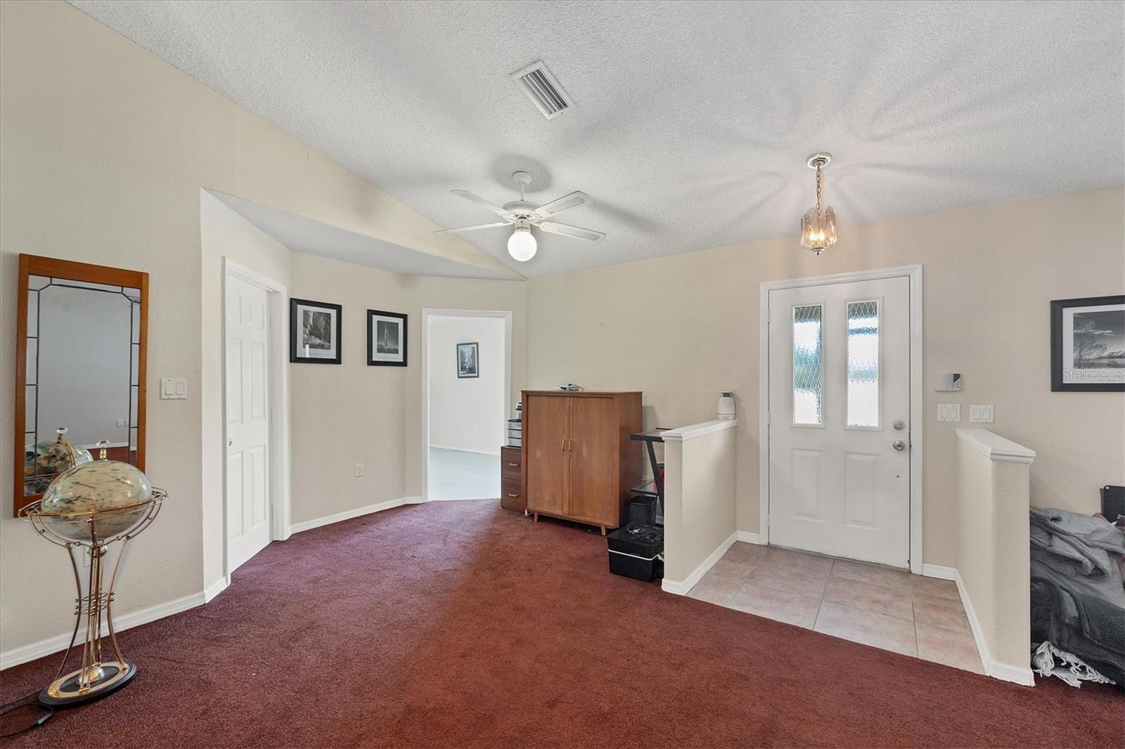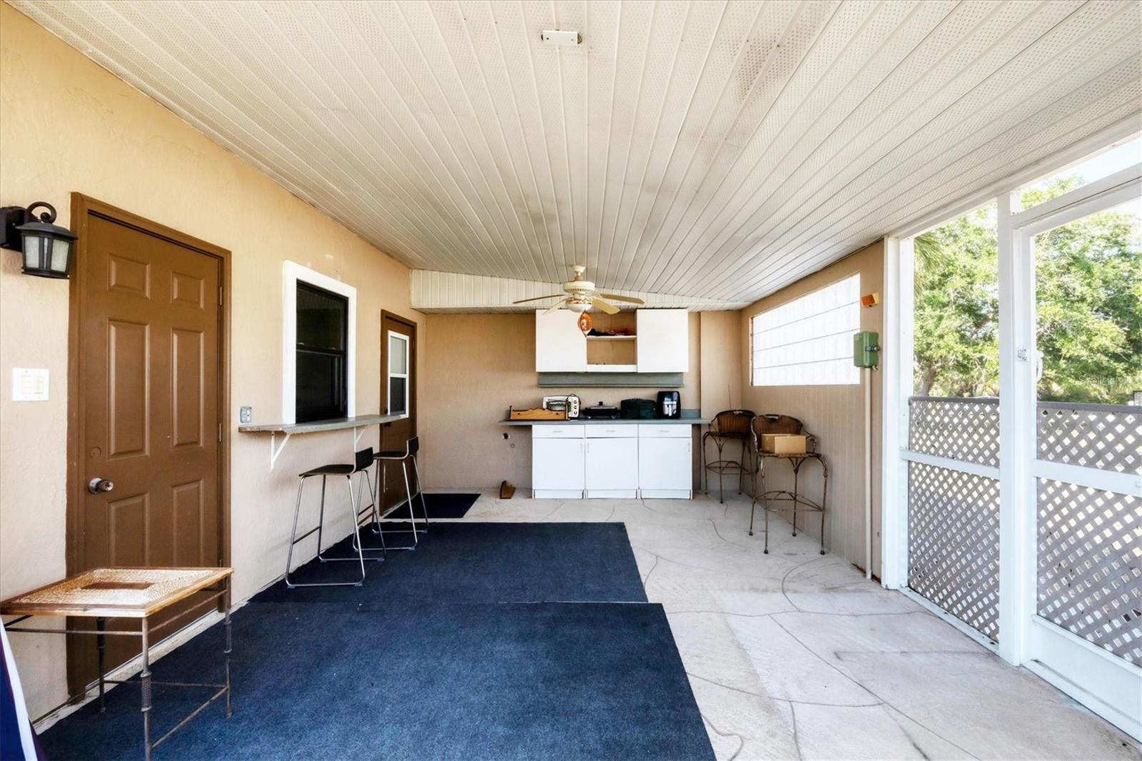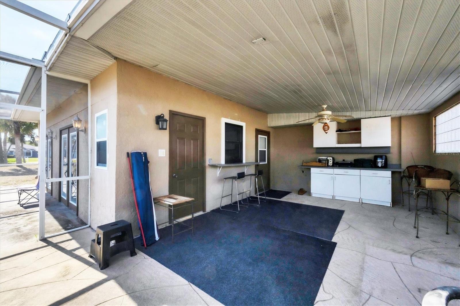 This spacious property offers a truly unique opportunity to create your own personal haven on nearly an acre of X-Flood Zone land. With a large primary residence and plans available to complete the renovation of the detached garage into a second residence, this property is an ideal opportunity for car lovers and collectors; multigenerational living, with an option of a guest house or in-law suite; or an on-site income property while living in spacious comfort! Encompassing three combined lots, one of which is undeveloped and features mature shade trees, privacy can be paramount in this blank canvas of a home! Upon entry the home expands around you and welcomes you into the generous family room; filled with natural light. To the right is the primary suite, outfitted with a walk-in closet and en suite bathroom. Next to the primary suite is an additional room with an en suite bathroom which is a plus for multiple residents or could serve as a convenient home office space. An additional two bedrooms sit to the left, in a true split floor plan, and are adjacent to a shared bathroom with exterior access. Proceed forward to where the kitchen and dining space allow for easy conversation while meals are being made and enjoyed. A passthrough window from the kitchen looks into the adjoining family room. Wired for surround sound, this space is ideal for the passionate movie buff to kick back and relax after a long day. Two sets of French doors lead out to a screened porch, which wraps around to the covered patio and connects to the family room via an additional side door. Cabinets and a window passthrough make the patio a prime location for al fresco dining and the property’s half-bath is accessed from here as well. From the back of the home a wide expanse of land sits between the main home and the detached garage and workshop building, neighbored by an additional small shed, and invites the addition of a pool or additional construction. For additional comfort and peace of mind, the home is outfitted with rooftop solar panels that are owned outright. The surrounding area is convenient to the Gulf beaches on Manasota Key and Boca Grande, multiple championship golf courses, fishing, boating, and other outdoor activities, shopping, dining and more! The opportunities here for an entertainment-filled Florida lifestyle are endless, and the property is ready for you to take your vision and make it a reality! If Florida sunshine, no HOA, and ample privacy are calling your name, make sure to also call for your private showing and make your dreams a reality today!