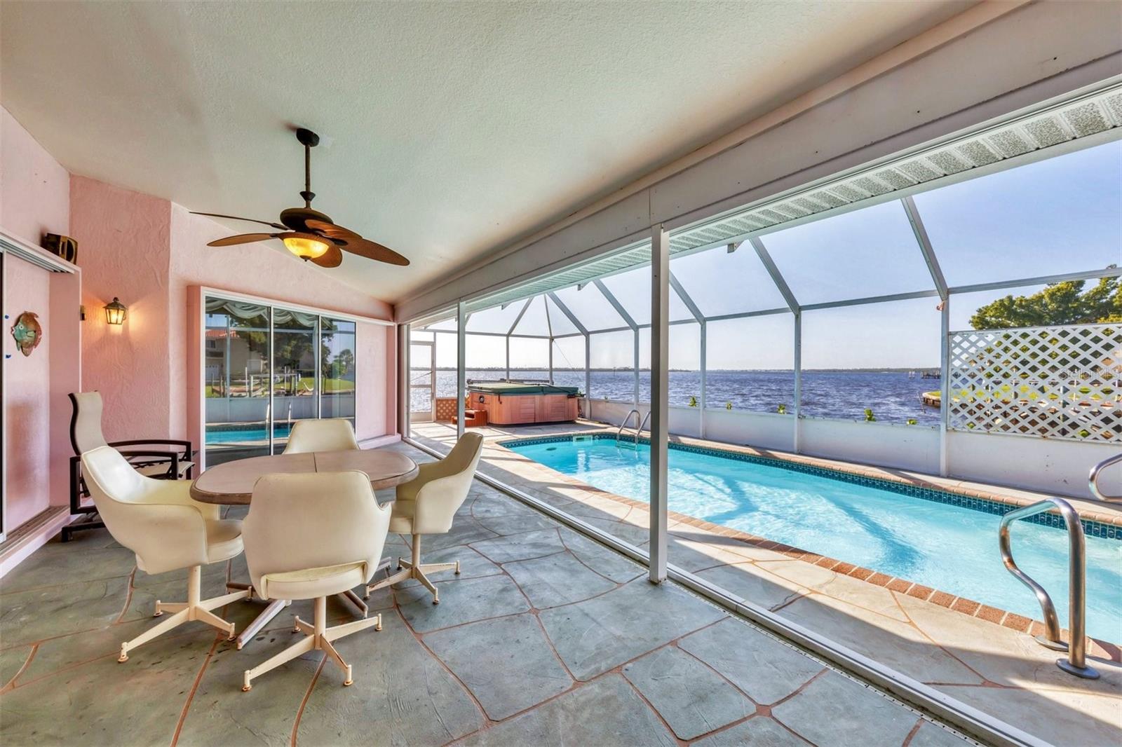 WATERFRONT PARADISE WITH PRIVATE BOAT RAMP! Welcome to your dream waterfront retreat in Port Charlotte, where sunshine and serenity await! This spacious 2,615 square foot home offers the perfect blend of comfort and coastal living with 3 bedrooms and 2 bathrooms. What sets this property apart? You'll own the ONLY private boat ramp in the community! Boating enthusiasts will appreciate the seawall and TWO boat lifts—a standard one for your smaller vessel and a robust 12,000-pound capacity lift for your larger watercraft with access to Gulf of Mexico. Located on a premium lot near a tip lot on Myakka River/Charlotte Harbor, you'll enjoy breathtaking water views that change with each sunset. The home's generous layout provides ample space for family living and entertaining. The primary bedroom offers a peaceful sanctuary after days spent on the water, while the additional bedrooms welcome family and friends. Location is everything, and this property delivers! Approximately 20 minutes from the stunning Gulf of Mexico beaches with their famous blue waters. Outdoor adventures abound—kayaking, boating, swimming, and exploring nearby State Parks with trails perfect for bird watching and fishing. Sports fans will appreciate being close to two Spring Training baseball parks for the Atlanta Braves and Tampa Bay Rays (not Braves as previously noted—even paradise isn't perfect!). Eye O'Storm Flotilla Park is just a short distance away, adding to your recreational options. Live where vacation vibes meet everyday convenience in this waterfront gem that won't stay available for long! The Roof is new in 2024, A/C 2022, Hot water heater replaced in 2022. There is also a attached golf cart garage on the East end of the property.