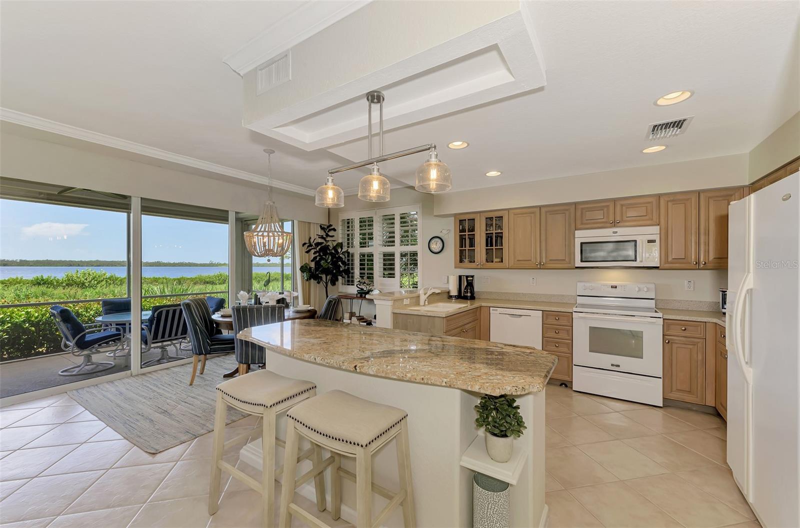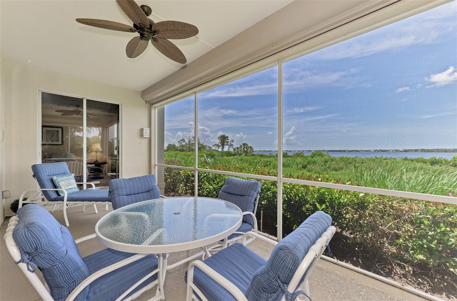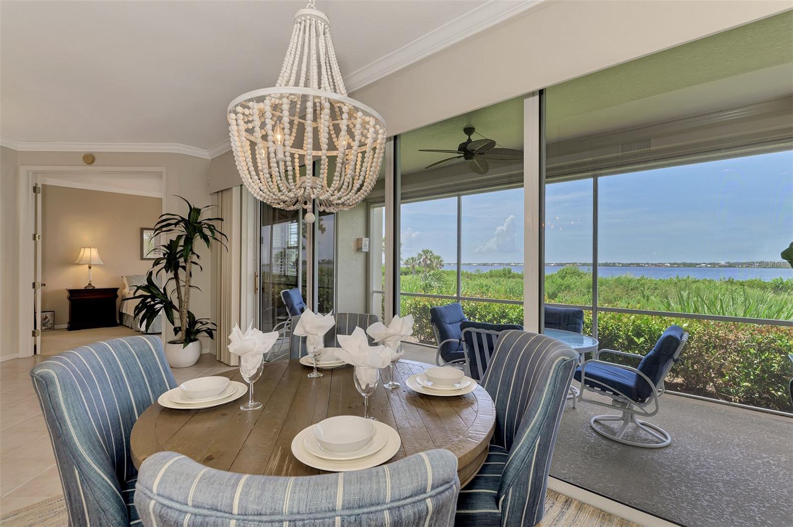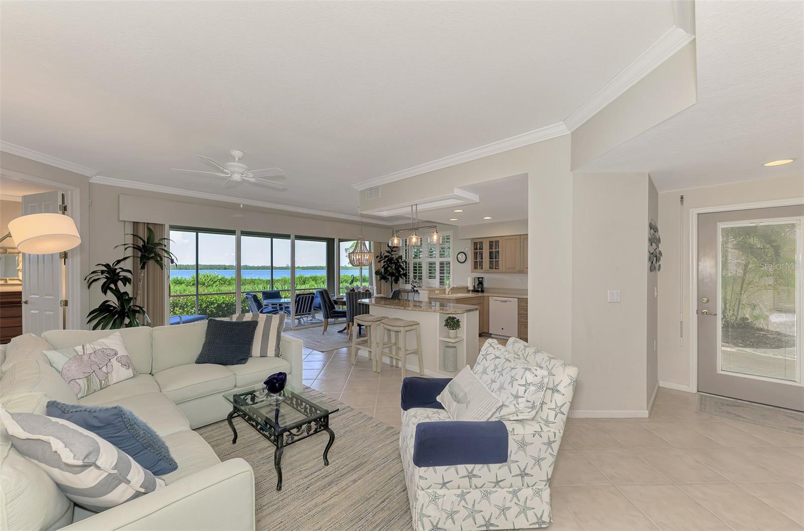 This charming and cozy home in Tarpon Harbor I is situated within the sought-after Riverwood Community. The condo features A NEW ROOF, 2 bedrooms plus a den and 2 bathrooms, with a split floor plan providing guests with the sensation of having their own private wing. Upon entering this first-floor unit, you're welcomed by elegant tile flooring throughout the main living spaces. The kitchen, equipped with granite countertops, includes a handy breakfast bar. The Master Suite boasts a spacious walk-in closet and bathroom, featuring dual sinks, as well as a newly updated shower enclosure and a garden tub. From the screened lanai, you can enjoy serene views of the Myakka River. Experience the best of Florida living! This condo is turnkey, with all furniture and household items included, subject to some exclusions from the owner. For further details, ask the Agent! The Riverwood community boasts exceptional amenities, including a par-72 championship golf course, a state-of-the-art fitness center, a resort-style pool, and both pickleball and Har-Tru tennis courts. Membership to the Private Beach Club on Manasota Key is available based on current availability. Just minutes from fine dining, shopping, boating, and the beautiful Gulf of America beaches, this is your chance to fully embrace the ultimate Florida lifestyle. Don’t miss out on this stunning home—schedule a showing today and discover unparalleled luxury and tranquility.