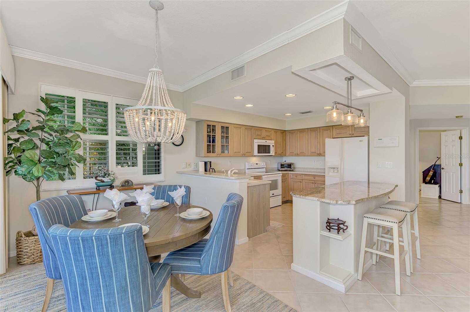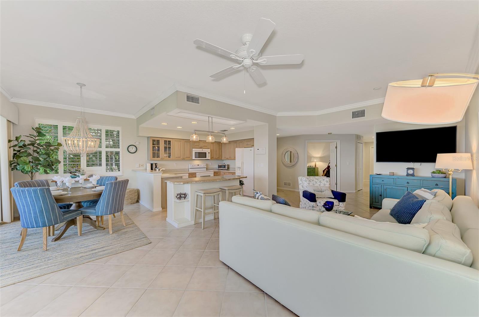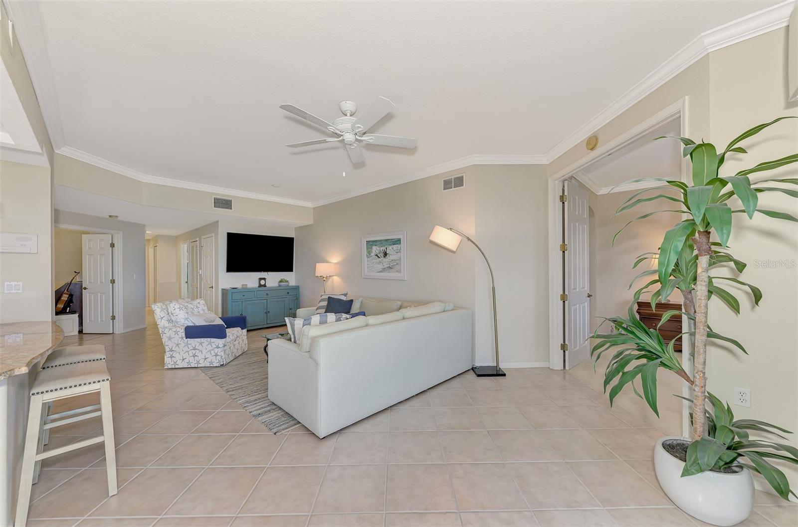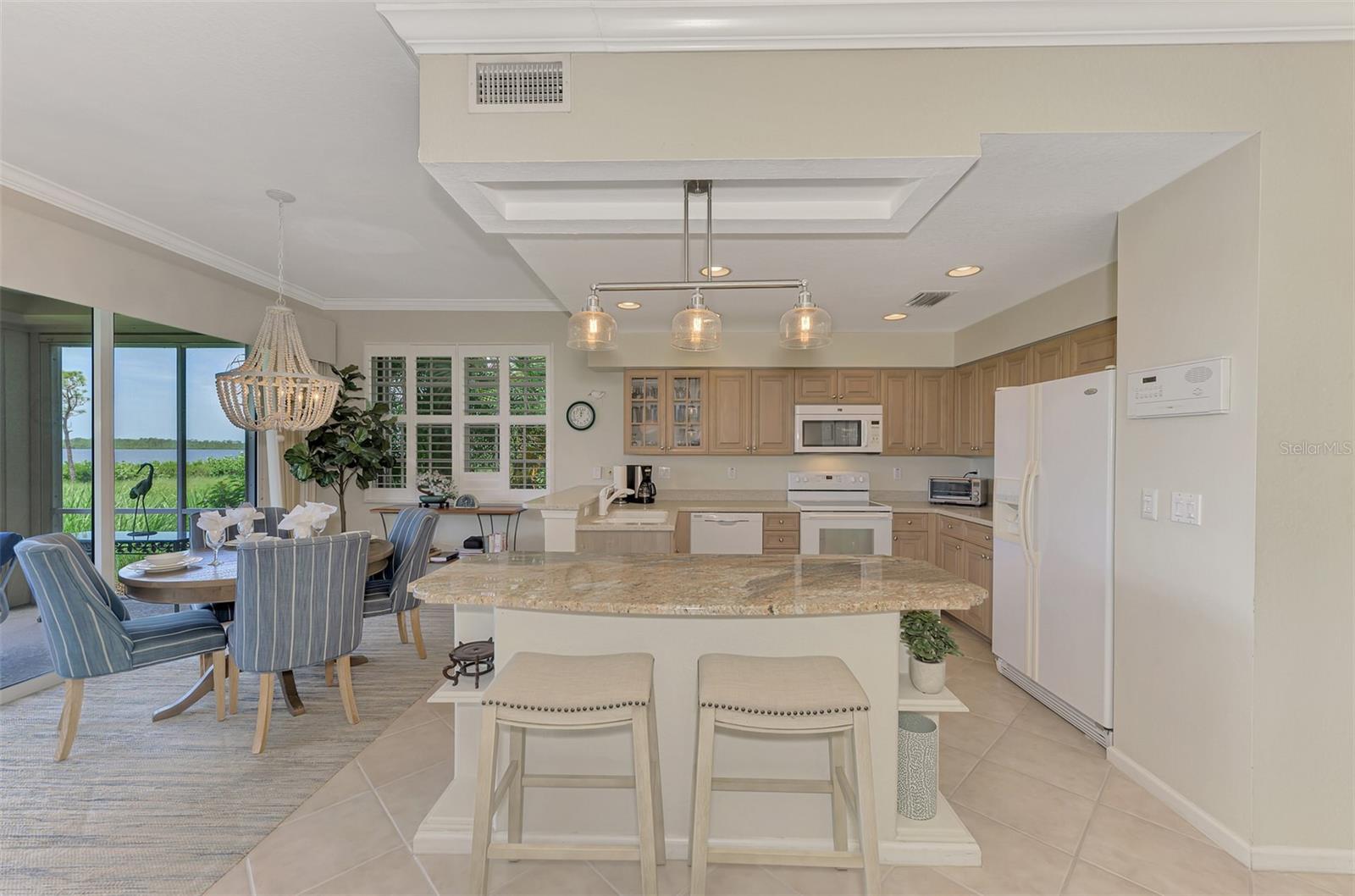 This charming and cozy home in Tarpon Harbor I is situated within the sought-after Riverwood Community. The condo features A NEW ROOF, 2 bedrooms plus a den and 2 bathrooms, with a split floor plan providing guests with the sensation of having their own private wing. Upon entering this first-floor unit, you're welcomed by elegant tile flooring throughout the main living spaces. The kitchen, equipped with granite countertops, includes a handy breakfast bar. The Master Suite boasts a spacious walk-in closet and bathroom, featuring dual sinks, as well as a newly updated shower enclosure and a garden tub. From the screened lanai, you can enjoy serene views of the Myakka River. Experience the best of Florida living! This condo is turnkey, with all furniture and household items included, subject to some exclusions from the owner. For further details, ask the Agent! The Riverwood community boasts exceptional amenities, including a par-72 championship golf course, a state-of-the-art fitness center, a resort-style pool, and both pickleball and Har-Tru tennis courts. Membership to the Private Beach Club on Manasota Key is available based on current availability. Just minutes from fine dining, shopping, boating, and the beautiful Gulf of America beaches, this is your chance to fully embrace the ultimate Florida lifestyle. Don’t miss out on this stunning home—schedule a showing today and discover unparalleled luxury and tranquility.