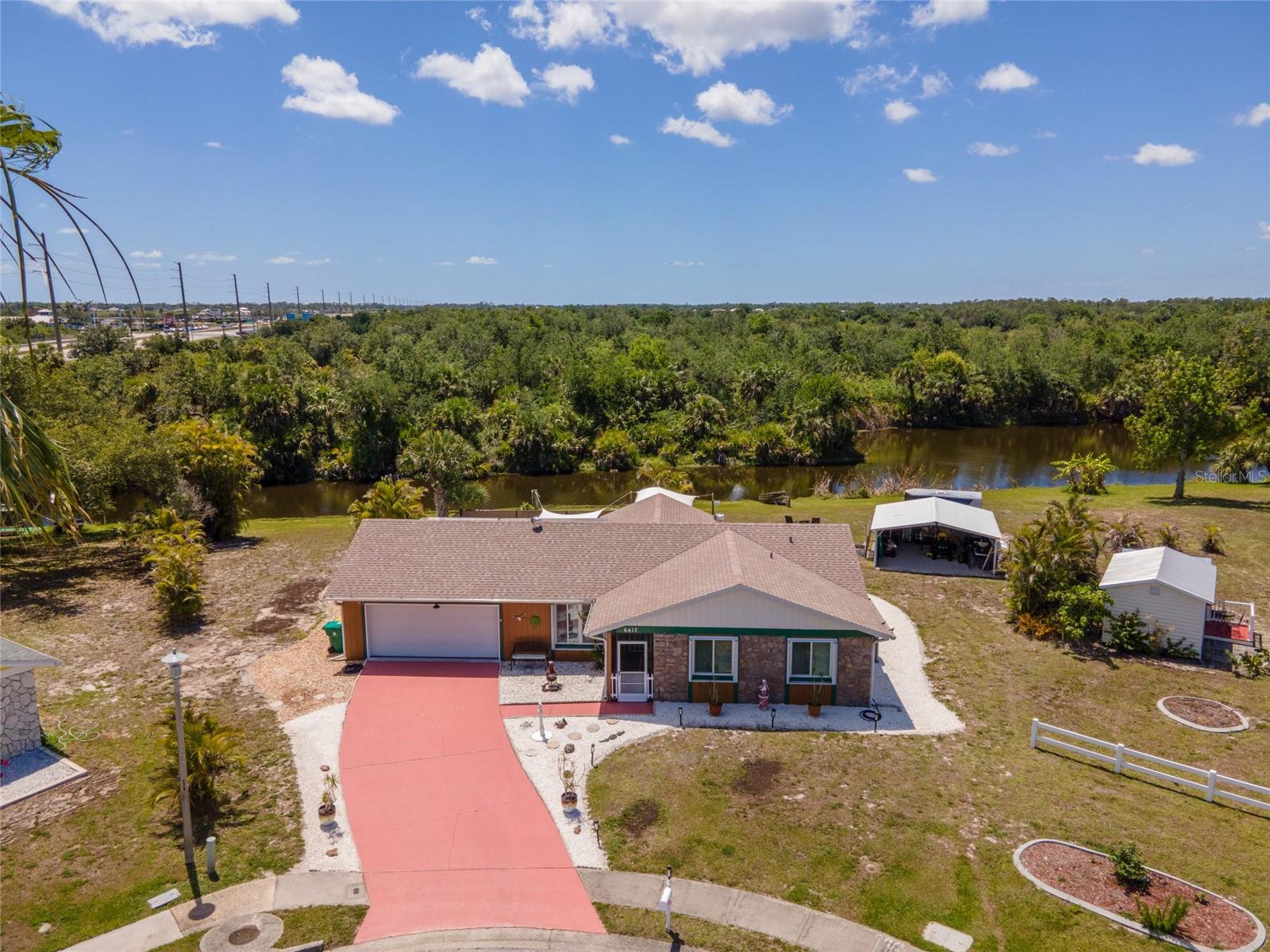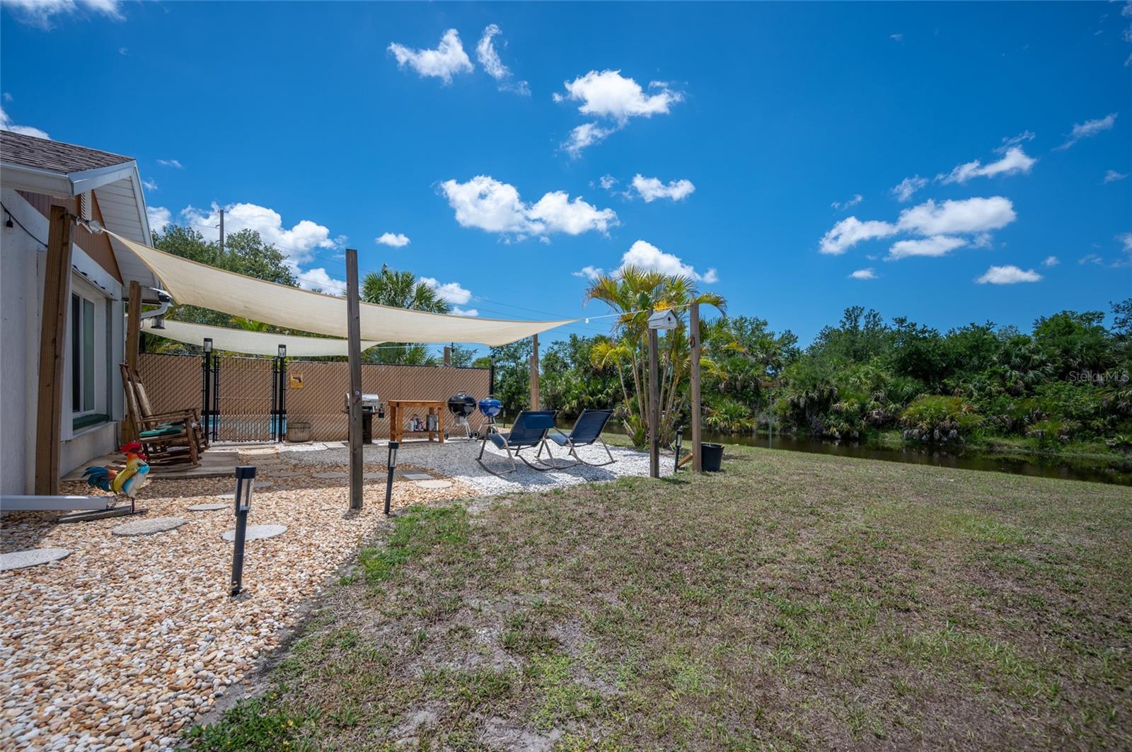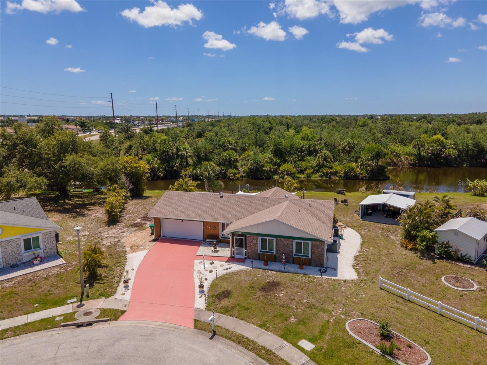 Tucked away on a quaint cul-de-sac, this WATERFRONT POOL HOME in the Gardens of Gulf Cove offers the best of both worlds – serene surroundings on the canal with shops, dining and essentials just around the corner! Enjoy exceptional outdoor living on your lanai with a HEATED POOL and firepit, a covered courtyard grilling area and a CARPORT to store your kayak or other toys. Plus, INSULATED WINDOWS, ACCORDION SHUTTERS and a HURRICANE RATED GARAGE DOOR will provide you peace of mind in any season! ***The adjacent dinette includes built-in cabinetry, ideal for a coffee station or beverage bar. In the heart of the home, the kitchen boasts new cabinetry, generous counter space for prepping meals, and a pass-through window to the lanai for easy outdoor serving when dining al fresco. ~~~At the end of the day, retreat to your primary suite with a WALK-IN CLOSET and stylish EN-SUITE BATHROOM with a tile shower. Your guests will enjoy two comfortable guest bedrooms and an updated guest bathroom with granite counters. ***For laid-back evenings or lively gatherings, head to the spacious family room, where sliding doors open wide to welcome the breeze. Extend the celebration outdoors—gather around the firepit on cooler nights, soak up the sun poolside, or rinse off in the convenient OUTDOOR SHOWER after a refreshing swim. ~~~Beyond the pool fence lies a shaded patio perfect for grilling or playing lawn games. A short stroll leads you to the canal’s edge, where lush vegetation offers natural privacy—an ideal setting to watch the wildlife or unwind with a favorite book. ***This home is packed with valuable upgrades, including a BRAND-NEW WATER HEATER (2025), a NEW ROOF (2023), and updated electrical panel and plumbing. Bonus: an RV ELECTRICAL HOOKUP adds even more flexibility. ~~~Enjoy the vibrant lifestyle in the Gardens of Gulf Cove, where community amenities abound—two swimming pools, a fitness center, clubhouse, pickleball courts, and more. Head south to Rotonda West for multiple Golf Courses or drive to area beaches like Boca Grande, Englewood Beach and Manasota Beach. Take advantage of world-class boating and fishing and TWO Major League Baseball Spring Training Stadiums in the area! ***Call now to schedule a showing and make this serene retreat your very own!