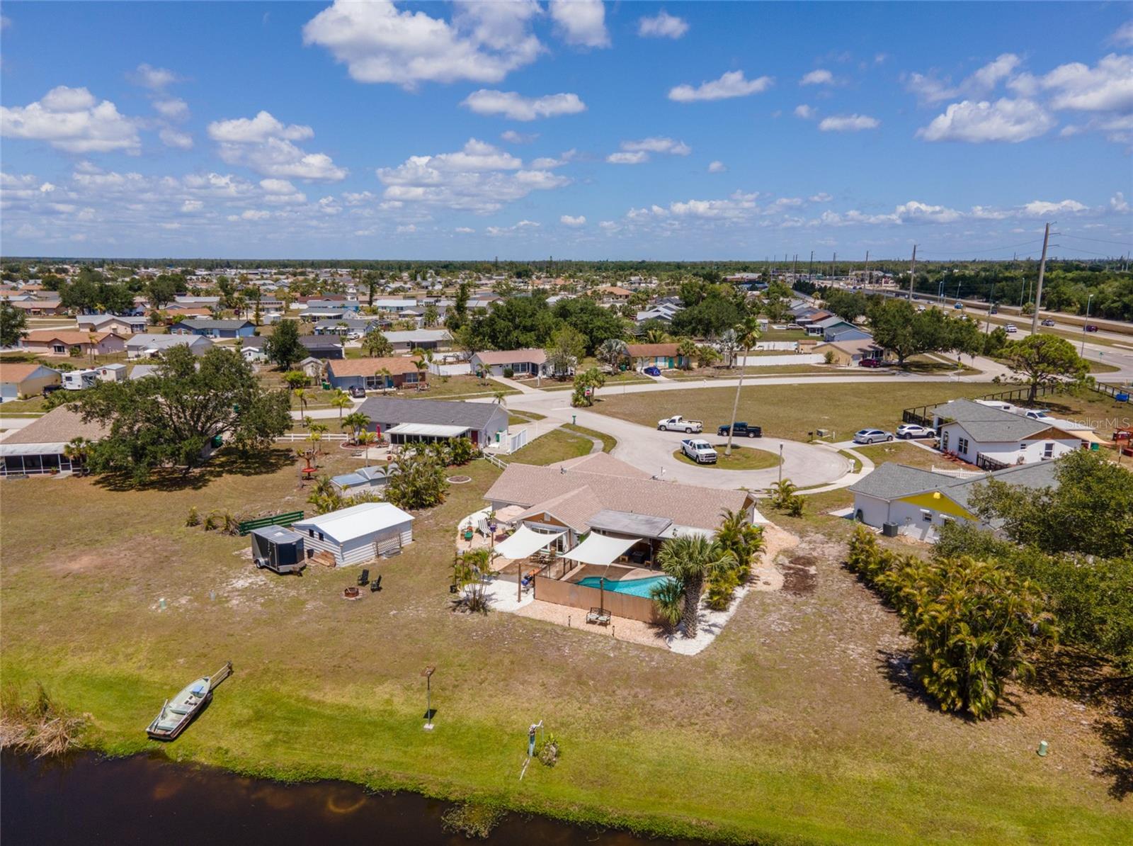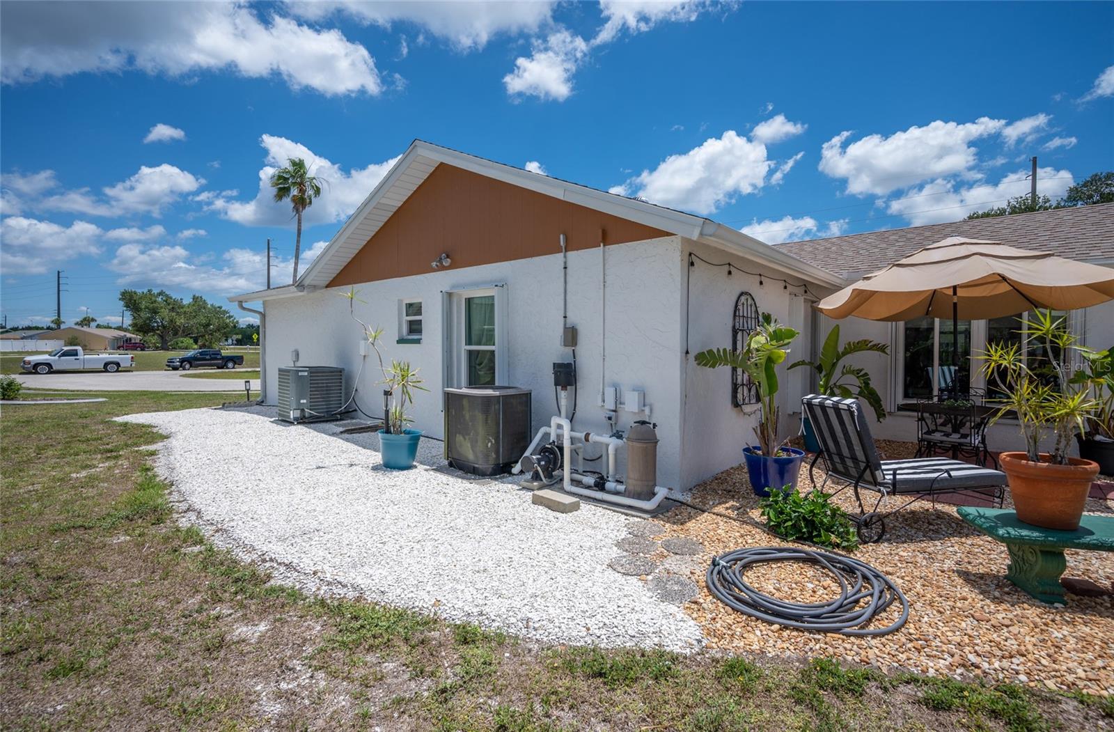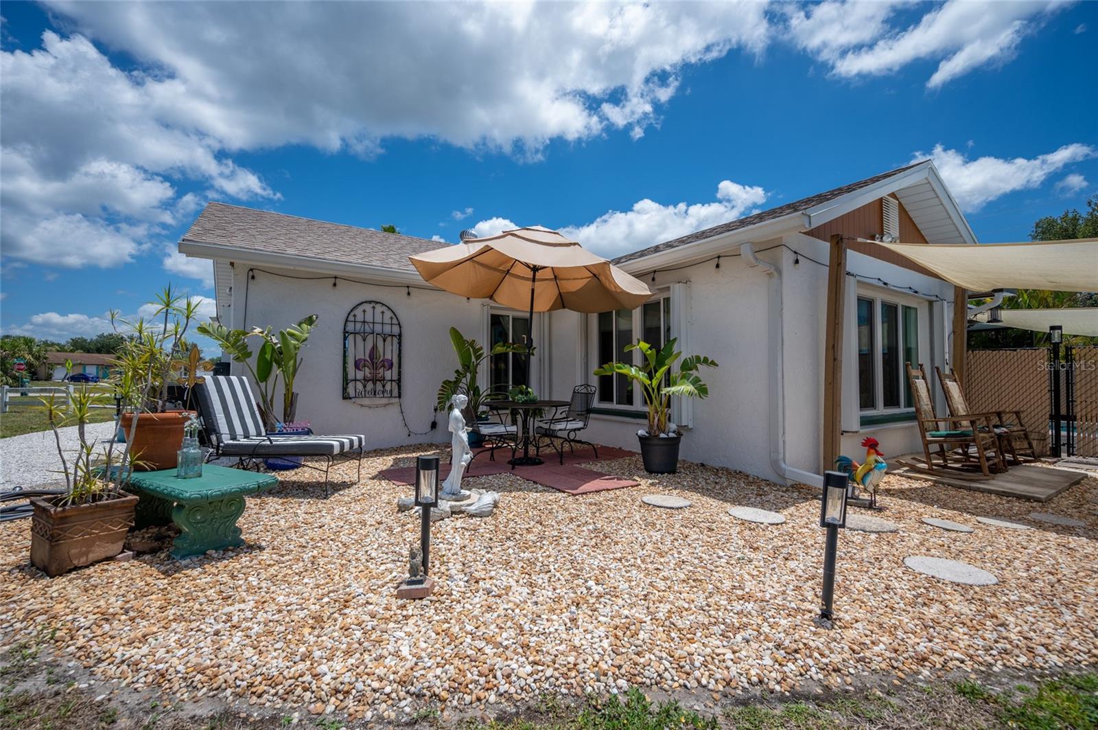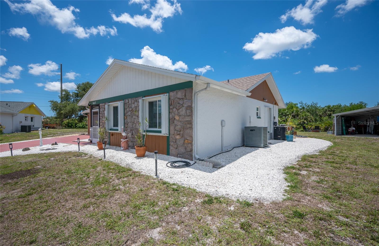 Tucked away on a quaint cul-de-sac, this WATERFRONT POOL HOME in the Gardens of Gulf Cove offers the best of both worlds – serene surroundings on the canal with shops, dining and essentials just around the corner! Enjoy exceptional outdoor living on your lanai with a HEATED POOL and firepit, a covered courtyard grilling area and a CARPORT to store your kayak or other toys. Plus, INSULATED WINDOWS, ACCORDION SHUTTERS and a HURRICANE RATED GARAGE DOOR will provide you peace of mind in any season! ***The adjacent dinette includes built-in cabinetry, ideal for a coffee station or beverage bar. In the heart of the home, the kitchen boasts new cabinetry, generous counter space for prepping meals, and a pass-through window to the lanai for easy outdoor serving when dining al fresco. ~~~At the end of the day, retreat to your primary suite with a WALK-IN CLOSET and stylish EN-SUITE BATHROOM with a tile shower. Your guests will enjoy two comfortable guest bedrooms and an updated guest bathroom with granite counters. ***For laid-back evenings or lively gatherings, head to the spacious family room, where sliding doors open wide to welcome the breeze. Extend the celebration outdoors—gather around the firepit on cooler nights, soak up the sun poolside, or rinse off in the convenient OUTDOOR SHOWER after a refreshing swim. ~~~Beyond the pool fence lies a shaded patio perfect for grilling or playing lawn games. A short stroll leads you to the canal’s edge, where lush vegetation offers natural privacy—an ideal setting to watch the wildlife or unwind with a favorite book. ***This home is packed with valuable upgrades, including a BRAND-NEW WATER HEATER (2025), a NEW ROOF (2023), and updated electrical panel and plumbing. Bonus: an RV ELECTRICAL HOOKUP adds even more flexibility. ~~~Enjoy the vibrant lifestyle in the Gardens of Gulf Cove, where community amenities abound—two swimming pools, a fitness center, clubhouse, pickleball courts, and more. Head south to Rotonda West for multiple Golf Courses or drive to area beaches like Boca Grande, Englewood Beach and Manasota Beach. Take advantage of world-class boating and fishing and TWO Major League Baseball Spring Training Stadiums in the area! ***Call now to schedule a showing and make this serene retreat your very own!
